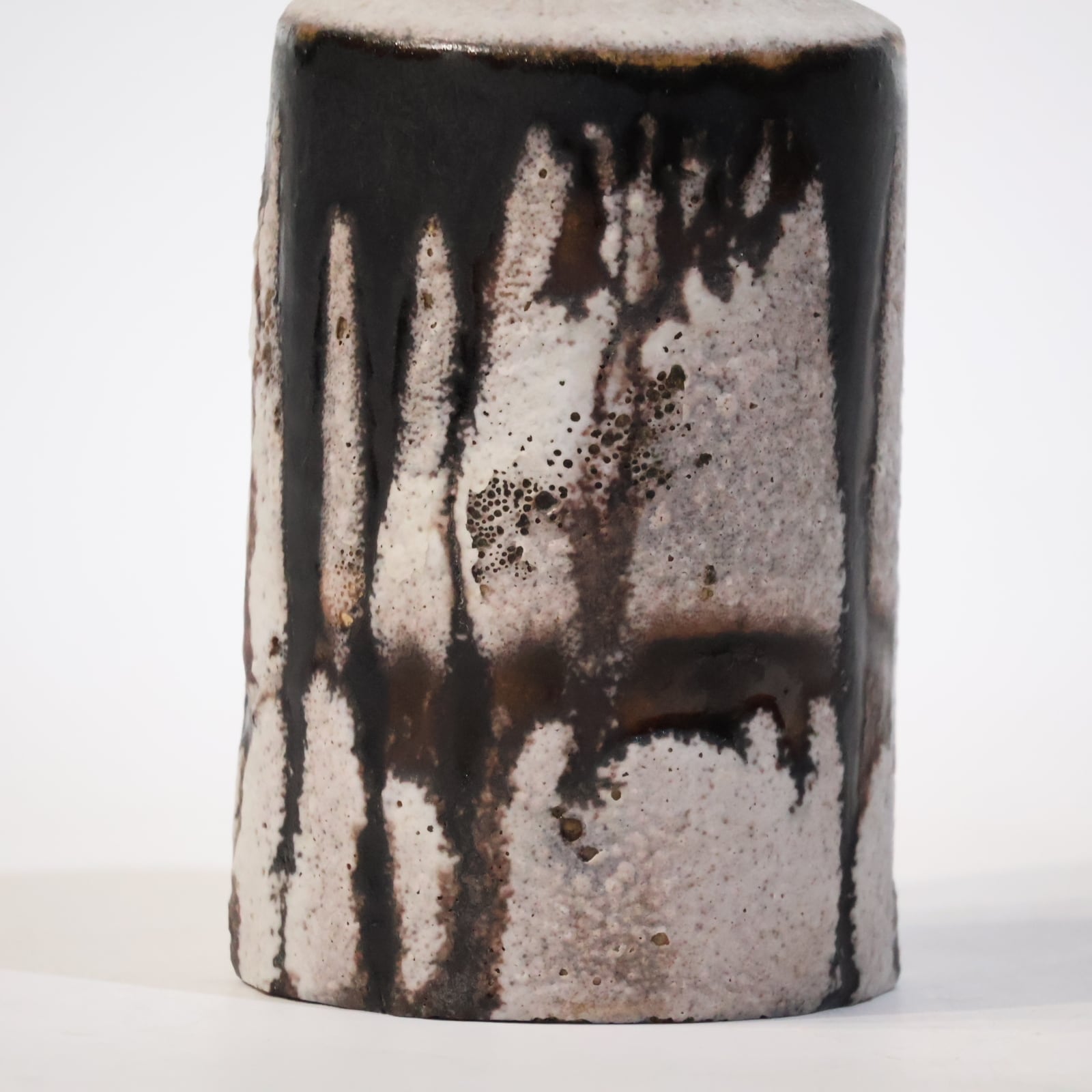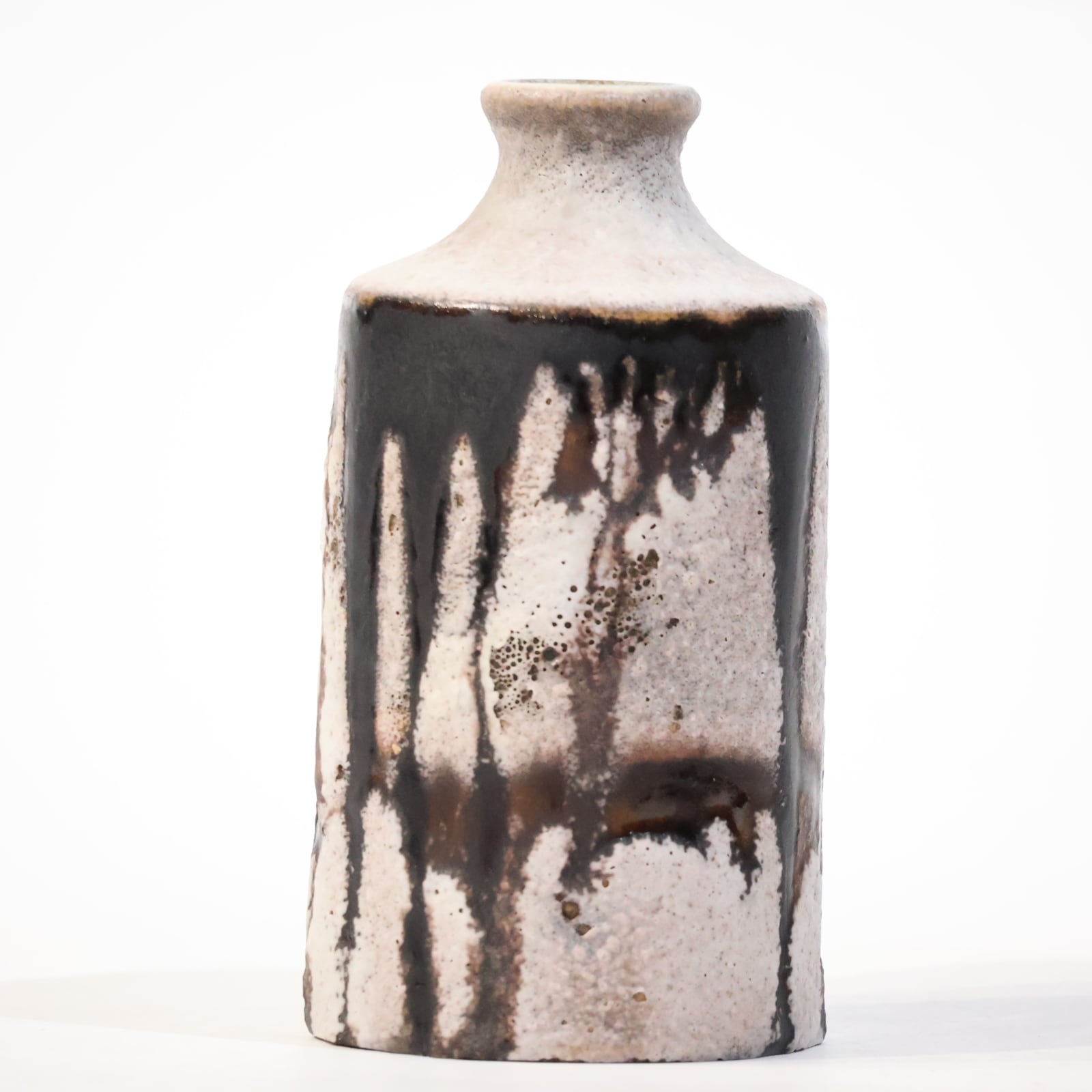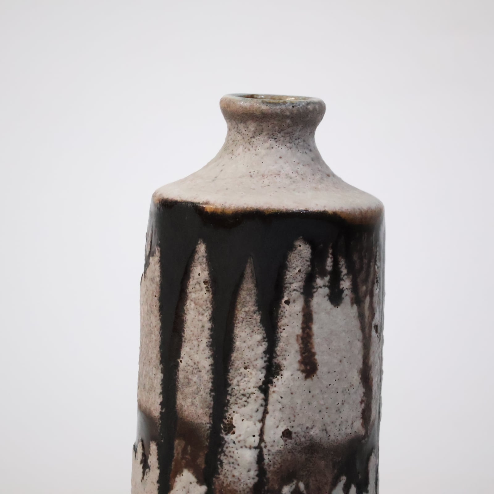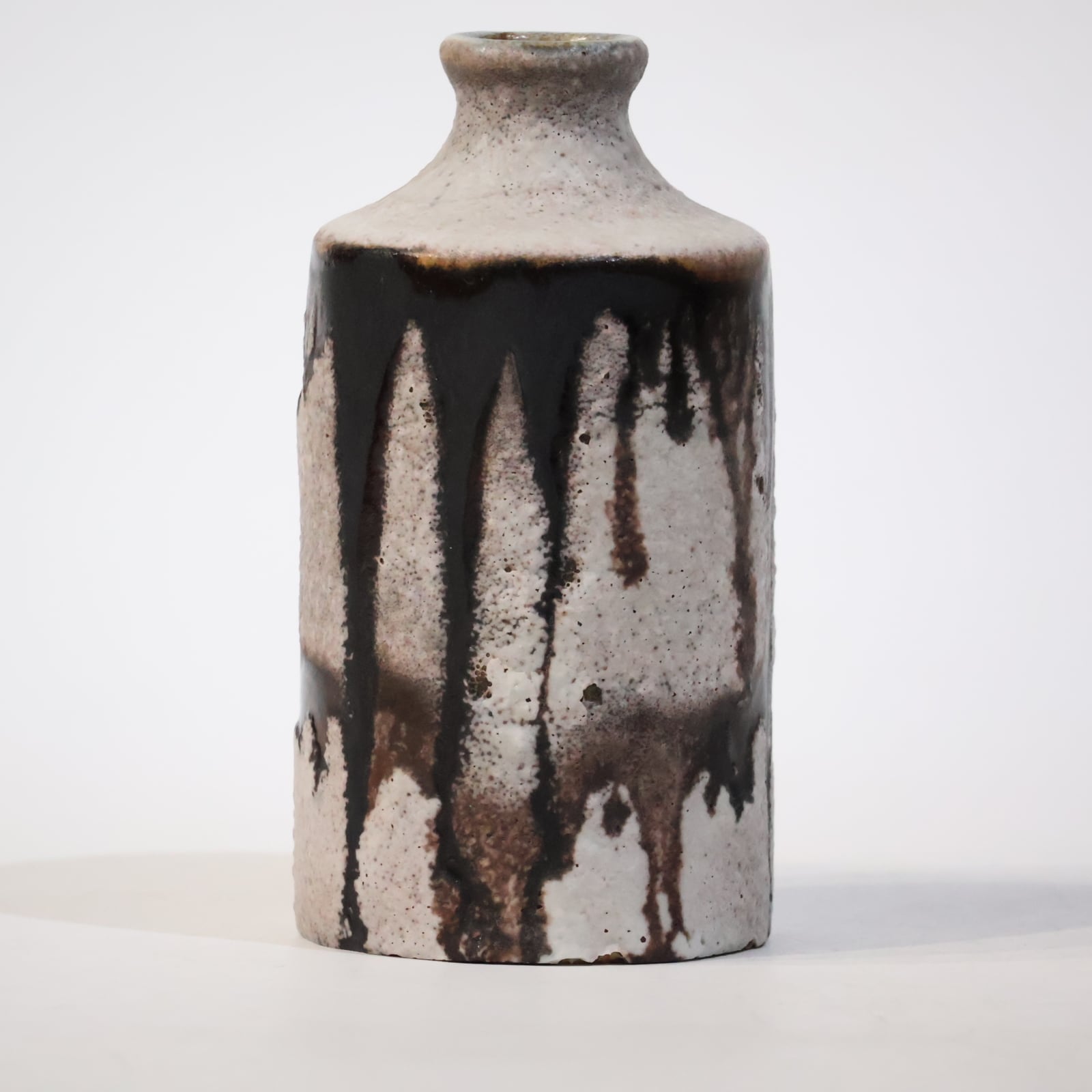 縦に流れ落ちるようなブラウンの釉薬が印象的な一点。生成りの素地に大胆に垂れ込むことで、まるで墨をしたためたような静謐な美しさを感じさせます。