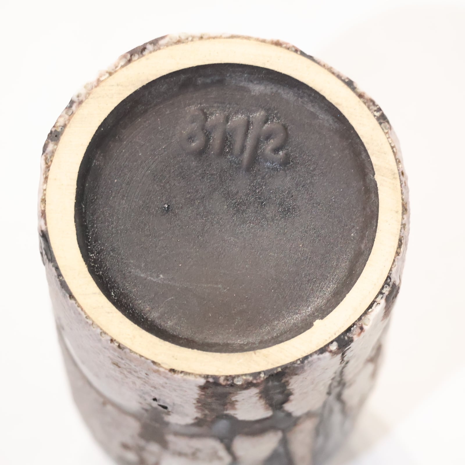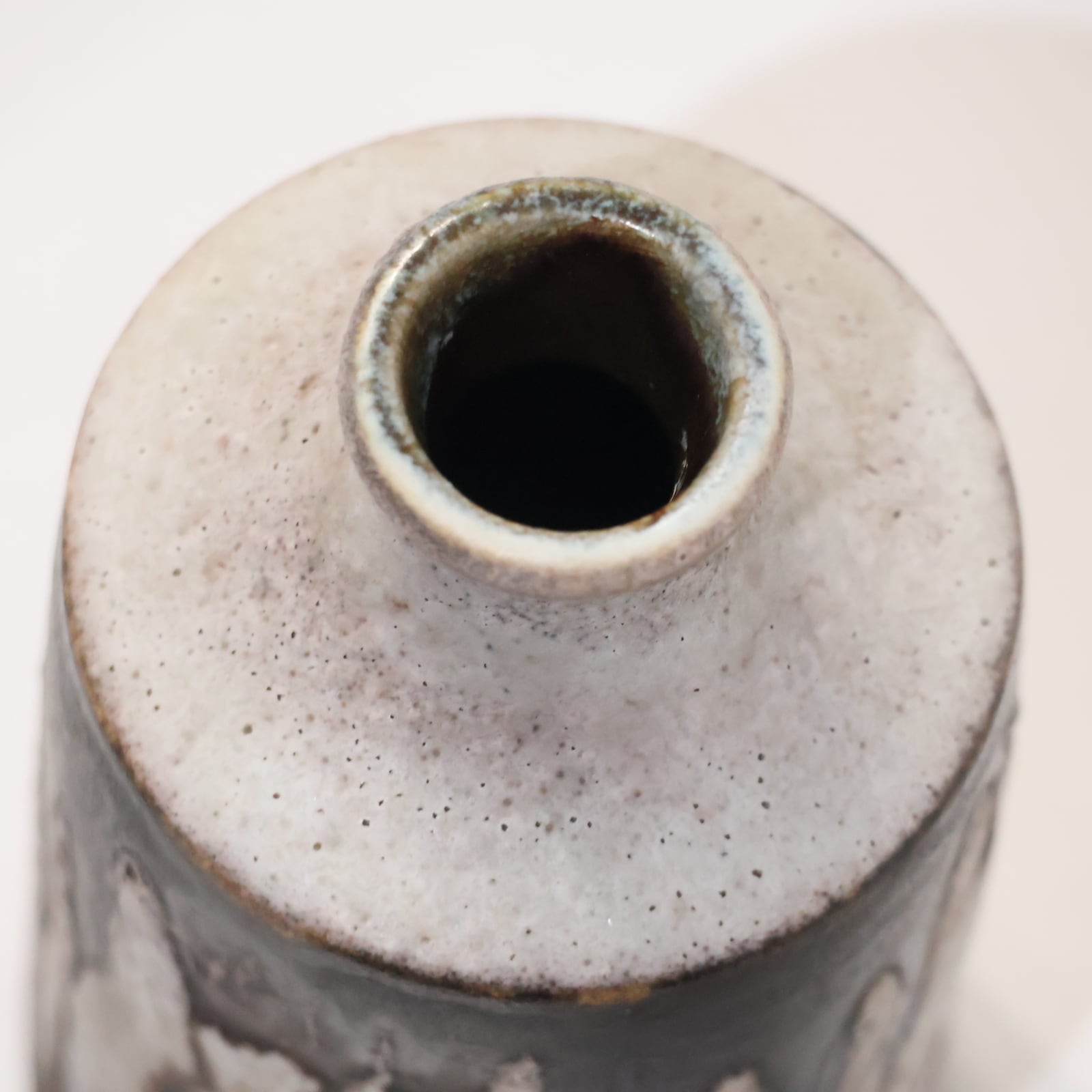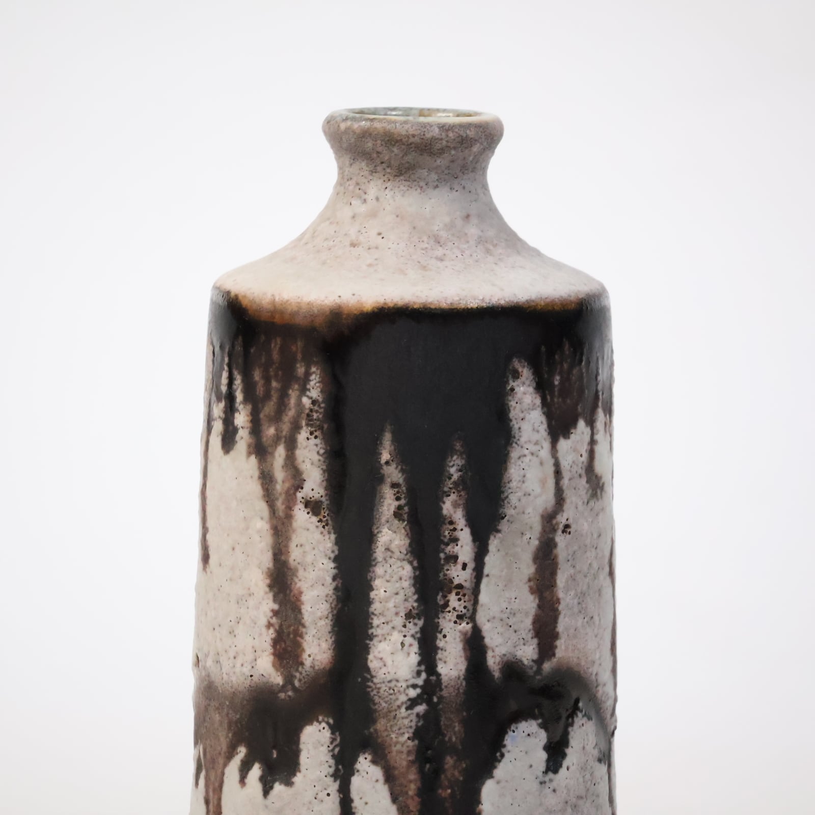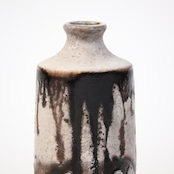 縦に流れ落ちるようなブラウンの釉薬が印象的な一点。生成りの素地に大胆に垂れ込むことで、まるで墨をしたためたような静謐な美しさを感じさせます。