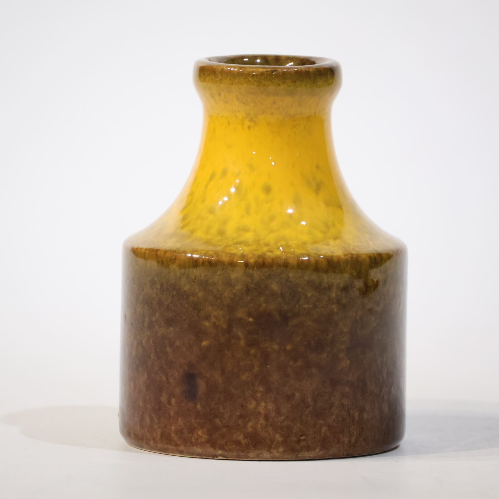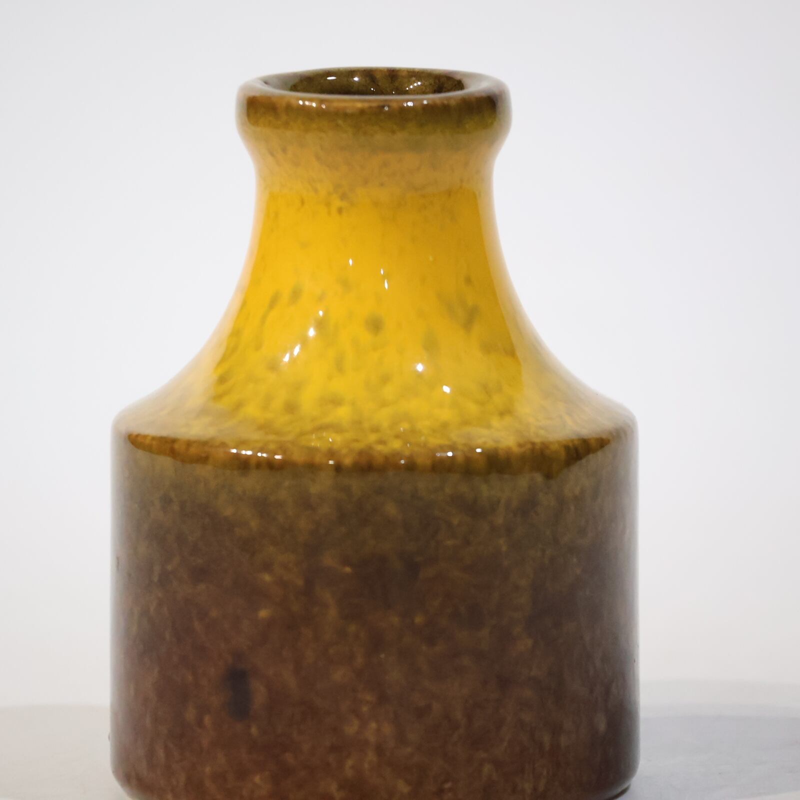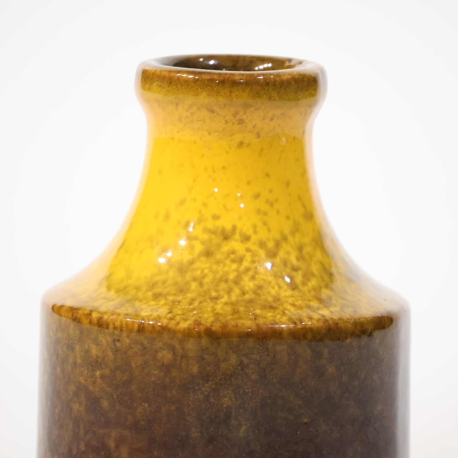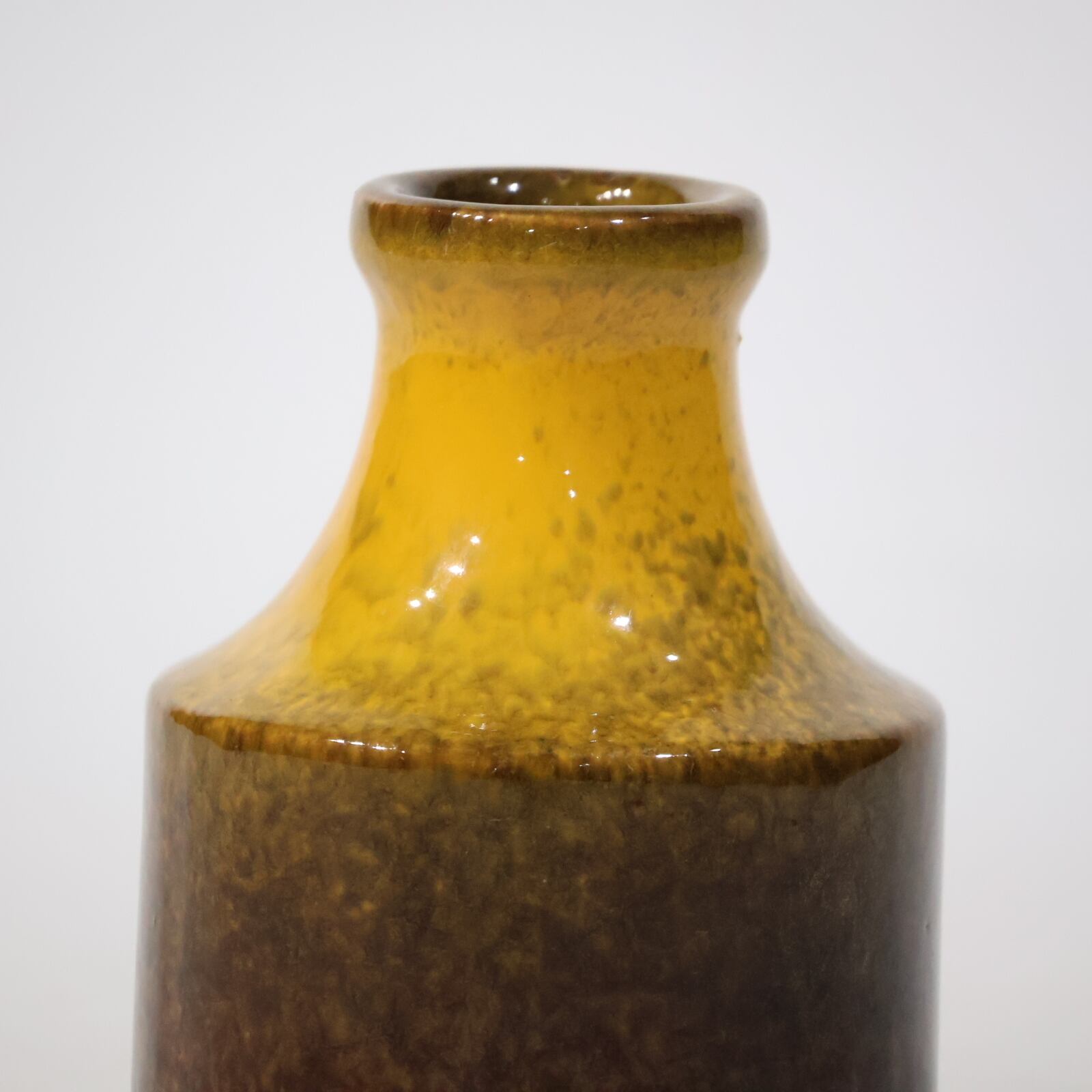 同社は急速に成長し、1950~80年代には陶 器製造の分野でドイツ最大のメーカーとなり、今日も確固たる地位を維持しています。形状に加えて釉薬でも、当時は最も幅広い品揃えを誇った他、輸出量も最大だったため、現在でも同社の製品はよく見られます。特に円筒形を基調にし たシンプルな形状で、型押し模様のある床置き 花瓶が代表的。色彩については当時主流だっ た赤やオレンジから、クリーム、ベージュ、茶色 などが多くを占めています。