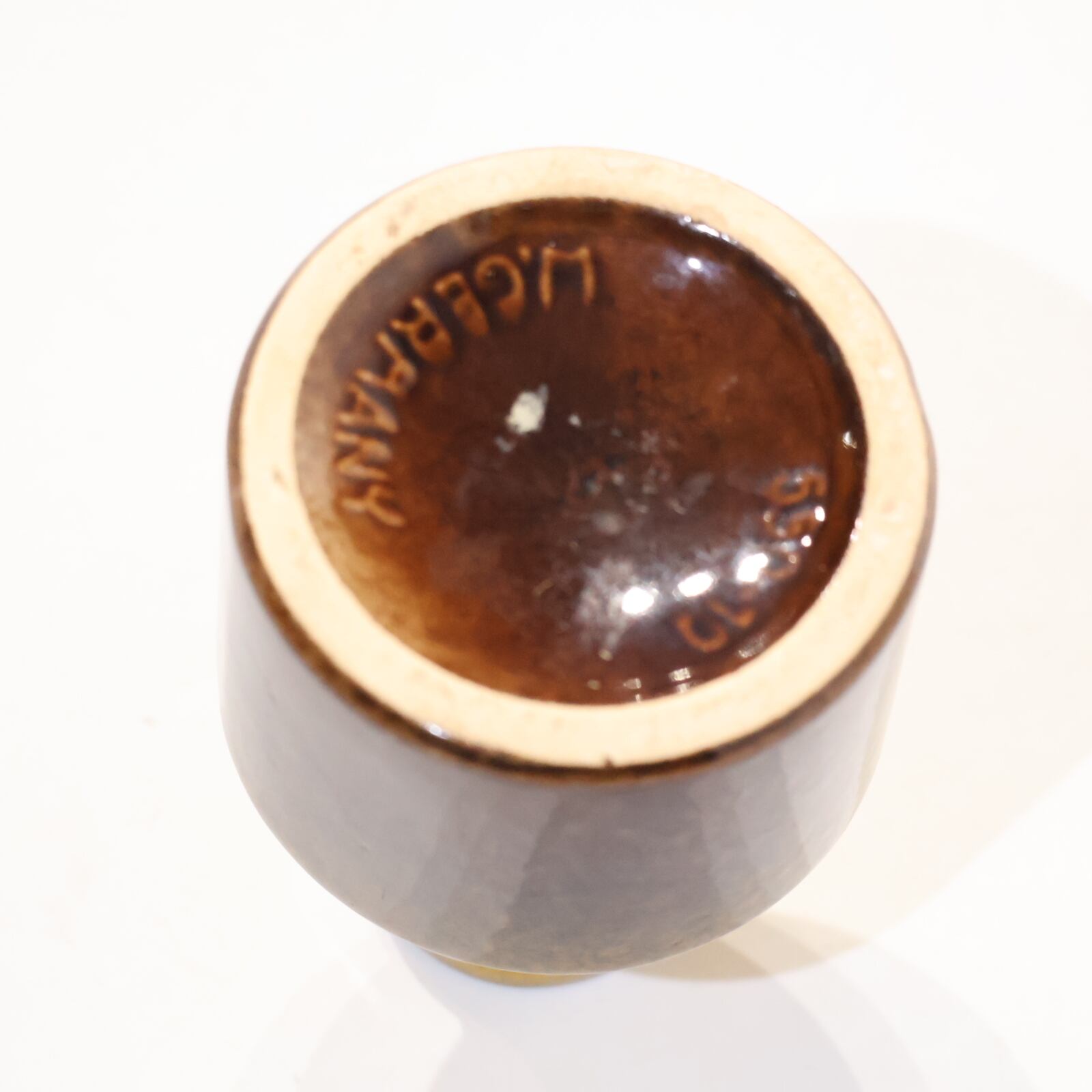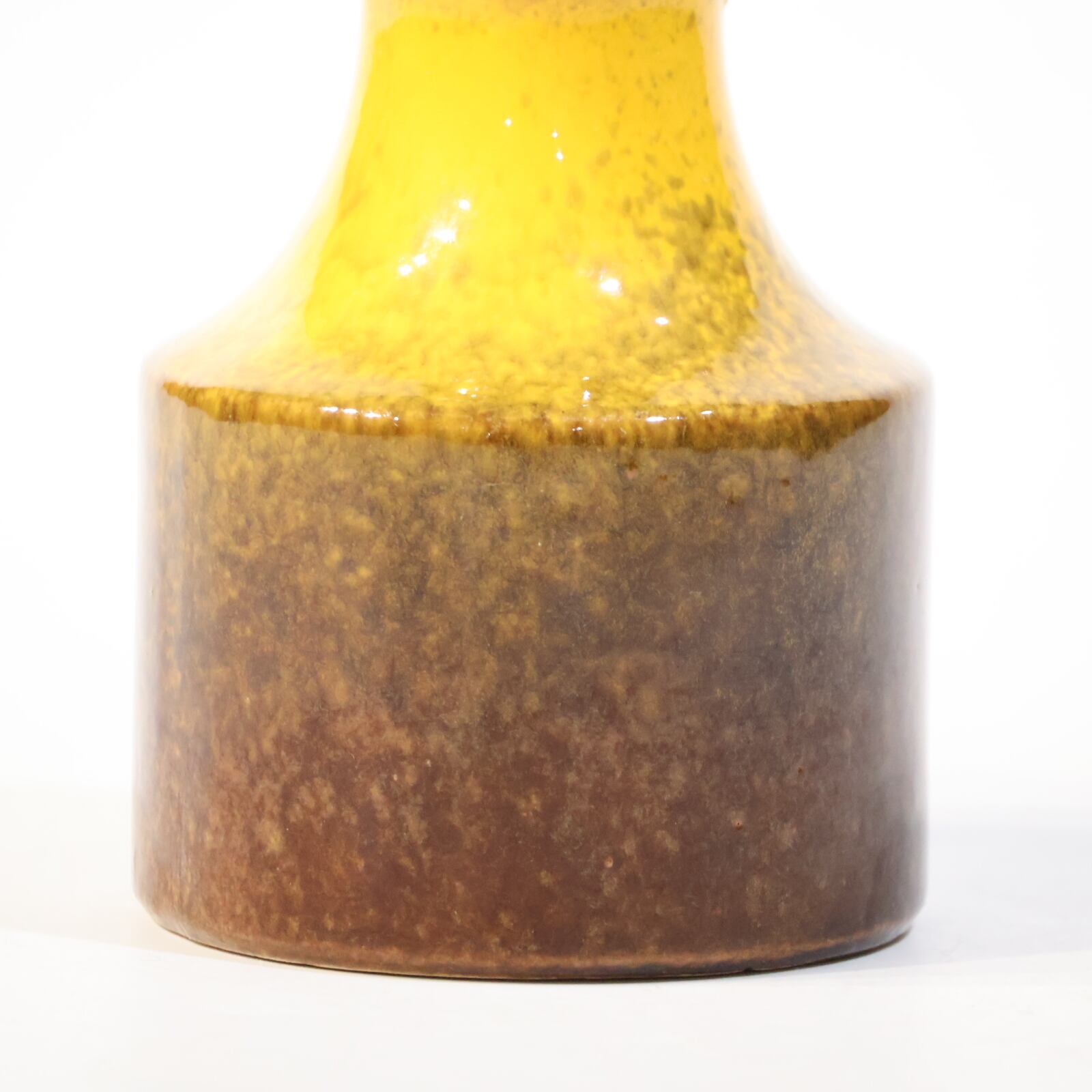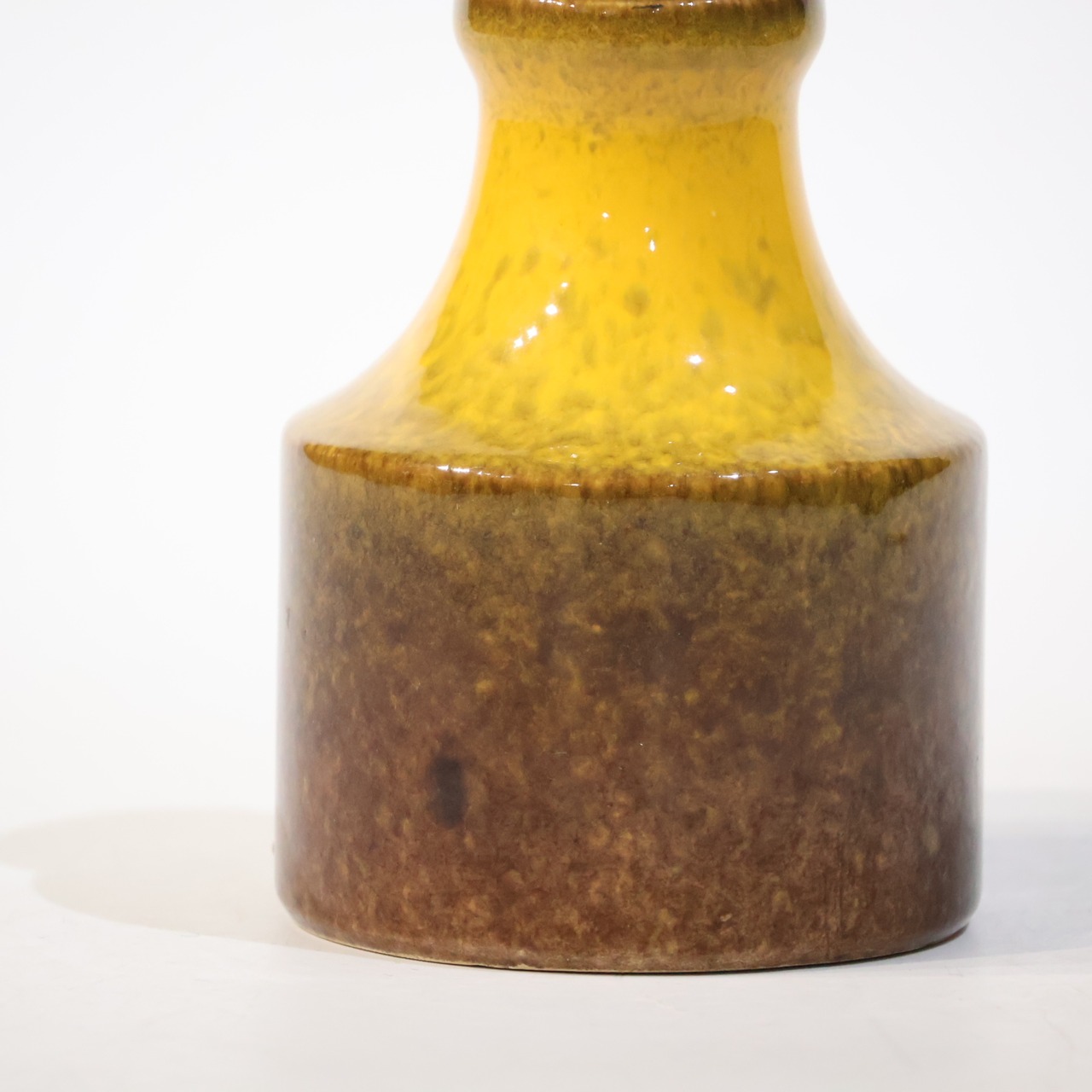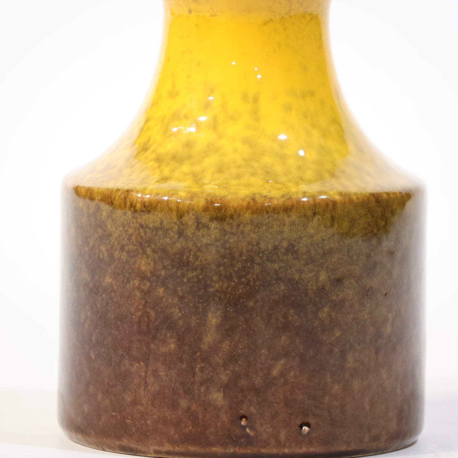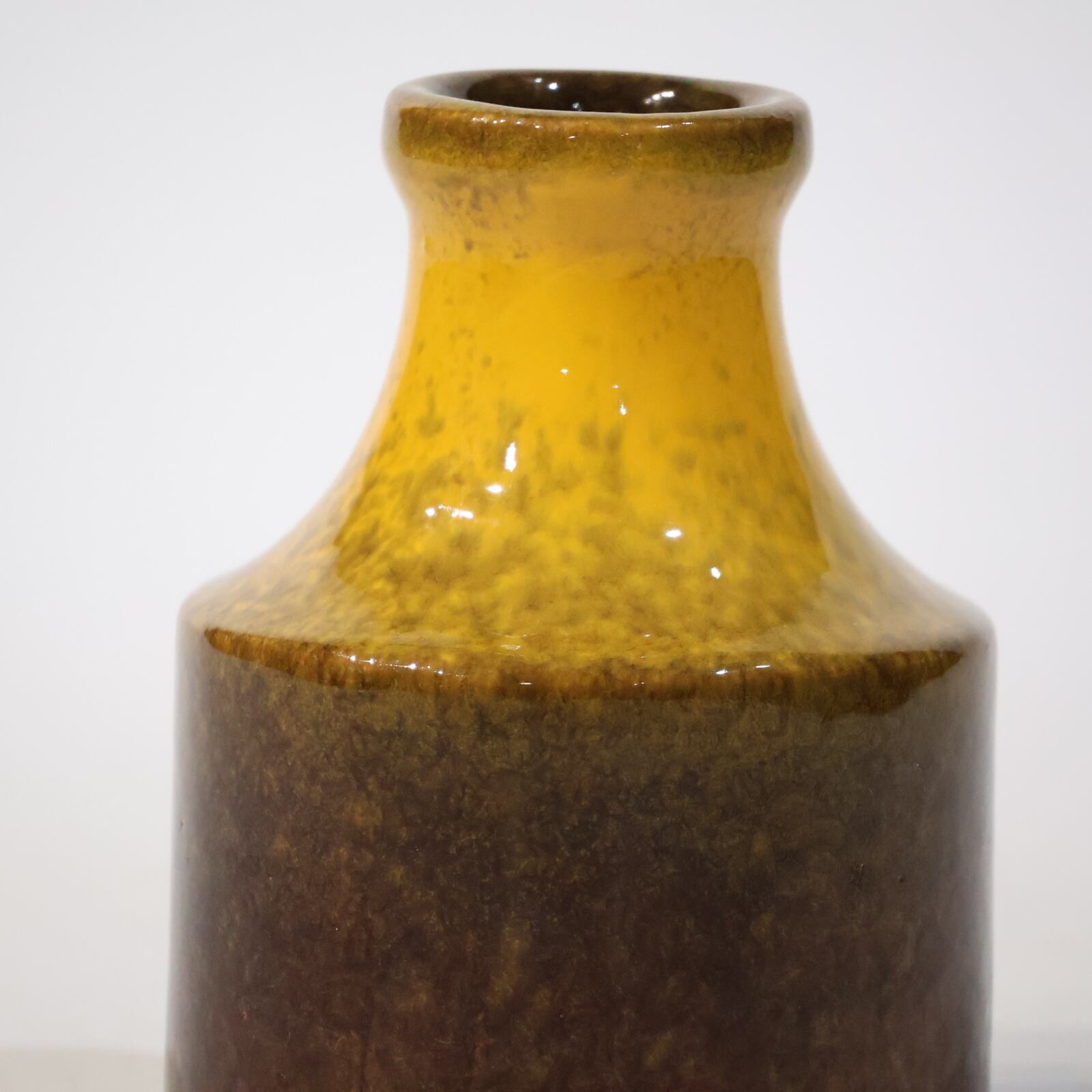同社は急速に成長し、1950~80年代には陶 器製造の分野でドイツ最大のメーカーとなり、今日も確固たる地位を維持しています。形状に加えて釉薬でも、当時は最も幅広い品揃えを誇った他、輸出量も最大だったため、現在でも同社の製品はよく見られます。特に円筒形を基調にし たシンプルな形状で、型押し模様のある床置き 花瓶が代表的。色彩については当時主流だっ た赤やオレンジから、クリーム、ベージュ、茶色 などが多くを占めています。