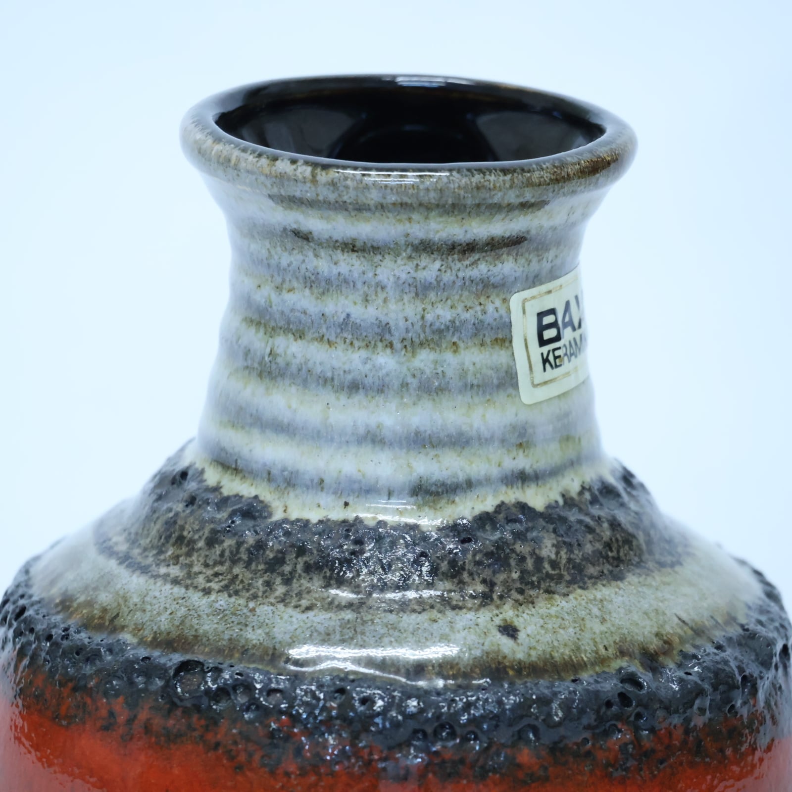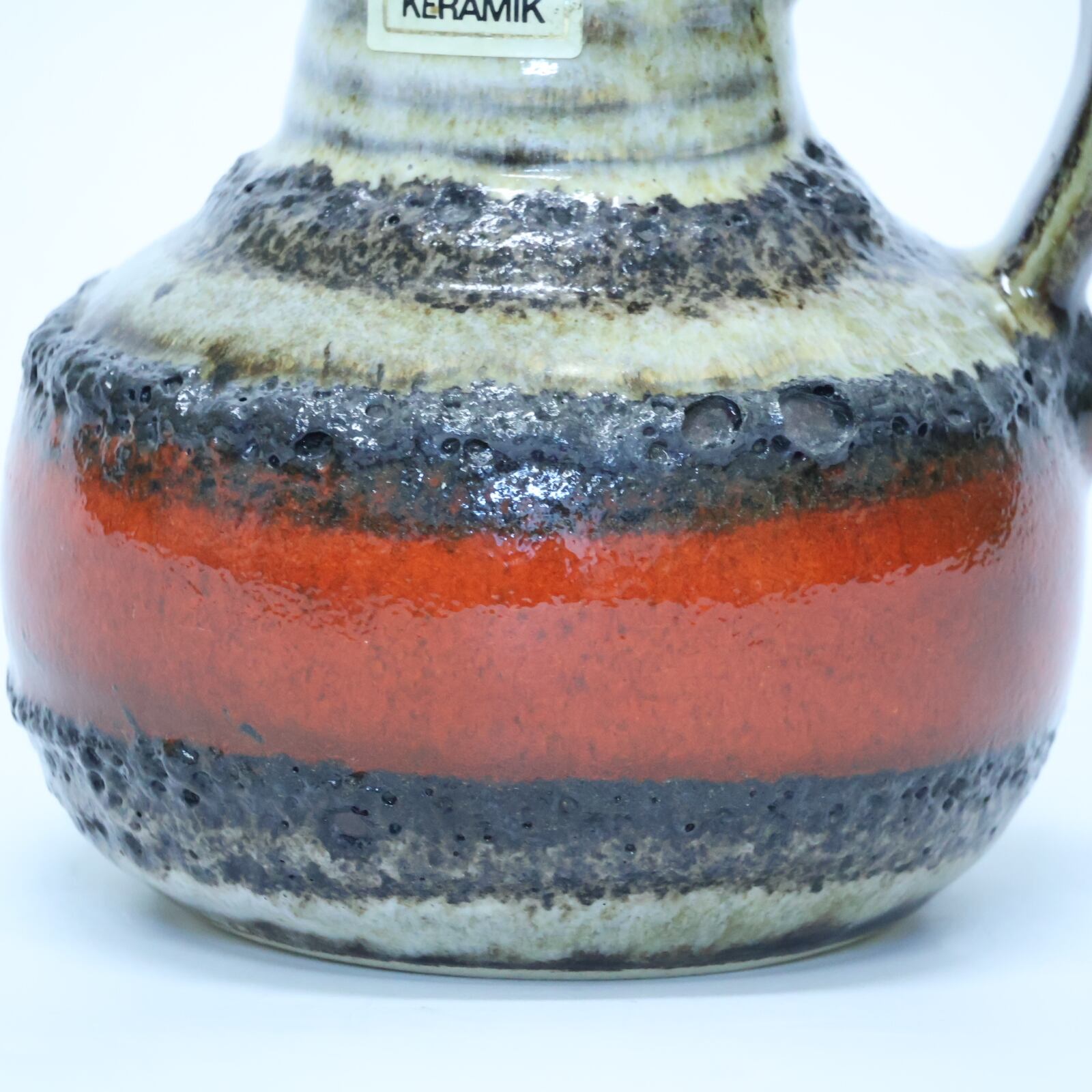 1960年代からのスタイルとしては、 当時広く流行していた色彩の釉薬(マットまたは 光沢あり)を使用し、シンプルなフォルムの上に様 式化した花の図柄の型押しや幾何学模様をあし らったものが多く、Scheurichのも のと混同されがちです。