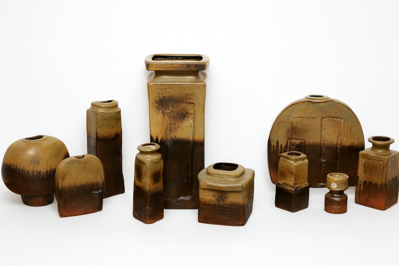 9つの花器、2つの燭台、ボウルを含む12部構成のセラミックオブジェクトとしてのシリーズのひとつ。Liesel Homrichによって、このシリーズのための特別な釉薬が施されています。
