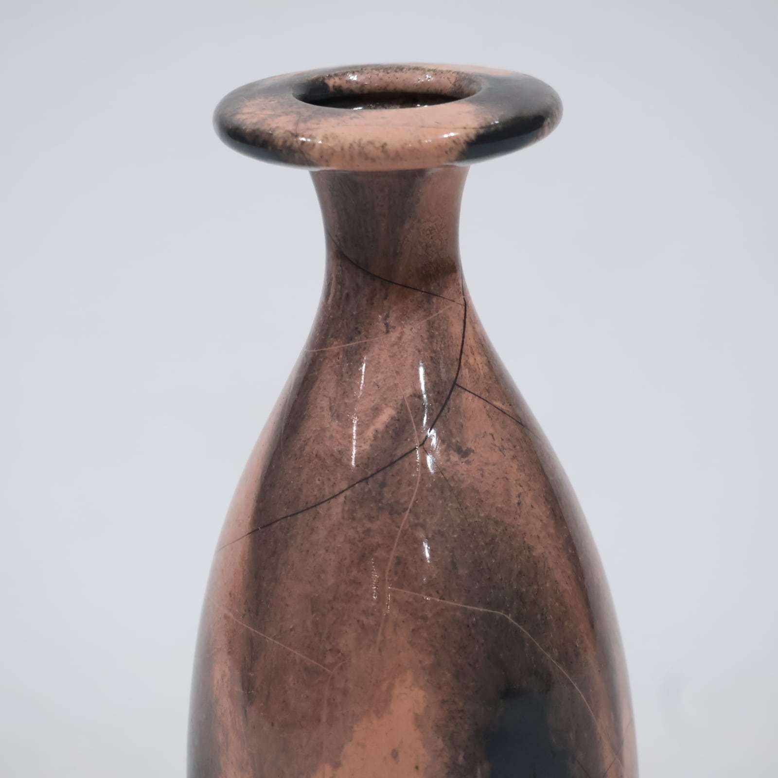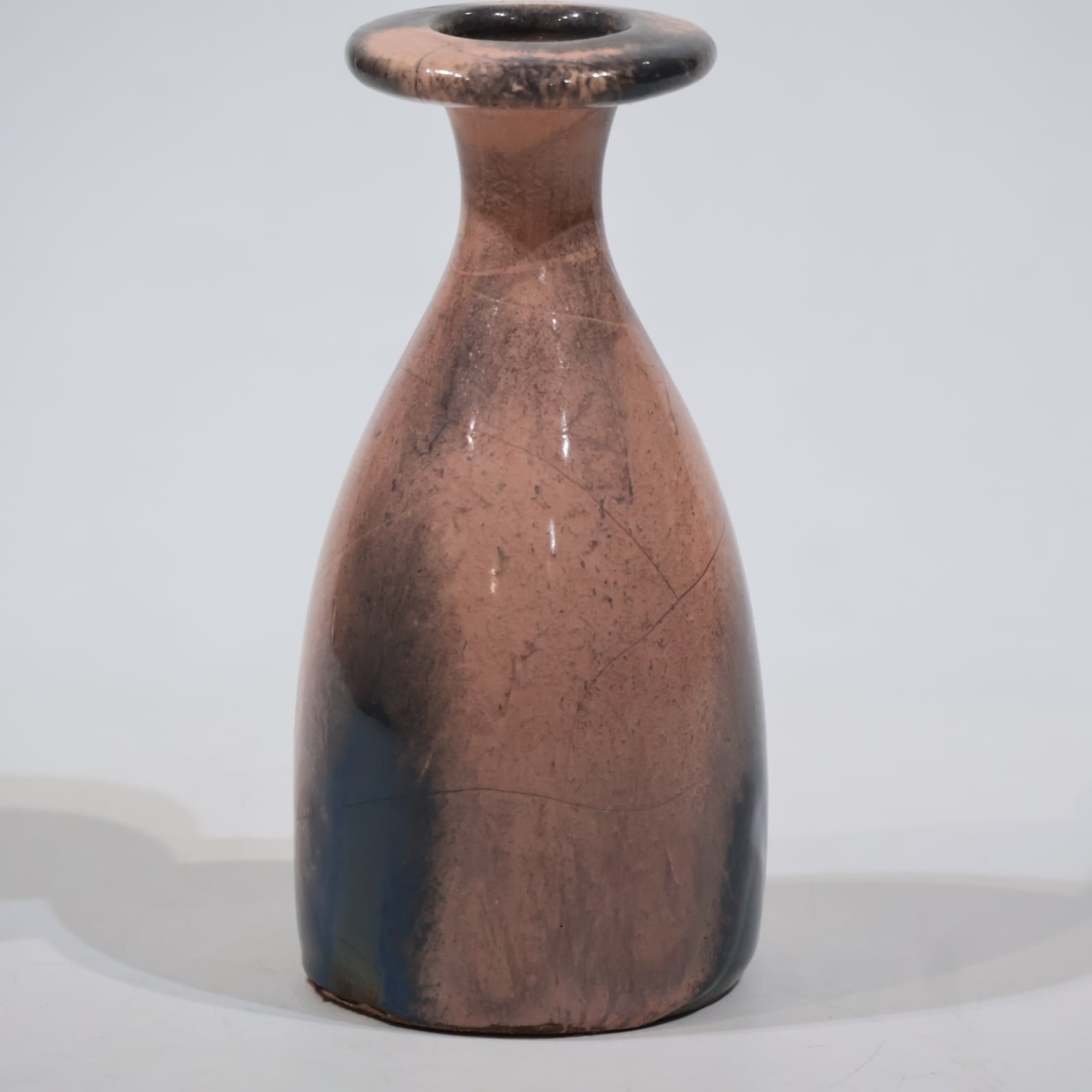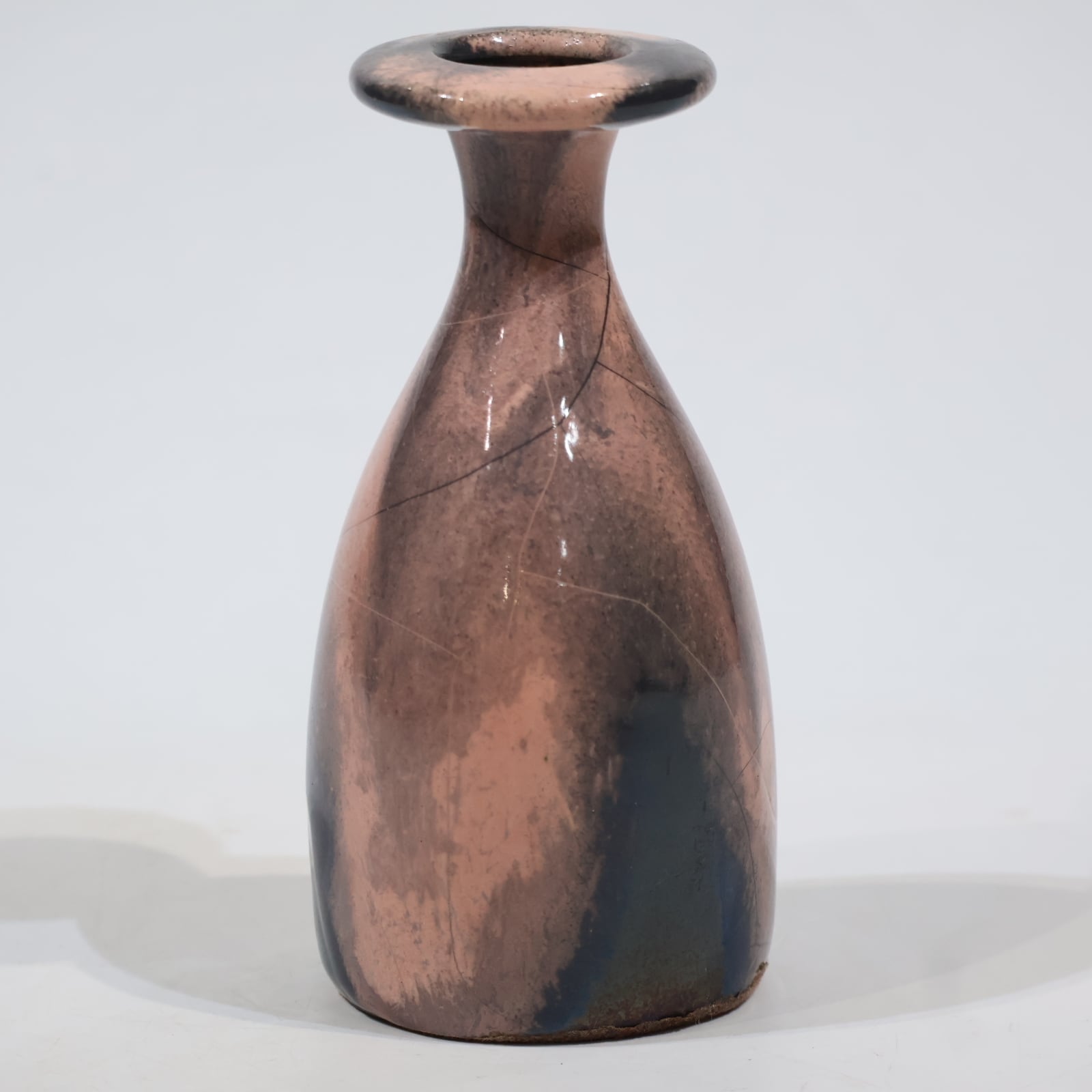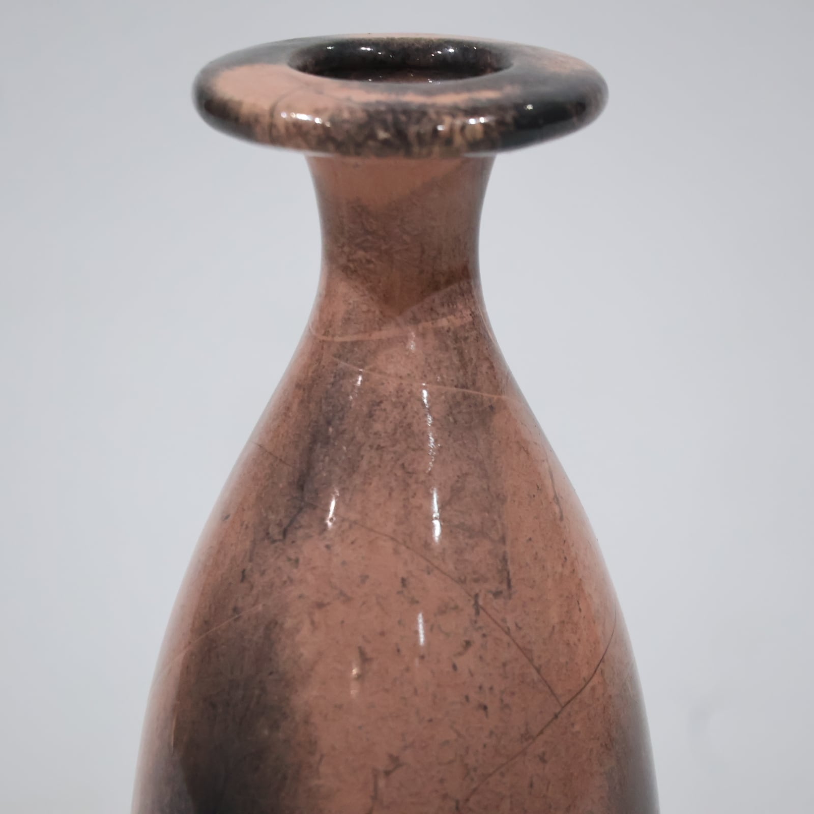 色彩は柔らかなグレーとピンクの組み合わせ。艶のある釉薬が溶け合うように流れ、静かに揺らぐ陰影を生み出しています。ピンクはややくすみを帯びており、落ち着いたグレートーンとの対比が上品な印象を与えます。