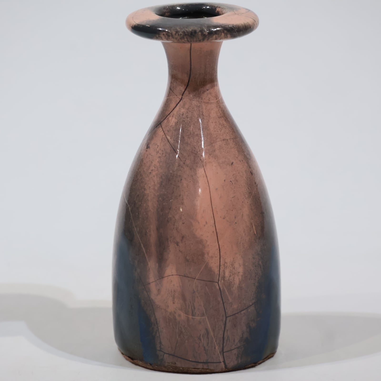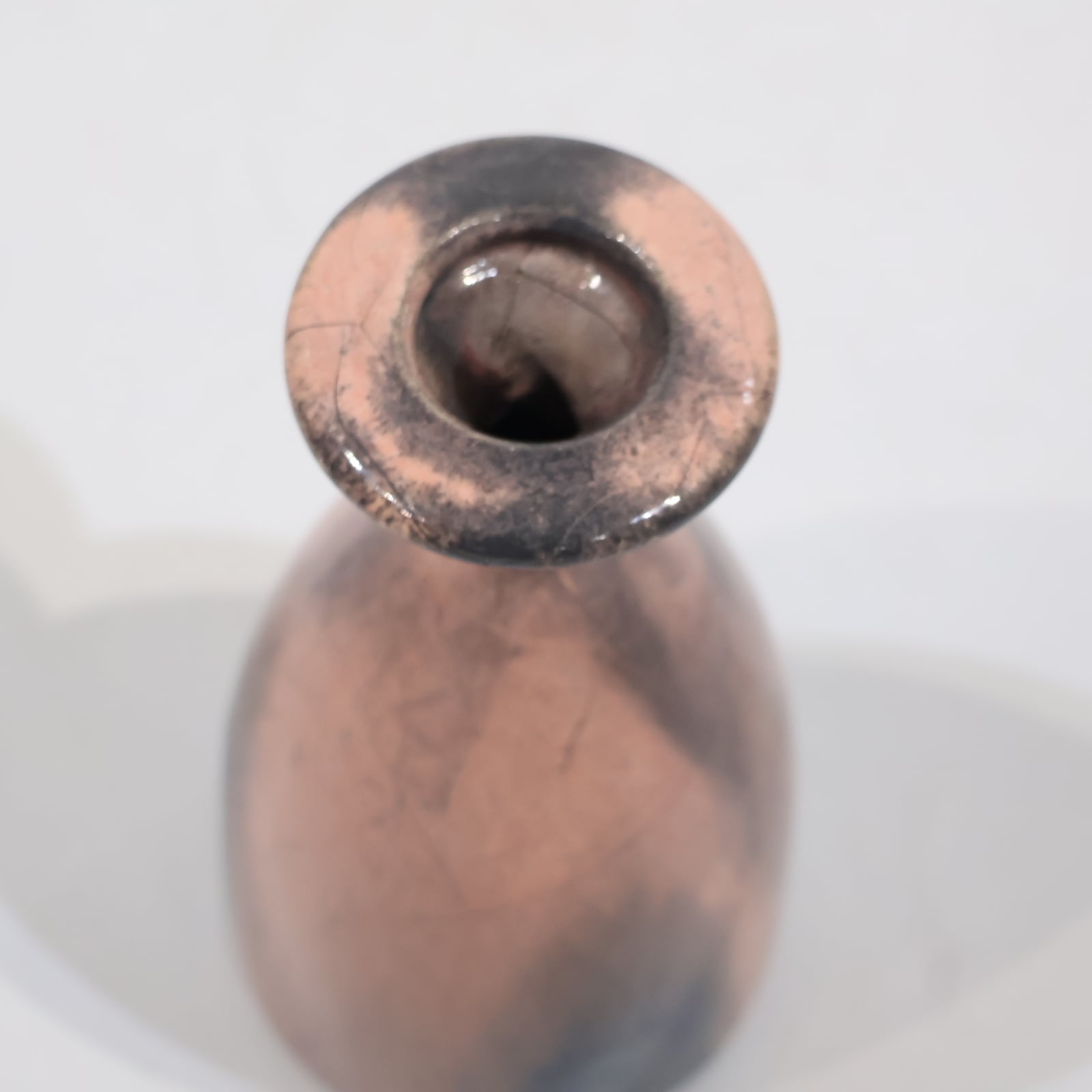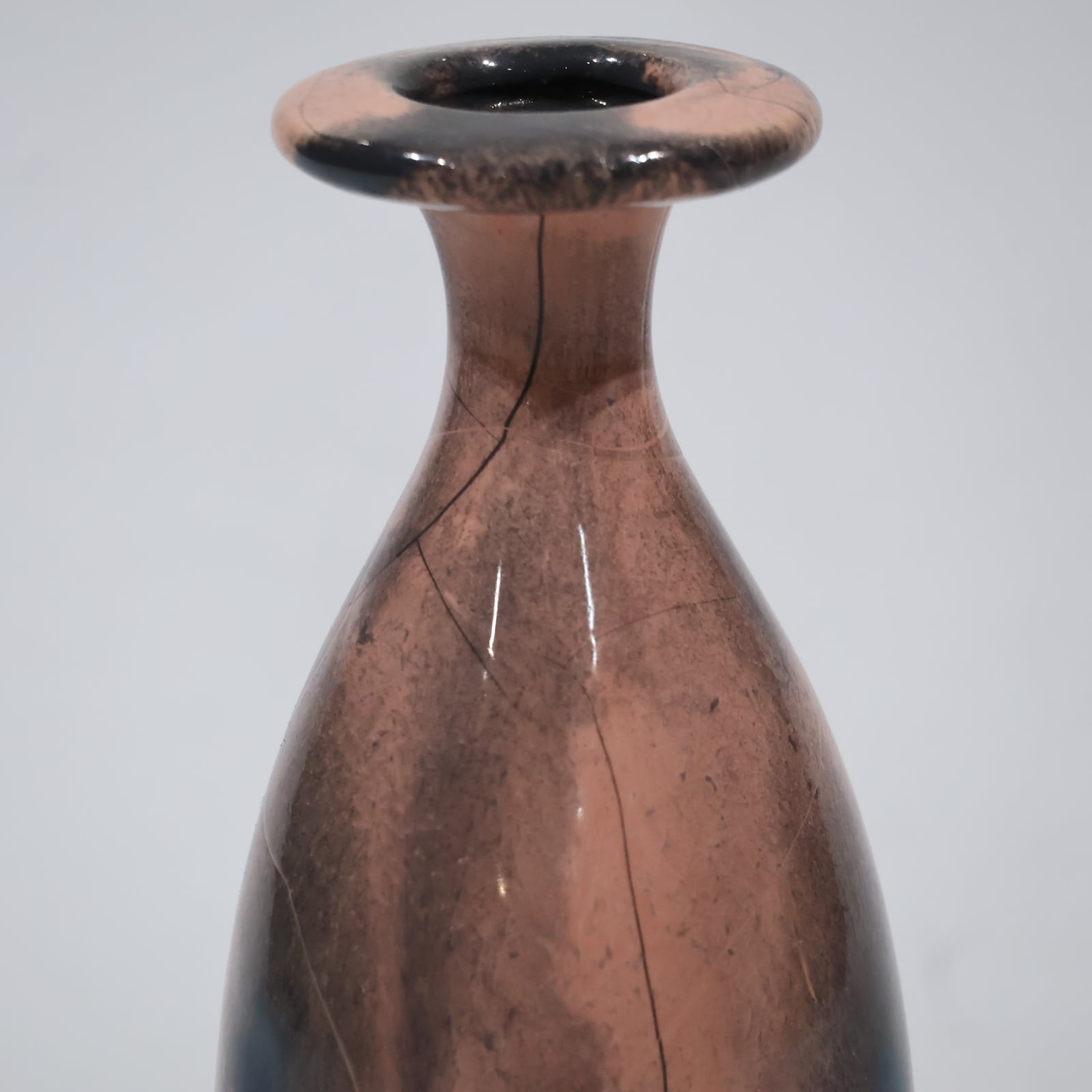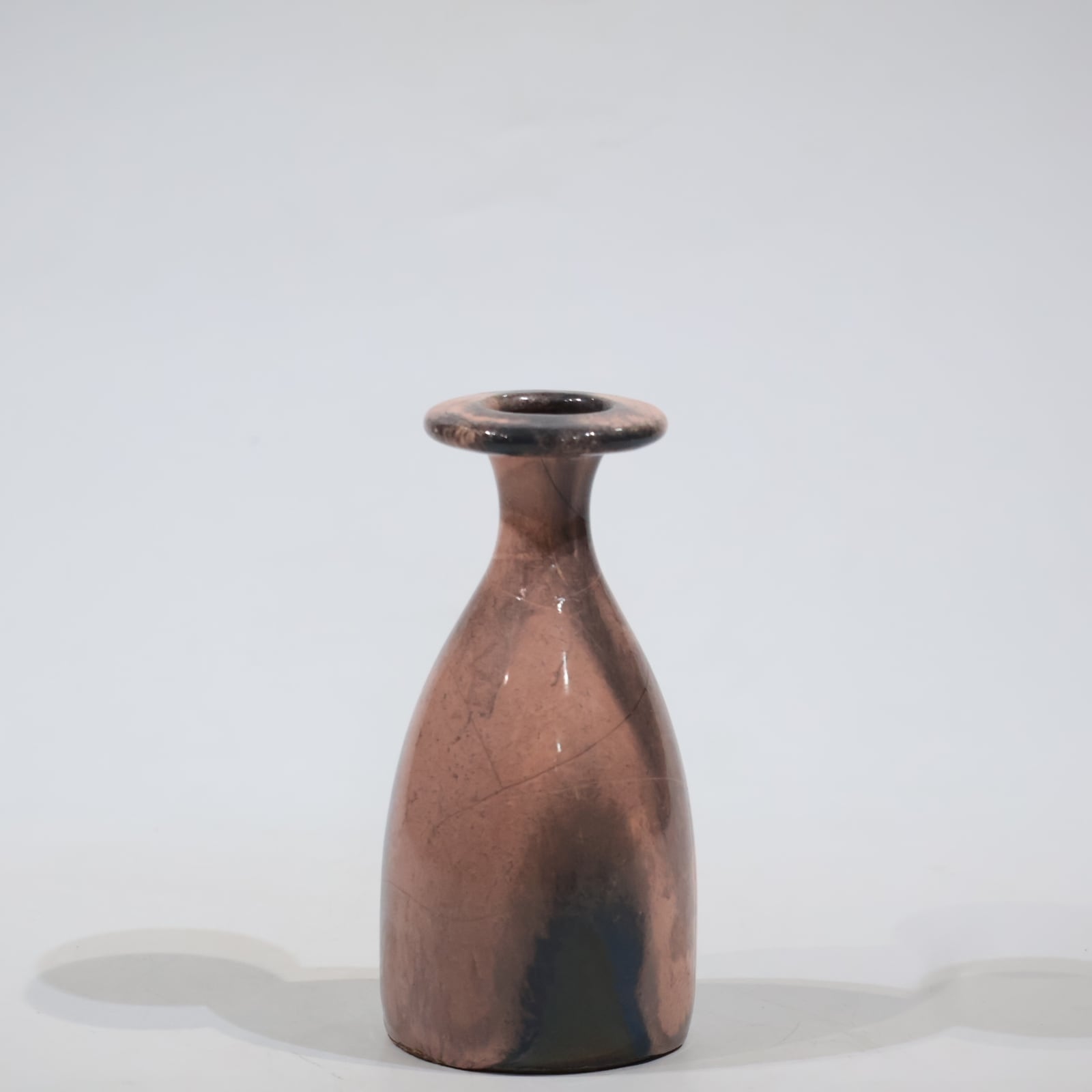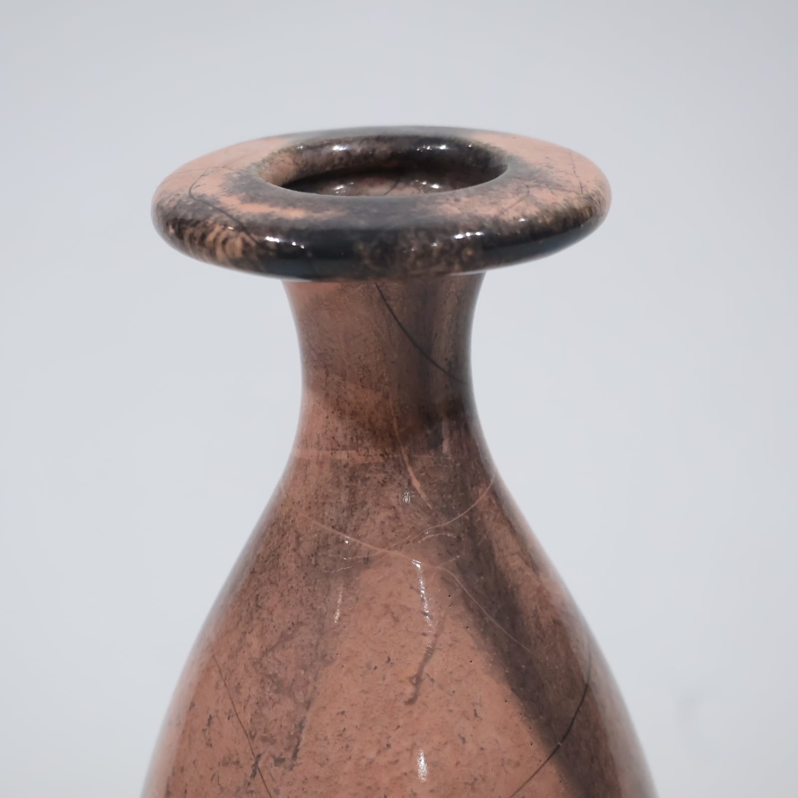 色彩は柔らかなグレーとピンクの組み合わせ。艶のある釉薬が溶け合うように流れ、静かに揺らぐ陰影を生み出しています。ピンクはややくすみを帯びており、落ち着いたグレートーンとの対比が上品な印象を与えます。