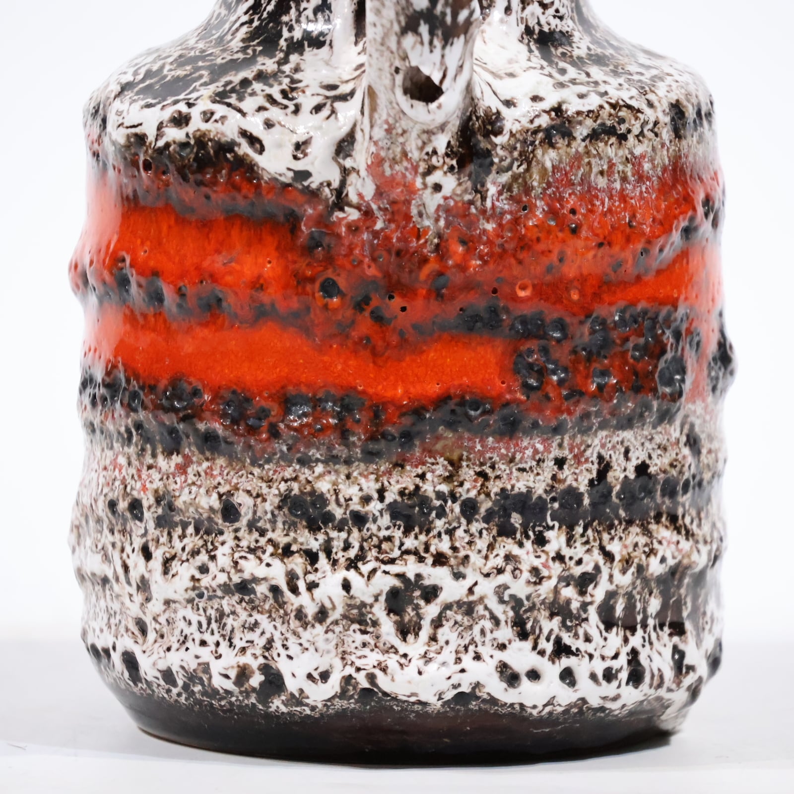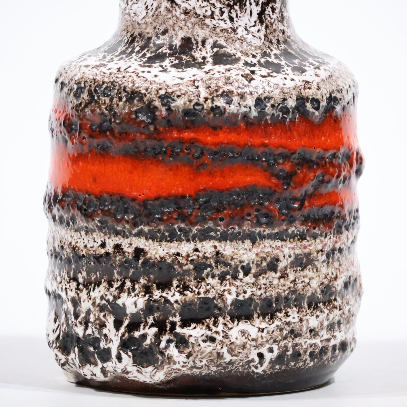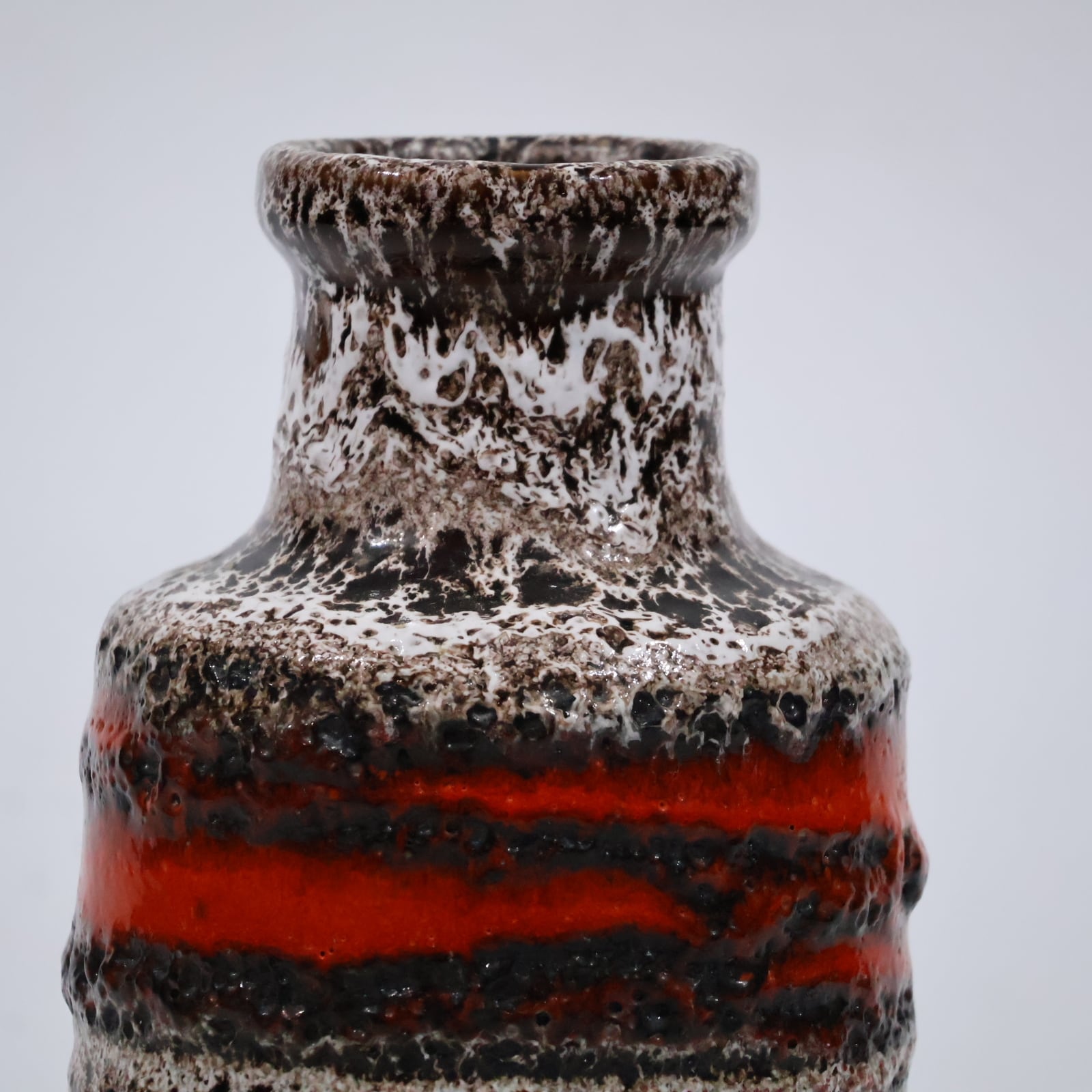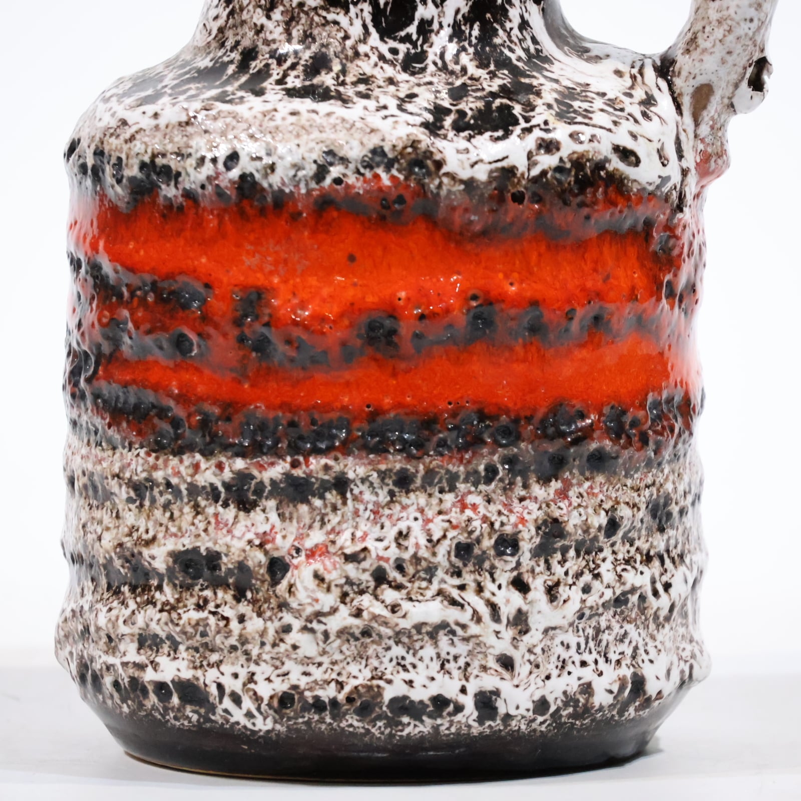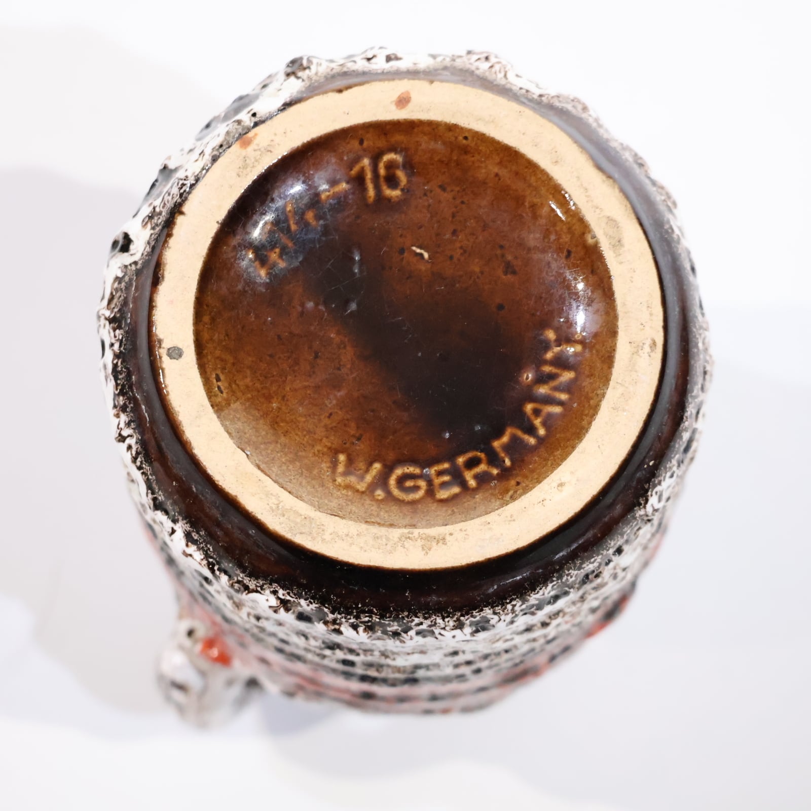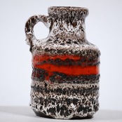 同社は急速に成長し、1950~80年代には陶 器製造の分野でドイツ最大のメーカーとなり、今日も確固たる地位を維持しています。形状に加えて釉薬でも、当時は最も幅広い品揃えを誇った他、輸出量も最大だったため、現在でも同社の製品はよく見られます。特に円筒形を基調にし たシンプルな形状で、型押し模様のある床置き 花瓶が代表的。色彩については当時主流だっ た赤やオレンジから、クリーム、ベージュ、茶色 などが多くを占めています。
