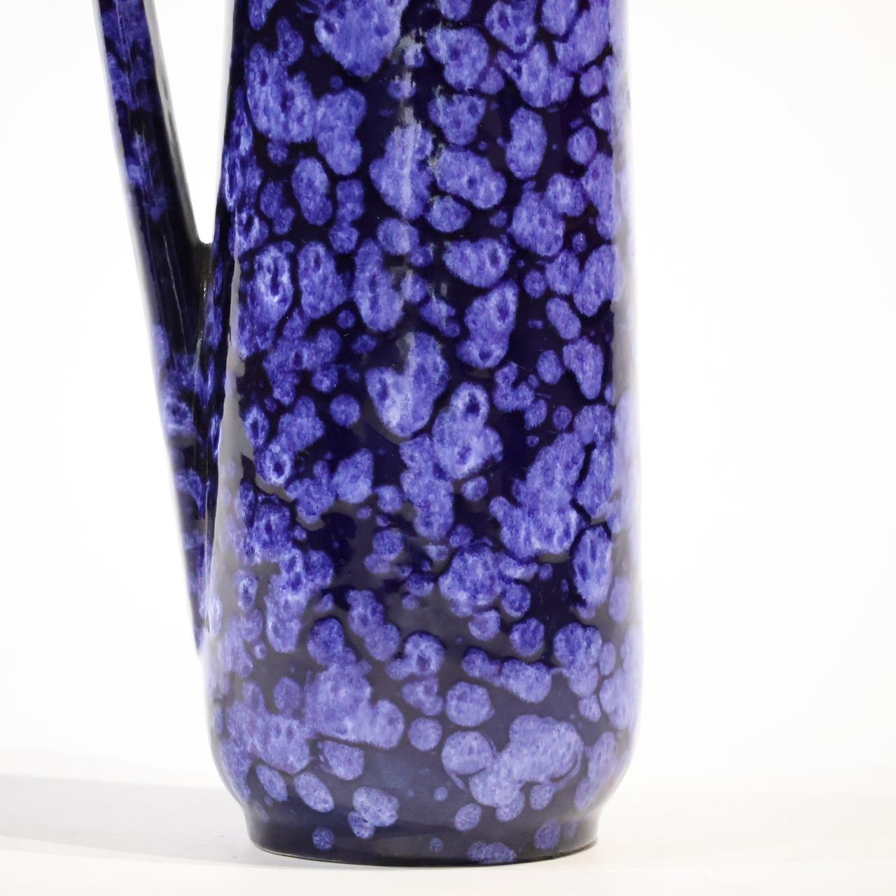 縦に伸びる端正なフォルムとシャープなハンドルが、華やかな釉調を引き締めています。