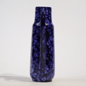 同社は急速に成長し、1950~80年代には陶 器製造の分野でドイツ最大のメーカーとなり、今日も確固たる地位を維持しています。形状に加えて釉薬でも、当時は最も幅広い品揃えを誇った他、輸出量も最大だったため、現在でも同社の製品はよく見られます。特に円筒形を基調にし たシンプルな形状で、型押し模様のある床置き 花瓶が代表的。色彩については当時主流だっ た赤やオレンジから、クリーム、ベージュ、茶色 などが多くを占めています。