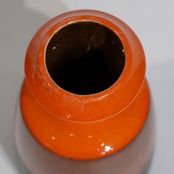 鮮やかなオレンジの光沢釉が特徴的。