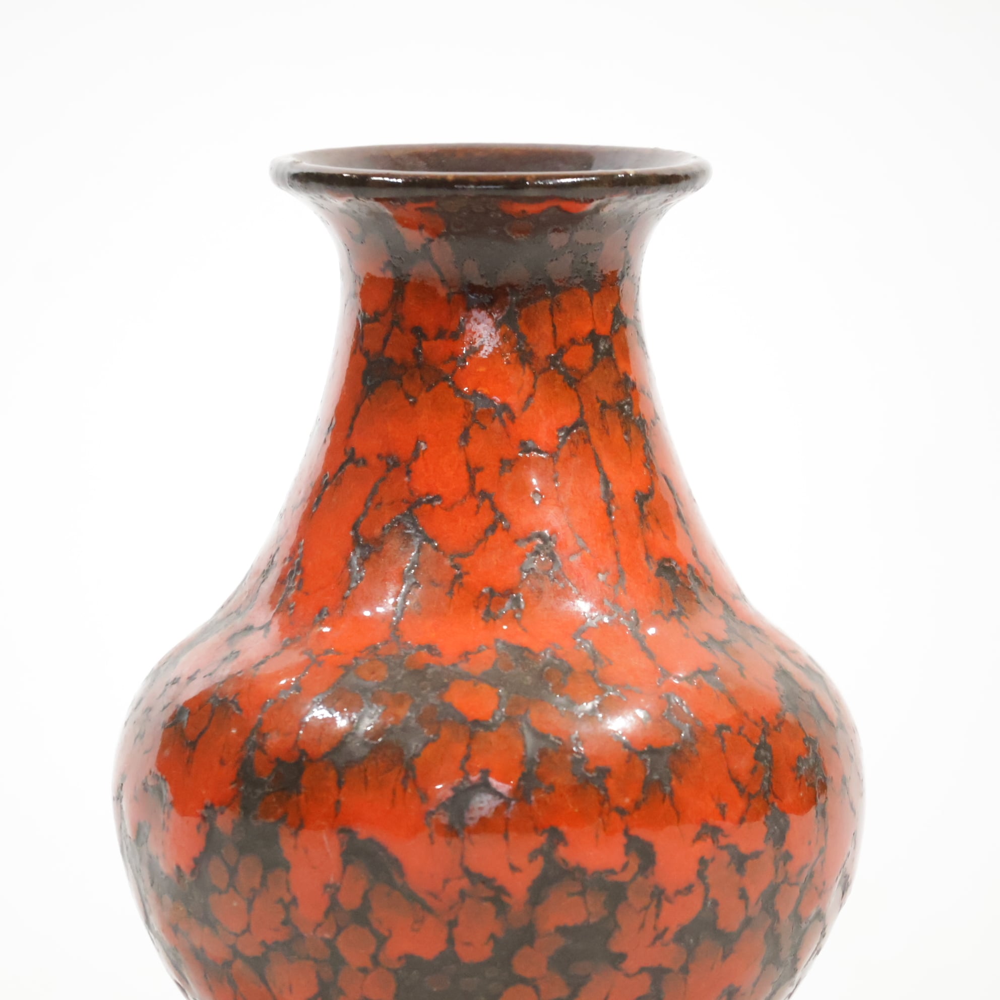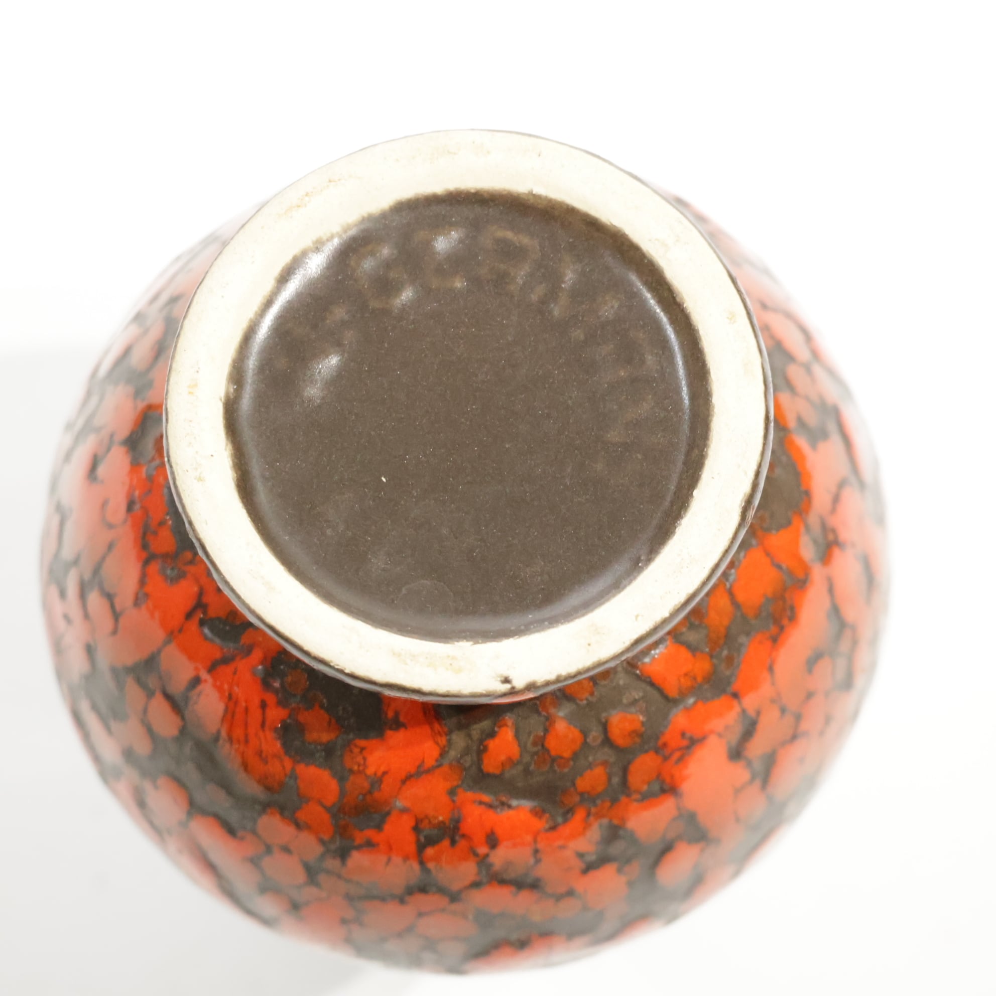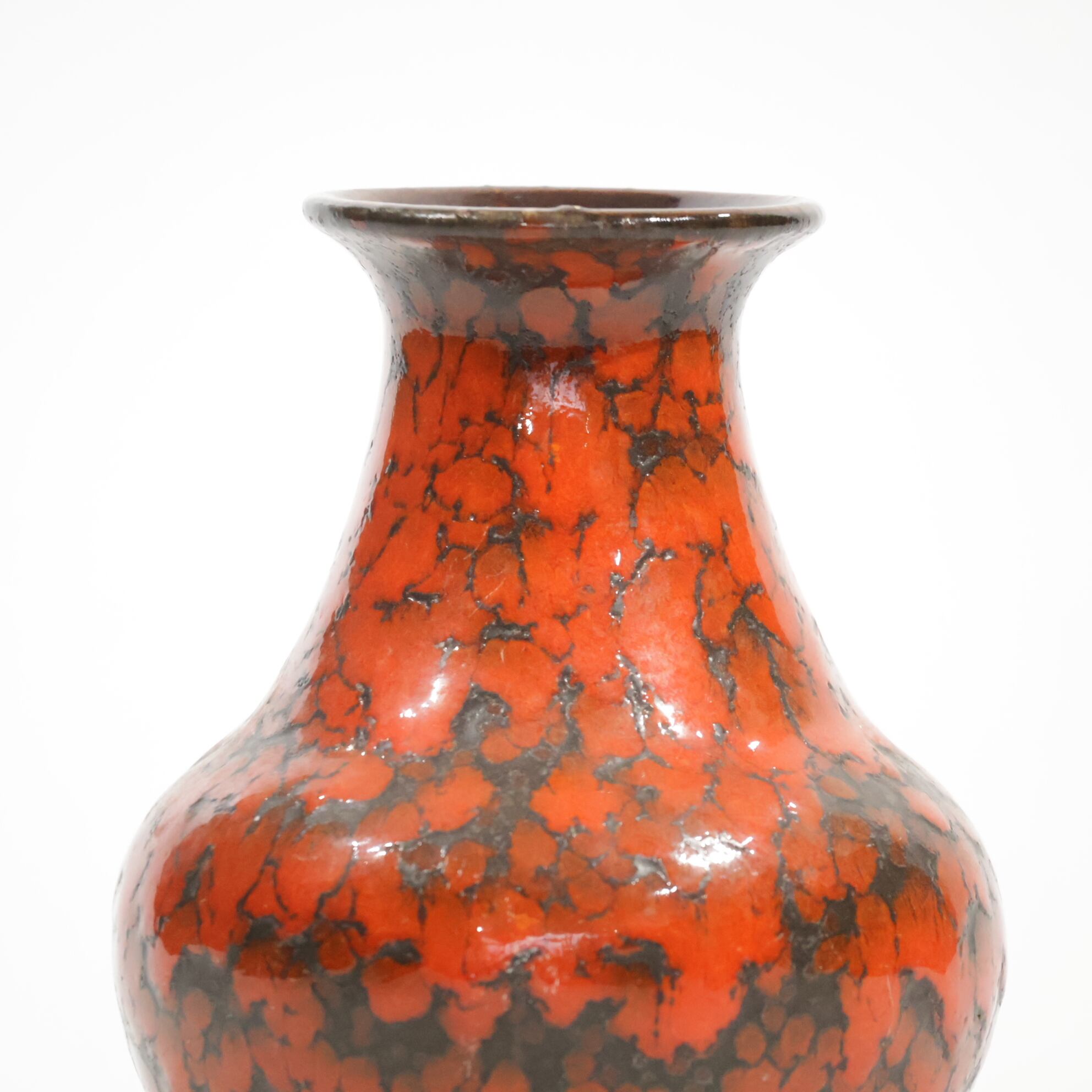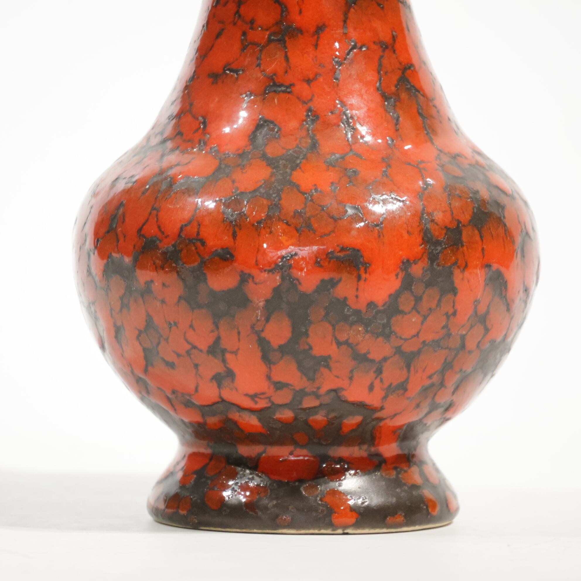 1960年代からのスタイルとしては、 当時広く流行していた色彩の釉薬(マットまたは 光沢あり)を使用し、シンプルなフォルムの上に様 式化した花の図柄の型押しや幾何学模様をあし らったものが多く、Scheurichのも のと混同されがちです。
