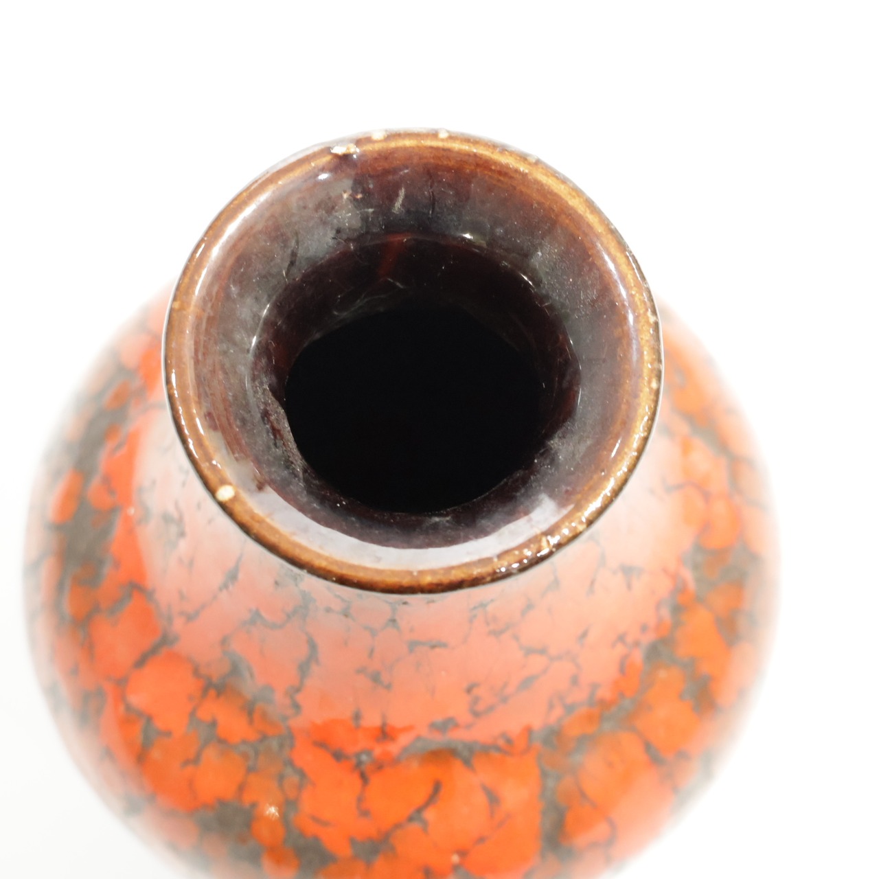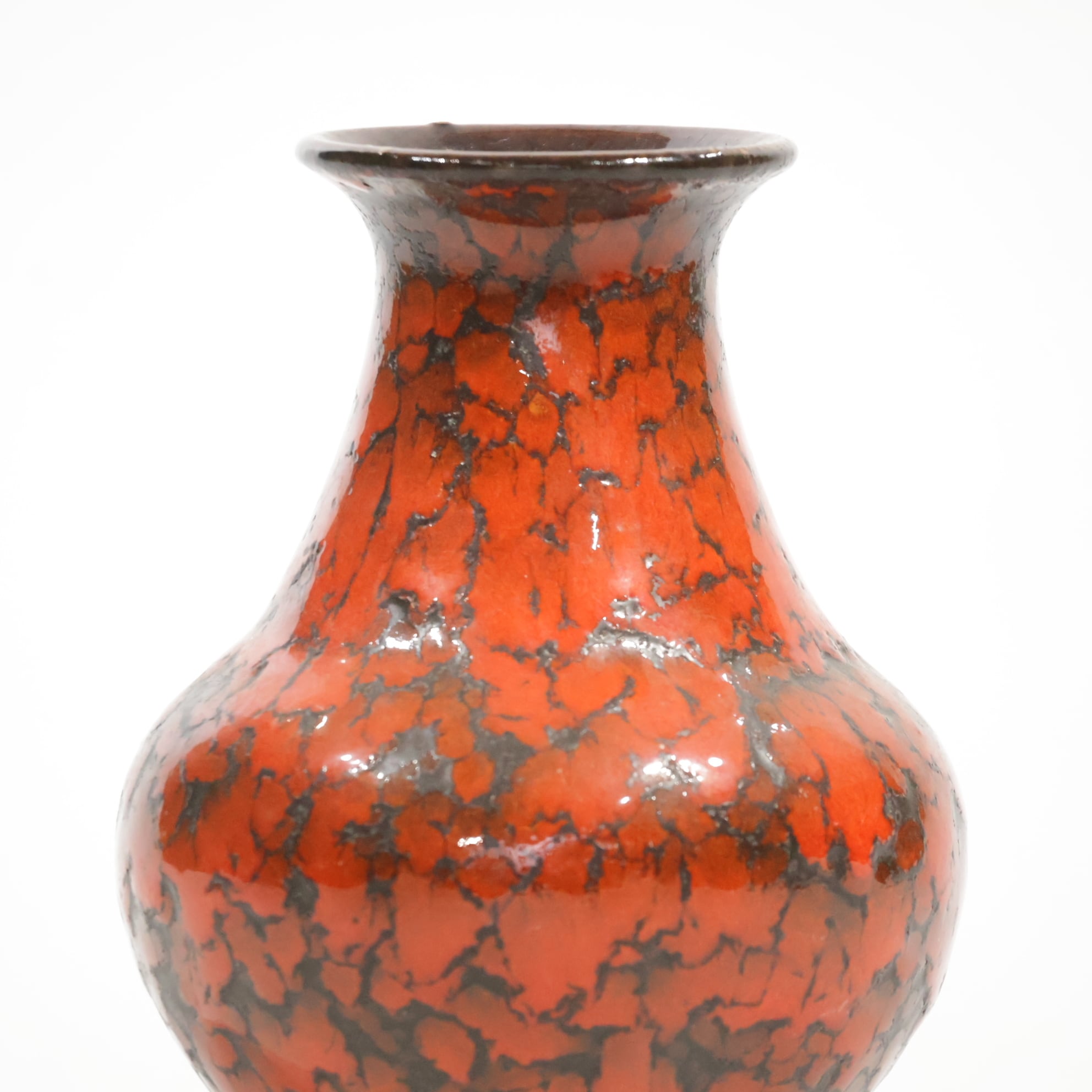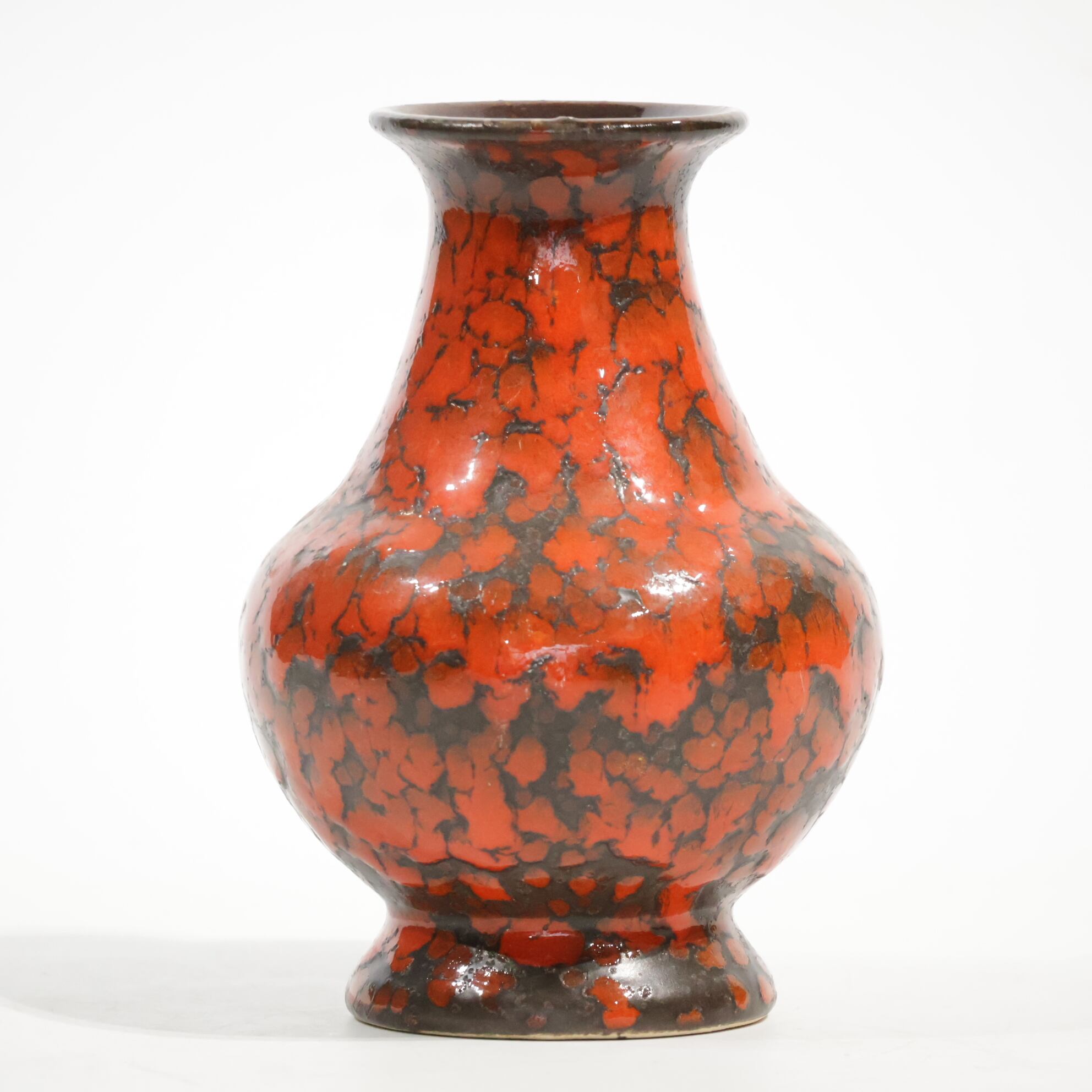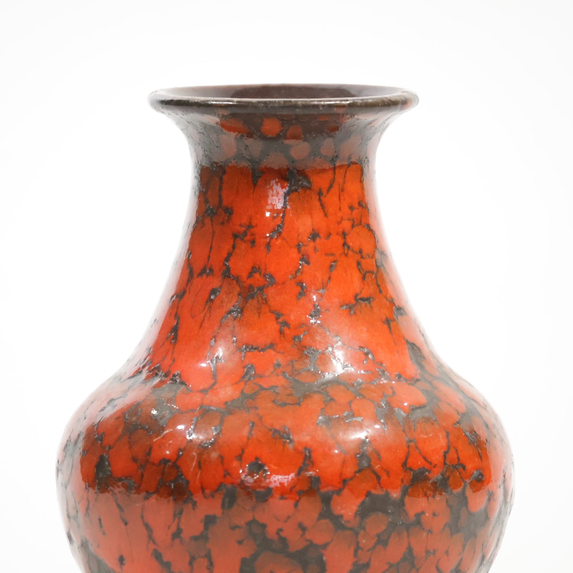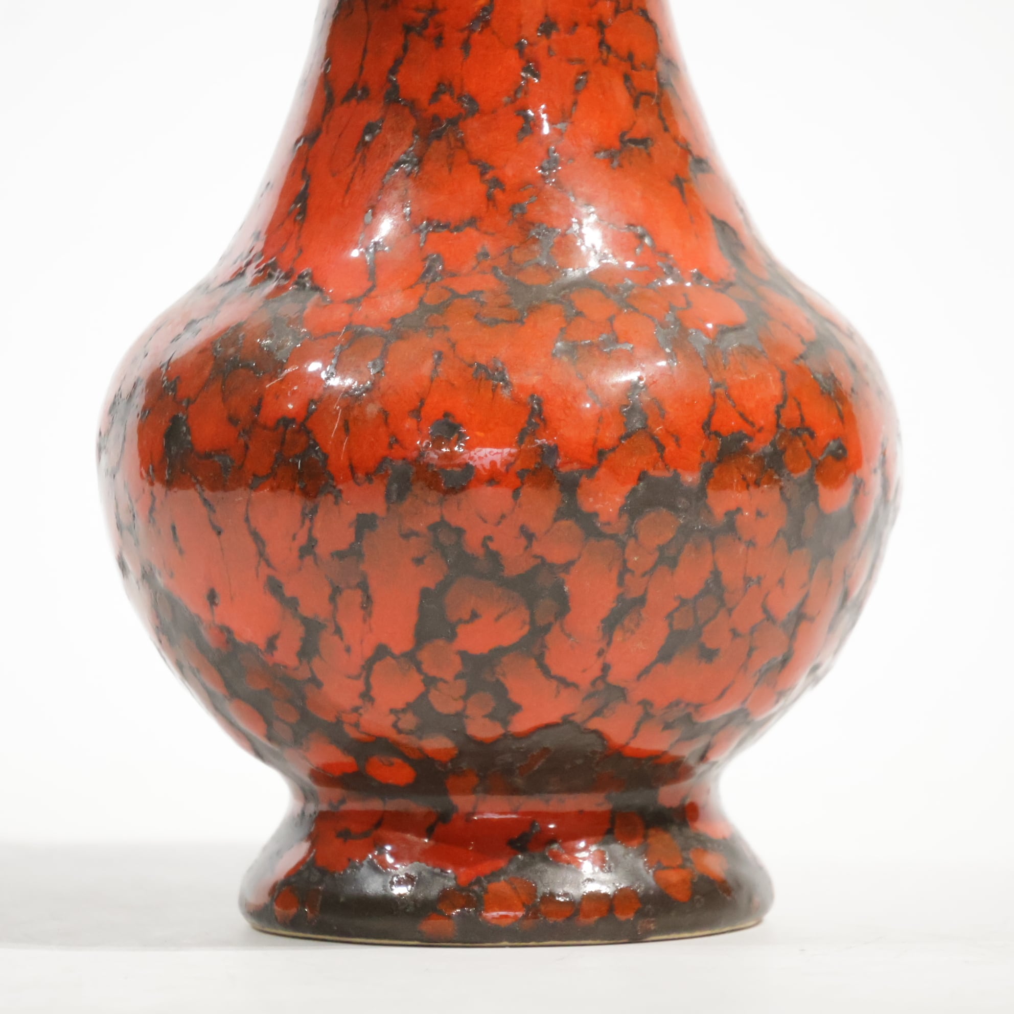 1960年代からのスタイルとしては、 当時広く流行していた色彩の釉薬(マットまたは 光沢あり)を使用し、シンプルなフォルムの上に様 式化した花の図柄の型押しや幾何学模様をあし らったものが多く、Scheurichのも のと混同されがちです。