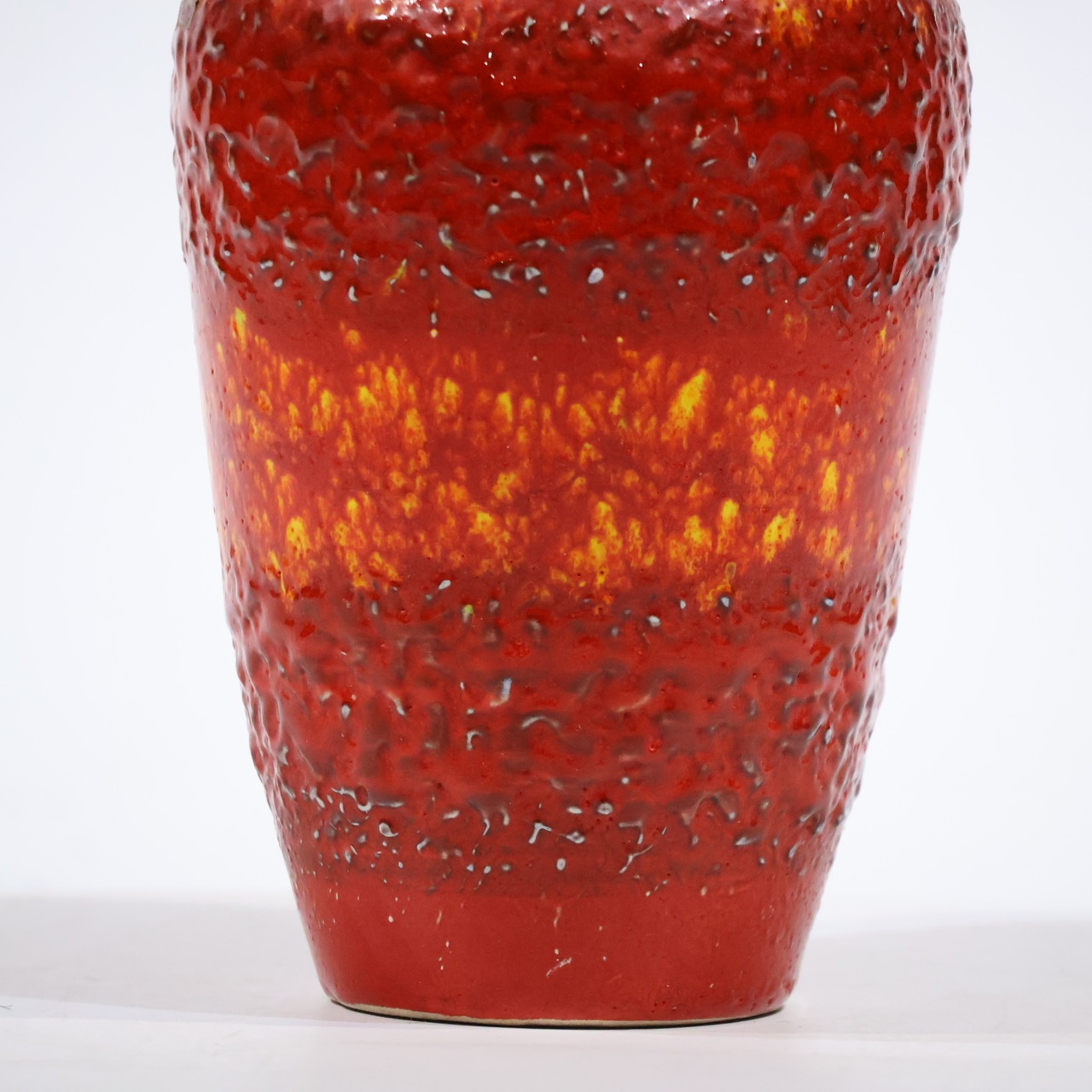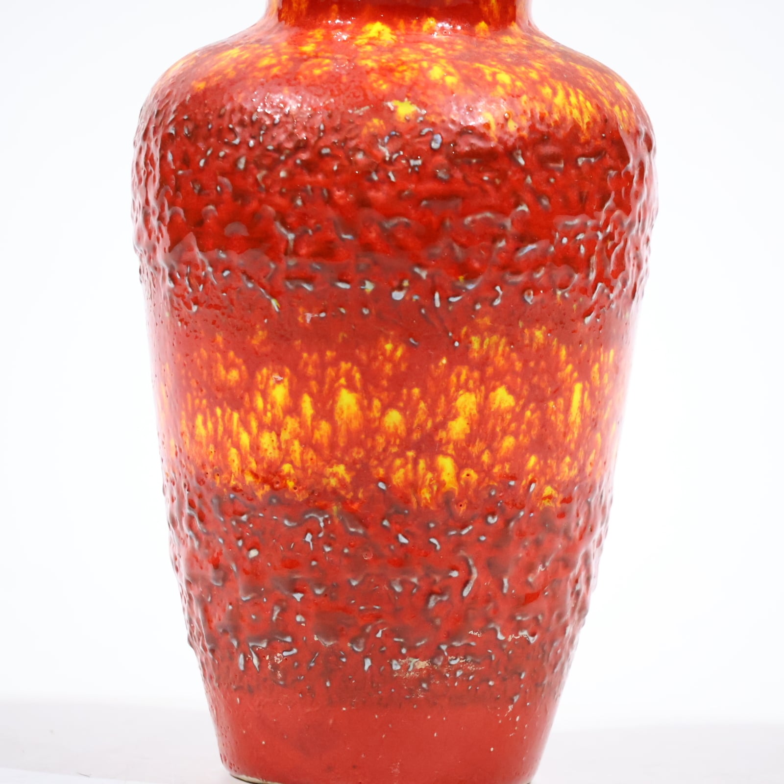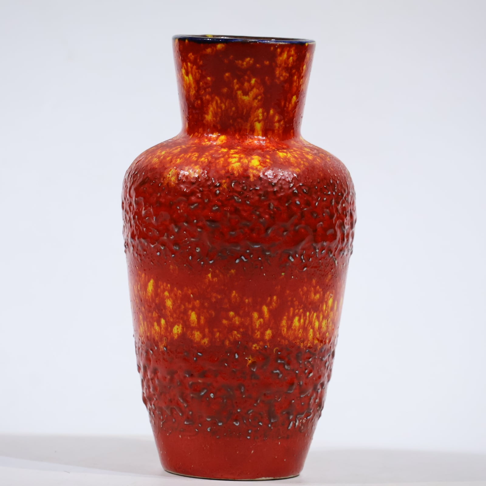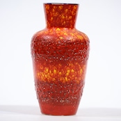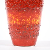 同社は急速に成長し、1950~80年代には陶 器製造の分野でドイツ最大のメーカーとなり、今日も確固たる地位を維持しています。形状に加えて釉薬でも、当時は最も幅広い品揃えを誇った他、輸出量も最大だったため、現在でも同社の製品はよく見られます。特に円筒形を基調にし たシンプルな形状で、型押し模様のある床置き 花瓶が代表的。色彩については当時主流だっ た赤やオレンジから、クリーム、ベージュ、茶色 などが多くを占めています。
