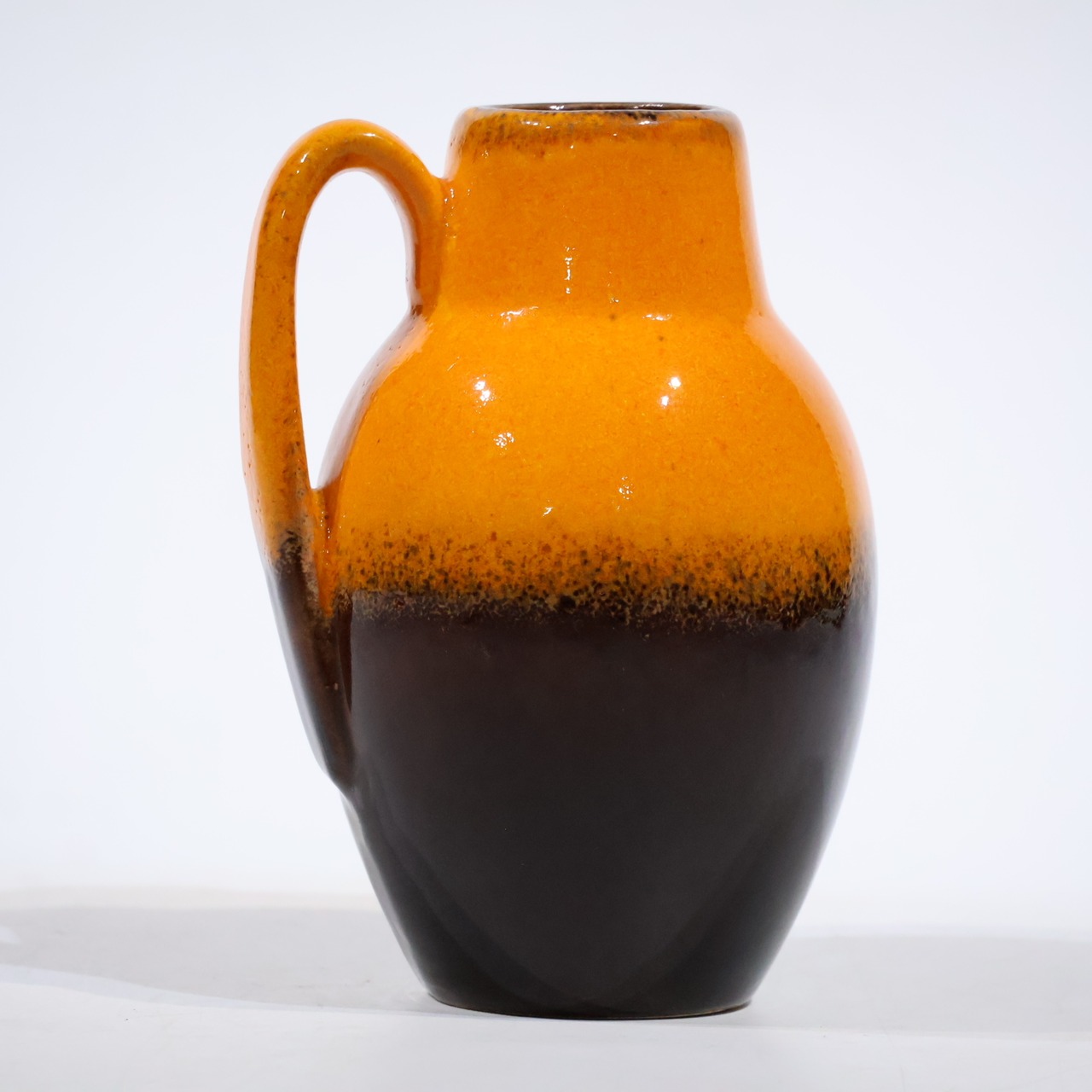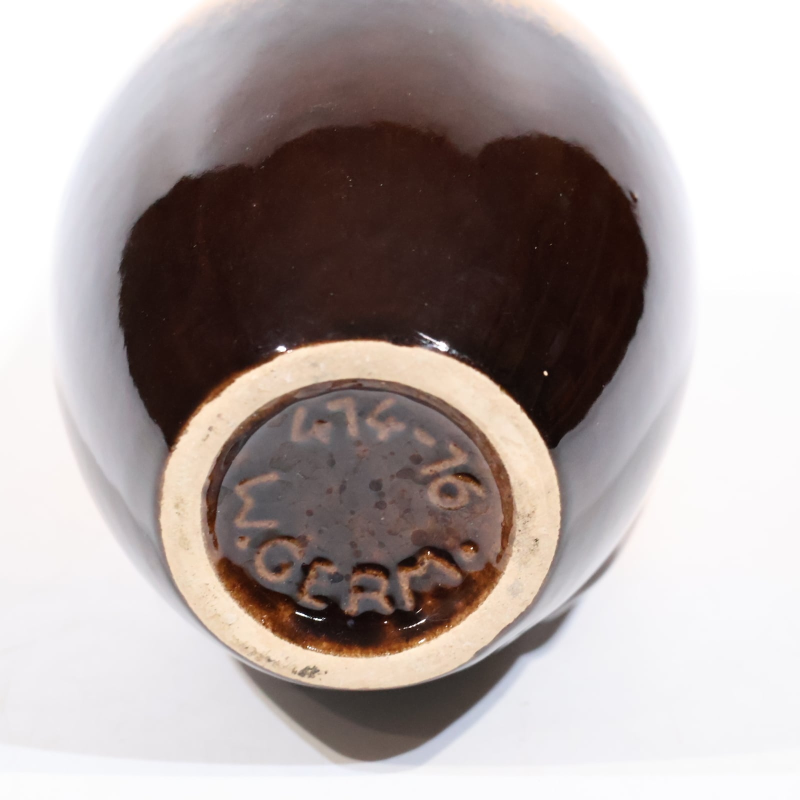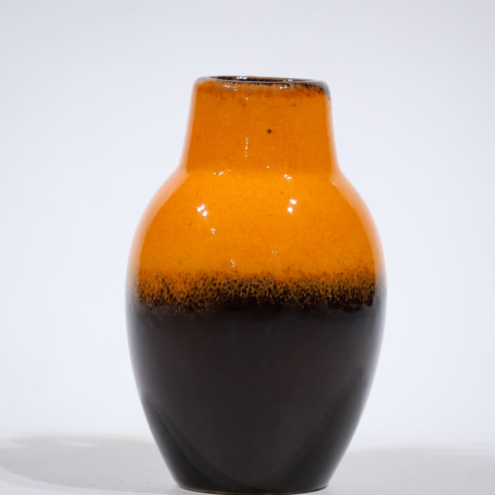 同社は急速に成長し、1950~80年代には陶 器製造の分野でドイツ最大のメーカーとなり、今日も確固たる地位を維持しています。形状に加えて釉薬でも、当時は最も幅広い品揃えを誇った他、輸出量も最大だったため、現在でも同社の製品はよく見られます。特に円筒形を基調にし たシンプルな形状で、型押し模様のある床置き 花瓶が代表的。色彩については当時主流だっ た赤やオレンジから、クリーム、ベージュ、茶色 などが多くを占めています。