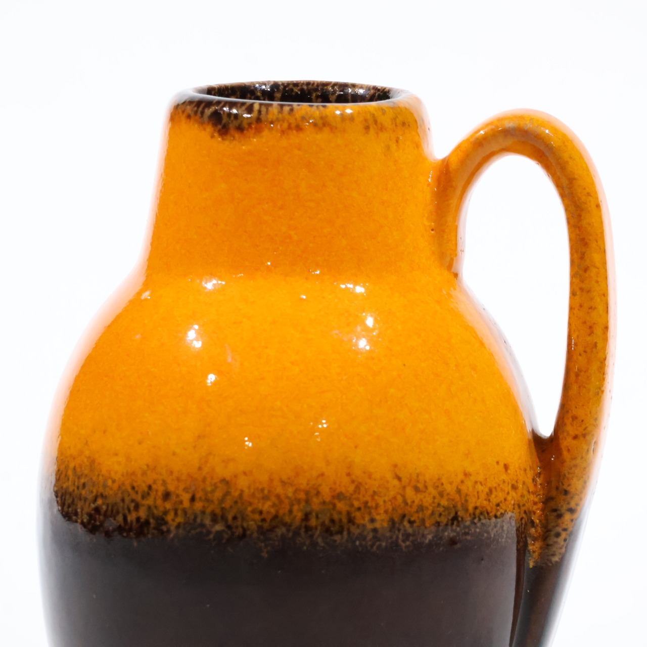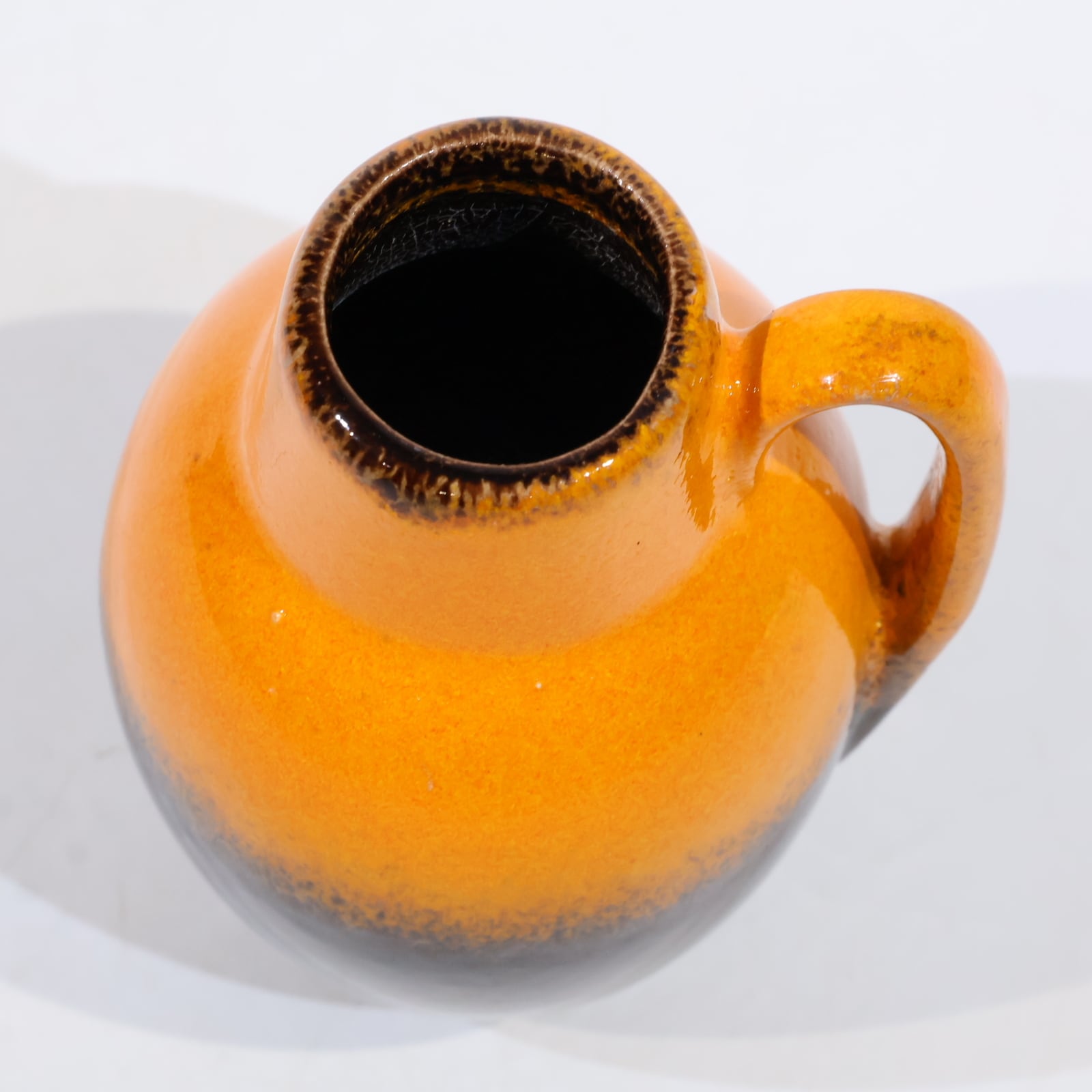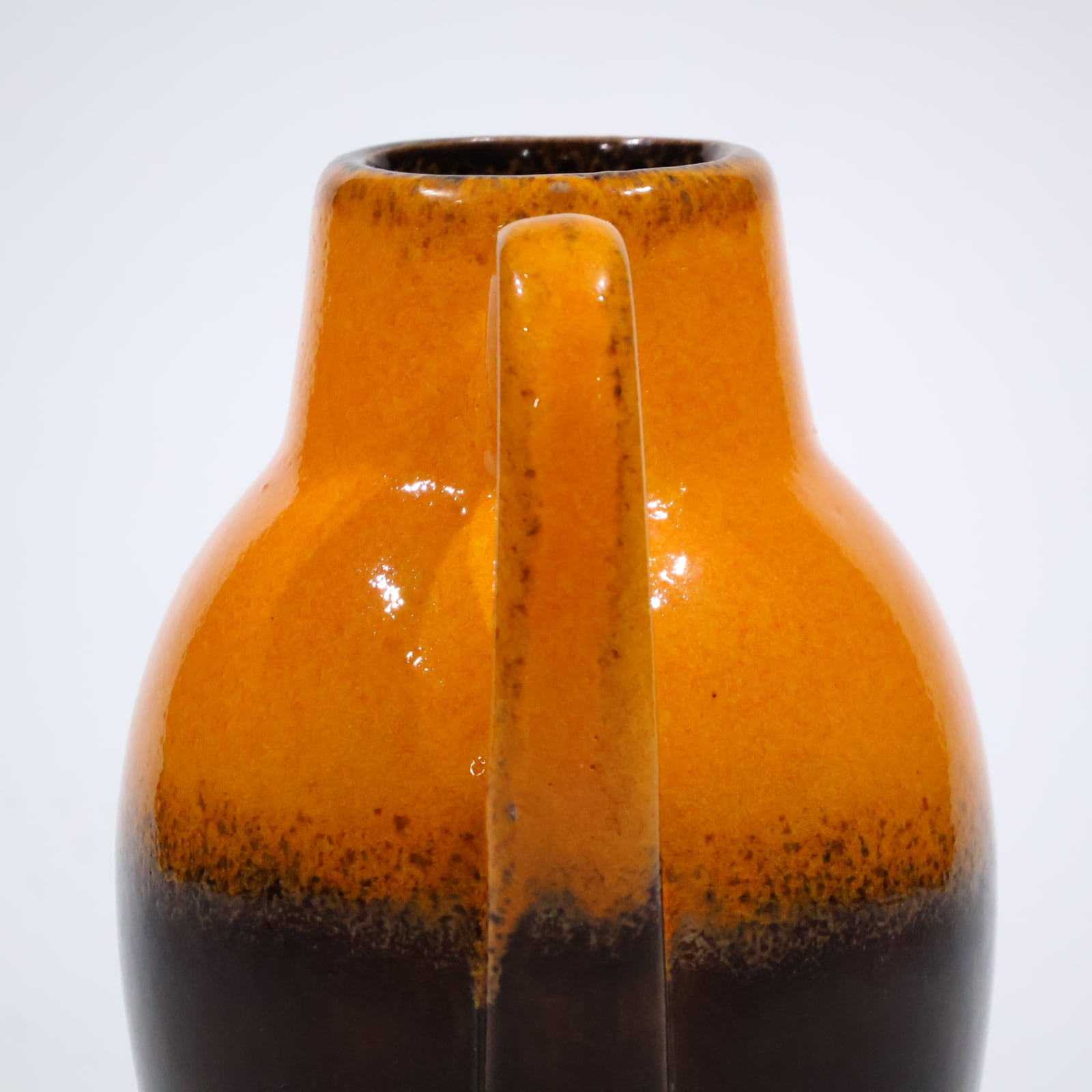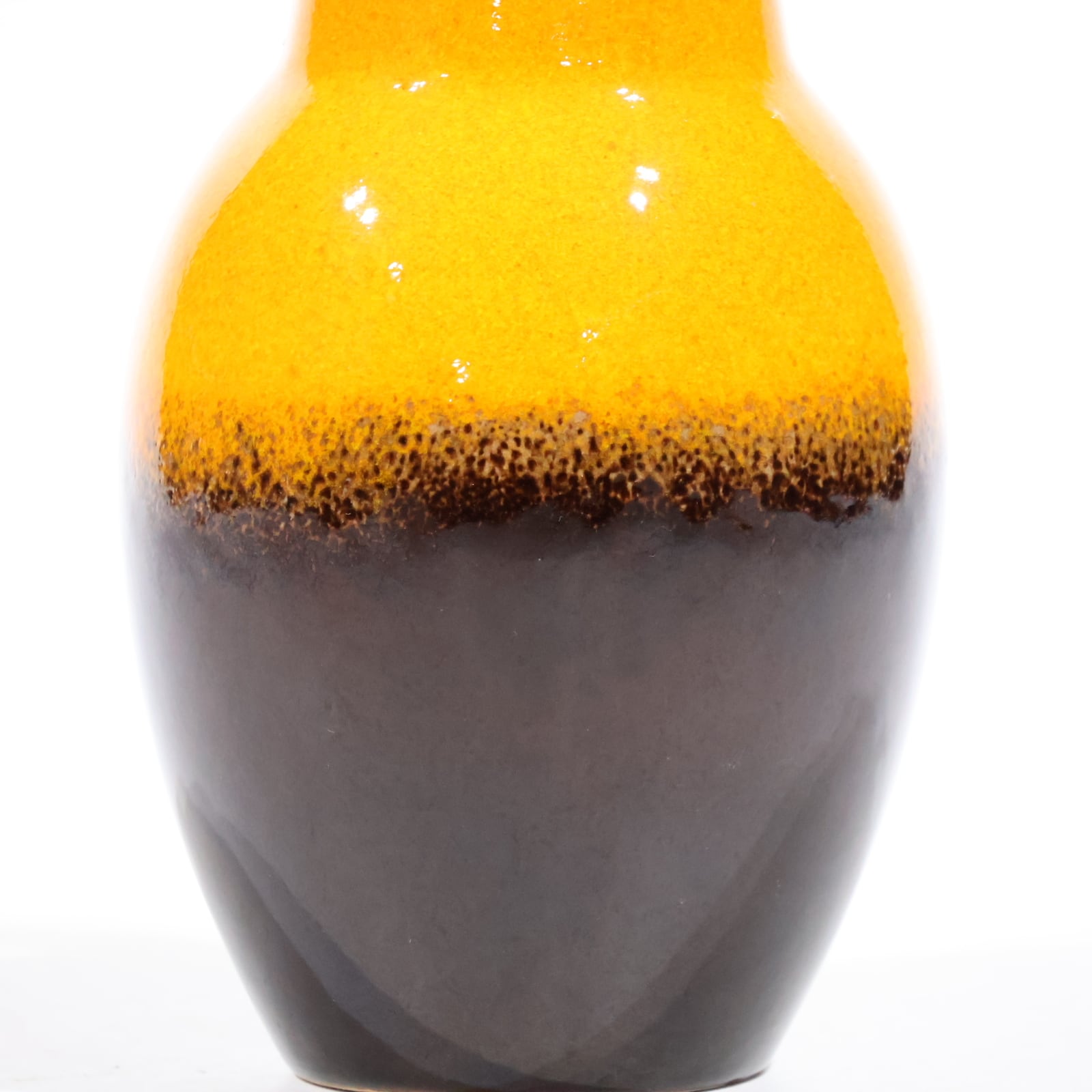同社は急速に成長し、1950~80年代には陶 器製造の分野でドイツ最大のメーカーとなり、今日も確固たる地位を維持しています。形状に加えて釉薬でも、当時は最も幅広い品揃えを誇った他、輸出量も最大だったため、現在でも同社の製品はよく見られます。特に円筒形を基調にし たシンプルな形状で、型押し模様のある床置き 花瓶が代表的。色彩については当時主流だっ た赤やオレンジから、クリーム、ベージュ、茶色 などが多くを占めています。