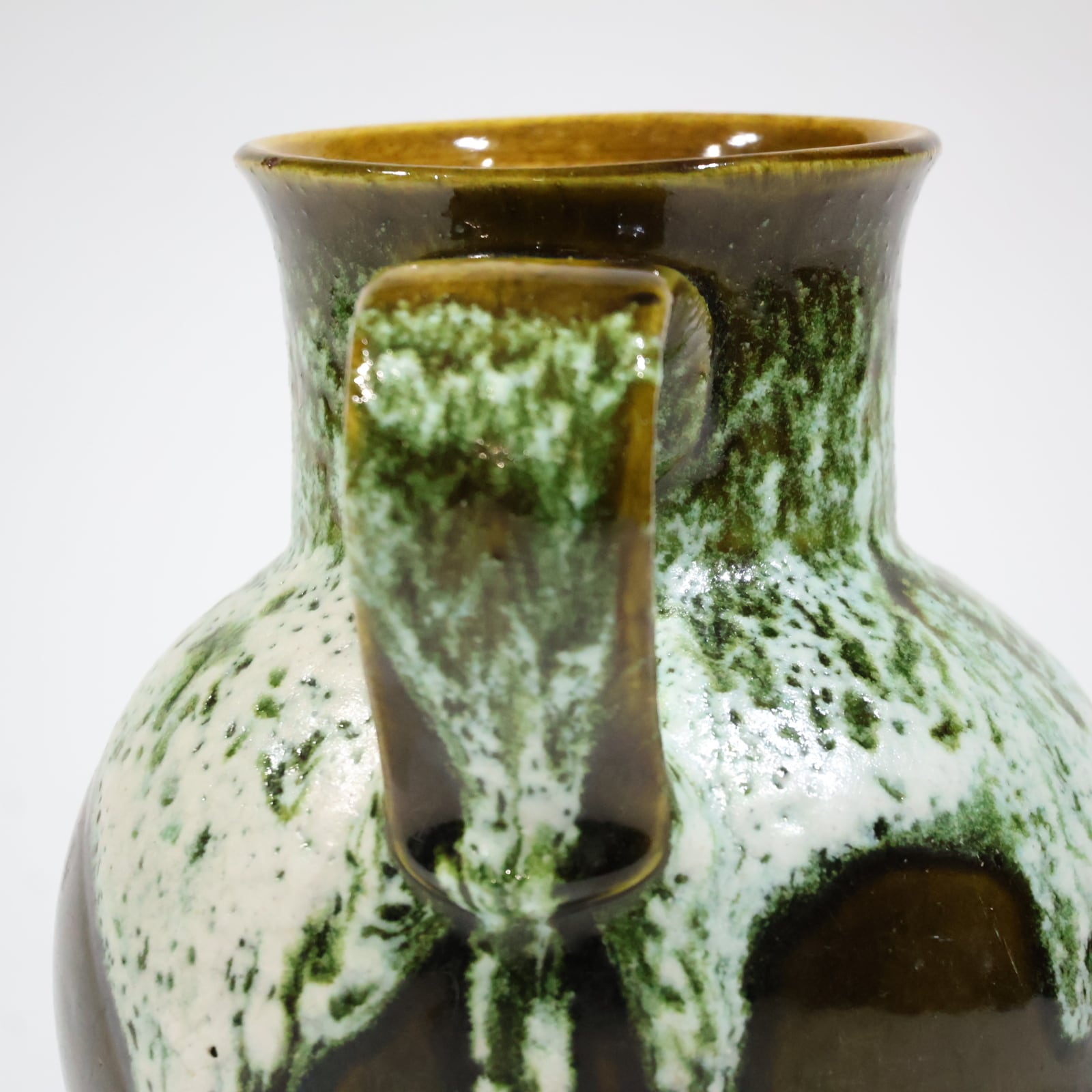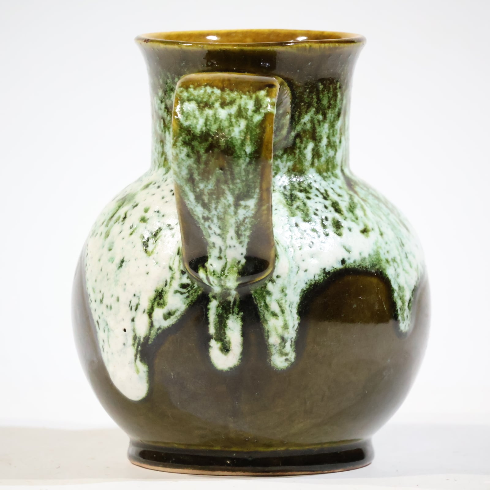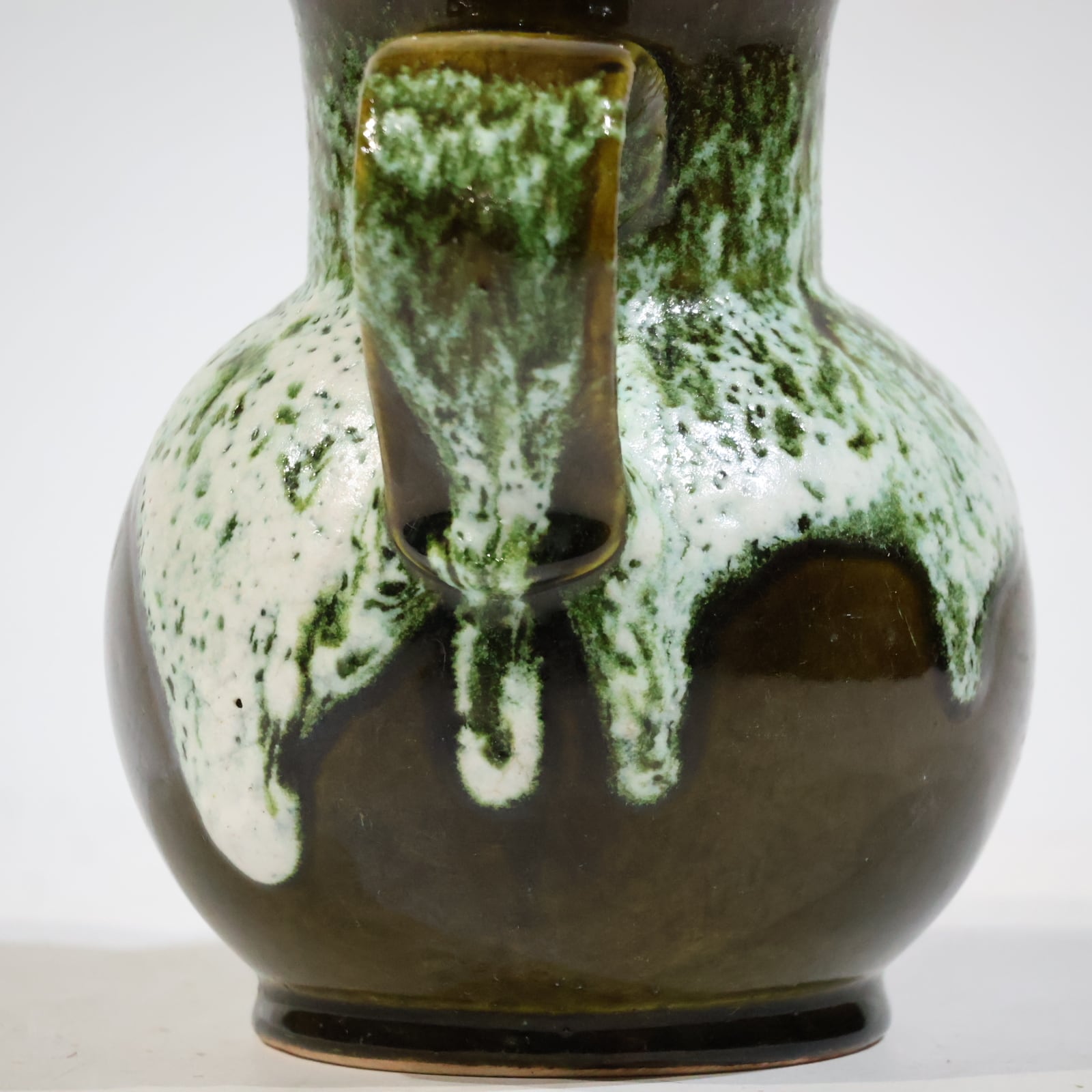 丸みのある胴に、深いオリーブブラウンを基調とした一点。