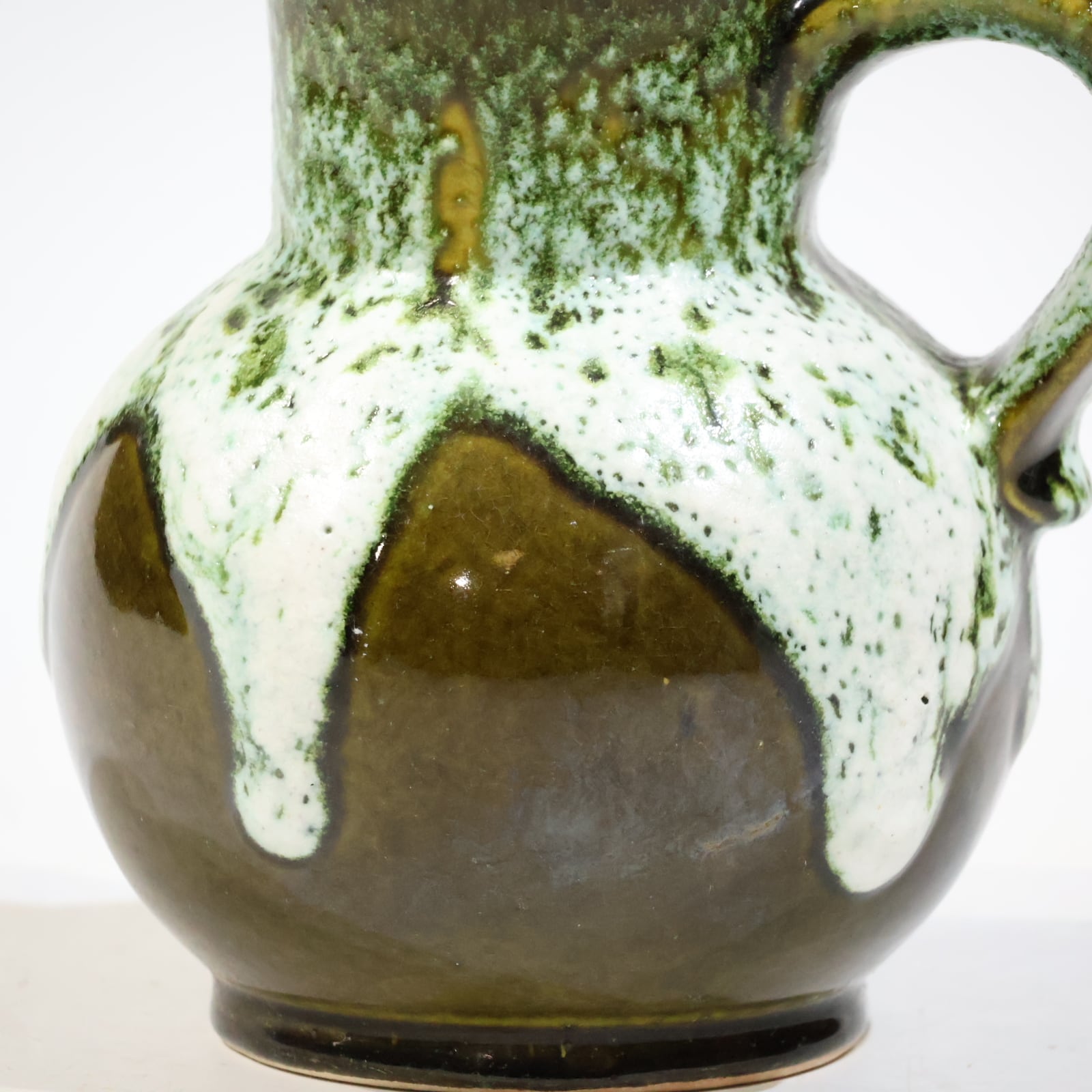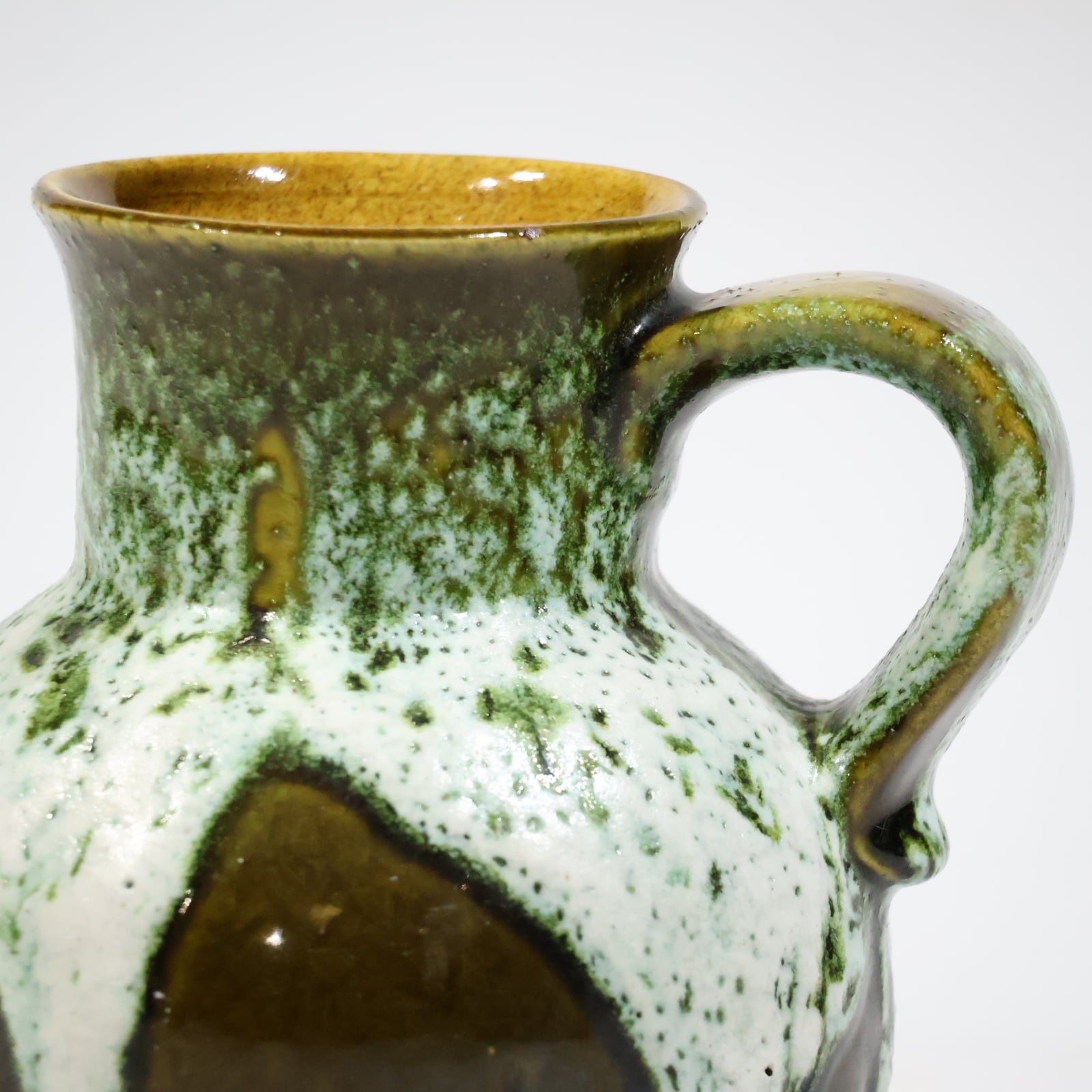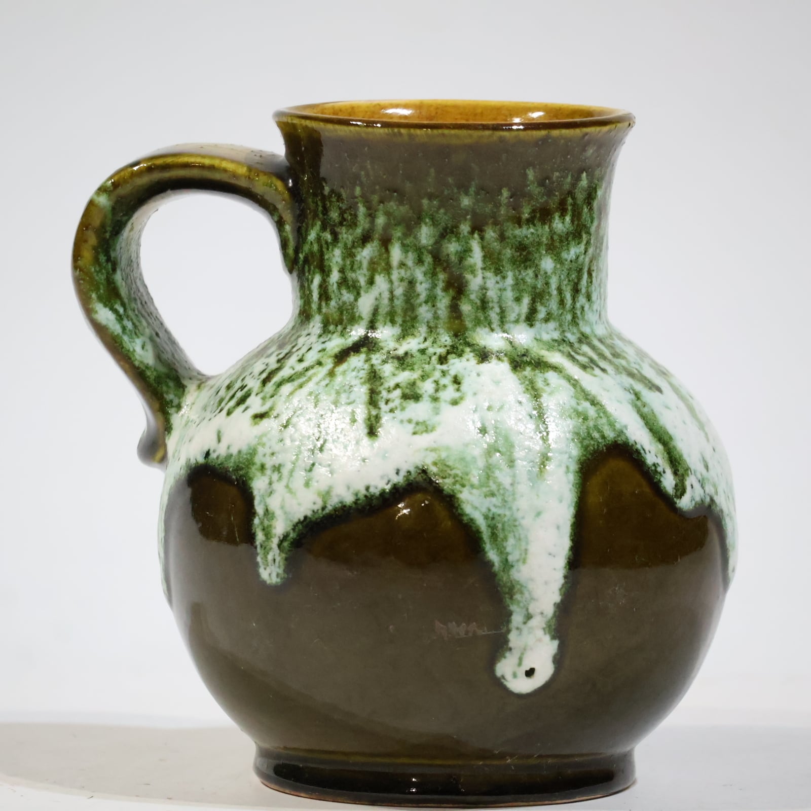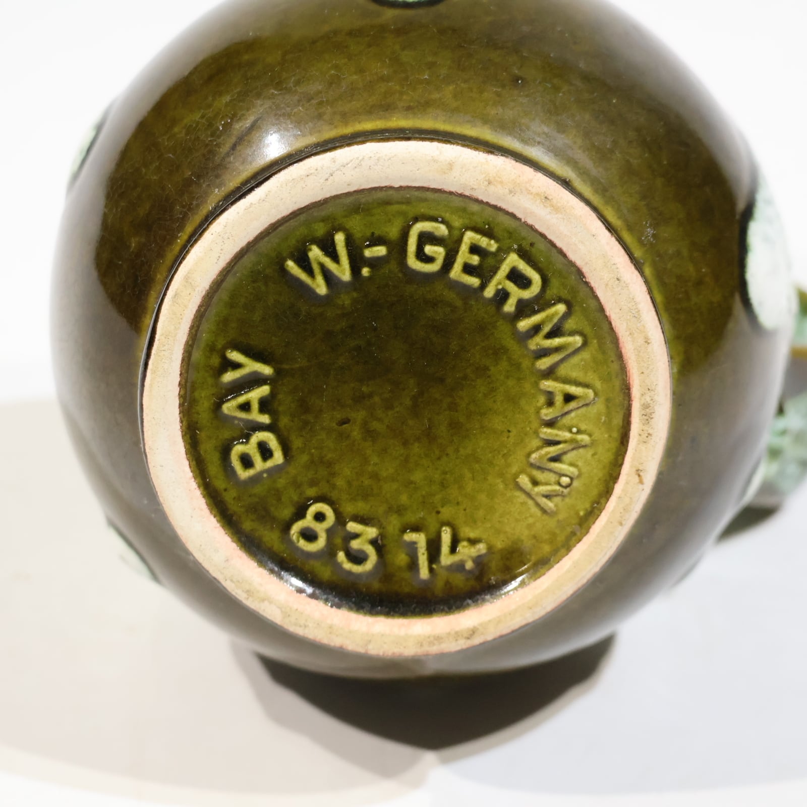 1960年代からのスタイルとしては、 当時広く流行していた色彩の釉薬(マットまたは 光沢あり)を使用し、シンプルなフォルムの上に様 式化した花の図柄の型押しや幾何学模様をあし らったものが多く、Scheurichのも のと混同されがちです。