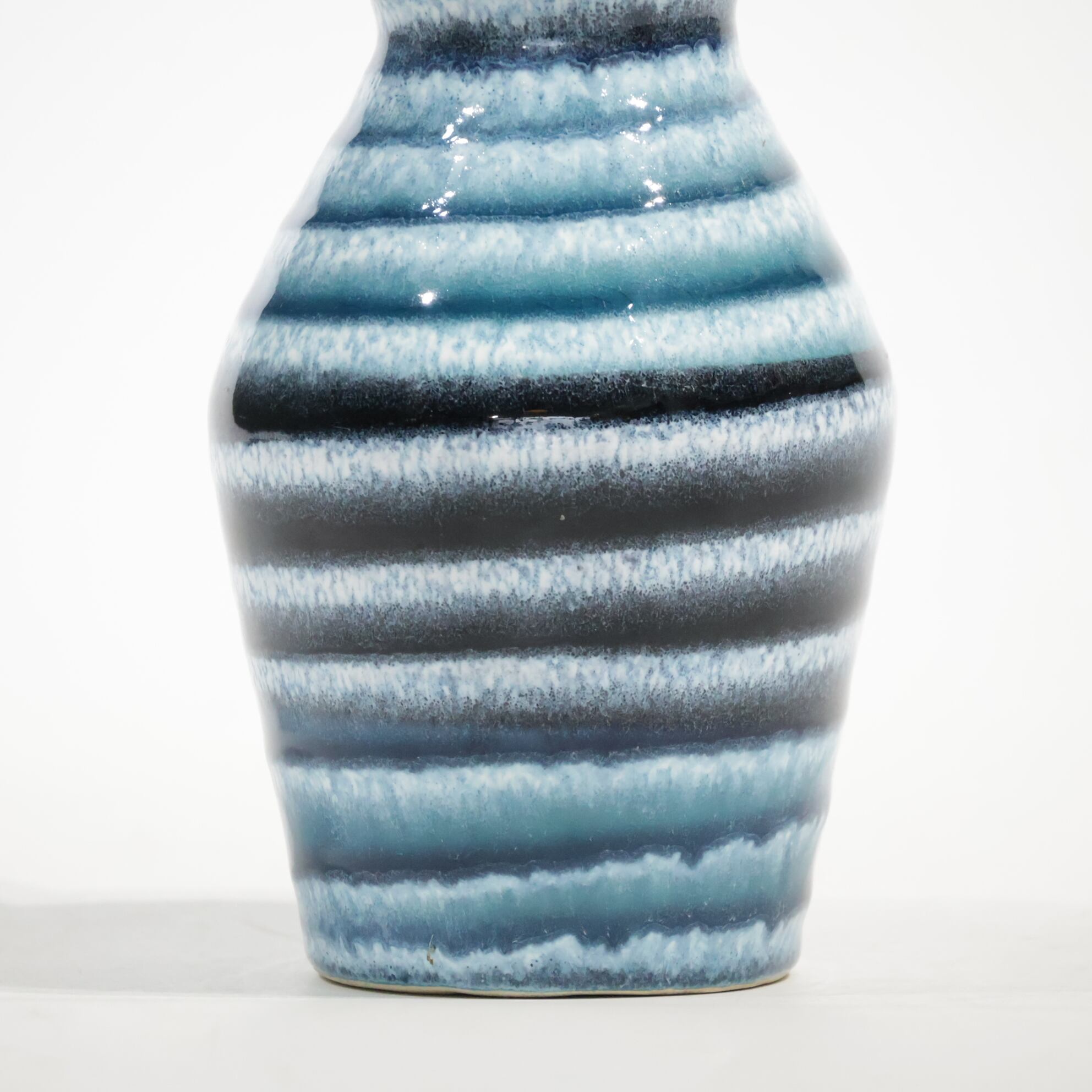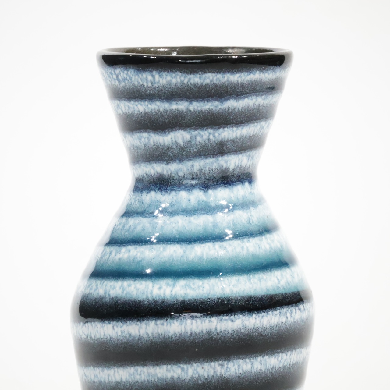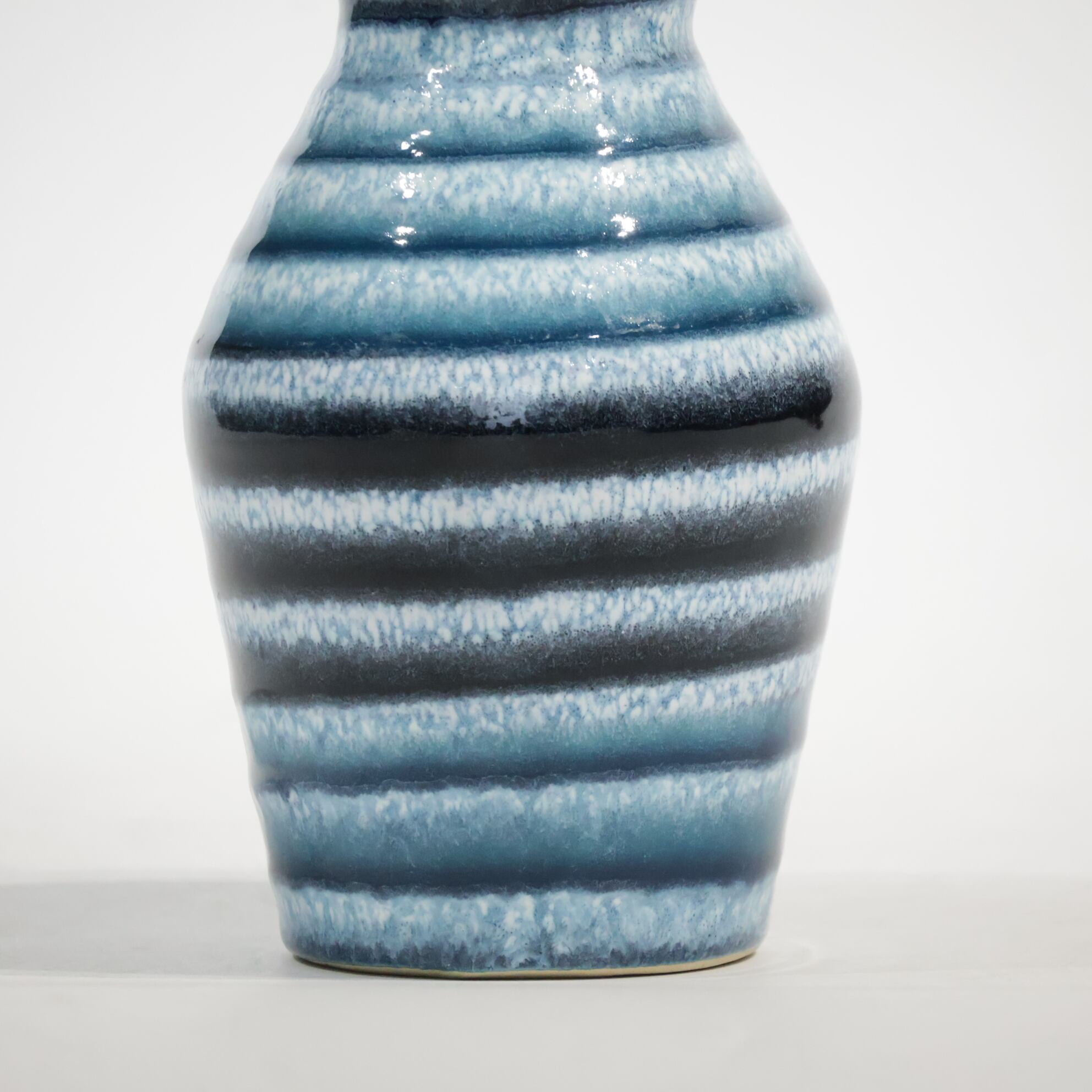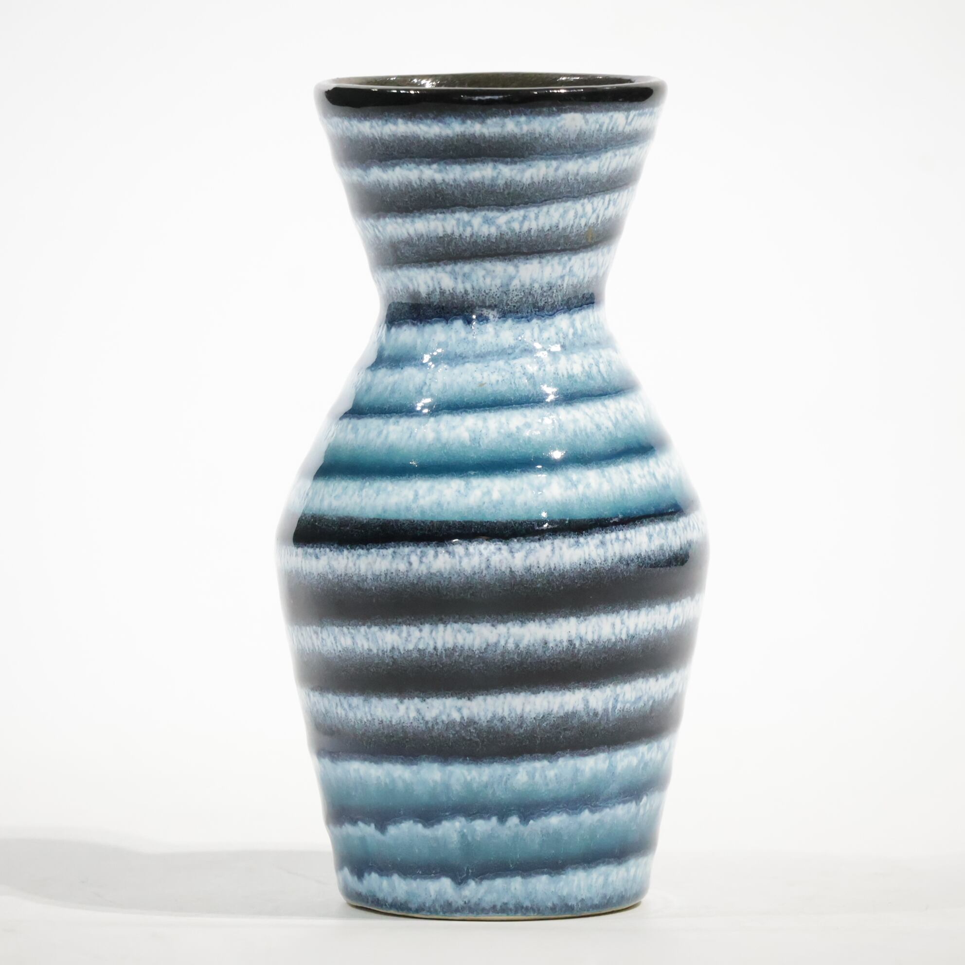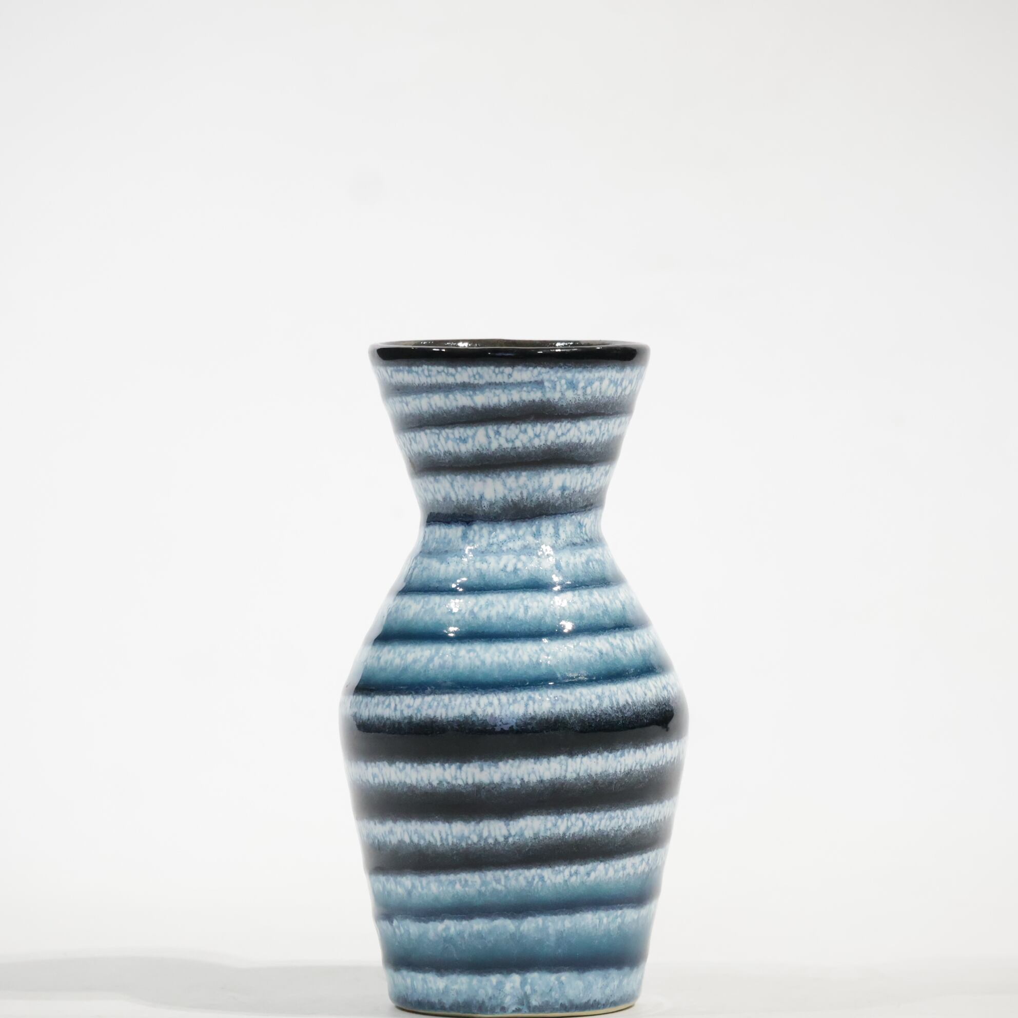 くびれを持つフォルムに、横方向へ連続する帯状の釉薬が施された一点。
