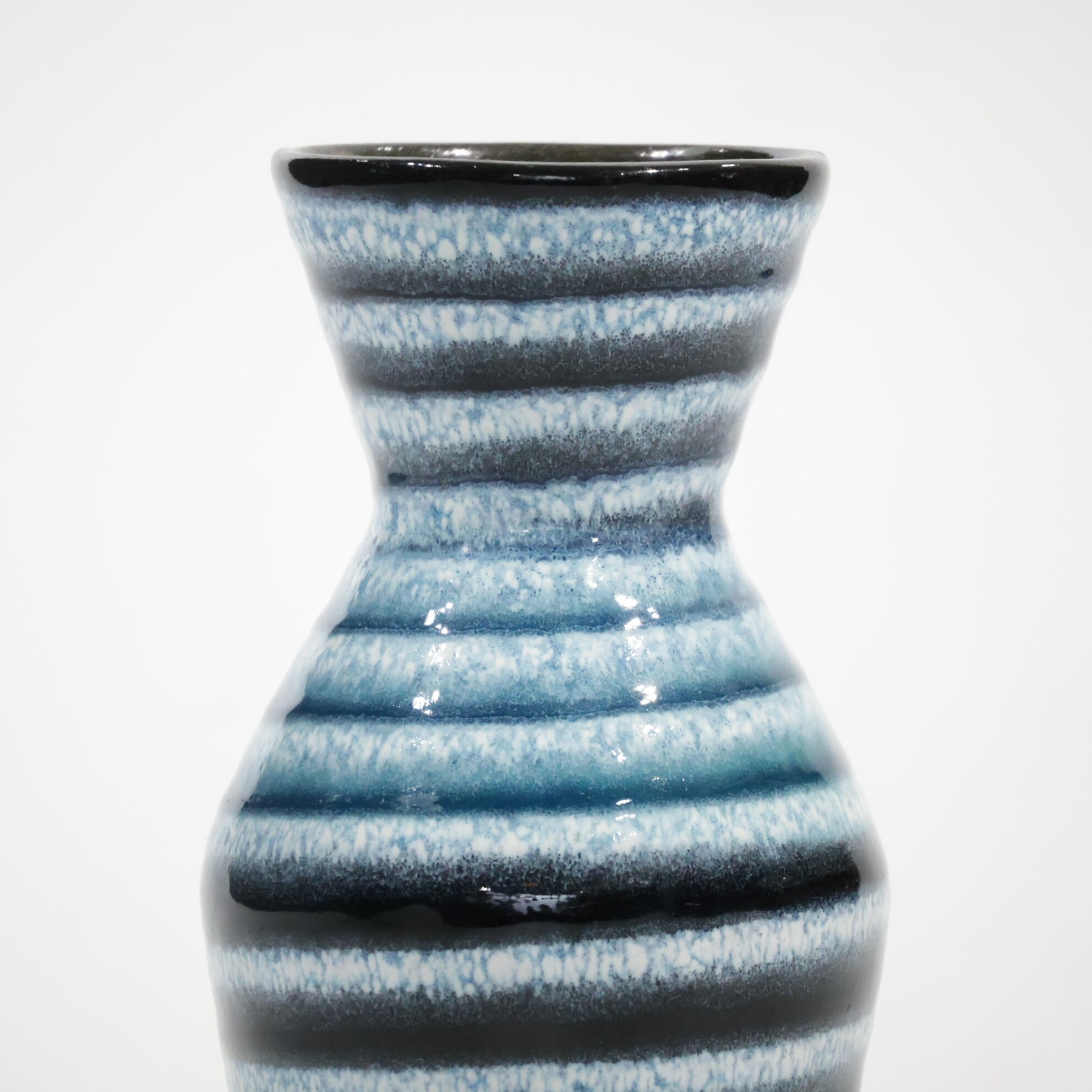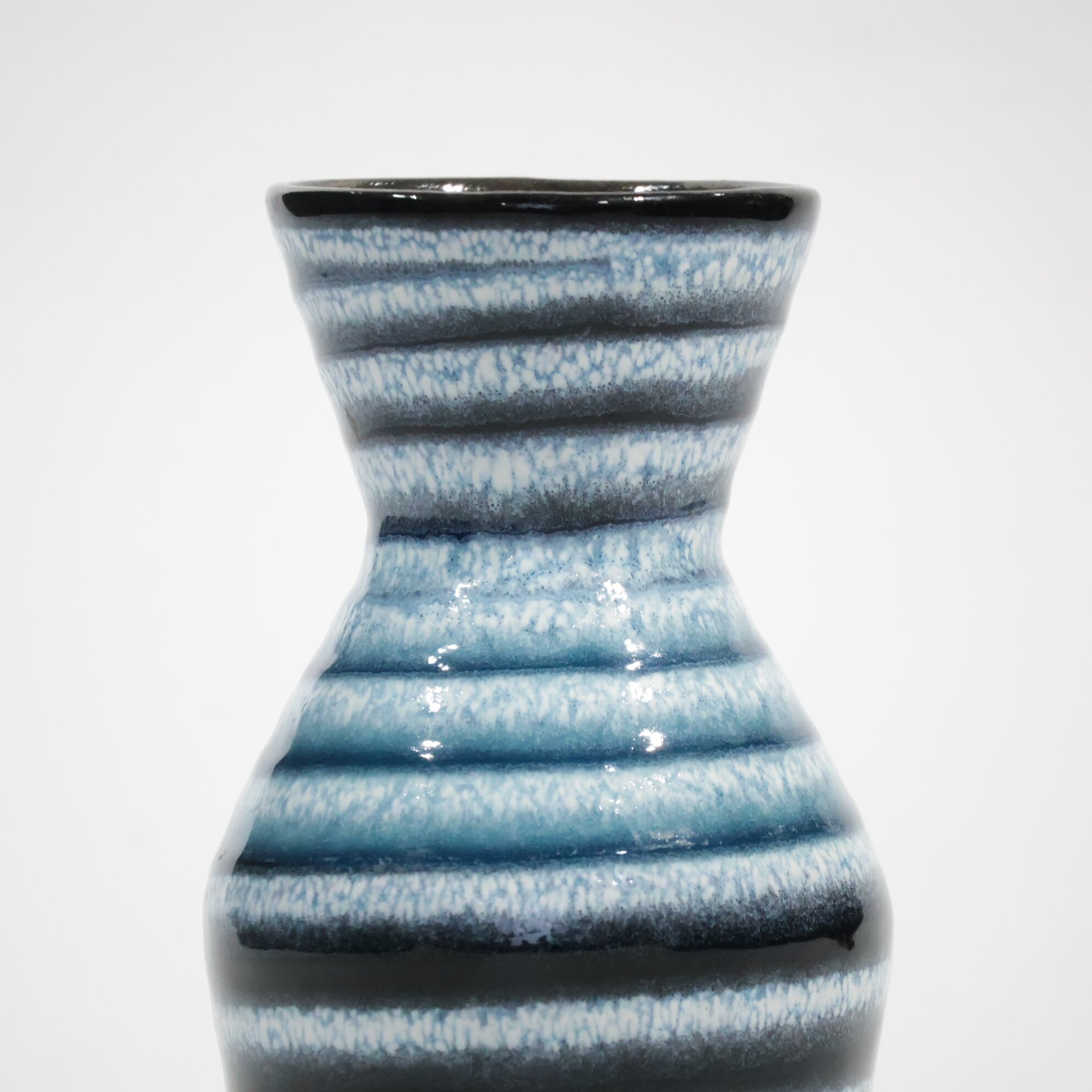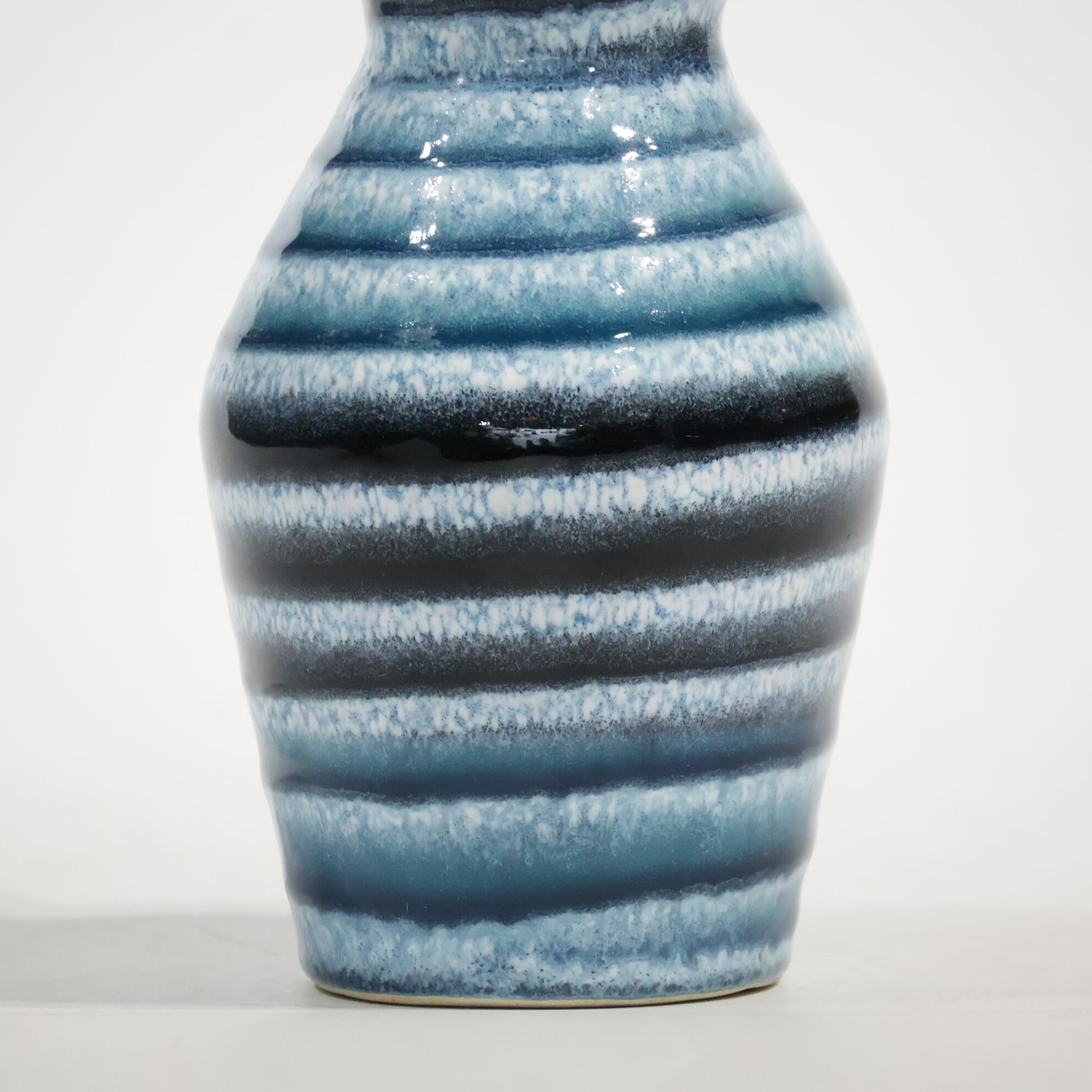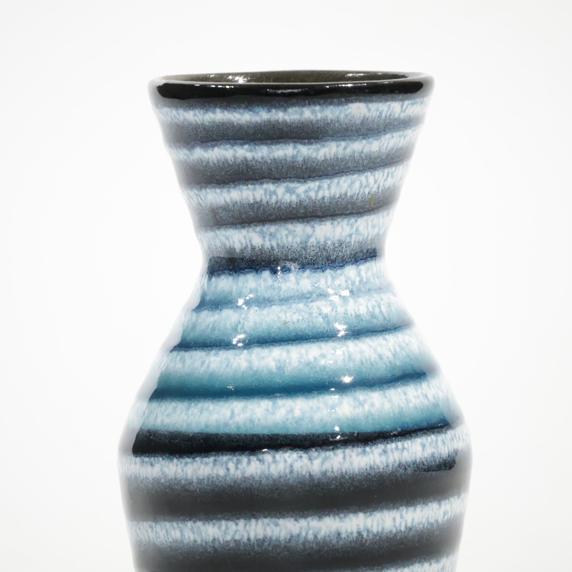 くびれを持つフォルムに、横方向へ連続する帯状の釉薬が施された一点。
