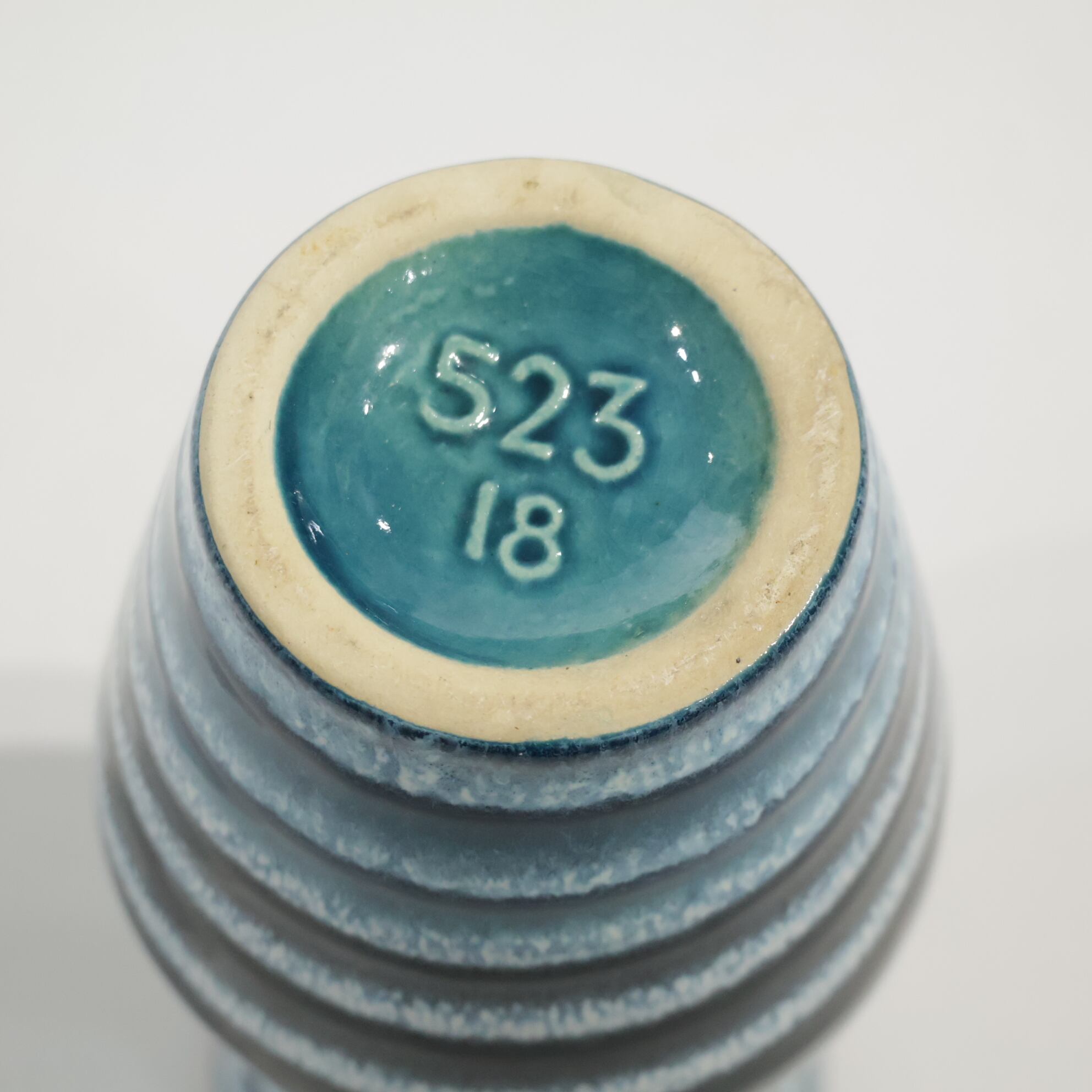 同社は急速に成長し、1950~80年代には陶 器製造の分野でドイツ最大のメーカーとなり、今日も確固たる地位を維持しています。形状に加えて釉薬でも、当時は最も幅広い品揃えを誇った他、輸出量も最大だったため、現在でも同社の製品はよく見られます。特に円筒形を基調にし たシンプルな形状で、型押し模様のある床置き 花瓶が代表的。色彩については当時主流だっ た赤やオレンジから、クリーム、ベージュ、茶色 などが多くを占めています。