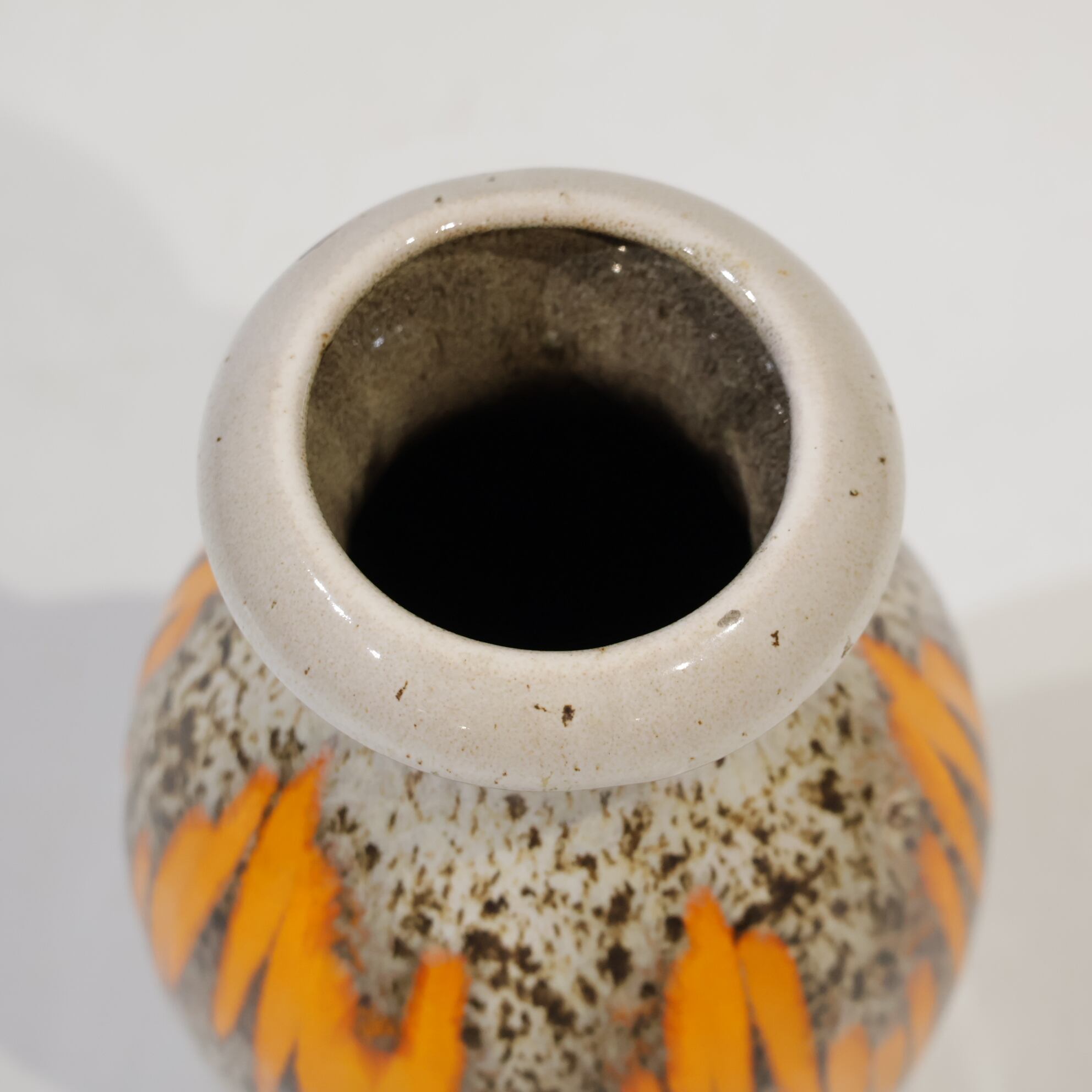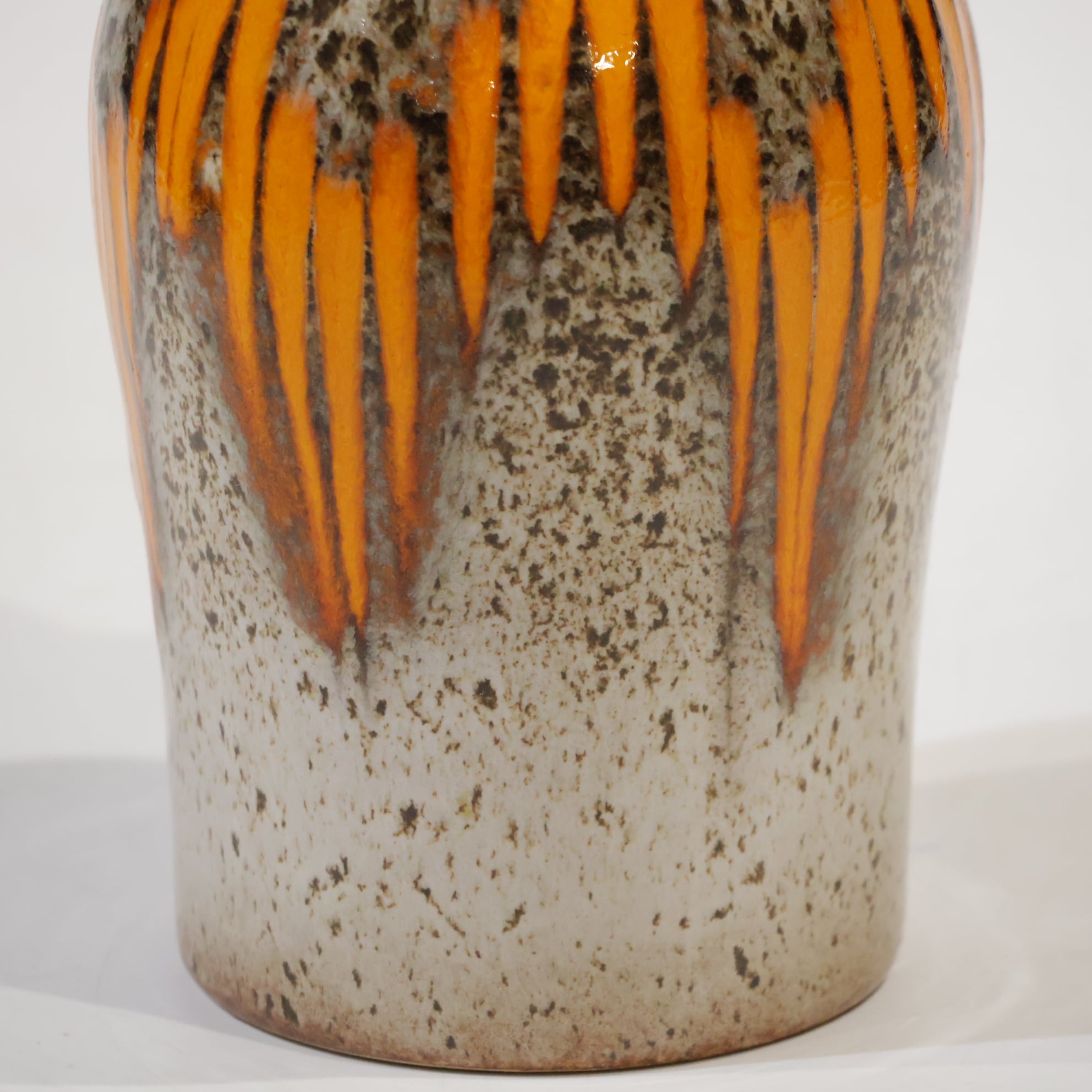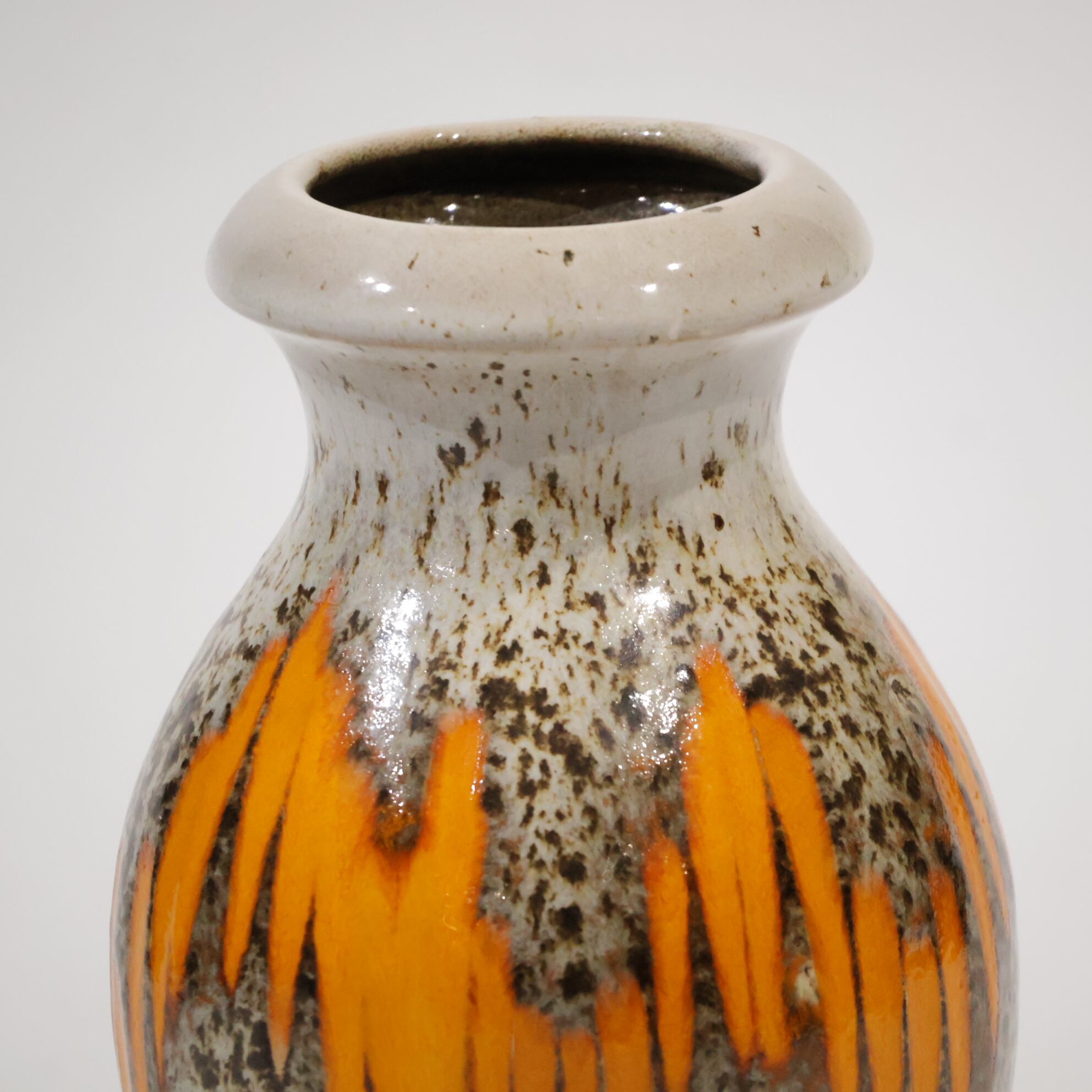 同社は急速に成長し、1950~80年代には陶 器製造の分野でドイツ最大のメーカーとなり、今日も確固たる地位を維持しています。形状に加えて釉薬でも、当時は最も幅広い品揃えを誇った他、輸出量も最大だったため、現在でも同社の製品はよく見られます。特に円筒形を基調にし たシンプルな形状で、型押し模様のある床置き 花瓶が代表的。色彩については当時主流だっ た赤やオレンジから、クリーム、ベージュ、茶色 などが多くを占めています。