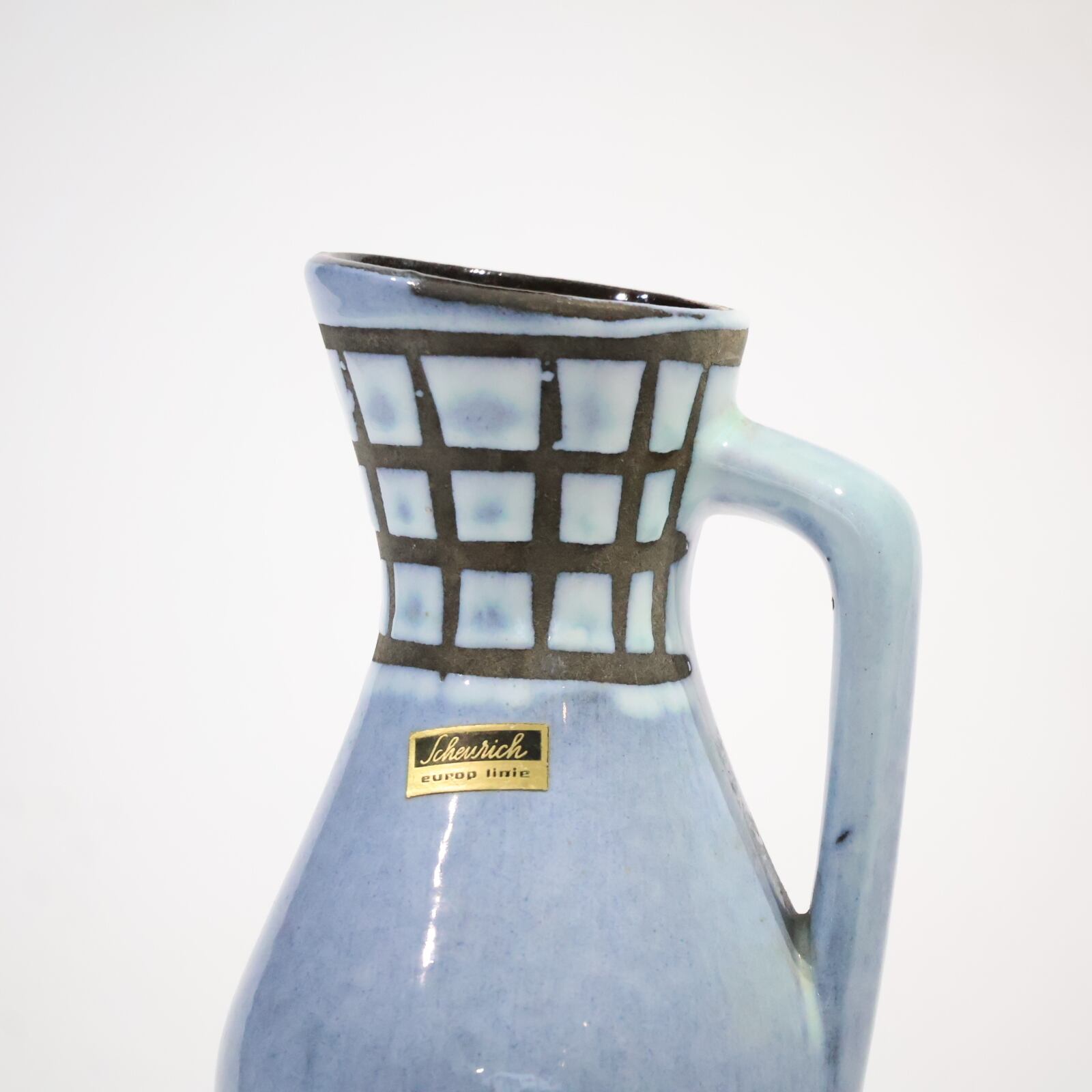 Scheurichの製品には白い粘土が使われて おり、マークは型押しされています。マークには3 ~4桁の型番、その後ハイフンに続いてセンチ メートル単位でのサイズと「W.GERMANY」の表 記があり、底の縁に沿って半円形にマークが型 押しされている場合が多い。その他のマークが 型押しされているのは後期の作品である。品質 は高水準で安定しており、多くの型が同じフォ ルムでさまざまな装飾パターンを展開しているため、同一の型で数多くの作品を揃えるコレク ターも少なくないです。