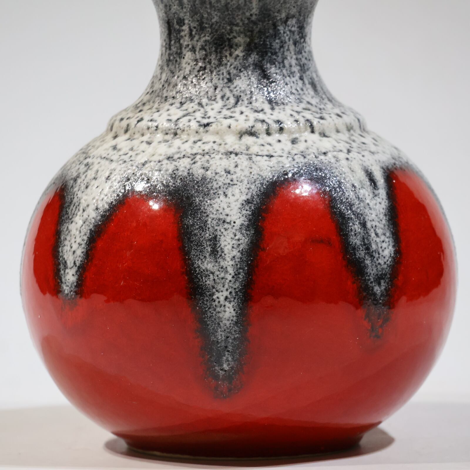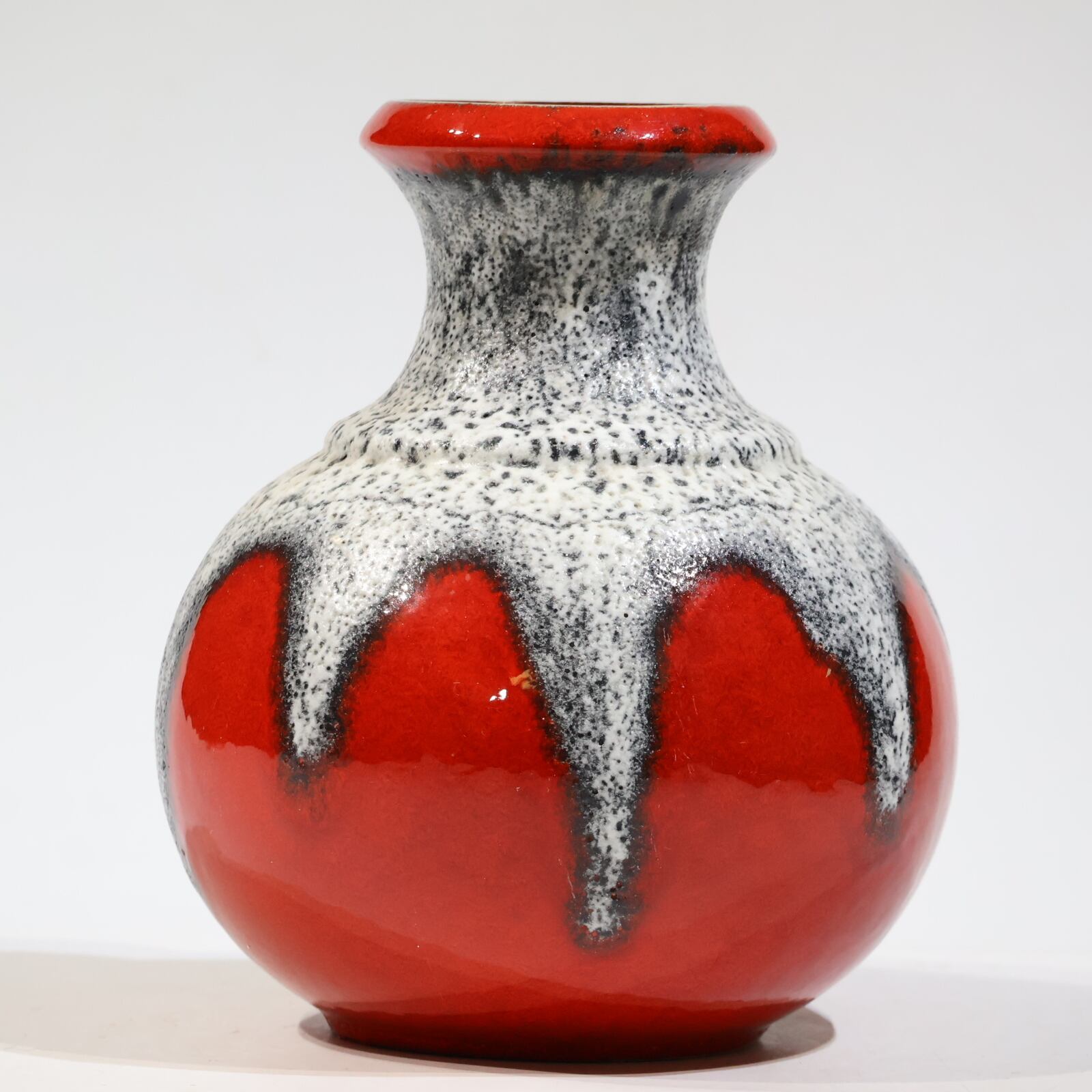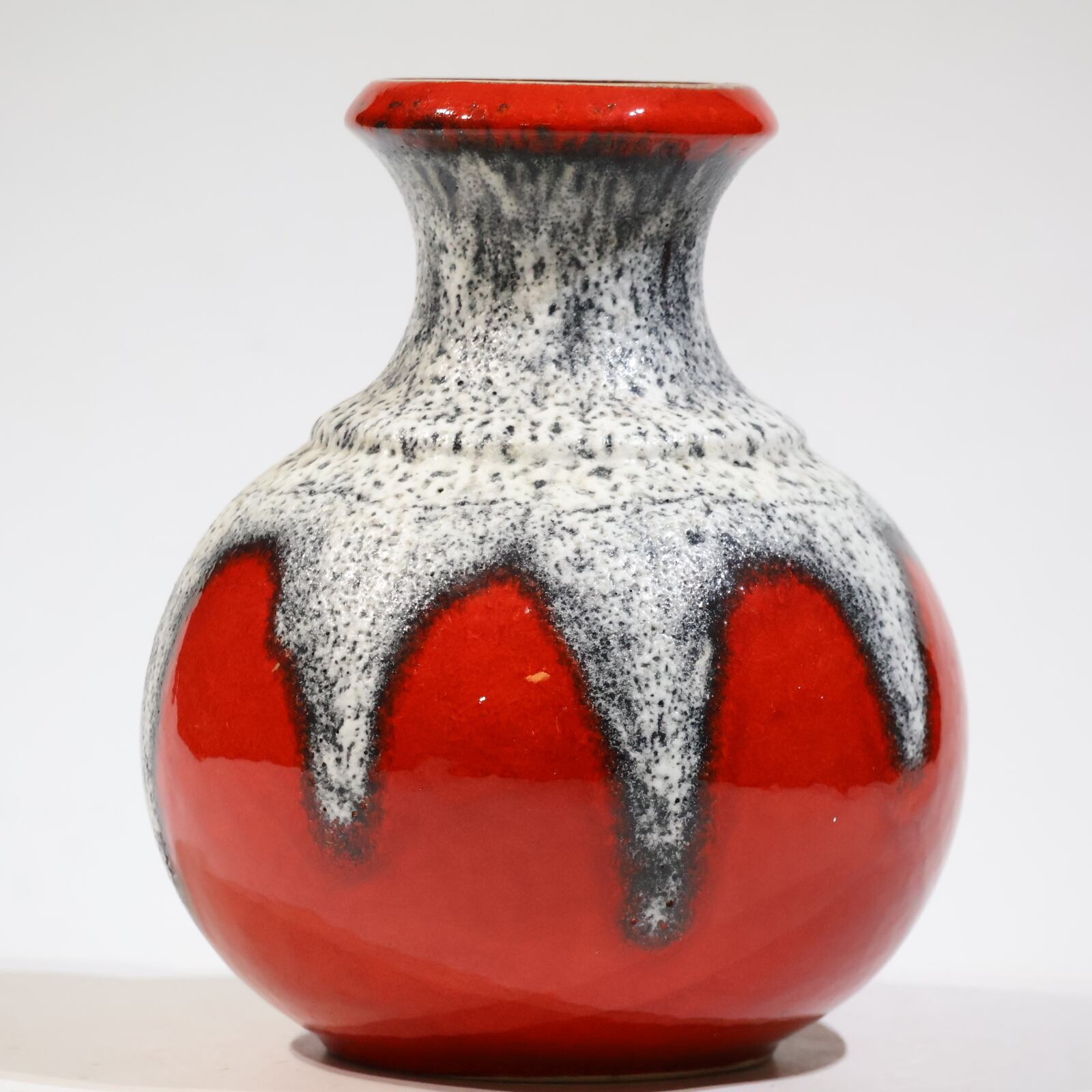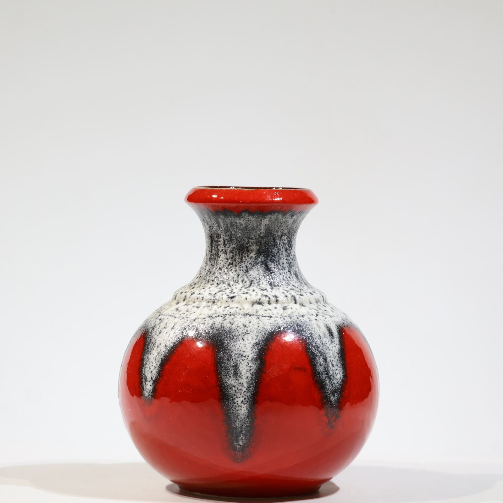 1960年代からのスタイルとしては、 当時広く流行していた色彩の釉薬(マットまたは 光沢あり)を使用し、シンプルなフォルムの上に様 式化した花の図柄の型押しや幾何学模様をあし らったものが多く、Scheurichのも のと混同されがちです。