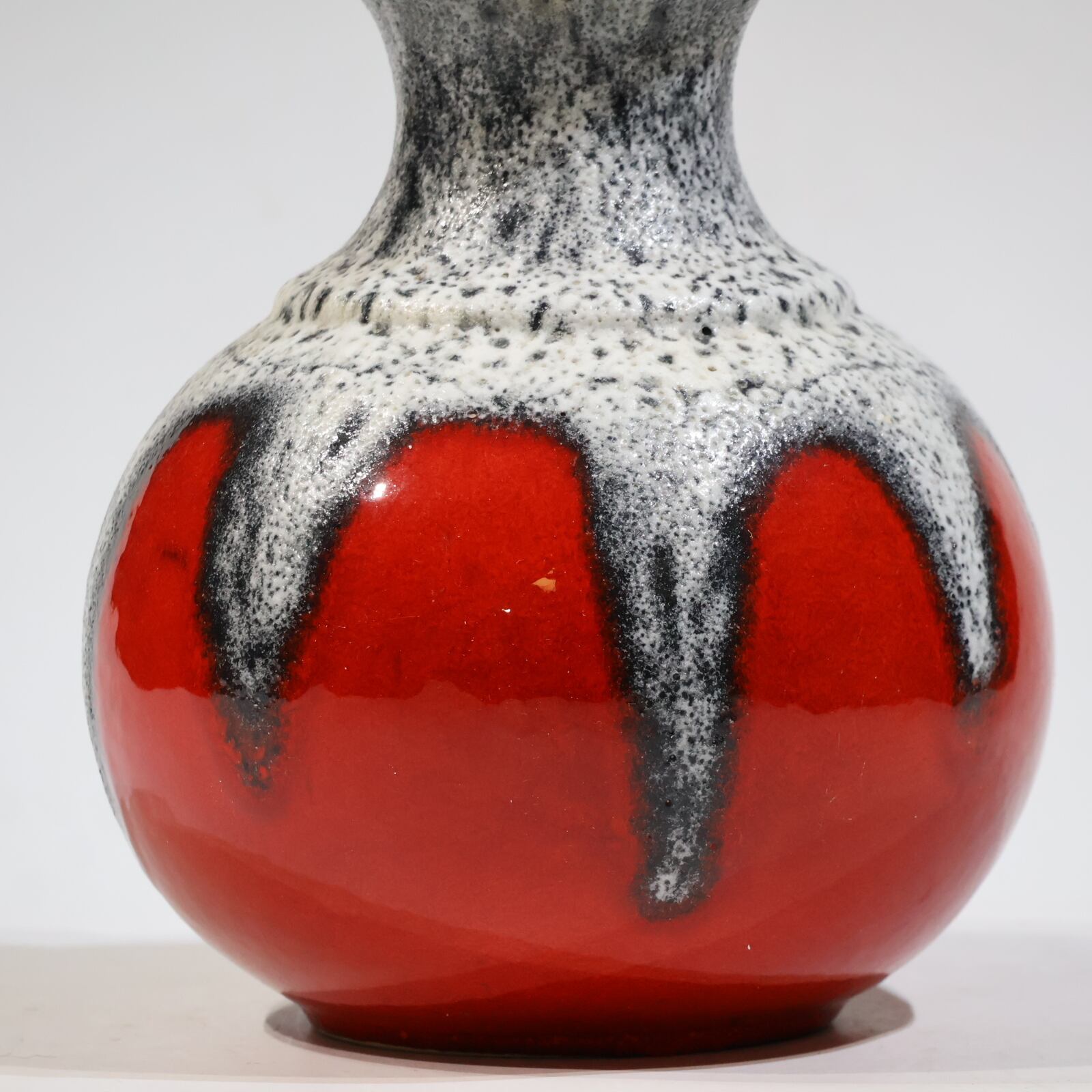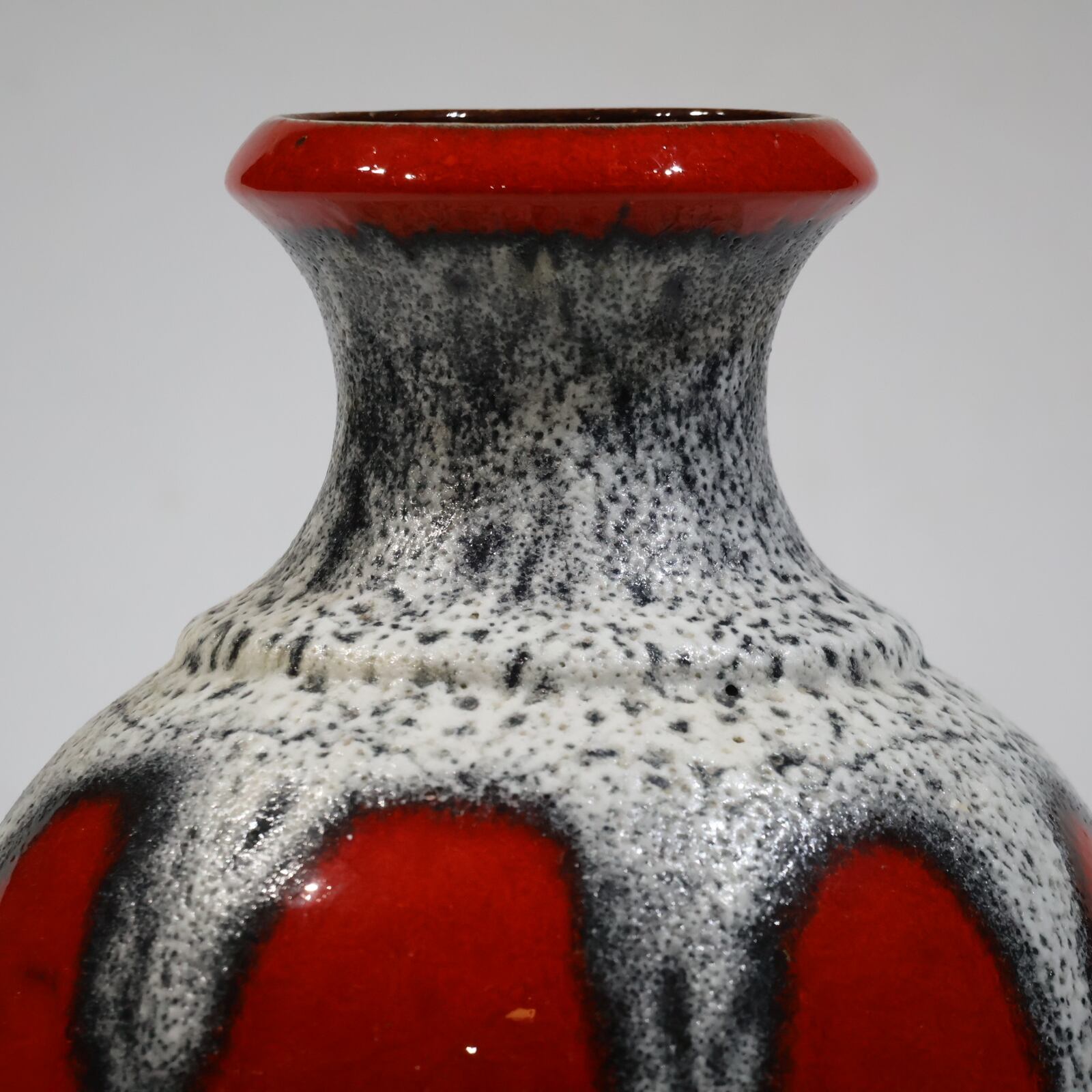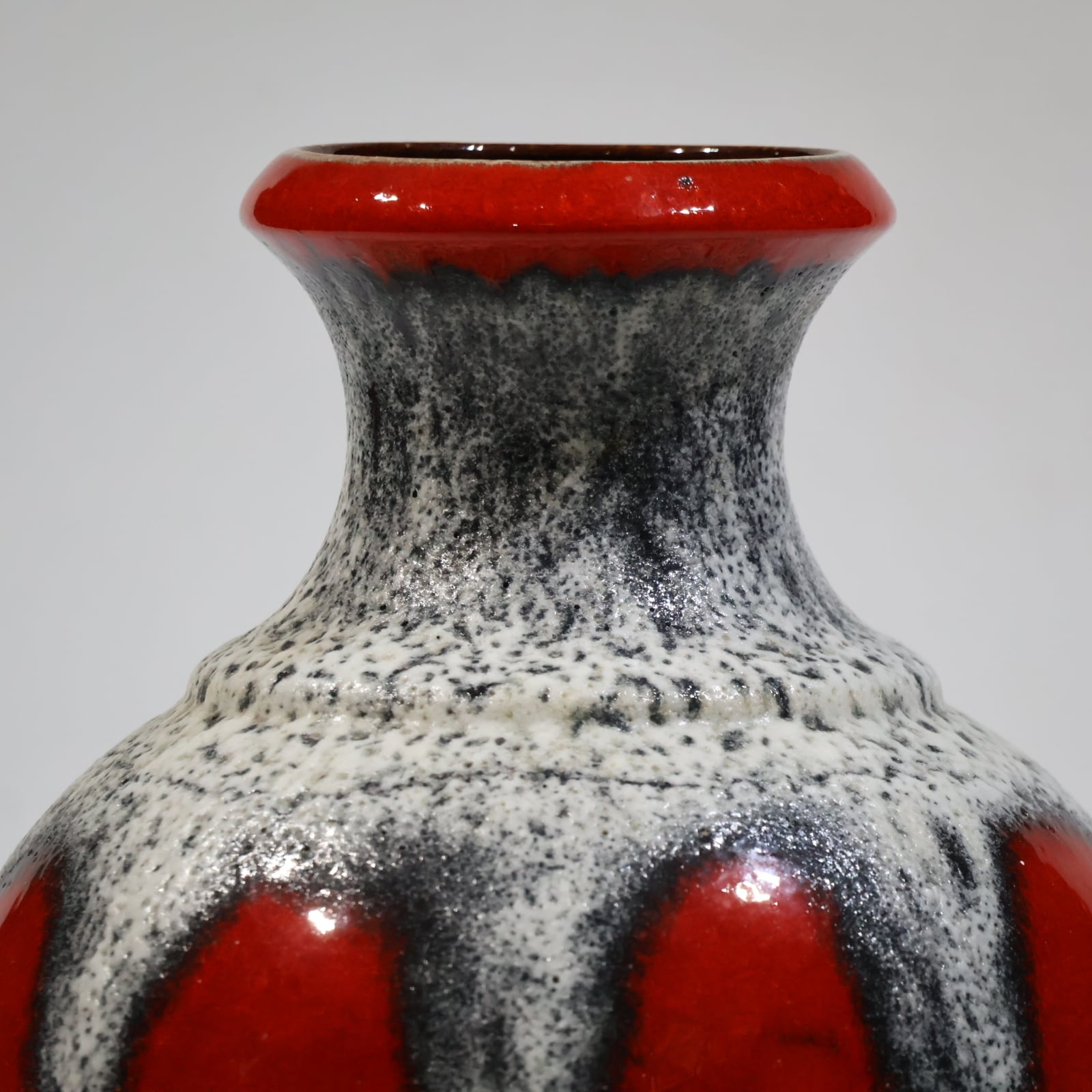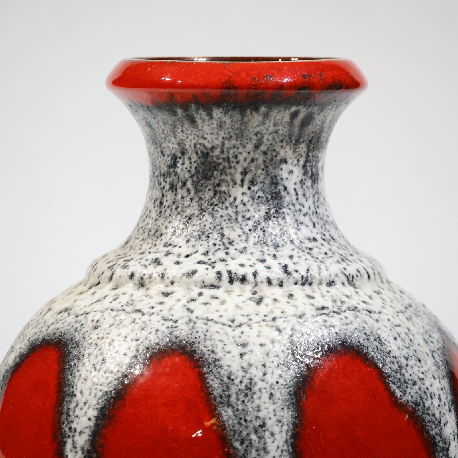 1960年代からのスタイルとしては、 当時広く流行していた色彩の釉薬(マットまたは 光沢あり)を使用し、シンプルなフォルムの上に様 式化した花の図柄の型押しや幾何学模様をあし らったものが多く、Scheurichのも のと混同されがちです。