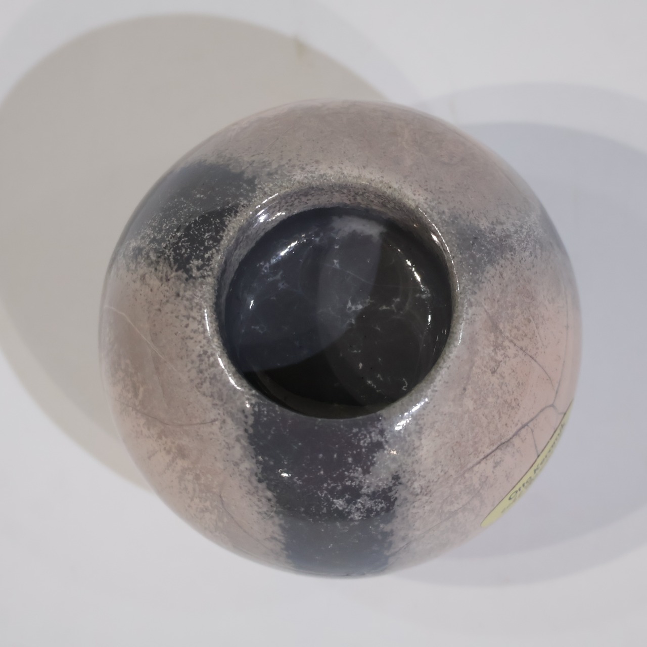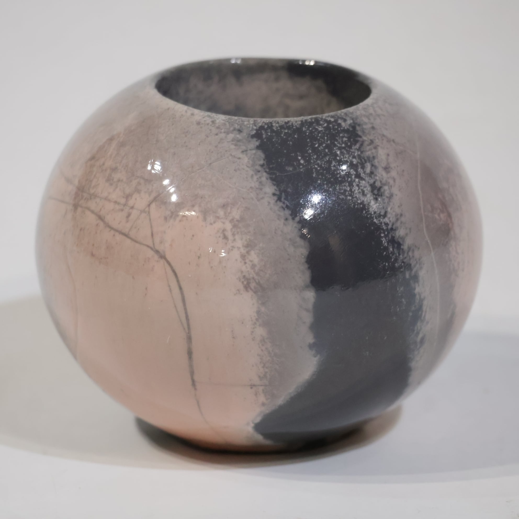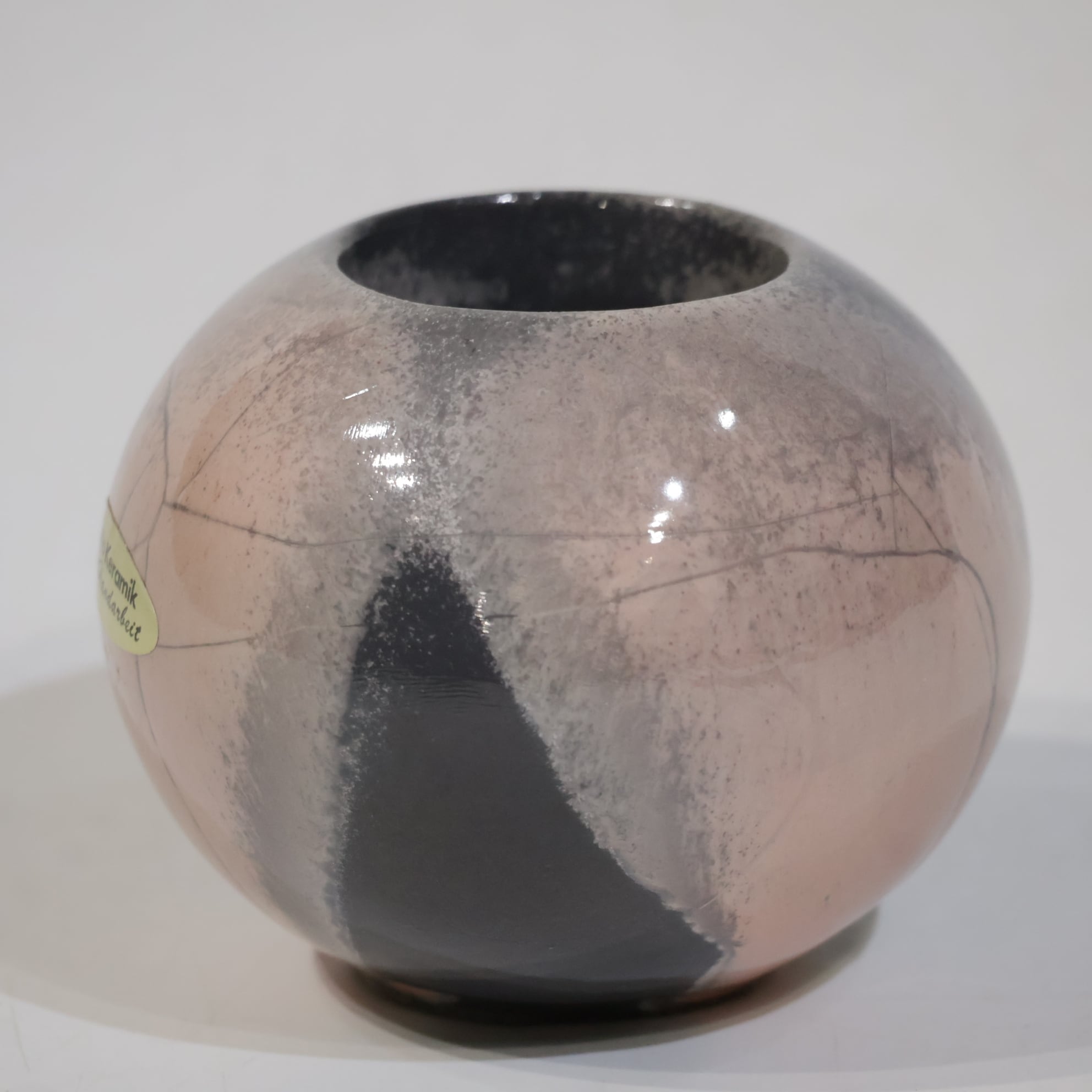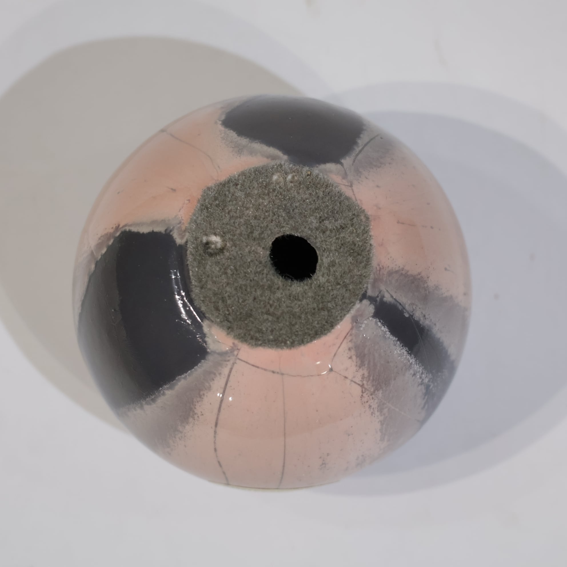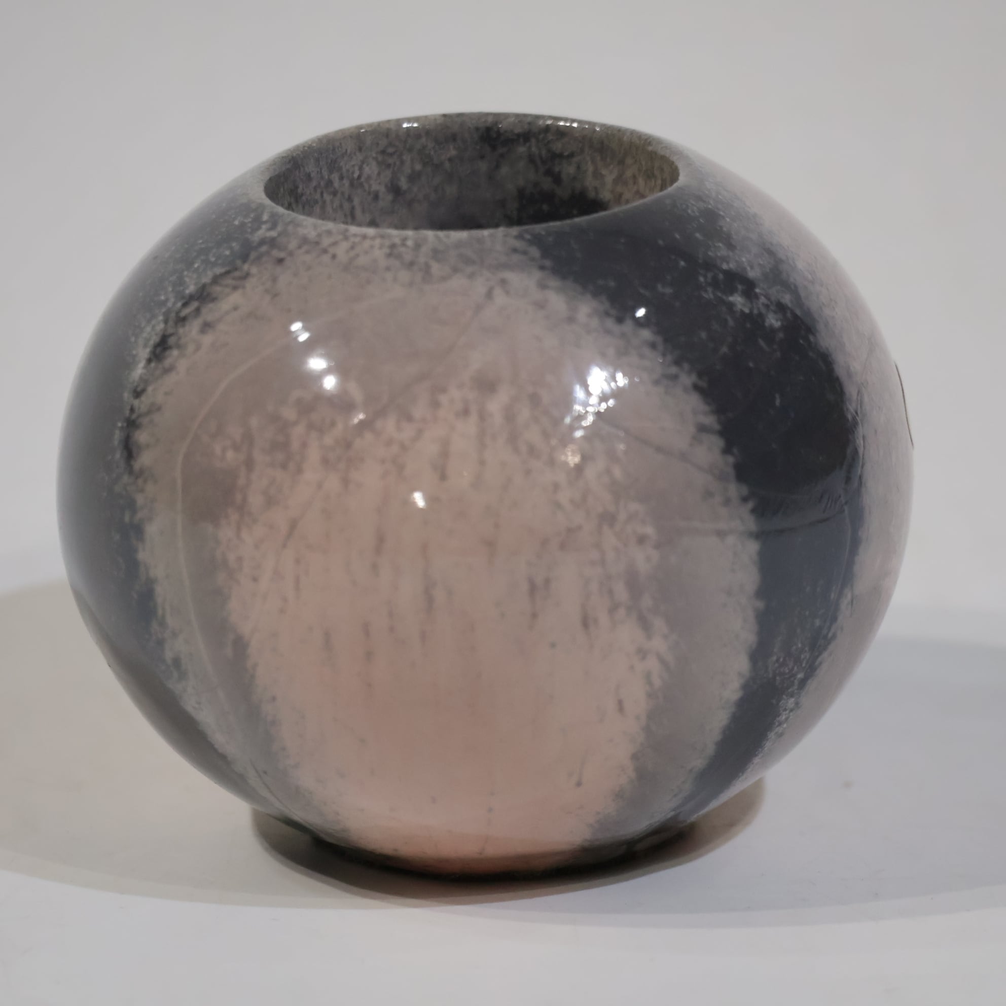 色彩は柔らかなグレーとピンクの組み合わせ。艶のある釉薬が溶け合うように流れ、静かに揺らぐ陰影を生み出しています。ピンクはややくすみを帯びており、落ち着いたグレートーンとの対比が上品な印象を与えます。