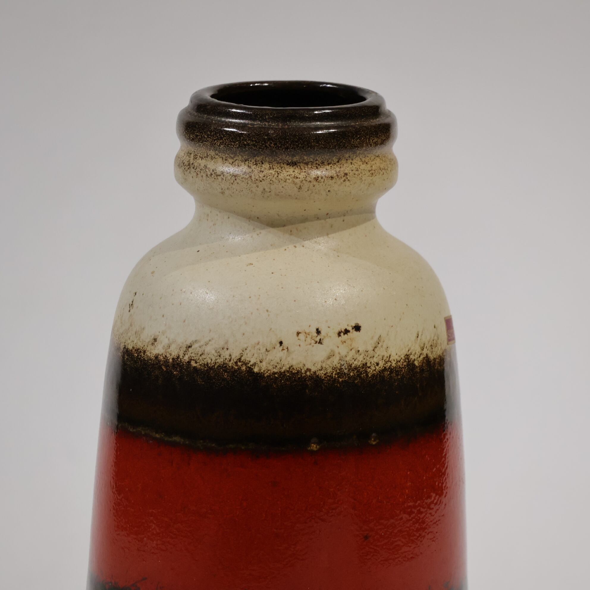 同社は急速に成長し、1950~80年代には陶 器製造の分野でドイツ最大のメーカーとなり、今日も確固たる地位を維持しています。形状に加えて釉薬でも、当時は最も幅広い品揃えを誇った他、輸出量も最大だったため、現在でも同社の製品はよく見られます。特に円筒形を基調にし たシンプルな形状で、型押し模様のある床置き 花瓶が代表的。色彩については当時主流だっ た赤やオレンジから、クリーム、ベージュ、茶色 などが多くを占めています。