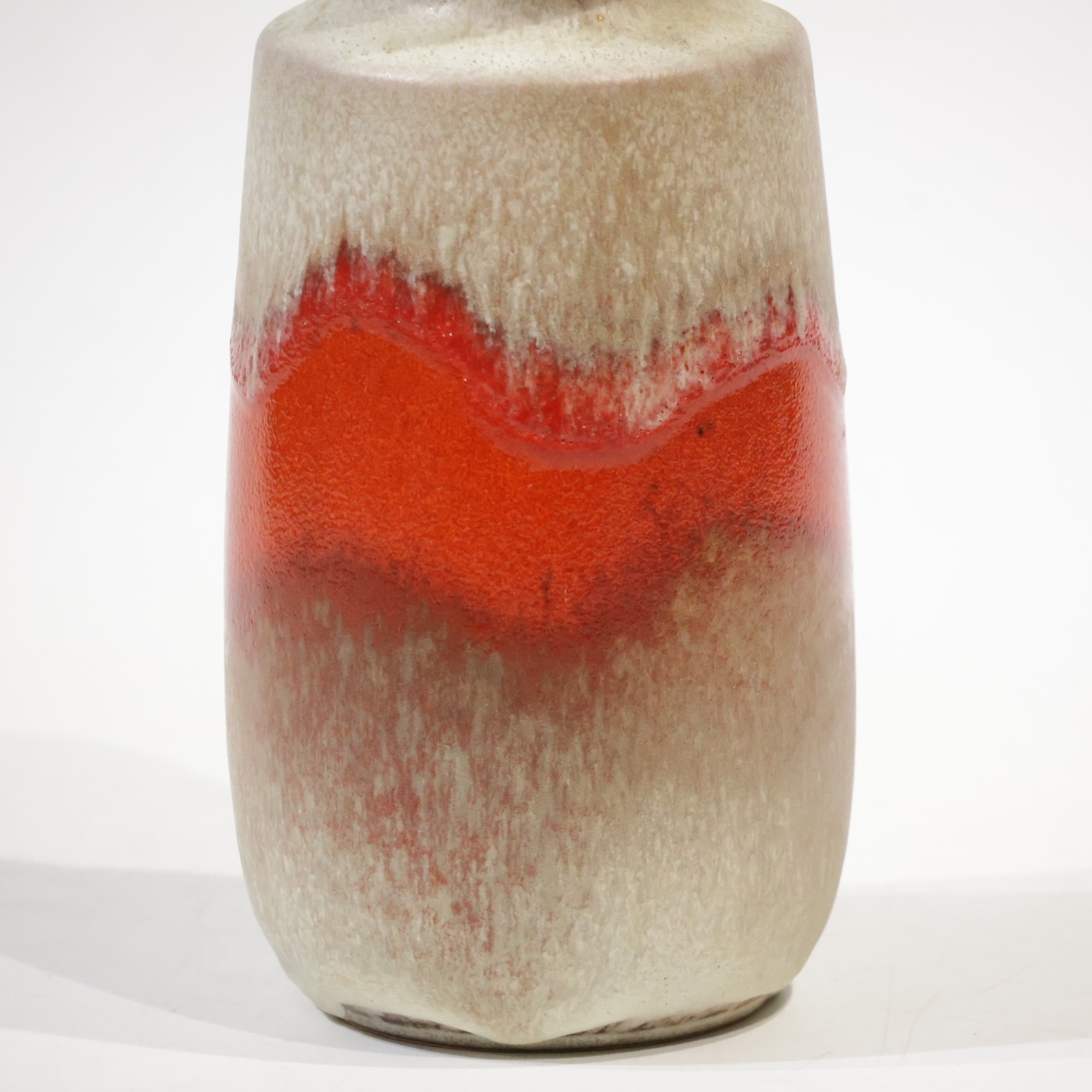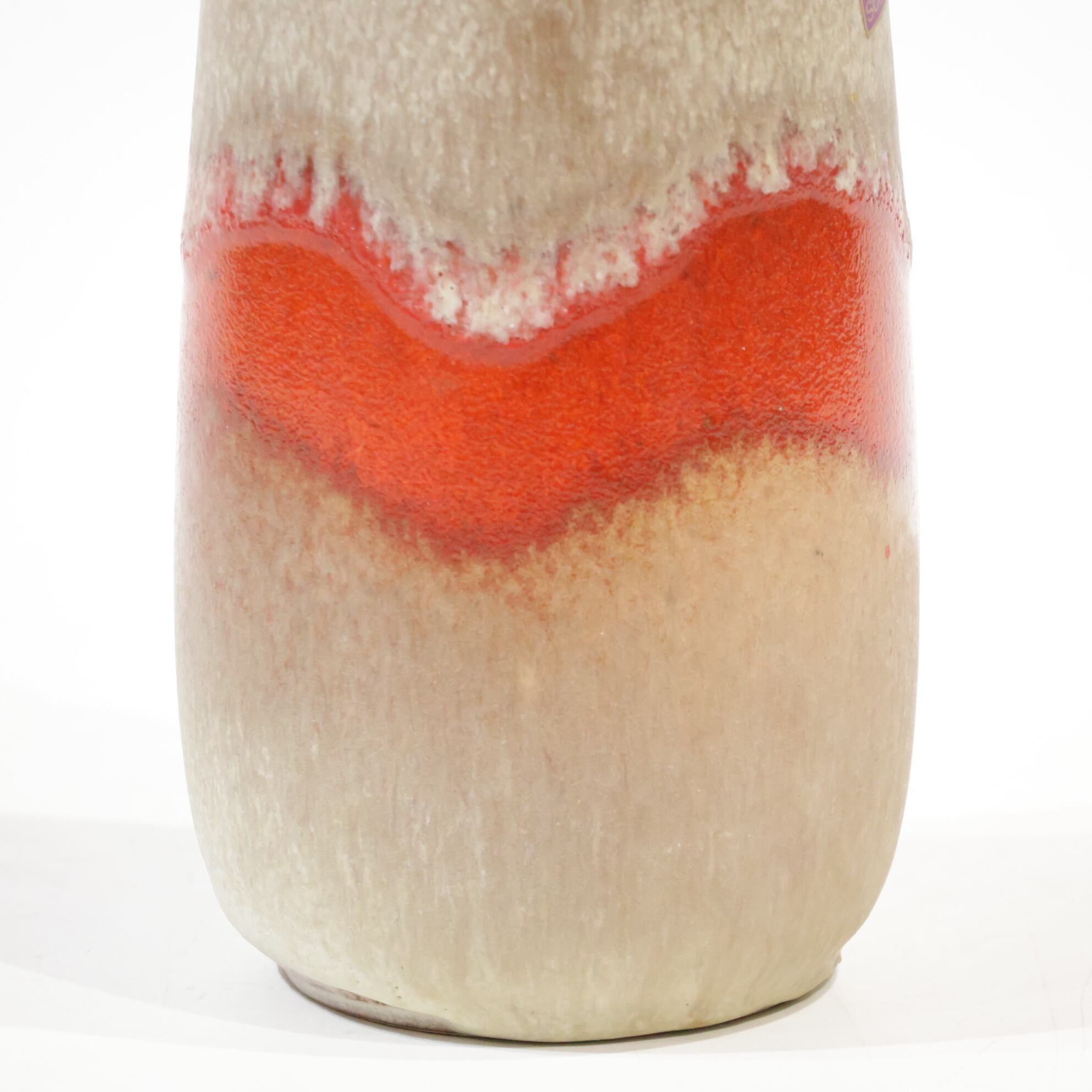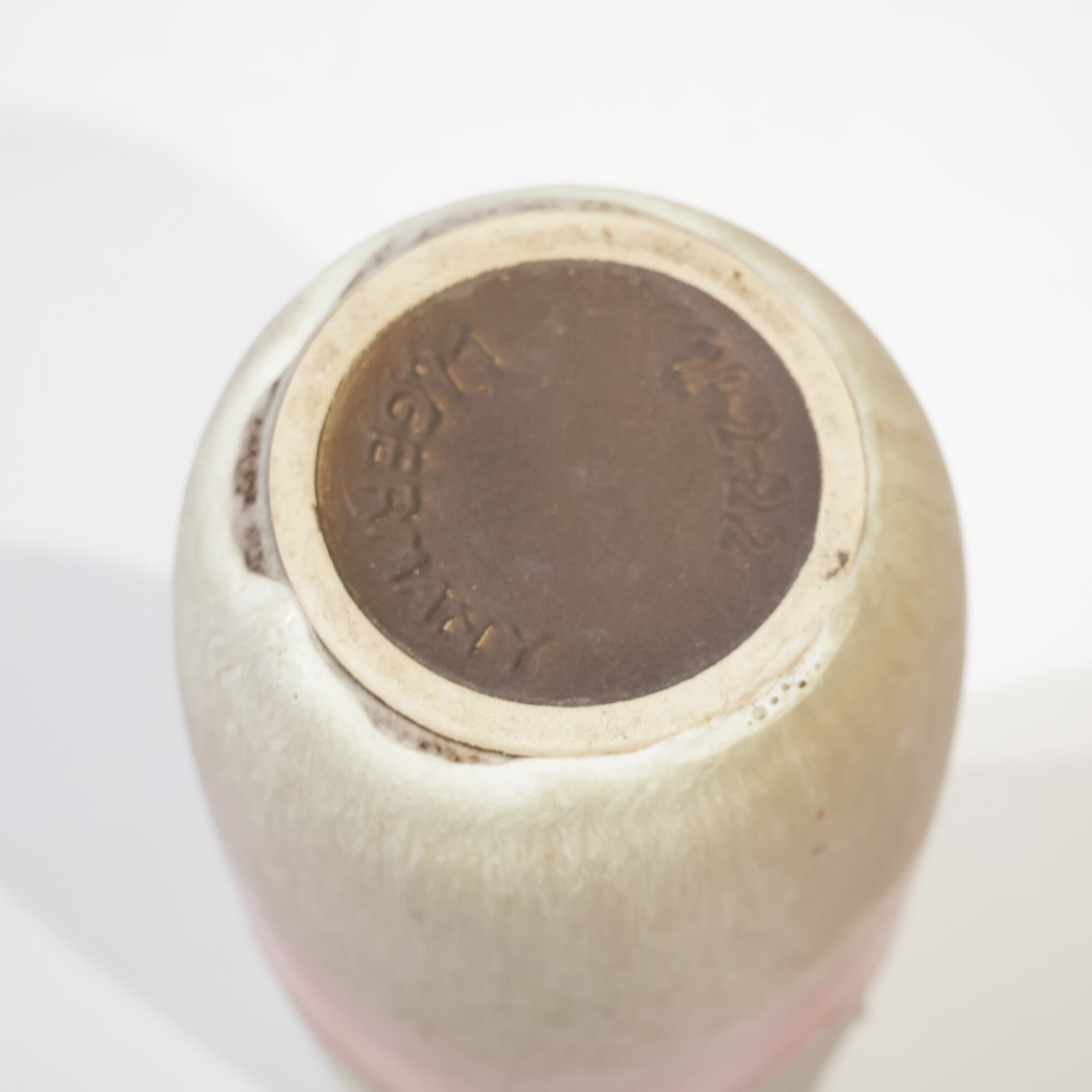 同社は急速に成長し、1950~80年代には陶 器製造の分野でドイツ最大のメーカーとなり、今日も確固たる地位を維持しています。形状に加えて釉薬でも、当時は最も幅広い品揃えを誇った他、輸出量も最大だったため、現在でも同社の製品はよく見られます。特に円筒形を基調にし たシンプルな形状で、型押し模様のある床置き 花瓶が代表的。色彩については当時主流だっ た赤やオレンジから、クリーム、ベージュ、茶色 などが多くを占めています。
