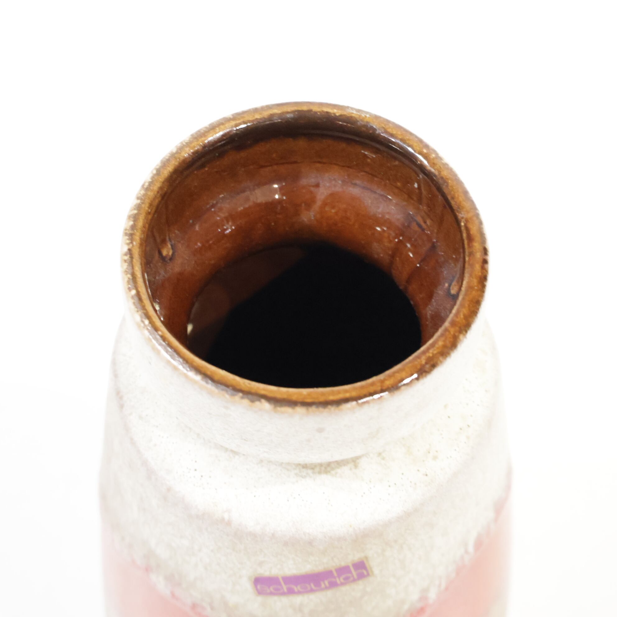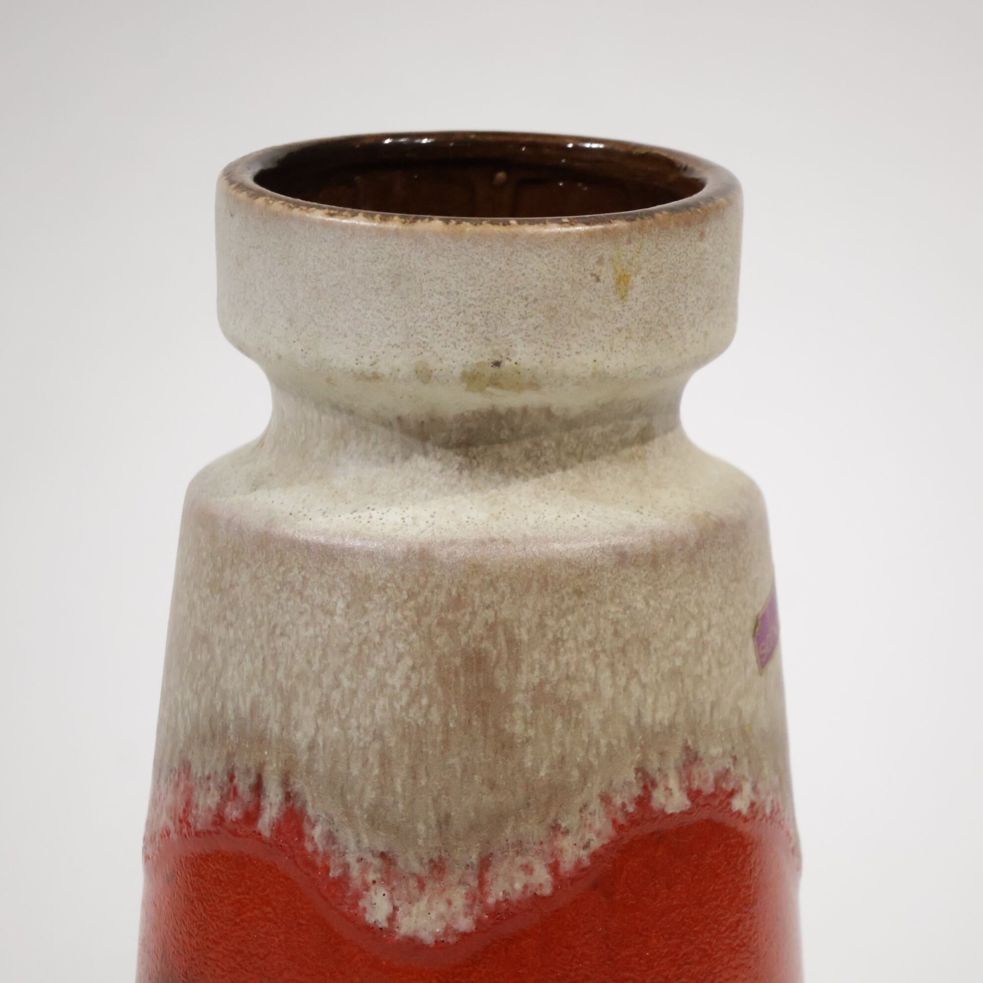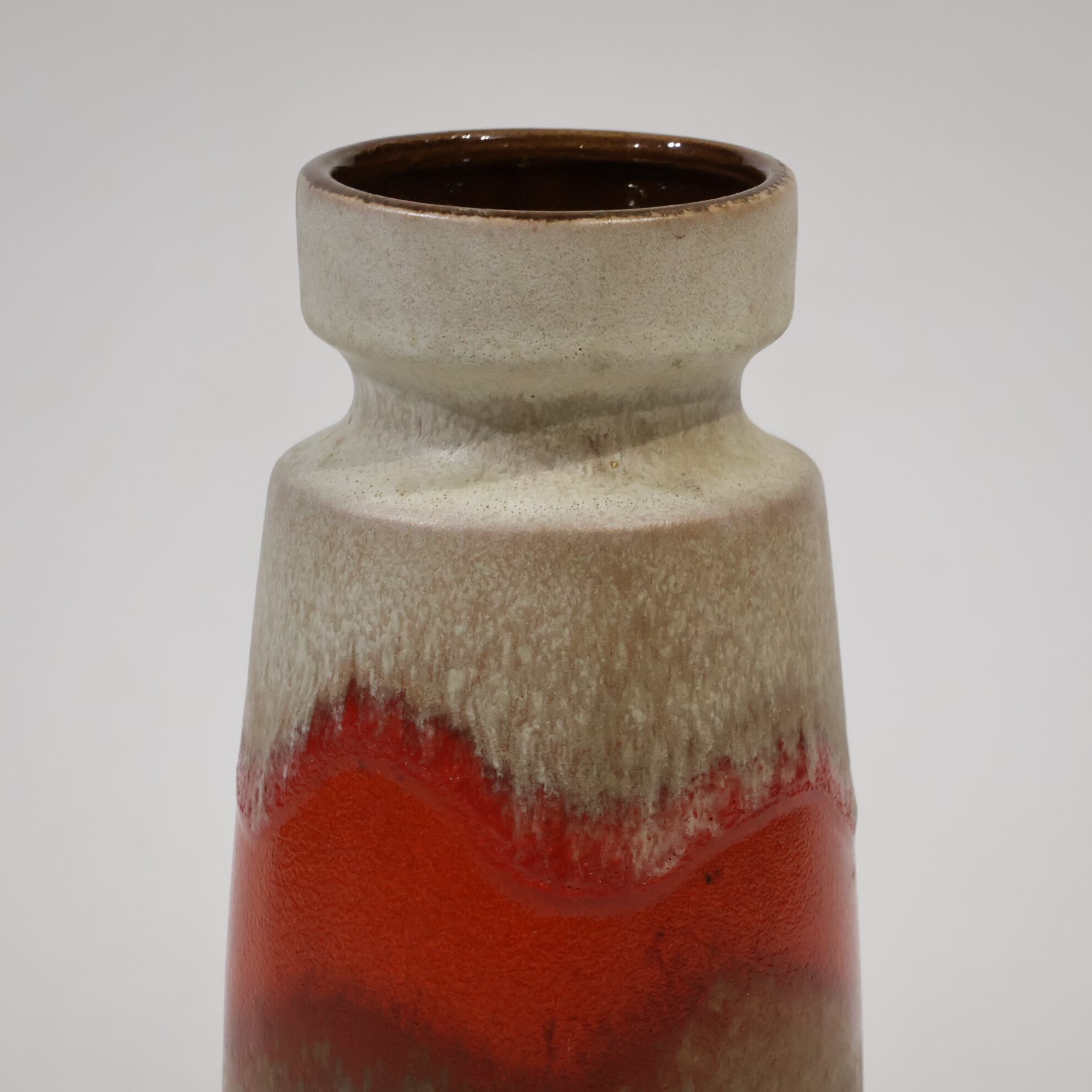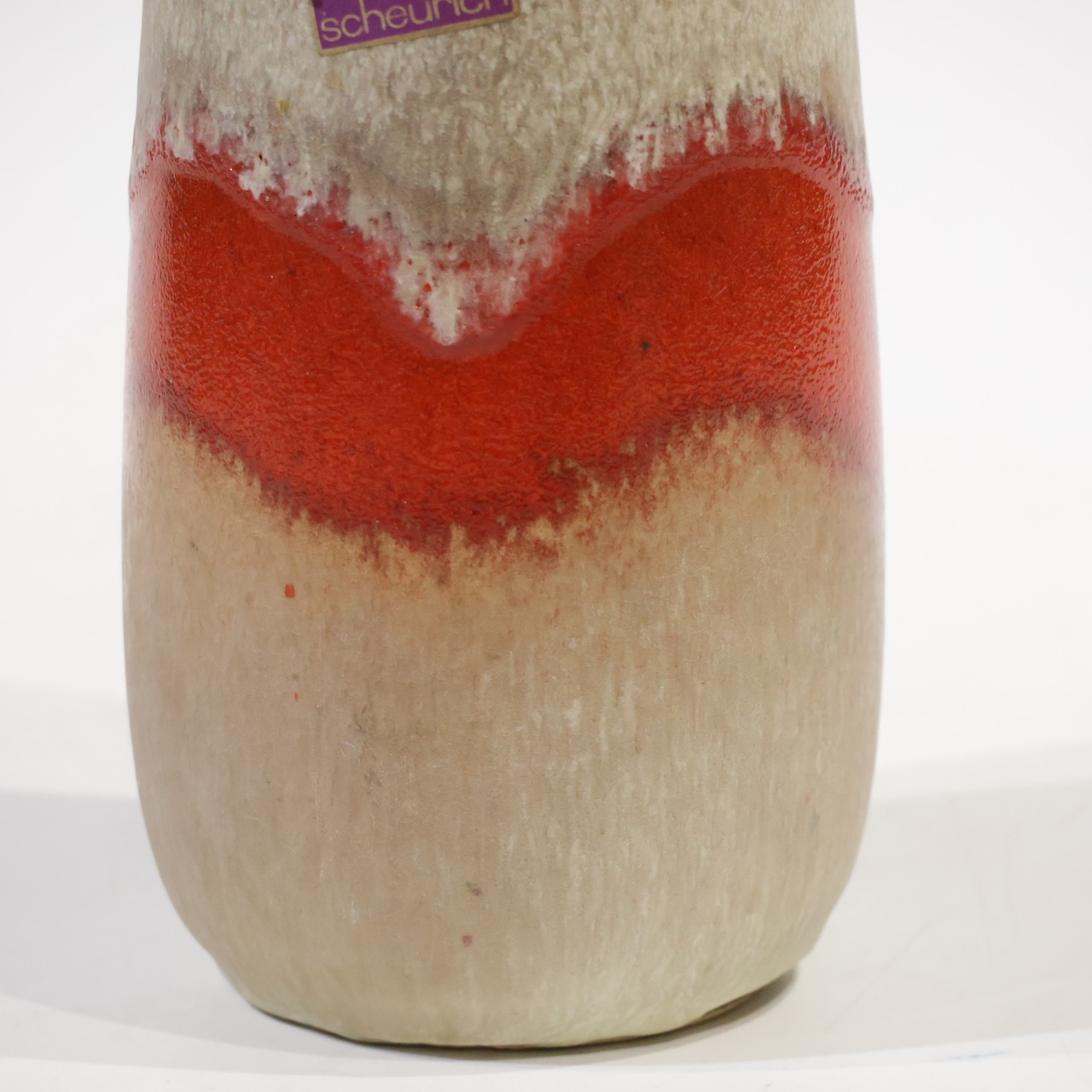 同社は急速に成長し、1950~80年代には陶 器製造の分野でドイツ最大のメーカーとなり、今日も確固たる地位を維持しています。形状に加えて釉薬でも、当時は最も幅広い品揃えを誇った他、輸出量も最大だったため、現在でも同社の製品はよく見られます。特に円筒形を基調にし たシンプルな形状で、型押し模様のある床置き 花瓶が代表的。色彩については当時主流だっ た赤やオレンジから、クリーム、ベージュ、茶色 などが多くを占めています。