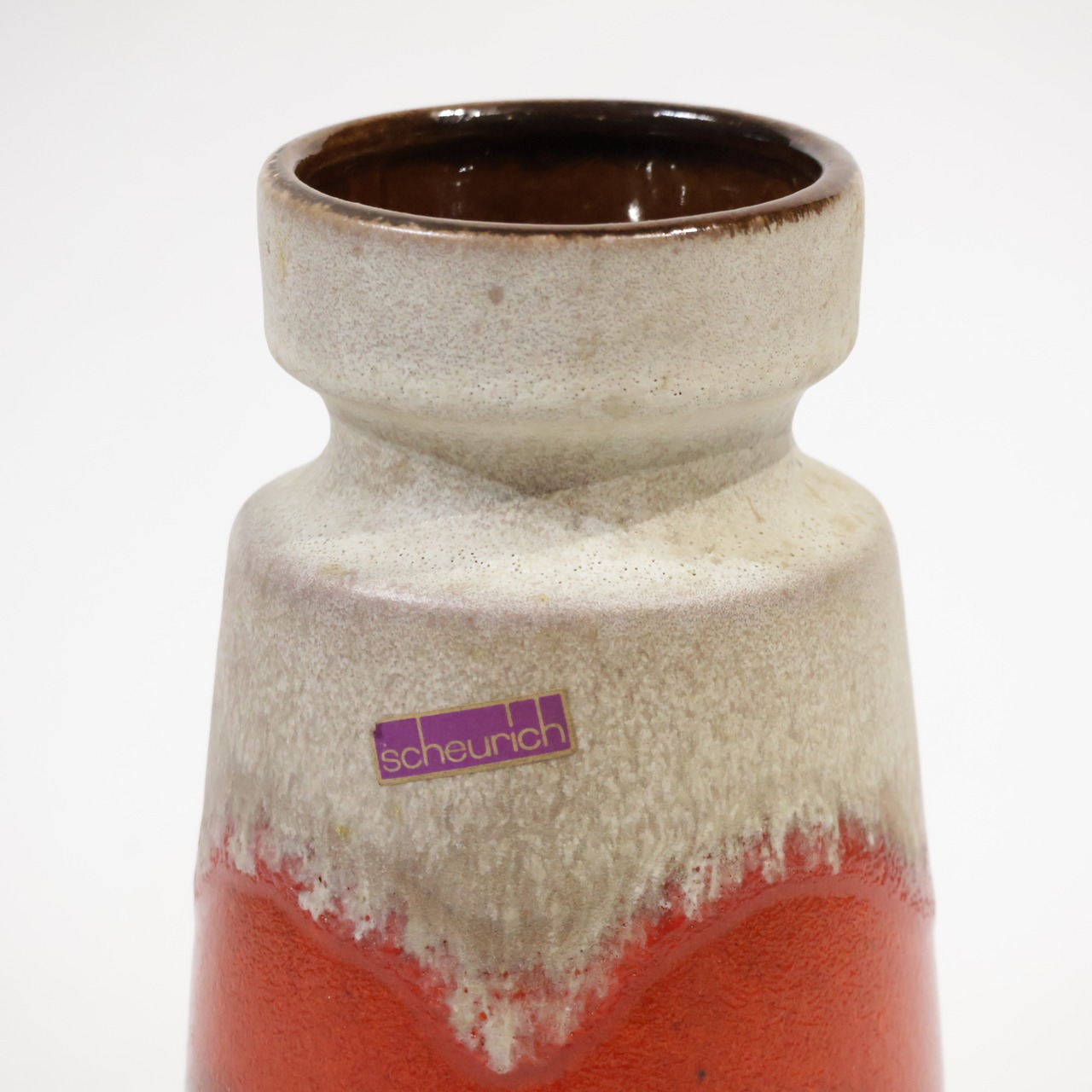 Scheurichの製品には白い粘土が使われて おり、マークは型押しされています。マークには3 ~4桁の型番、その後ハイフンに続いてセンチ メートル単位でのサイズと「W.GERMANY」の表 記があり、底の縁に沿って半円形にマークが型 押しされている場合が多い。その他のマークが 型押しされているのは後期の作品である。品質 は高水準で安定しており、多くの型が同じフォ ルムでさまざまな装飾パターンを展開しているため、同一の型で数多くの作品を揃えるコレク ターも少なくないです。