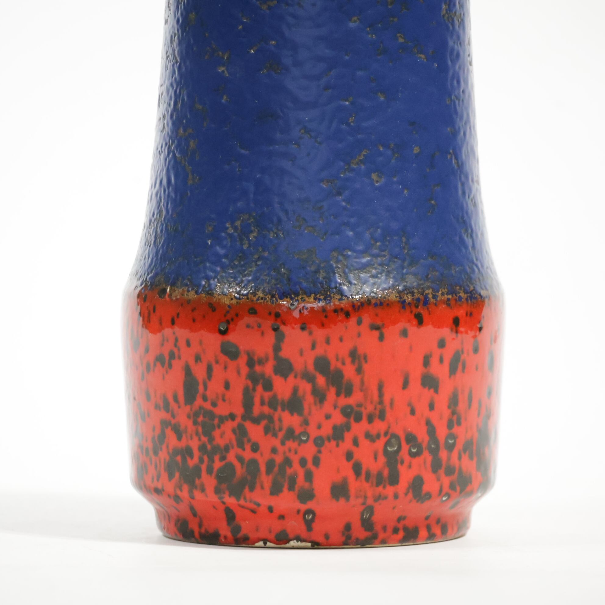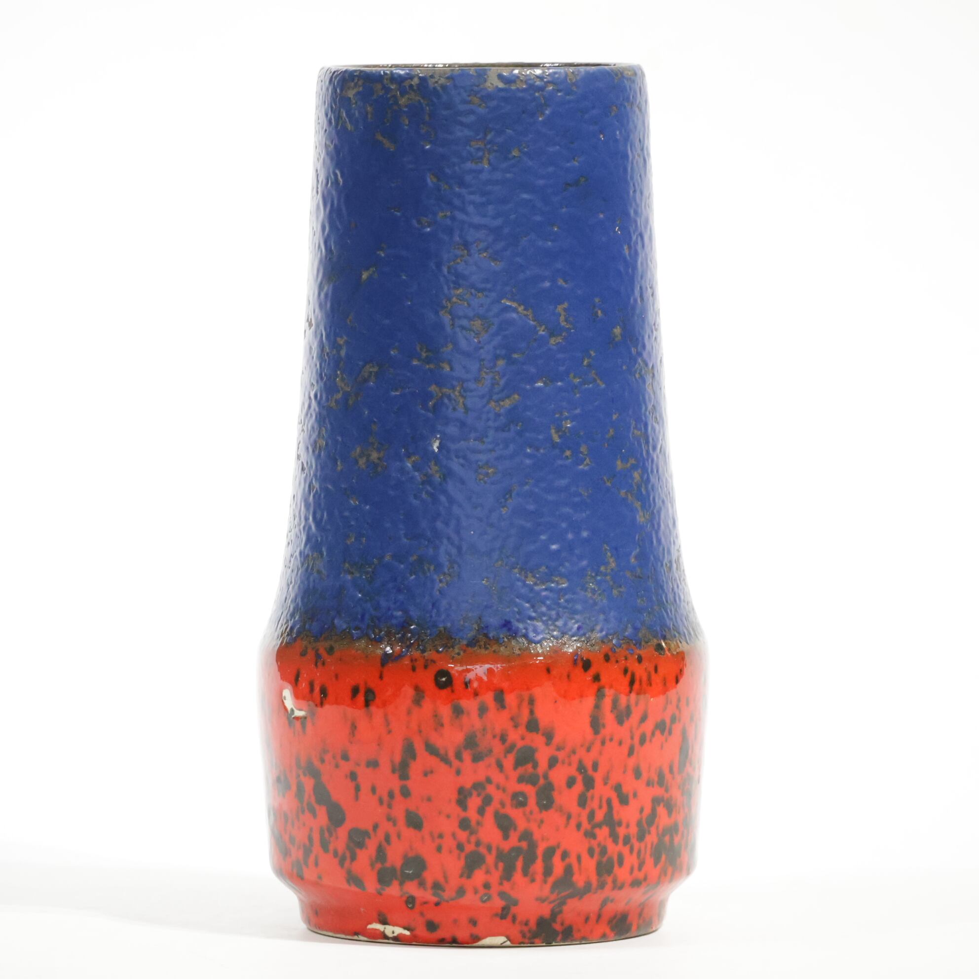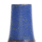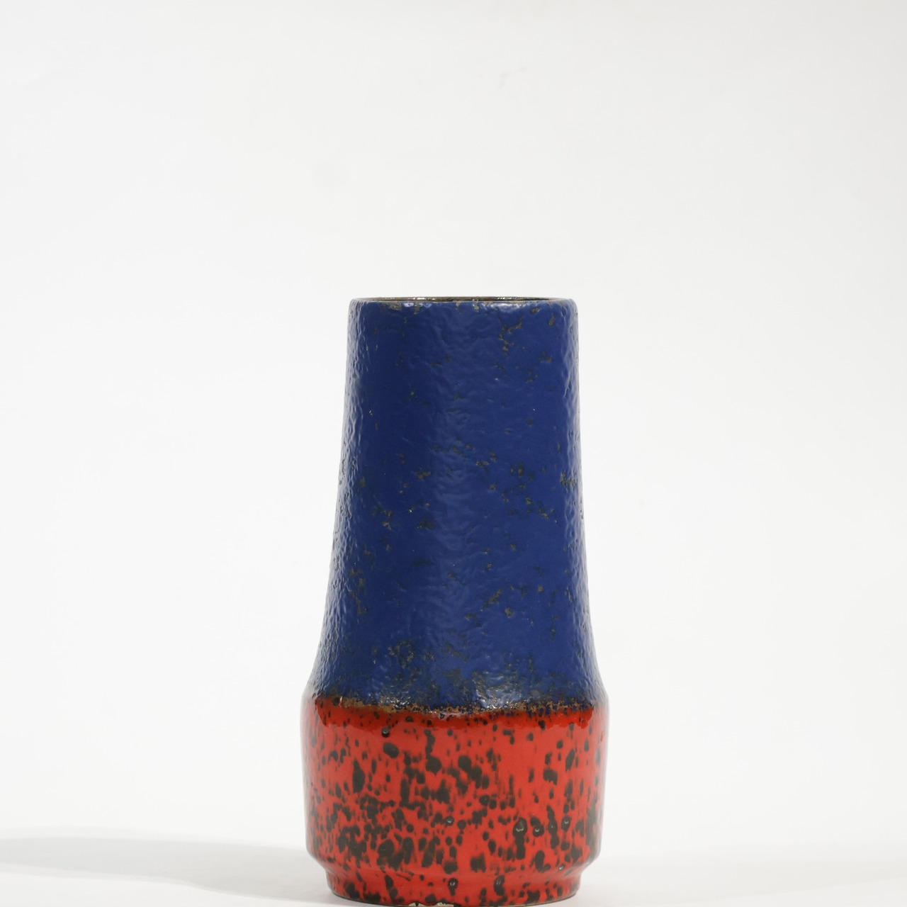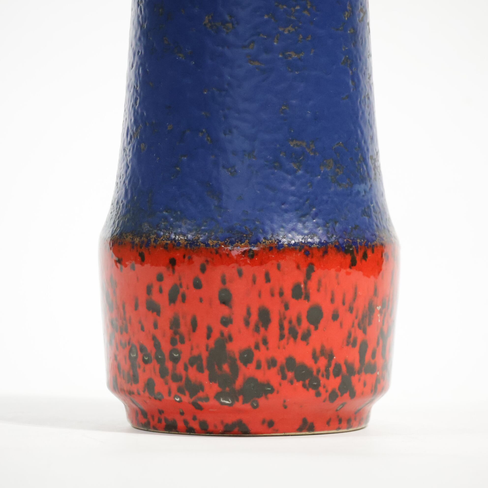 同社は急速に成長し、1950~80年代には陶 器製造の分野でドイツ最大のメーカーとなり、今日も確固たる地位を維持しています。形状に加えて釉薬でも、当時は最も幅広い品揃えを誇った他、輸出量も最大だったため、現在でも同社の製品はよく見られます。特に円筒形を基調にし たシンプルな形状で、型押し模様のある床置き 花瓶が代表的。色彩については当時主流だっ た赤やオレンジから、クリーム、ベージュ、茶色 などが多くを占めています。