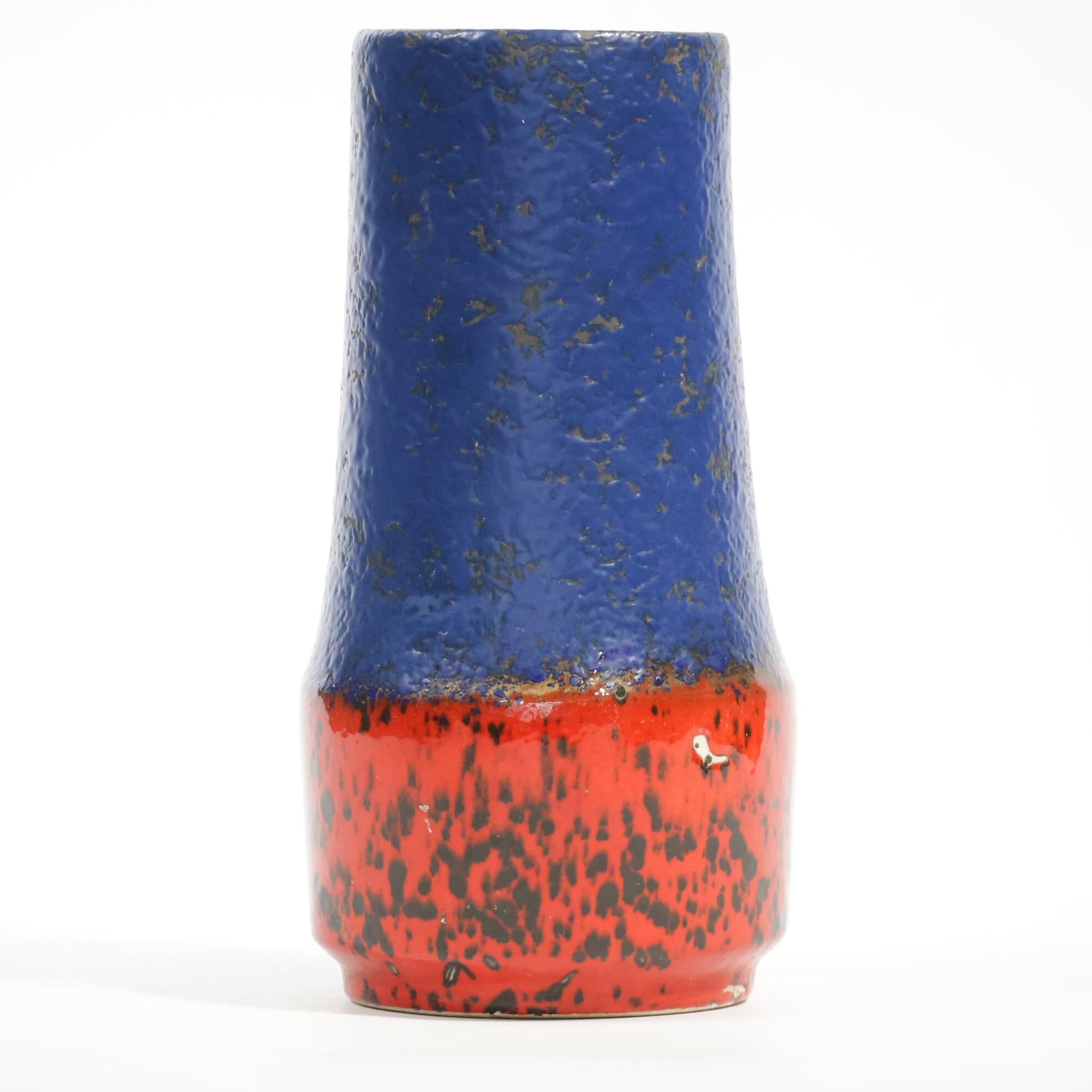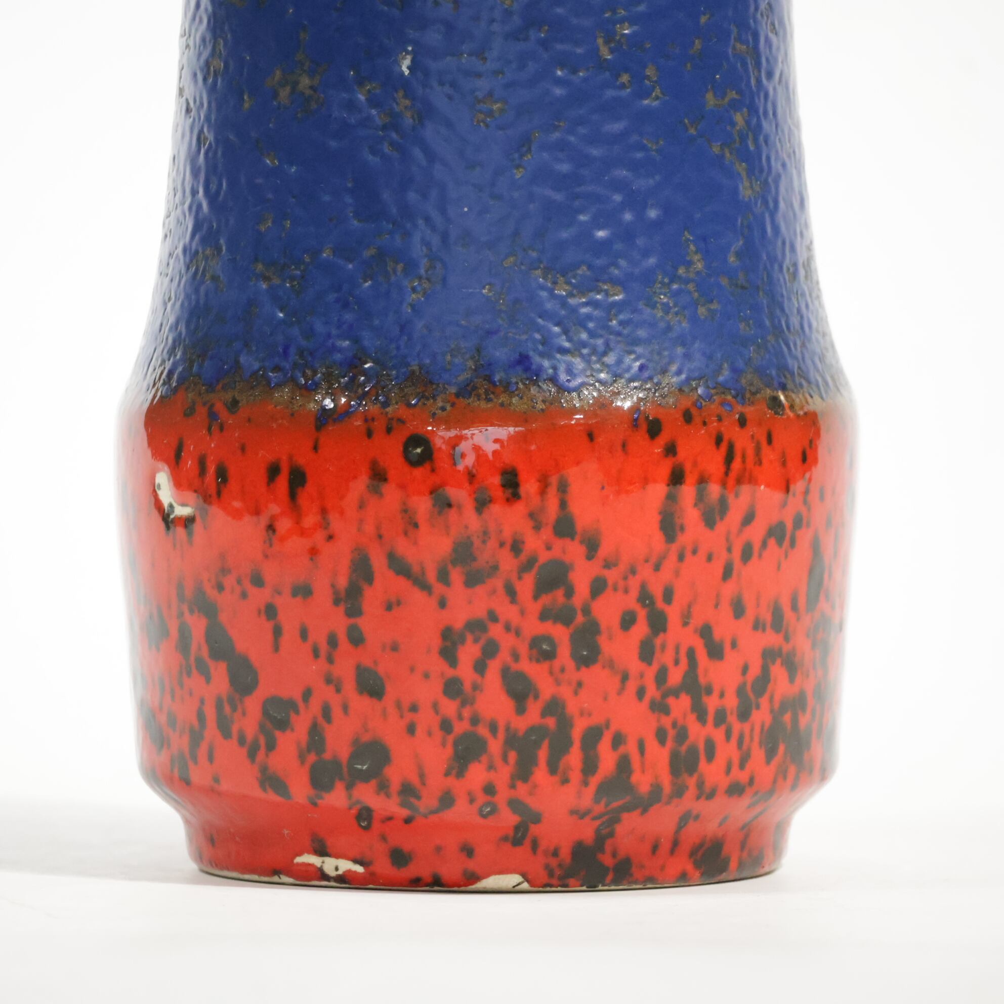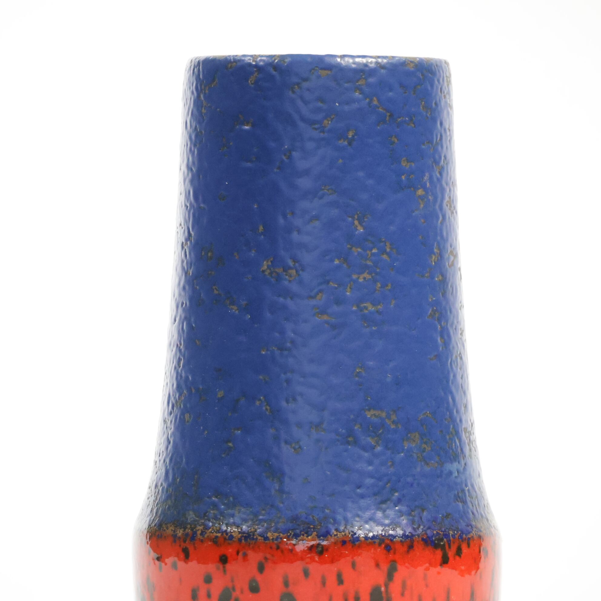 同社は急速に成長し、1950~80年代には陶 器製造の分野でドイツ最大のメーカーとなり、今日も確固たる地位を維持しています。形状に加えて釉薬でも、当時は最も幅広い品揃えを誇った他、輸出量も最大だったため、現在でも同社の製品はよく見られます。特に円筒形を基調にし たシンプルな形状で、型押し模様のある床置き 花瓶が代表的。色彩については当時主流だっ た赤やオレンジから、クリーム、ベージュ、茶色 などが多くを占めています。