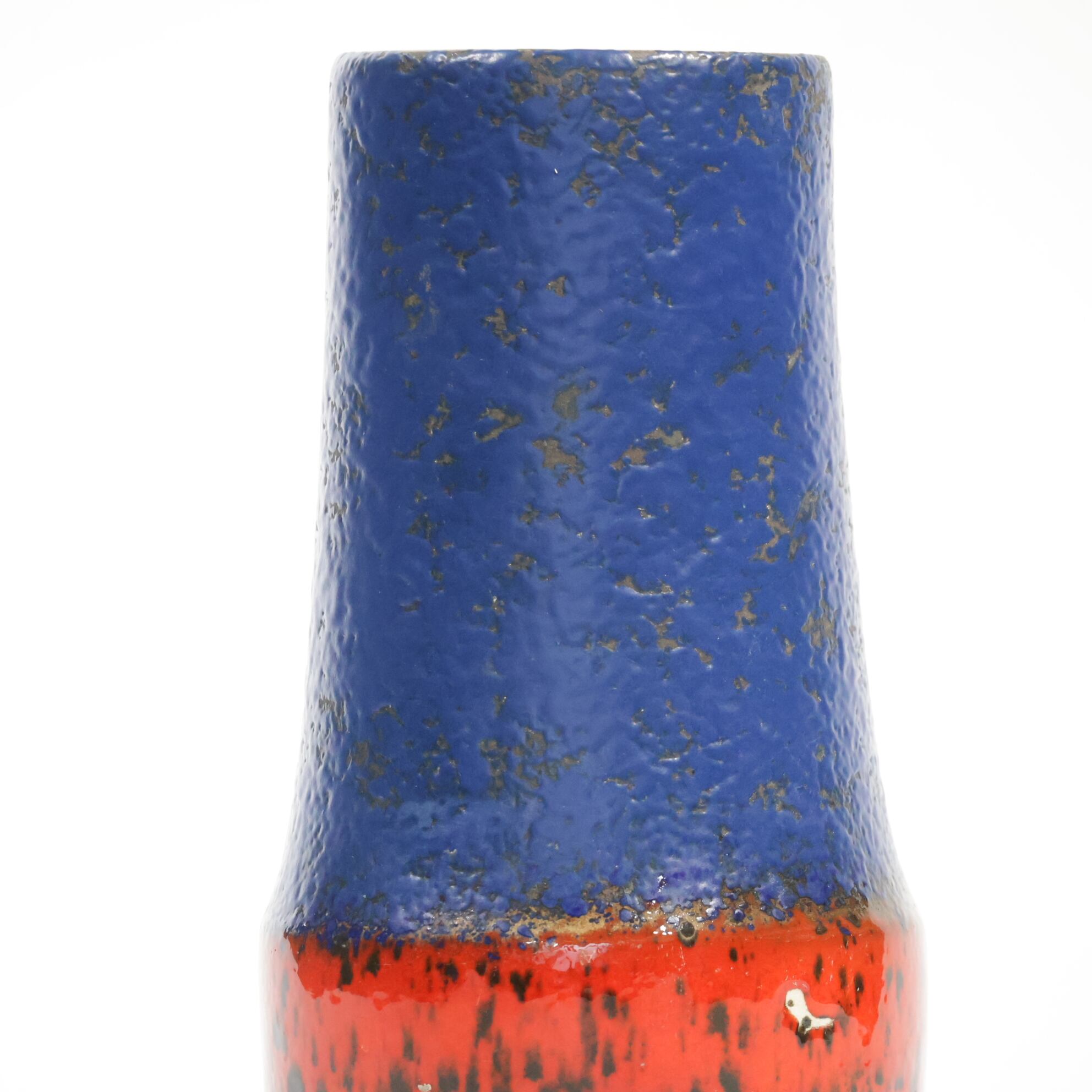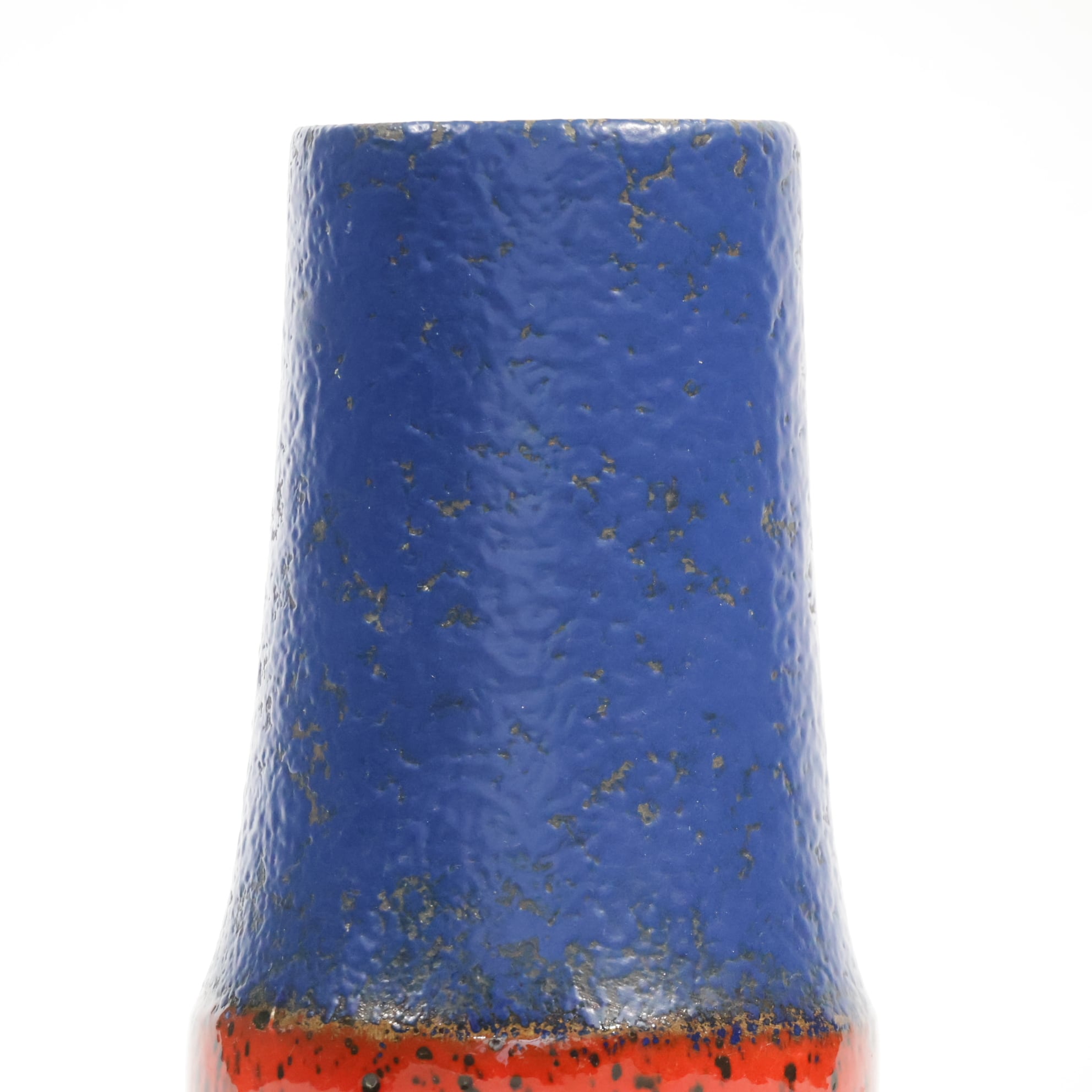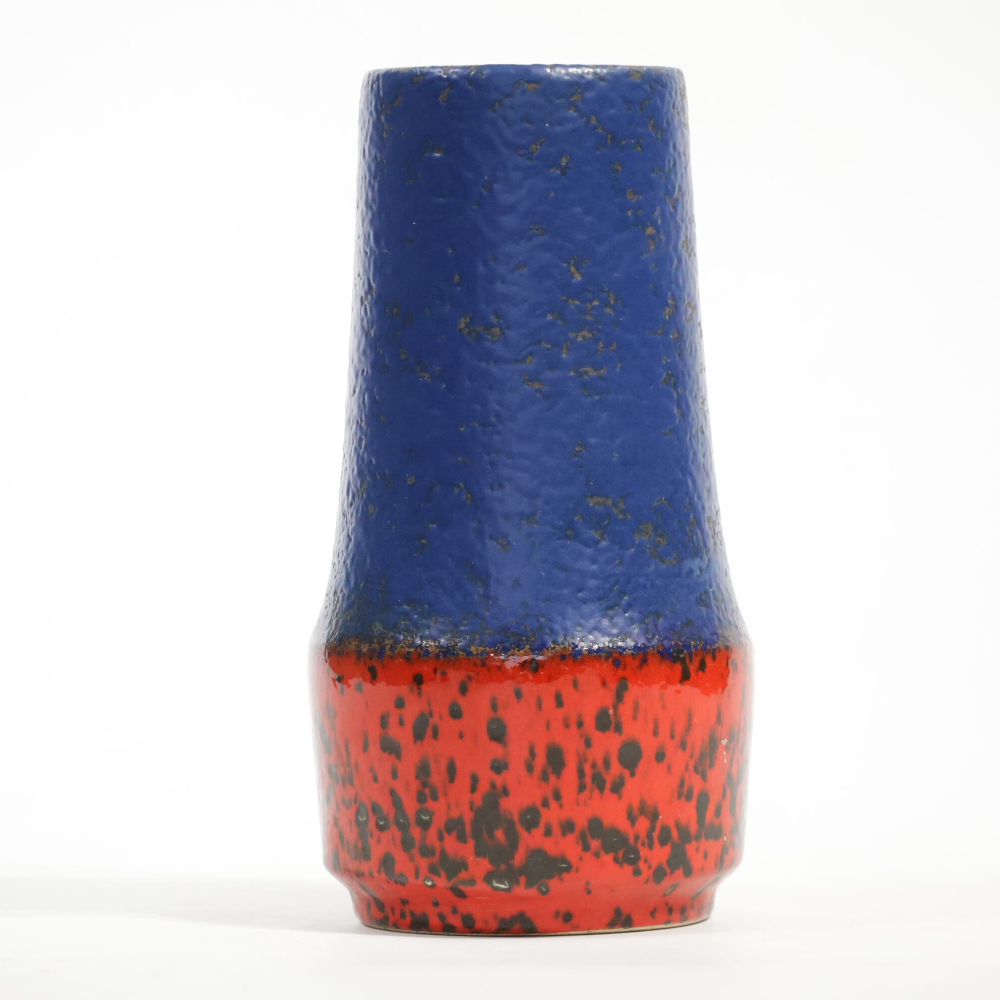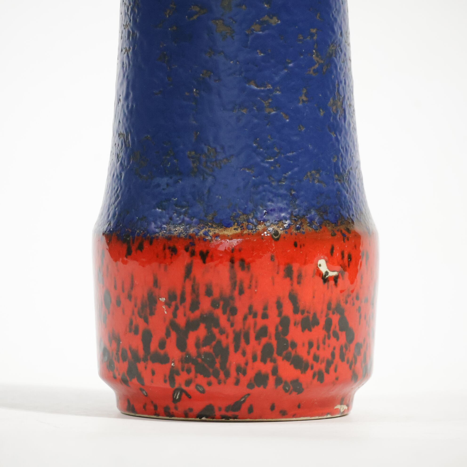 同社は急速に成長し、1950~80年代には陶 器製造の分野でドイツ最大のメーカーとなり、今日も確固たる地位を維持しています。形状に加えて釉薬でも、当時は最も幅広い品揃えを誇った他、輸出量も最大だったため、現在でも同社の製品はよく見られます。特に円筒形を基調にし たシンプルな形状で、型押し模様のある床置き 花瓶が代表的。色彩については当時主流だっ た赤やオレンジから、クリーム、ベージュ、茶色 などが多くを占めています。