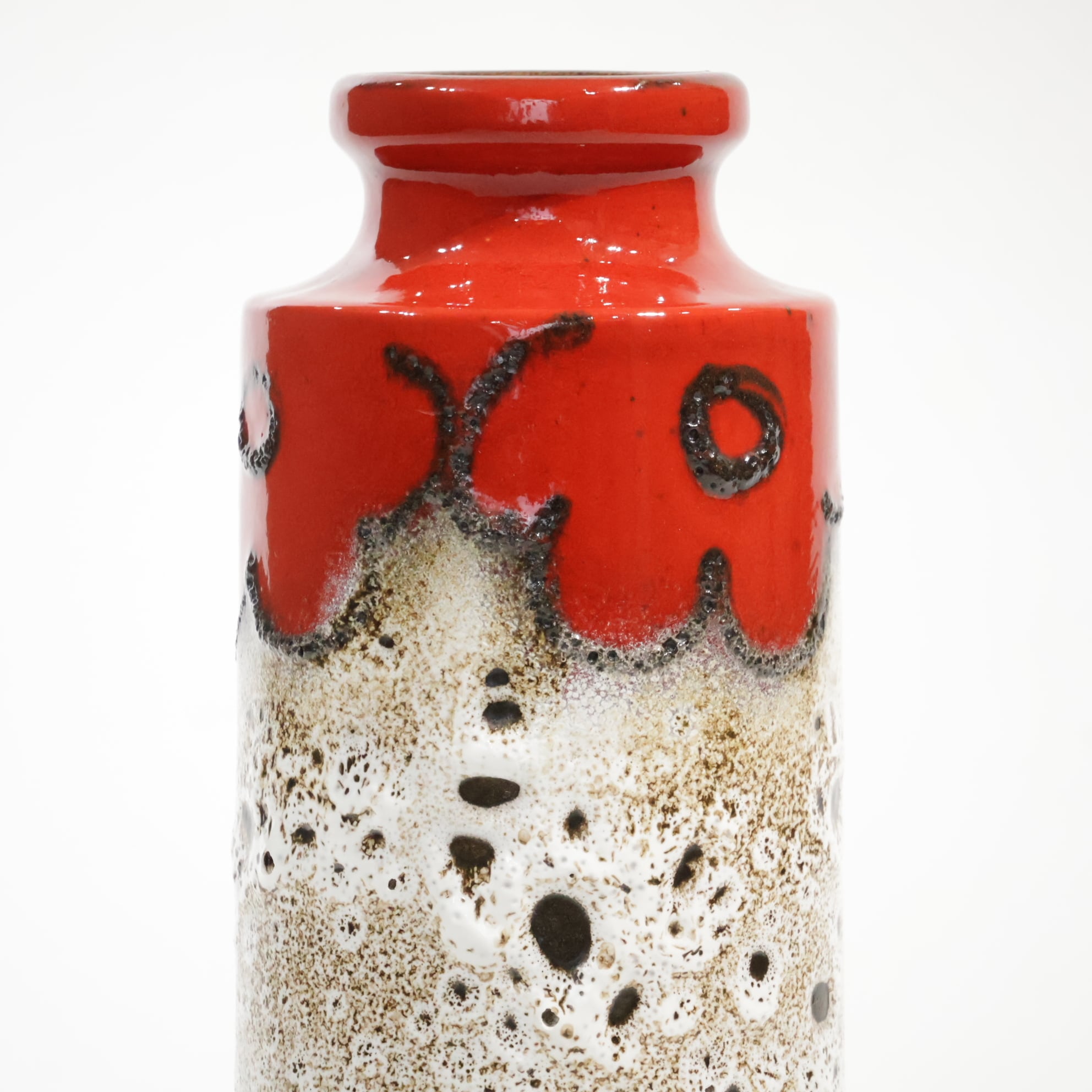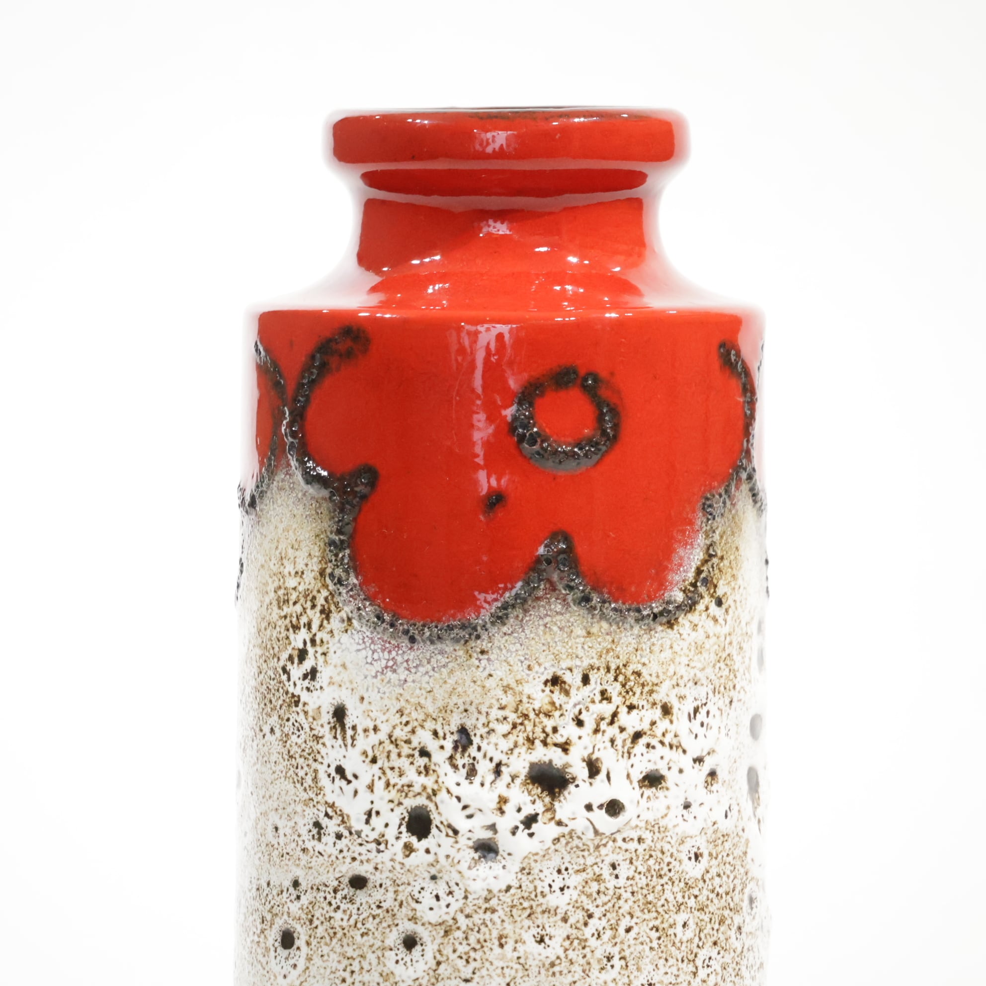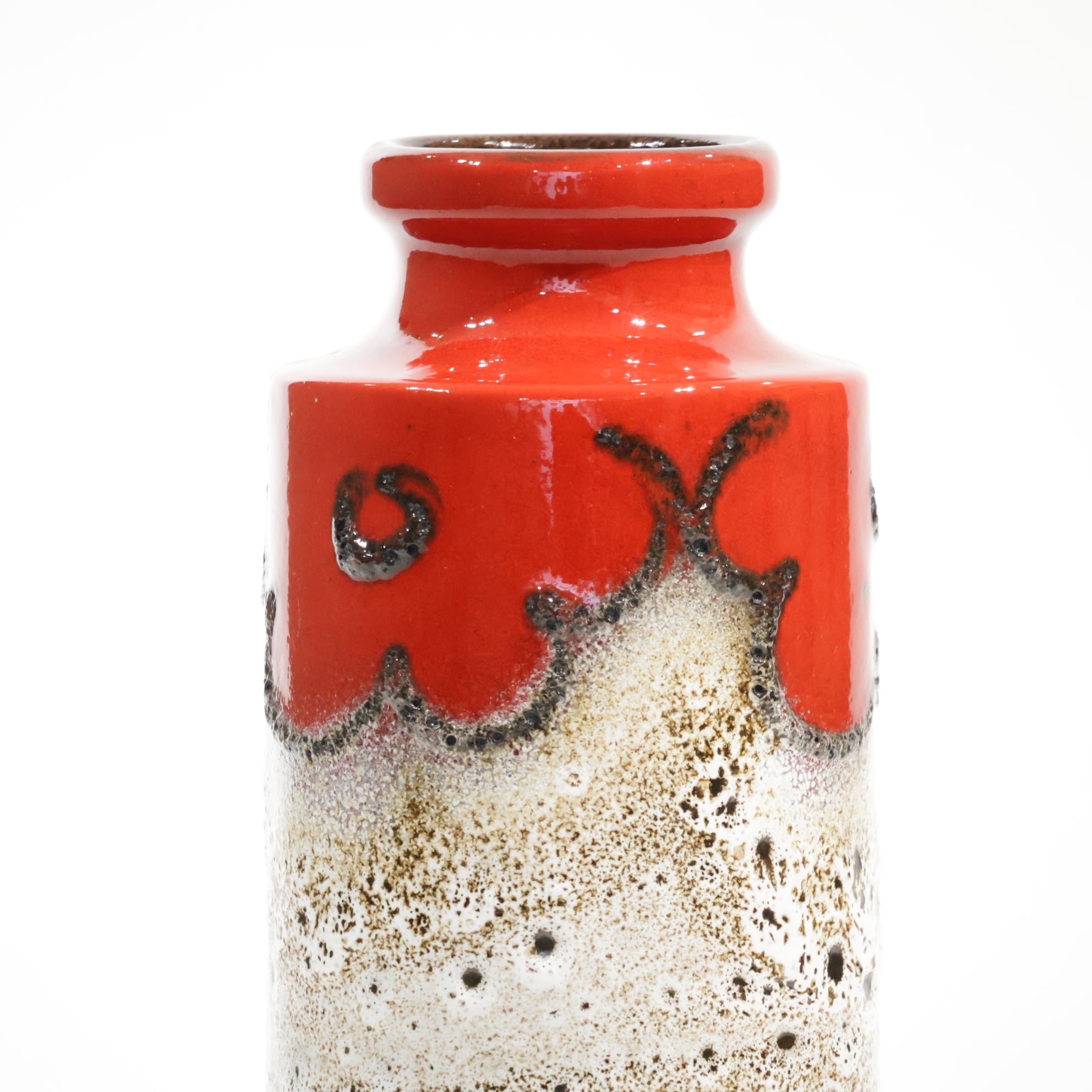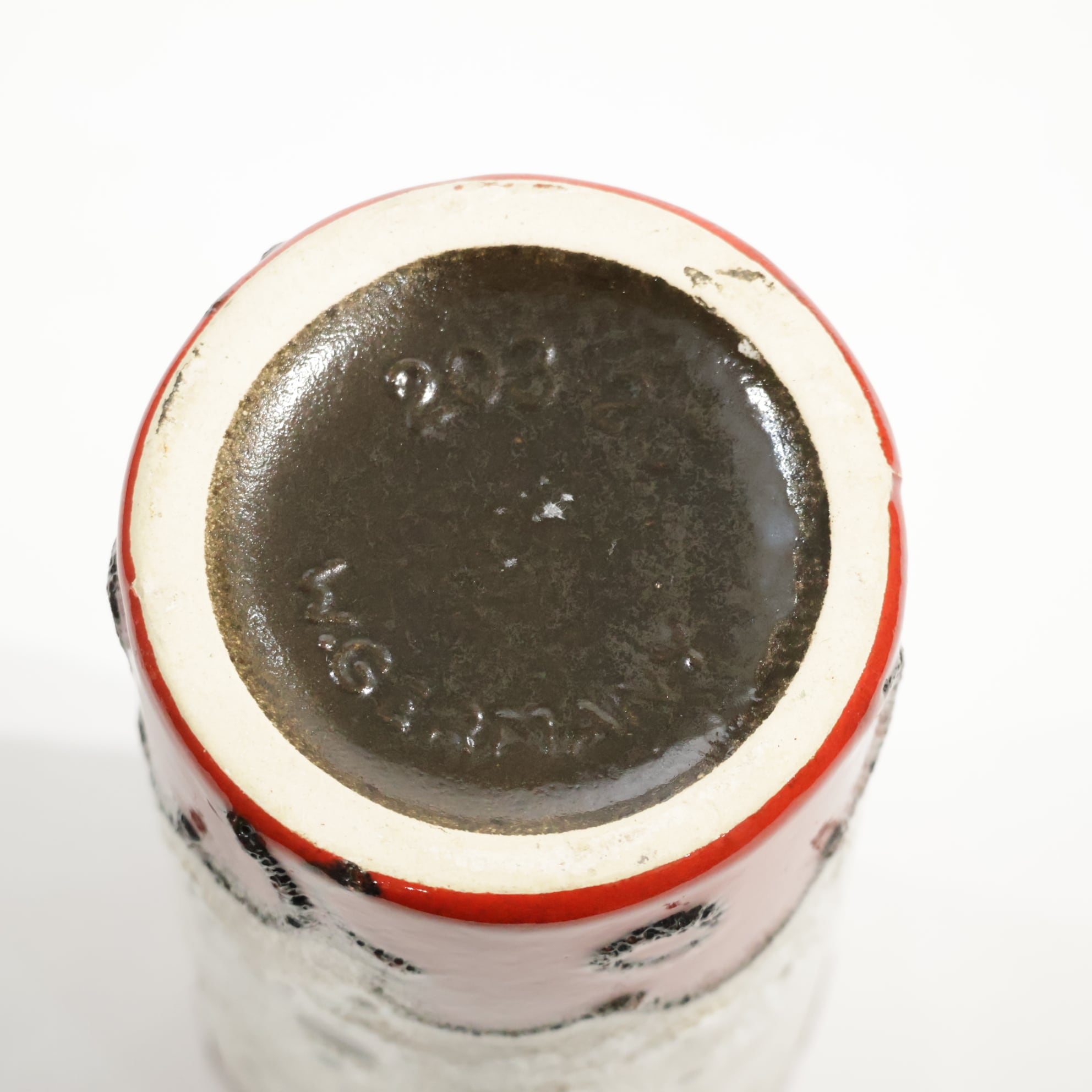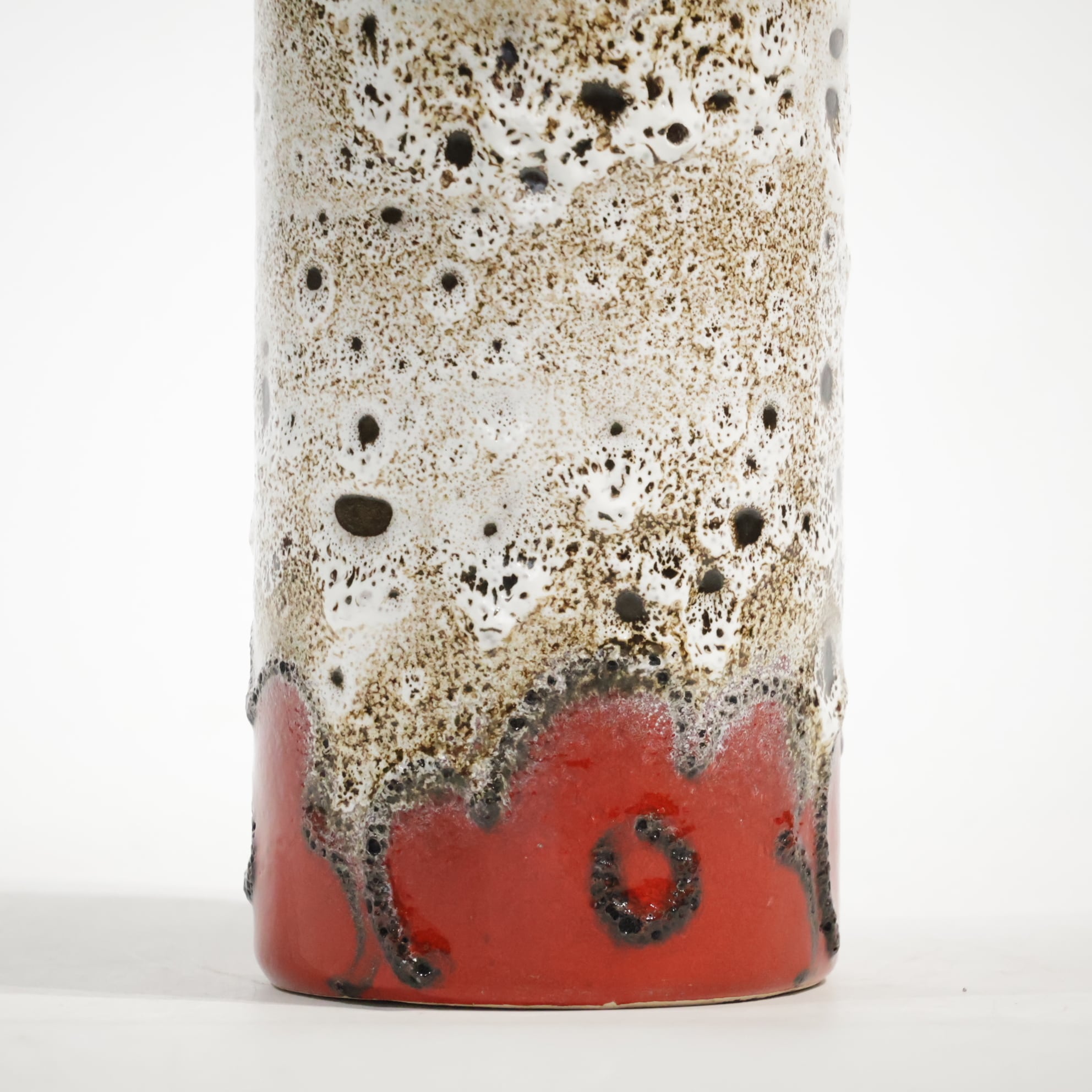 同社は急速に成長し、1950~80年代には陶 器製造の分野でドイツ最大のメーカーとなり、今日も確固たる地位を維持しています。形状に加えて釉薬でも、当時は最も幅広い品揃えを誇った他、輸出量も最大だったため、現在でも同社の製品はよく見られます。特に円筒形を基調にし たシンプルな形状で、型押し模様のある床置き 花瓶が代表的。色彩については当時主流だっ た赤やオレンジから、クリーム、ベージュ、茶色 などが多くを占めています。