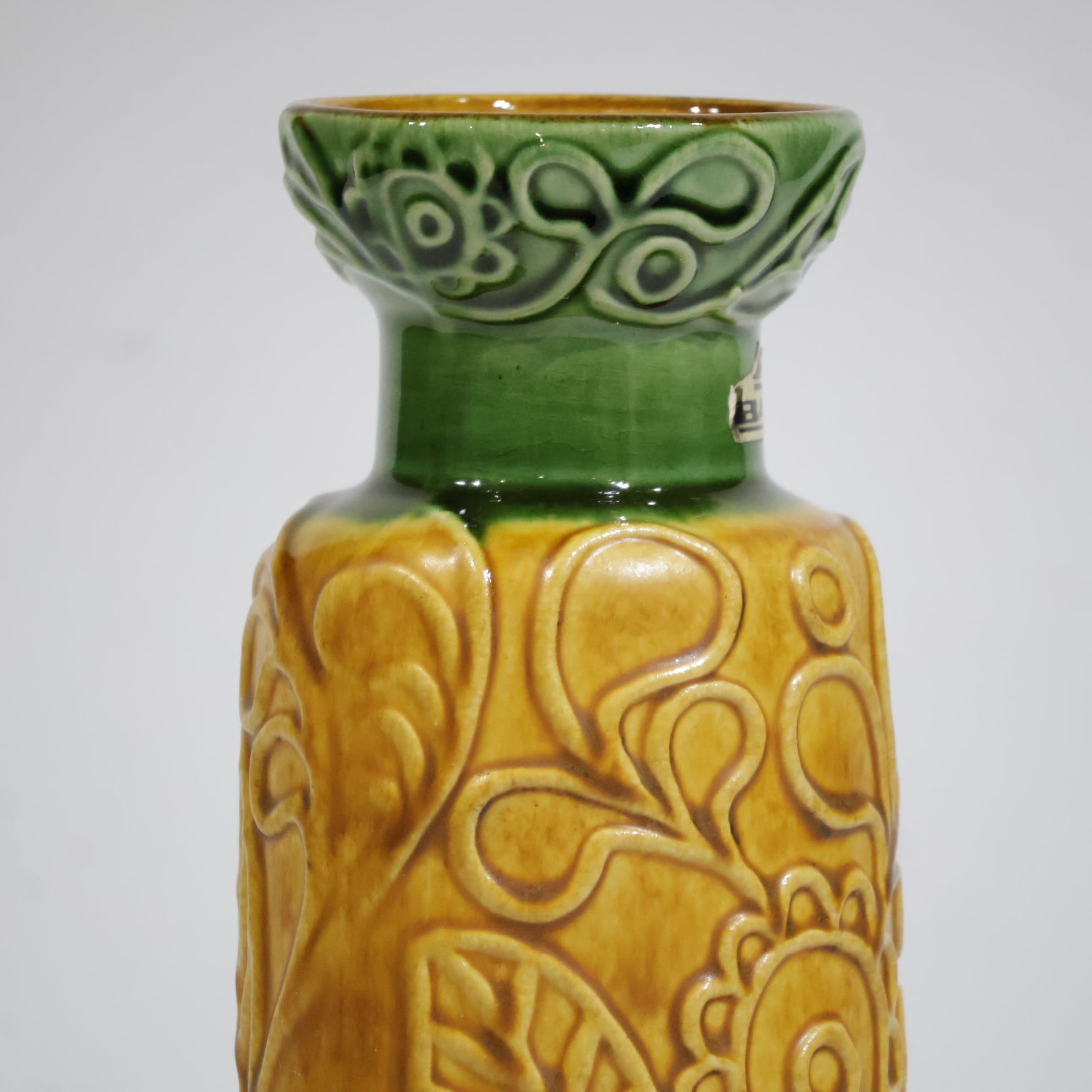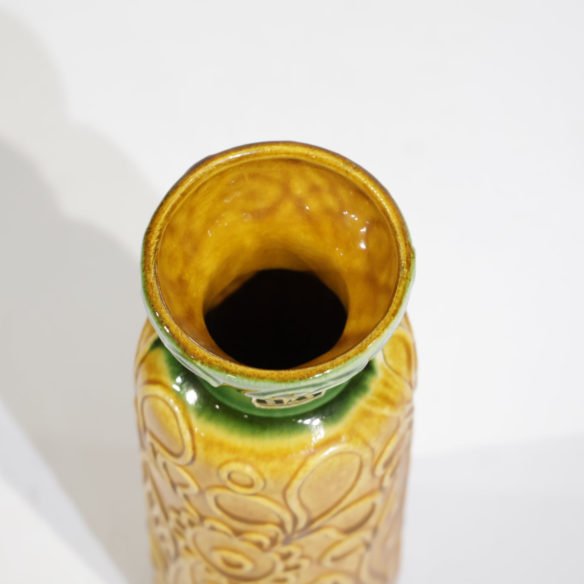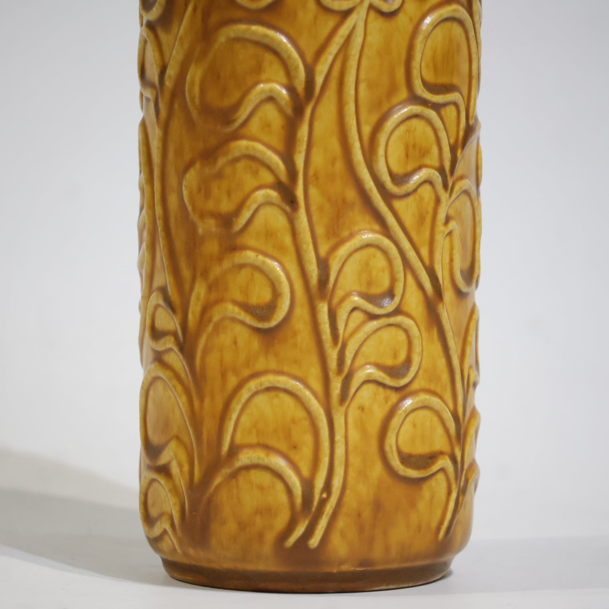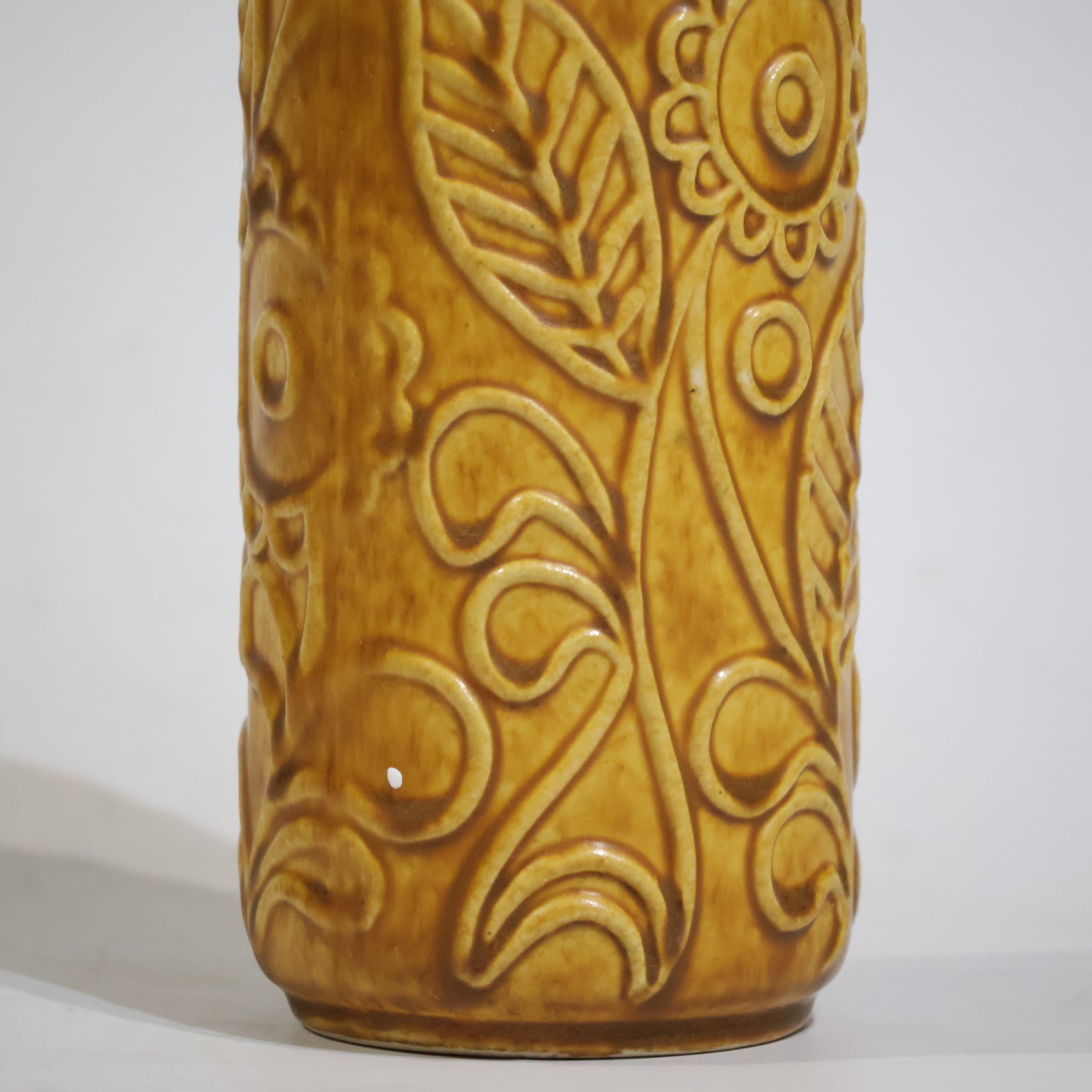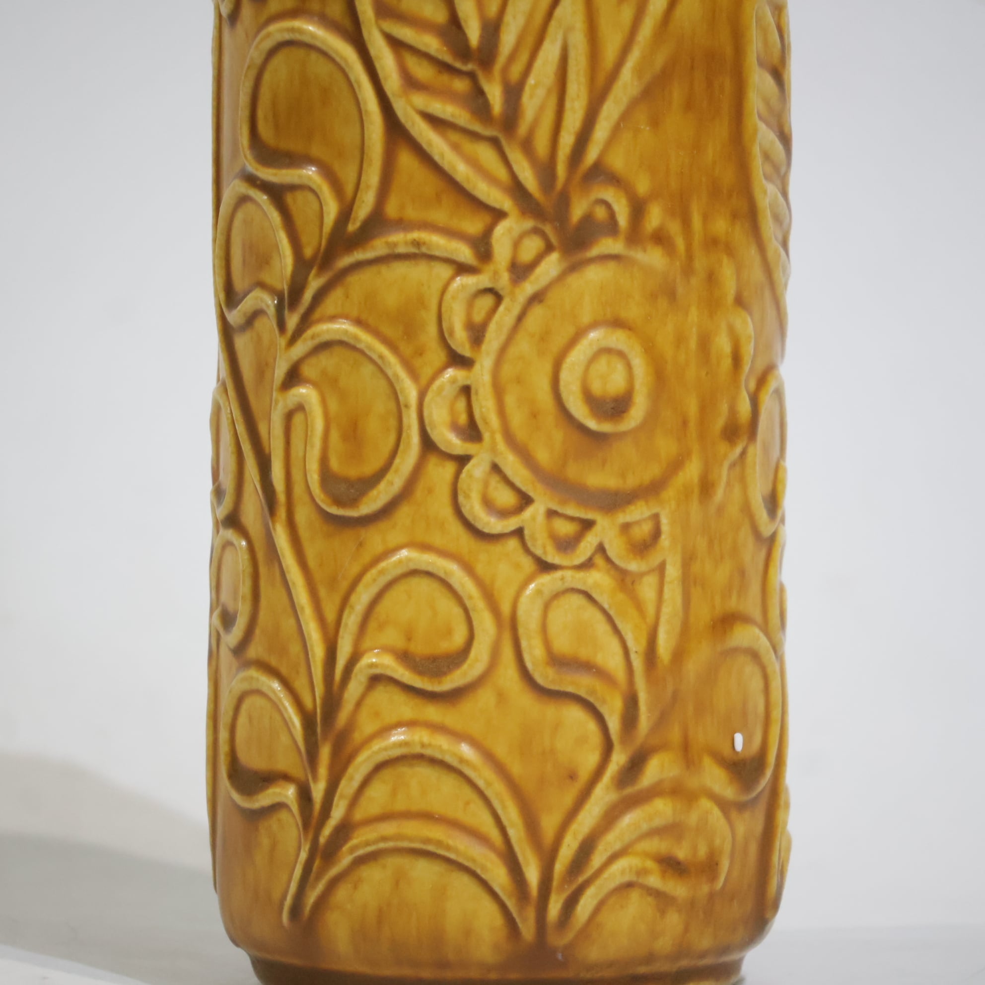 1960年代からのスタイルとしては、 当時広く流行していた色彩の釉薬(マットまたは 光沢あり)を使用し、シンプルなフォルムの上に様 式化した花の図柄の型押しや幾何学模様をあし らったものが多く、Scheurichのも のと混同されがちです。
