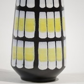 Strehlaの作品は、60年代後半から70年代にかけて、手作業で追加されたチューブで裏打ちされたFat Lava釉薬を使用した装飾によって特徴づけられました。ほとんどの作品には「Strehla」と刻印されたインクが刻印されており、ベースには型番が刻印されています。おそらく生産の多くが輸出されたので、アイテムは西ドイツの商品よりドイツで見つけるのが難しいです。