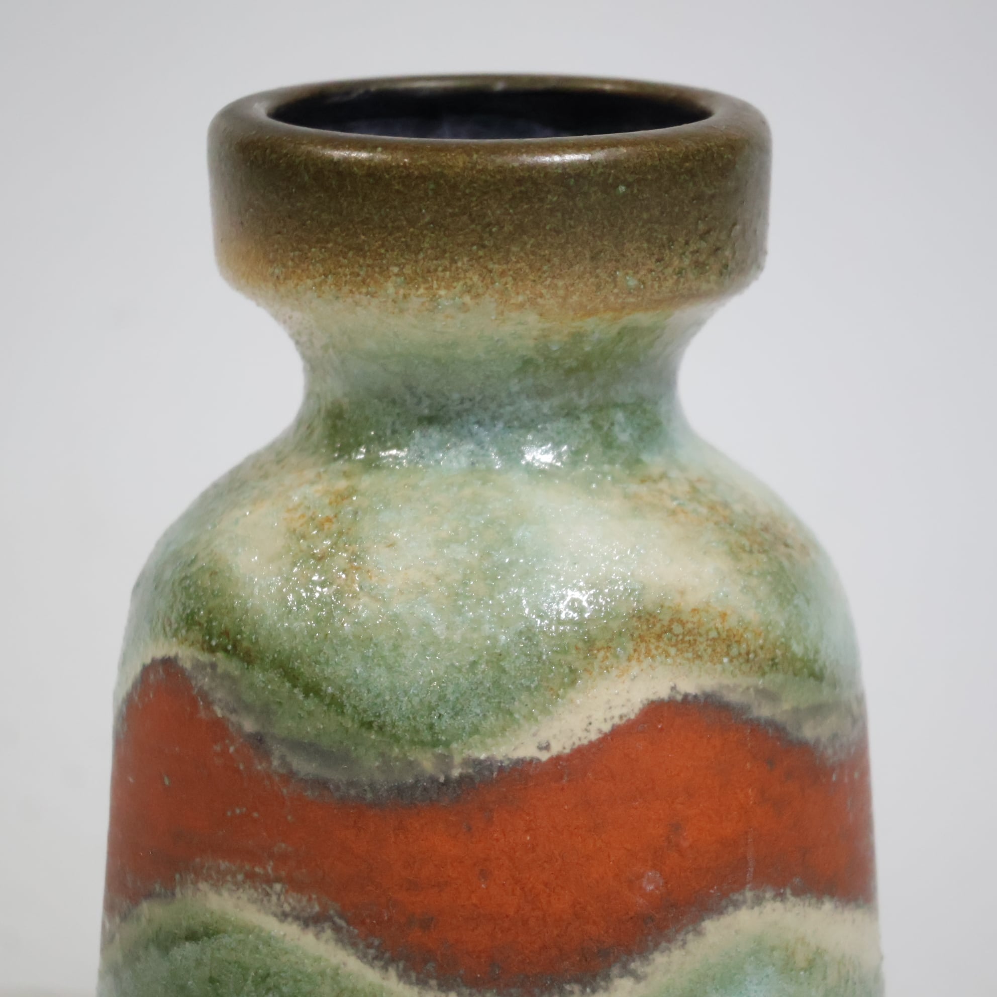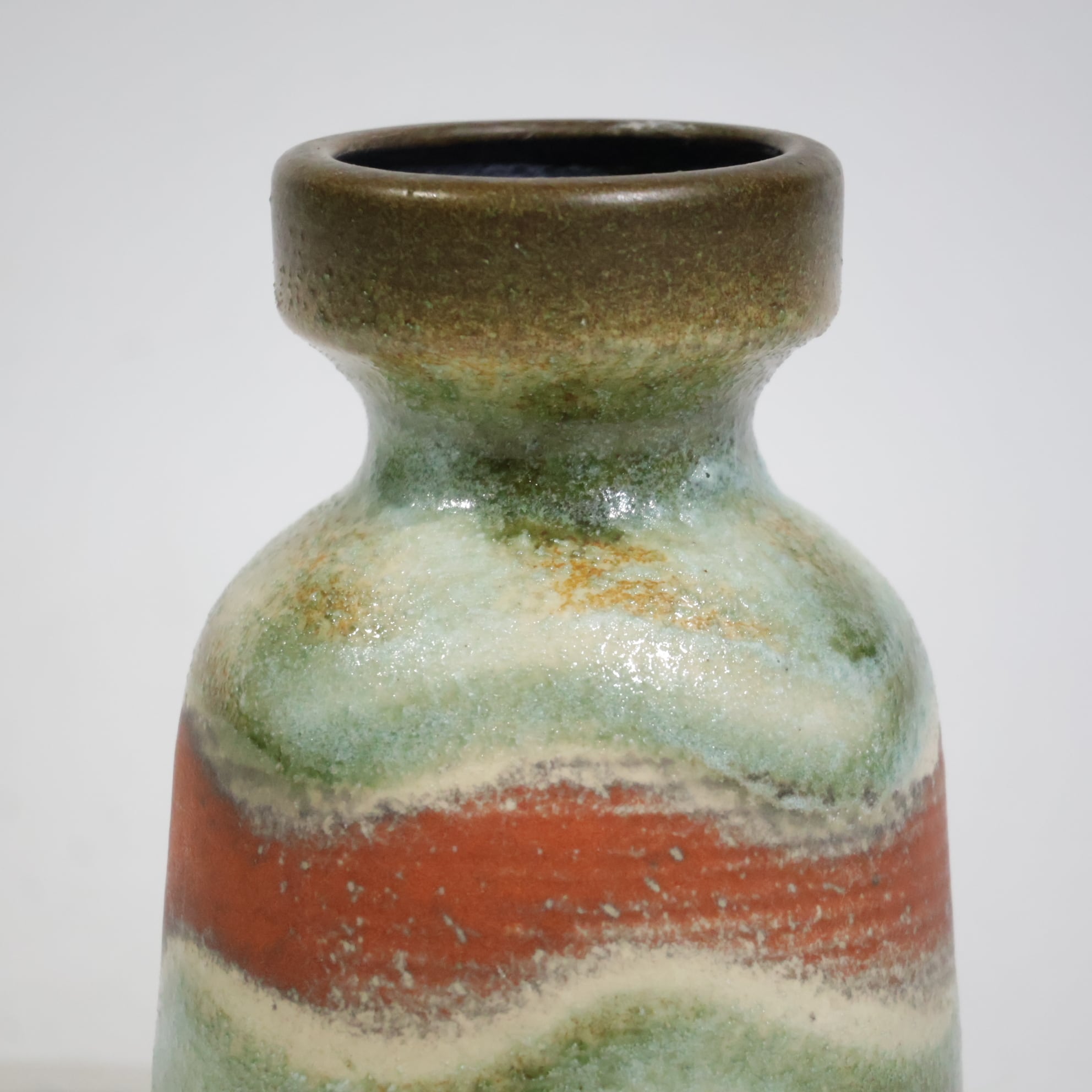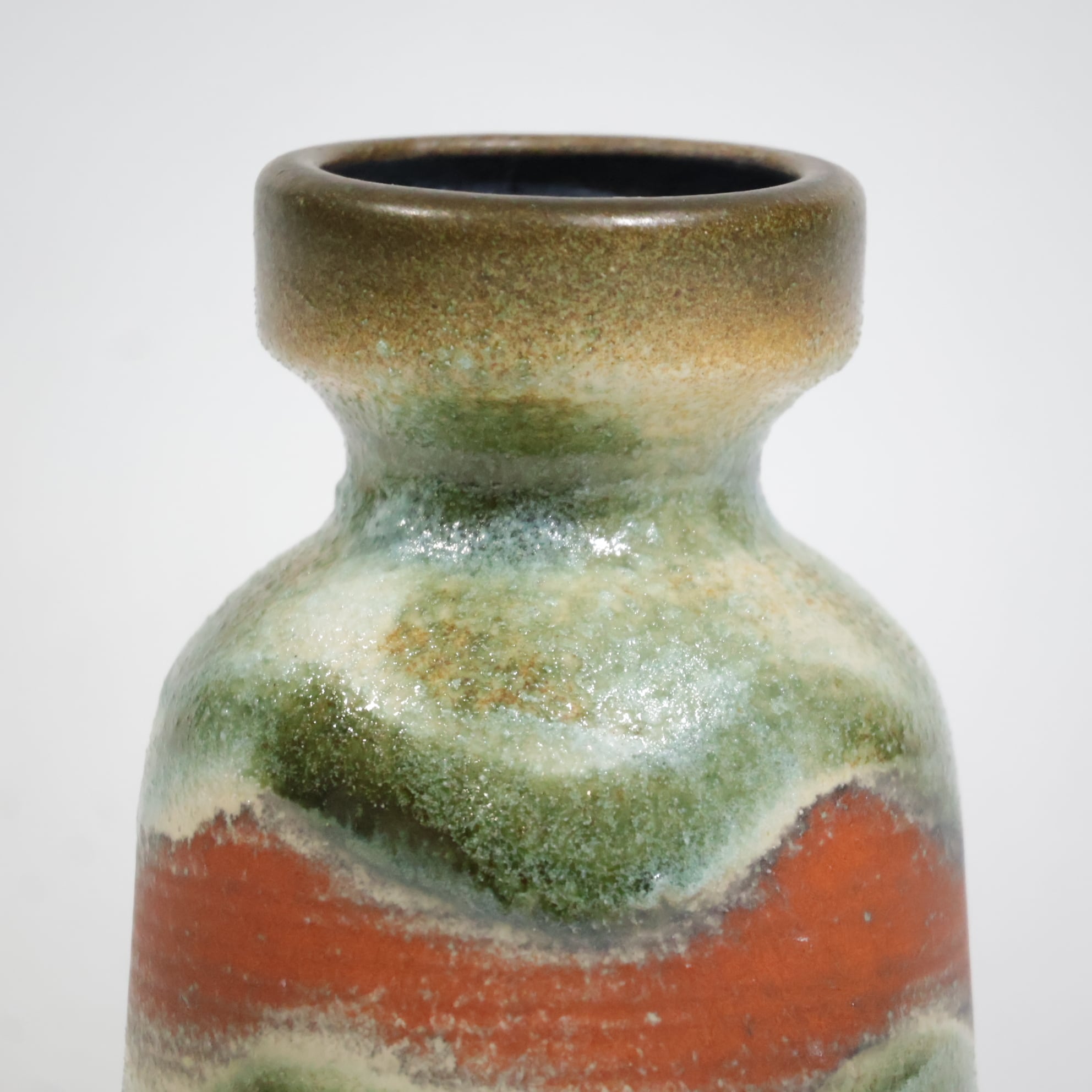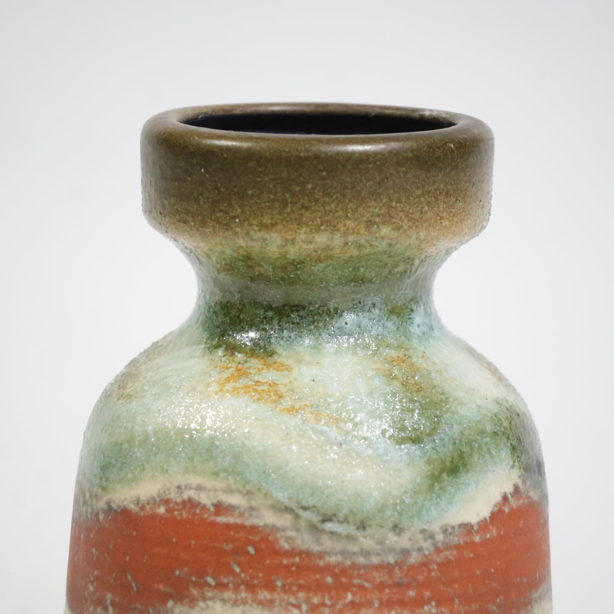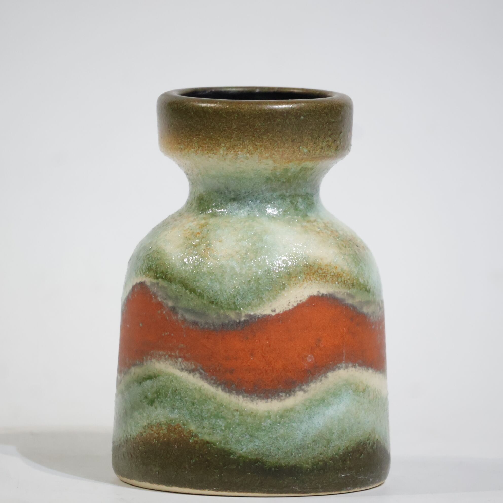 1960年代後半には一目で見分けがつく銅色の釉薬を開発し、ベージュの色調や泡状の滴る溶岩釉との組み合わせがよく用いられていました。