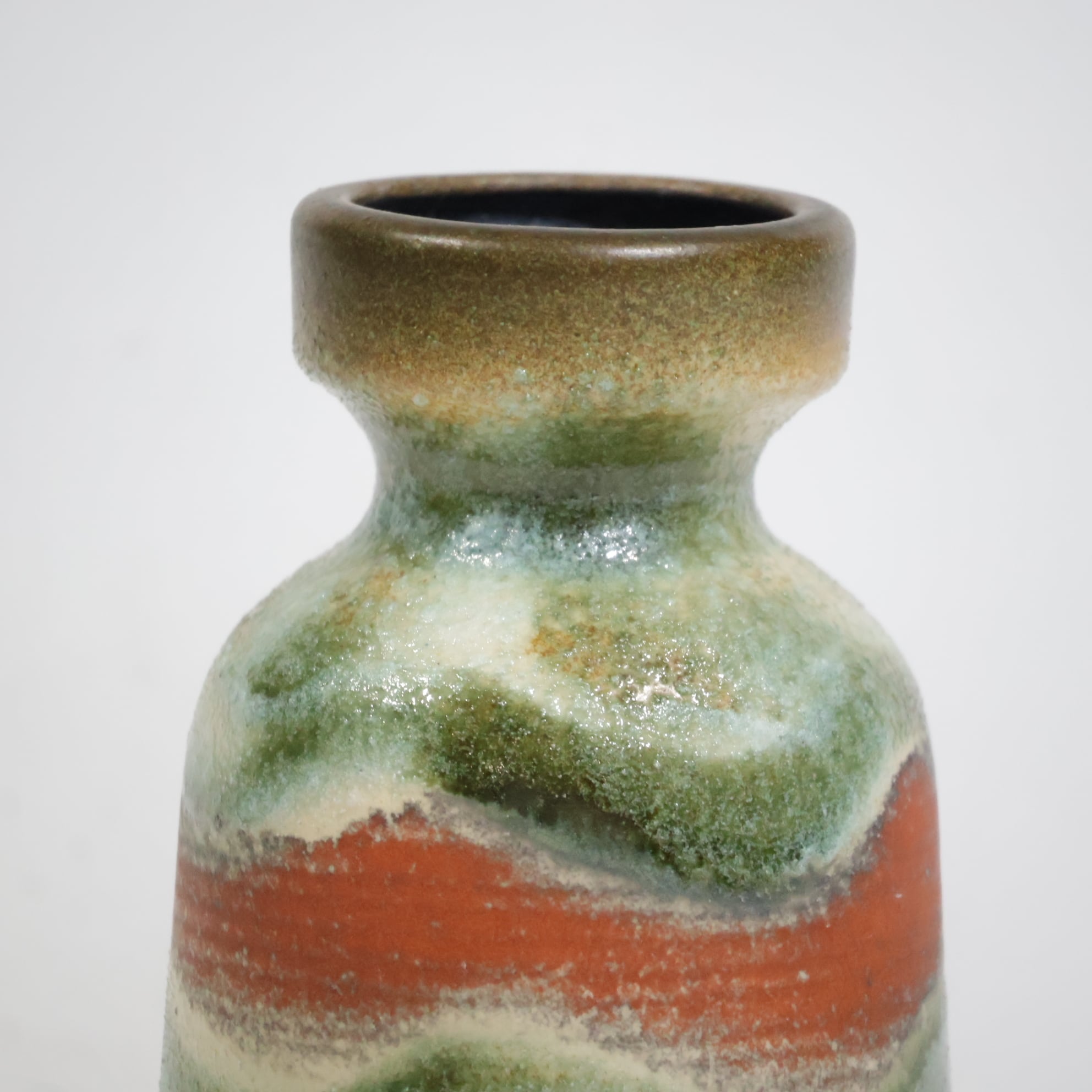 落ち着いたオリーブグリーンを基調に、中央を横切る赤茶の帯。アイボリーの層がゆるやかな波となって重なり、まるで地層の断面のような構成を見せます。