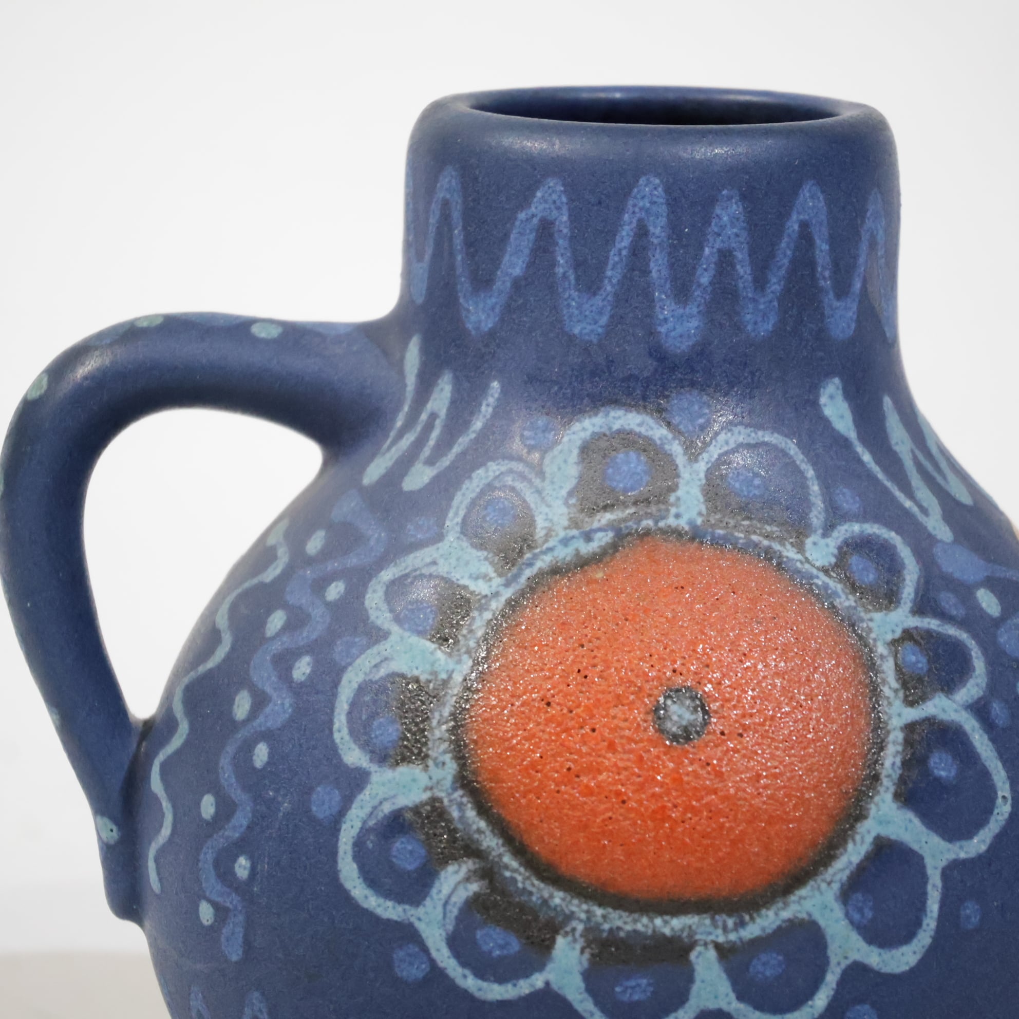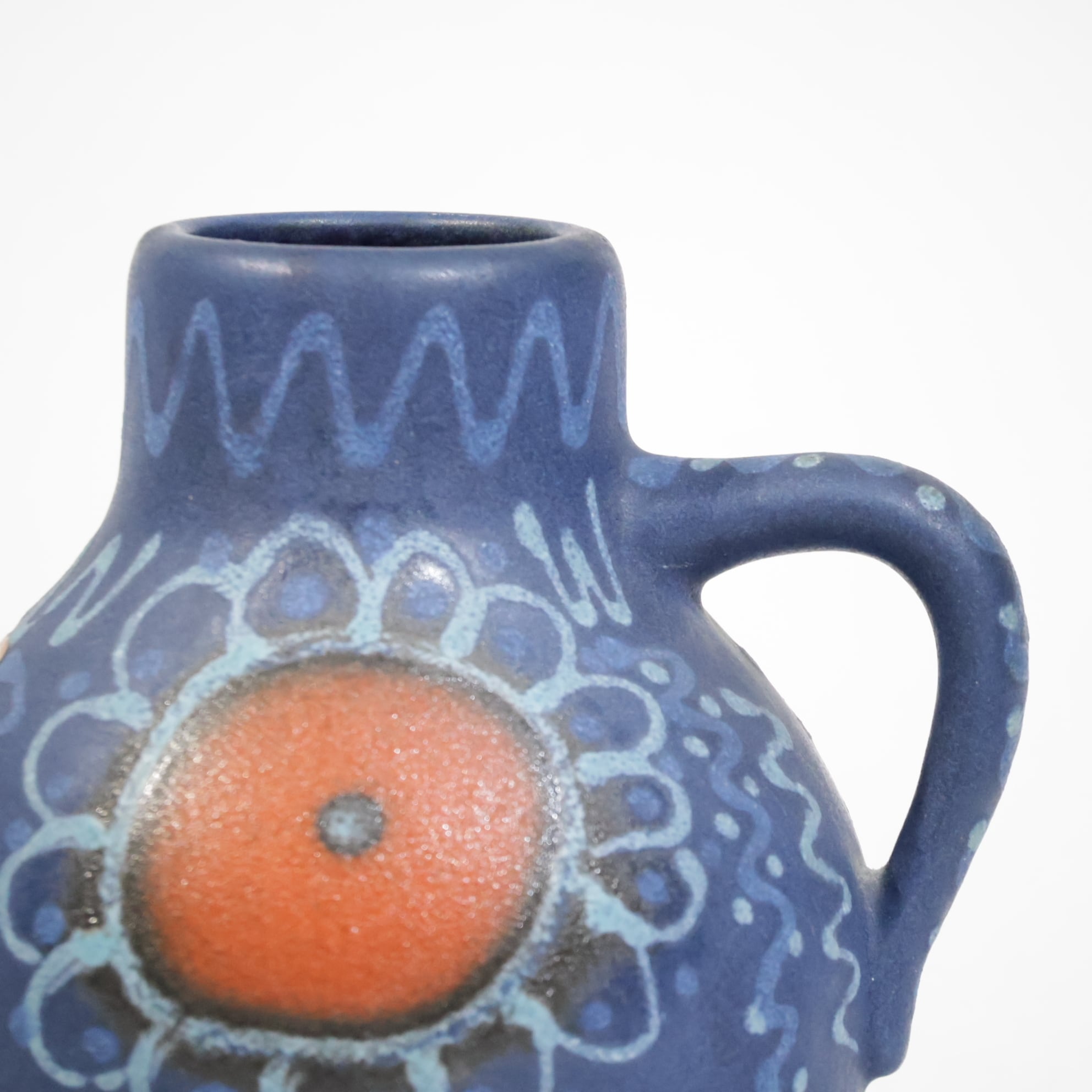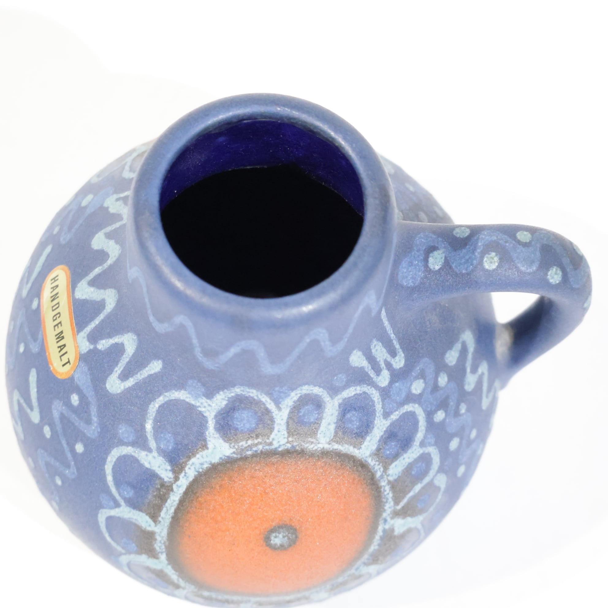 中央の橙色円形文様は、Silberdistelでよくみられる代表的な装飾構成のひとつで、手仕事の痕跡が明確に残っています。