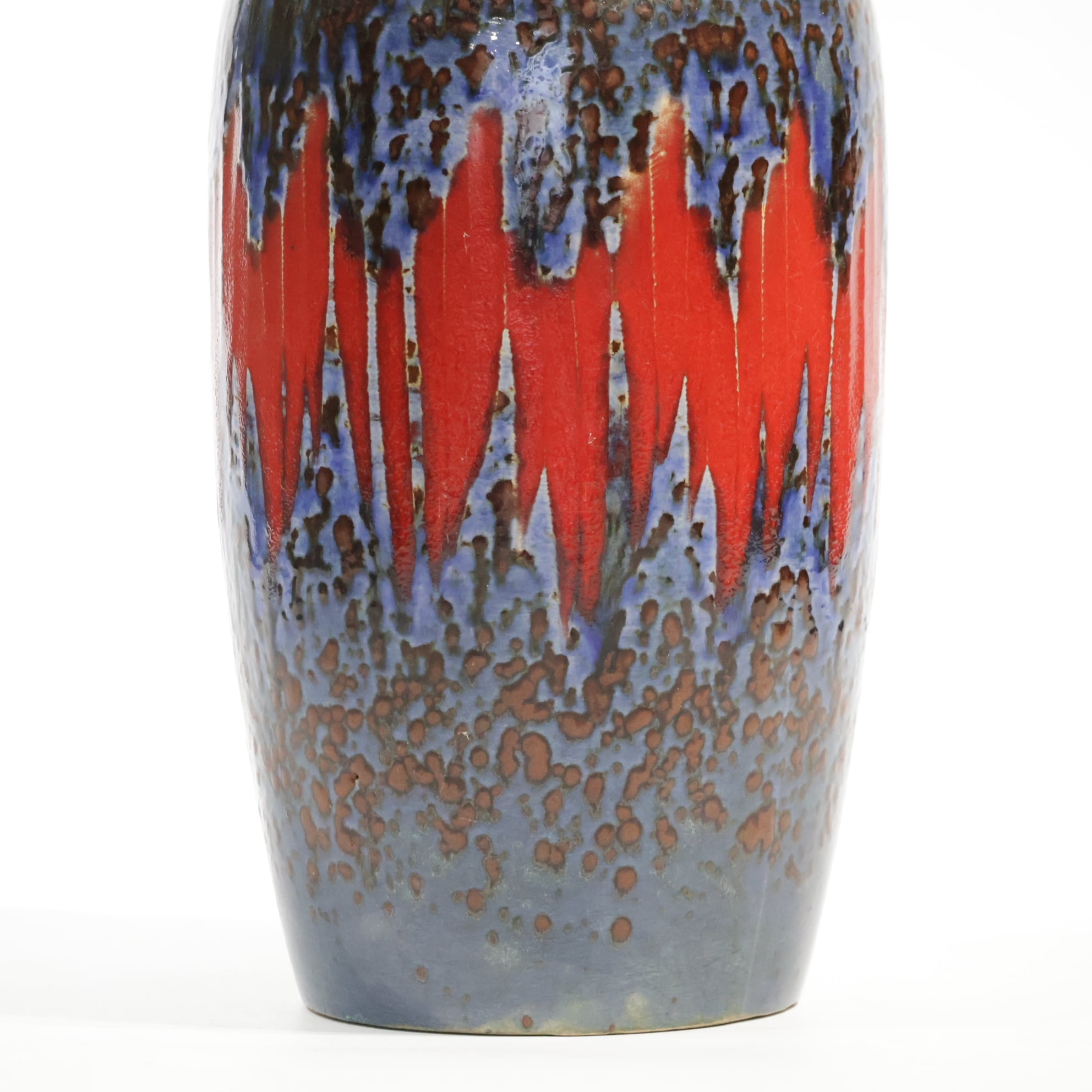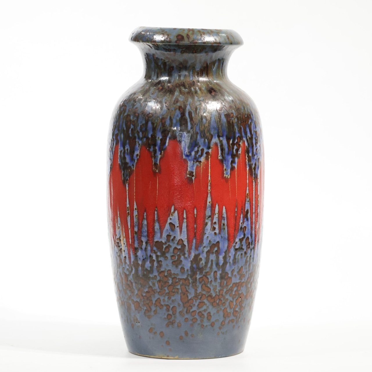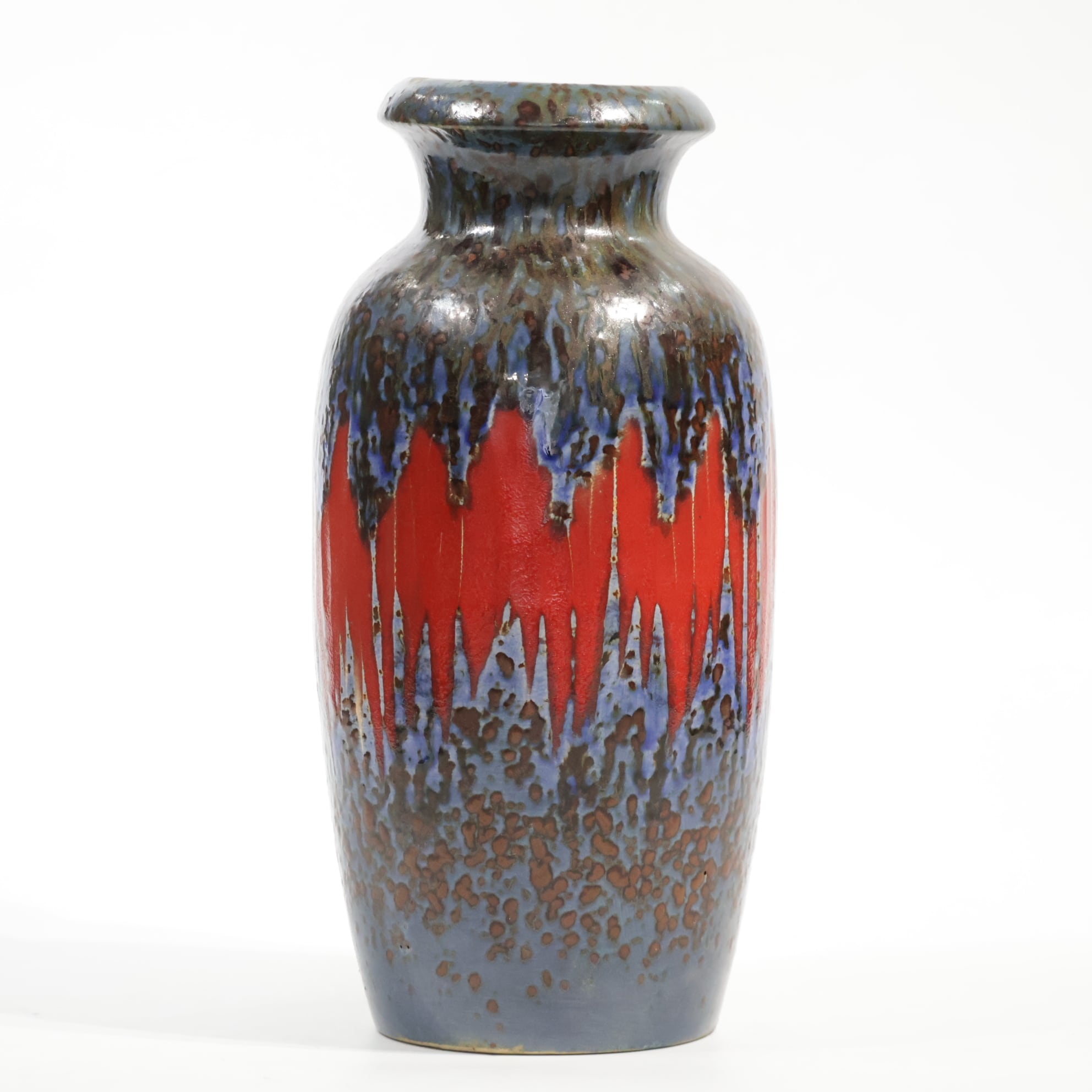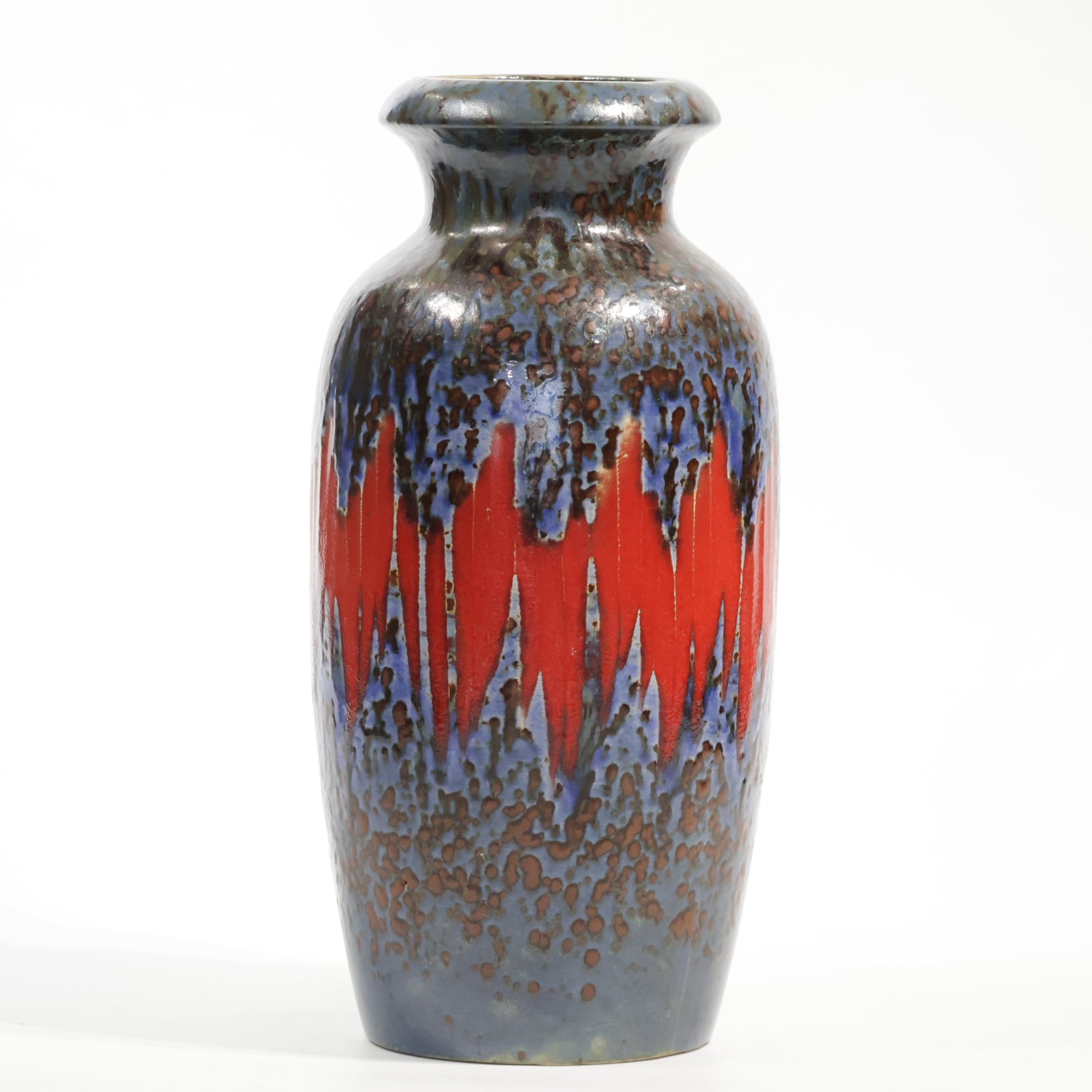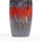 同社は急速に成長し、1950~80年代には陶 器製造の分野でドイツ最大のメーカーとなり、今日も確固たる地位を維持しています。形状に加えて釉薬でも、当時は最も幅広い品揃えを誇った他、輸出量も最大だったため、現在でも同社の製品はよく見られます。特に円筒形を基調にし たシンプルな形状で、型押し模様のある床置き 花瓶が代表的。色彩については当時主流だっ た赤やオレンジから、クリーム、ベージュ、茶色 などが多くを占めています。