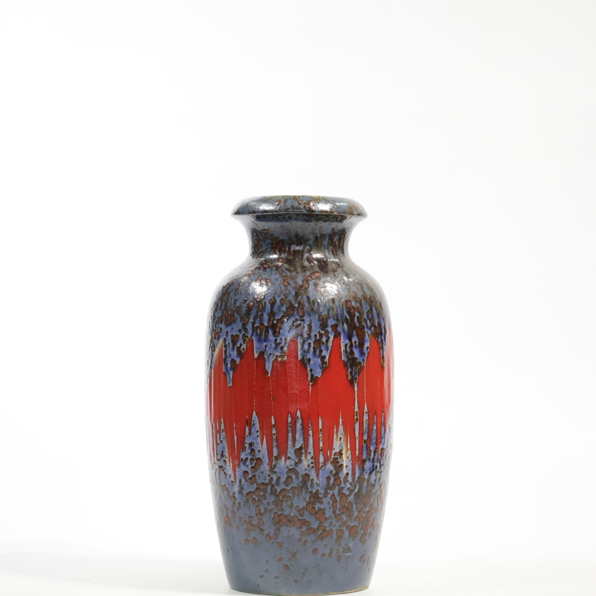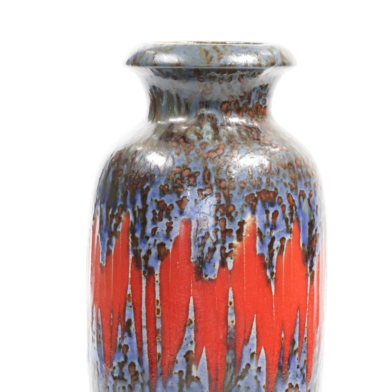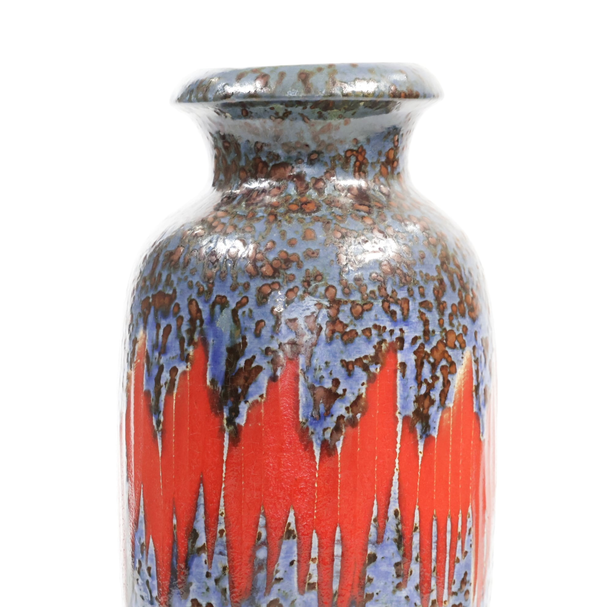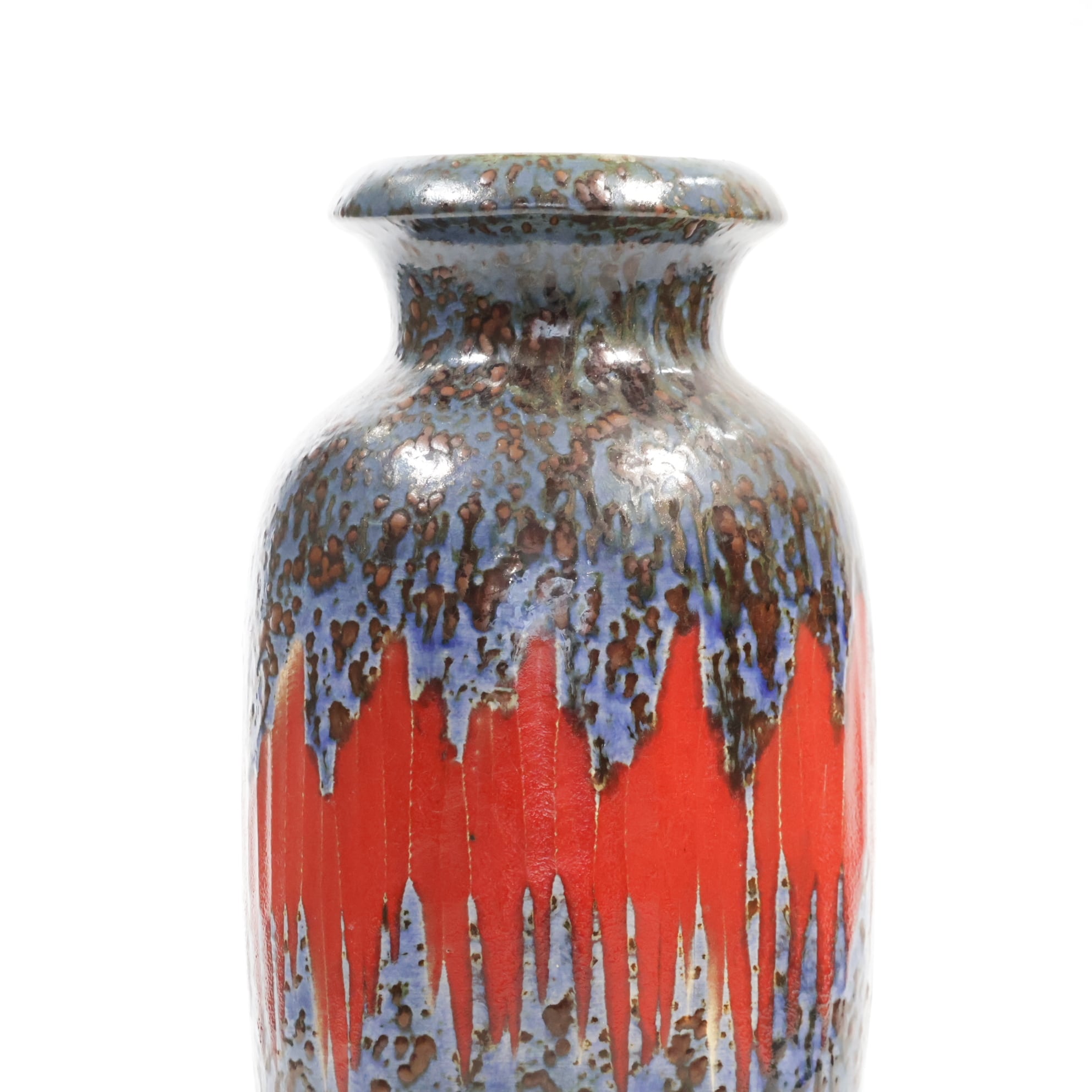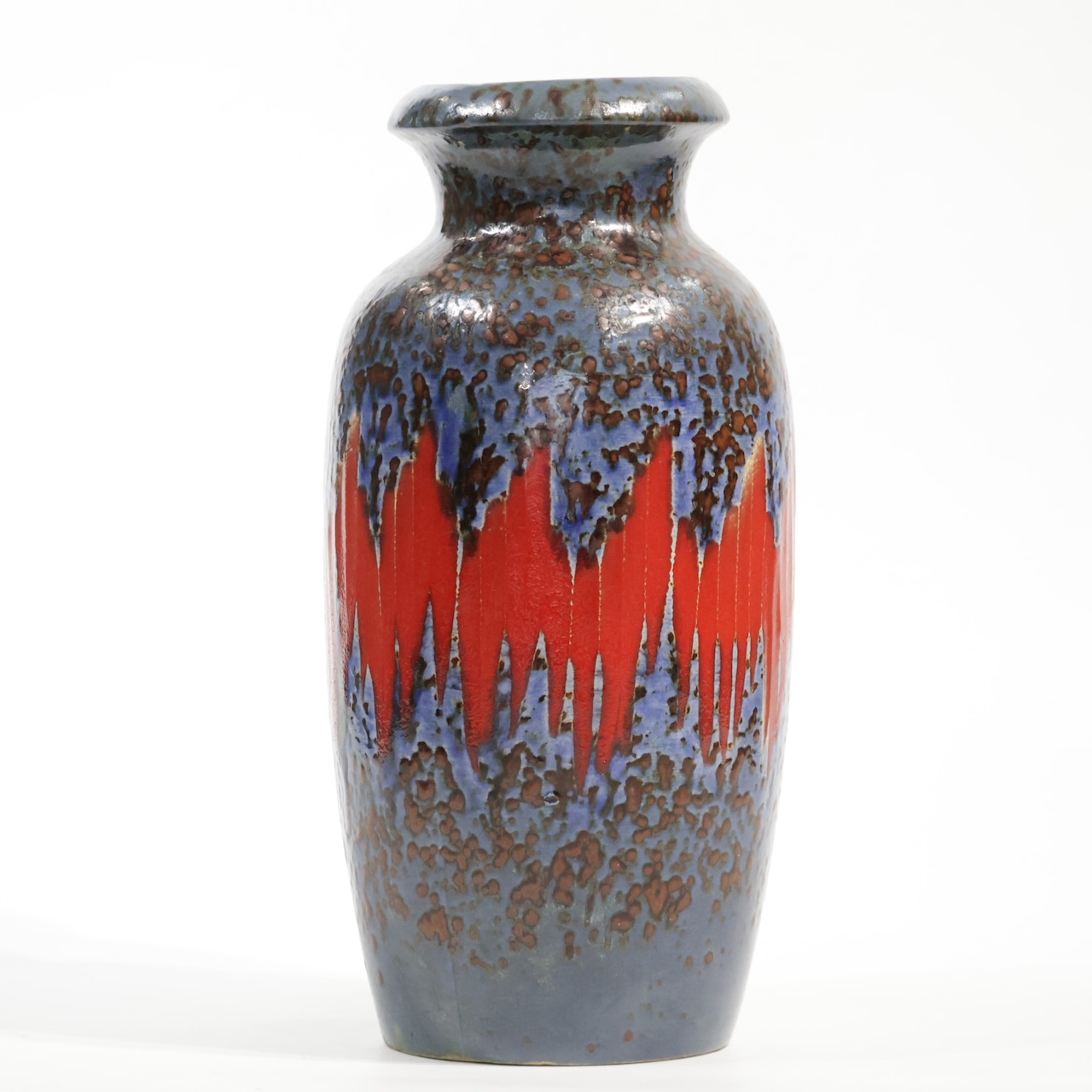 同社は急速に成長し、1950~80年代には陶 器製造の分野でドイツ最大のメーカーとなり、今日も確固たる地位を維持しています。形状に加えて釉薬でも、当時は最も幅広い品揃えを誇った他、輸出量も最大だったため、現在でも同社の製品はよく見られます。特に円筒形を基調にし たシンプルな形状で、型押し模様のある床置き 花瓶が代表的。色彩については当時主流だっ た赤やオレンジから、クリーム、ベージュ、茶色 などが多くを占めています。