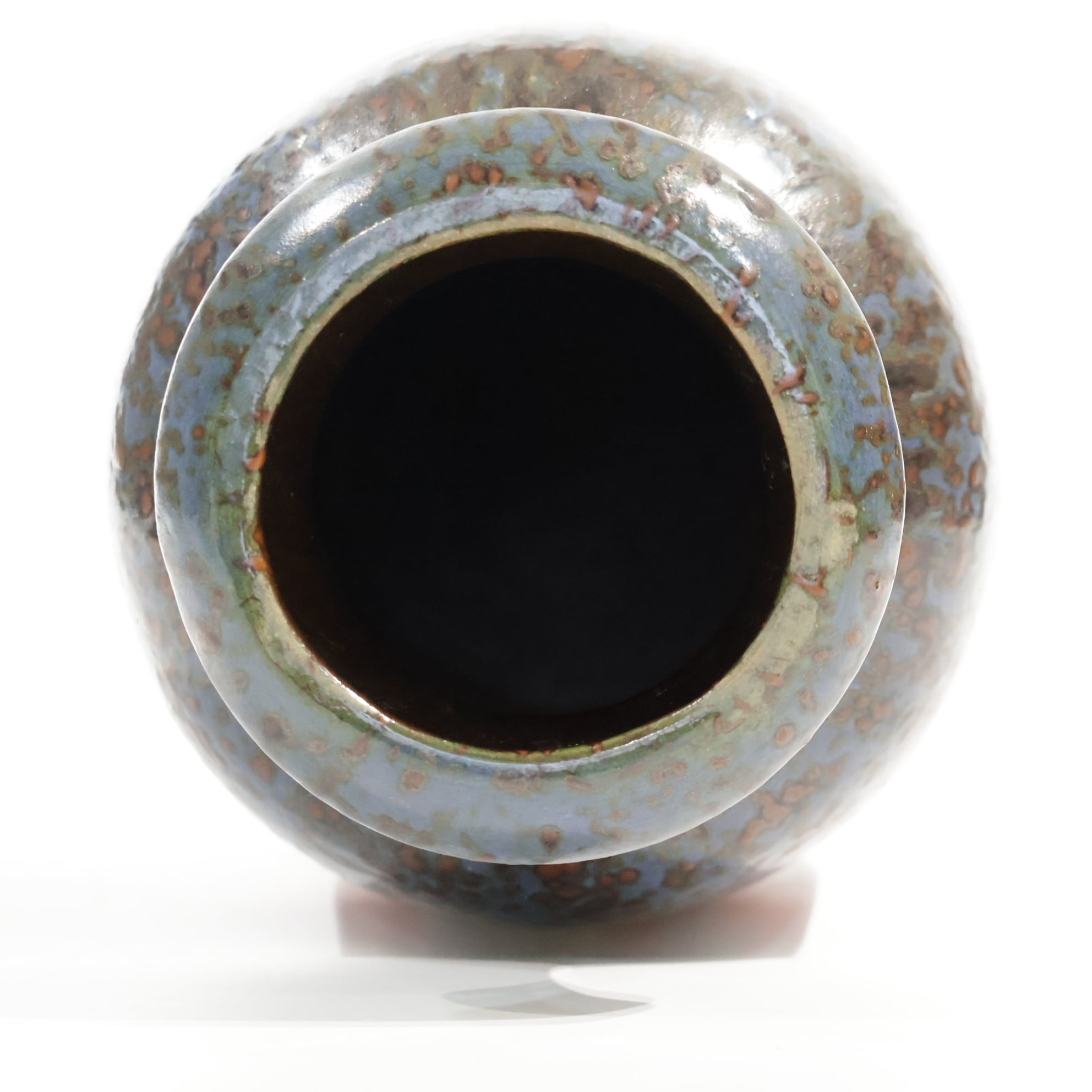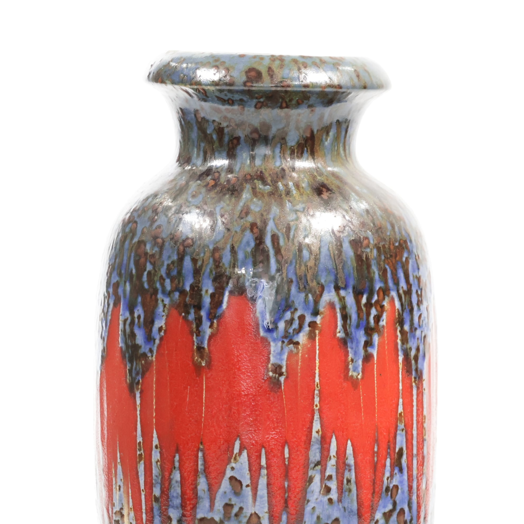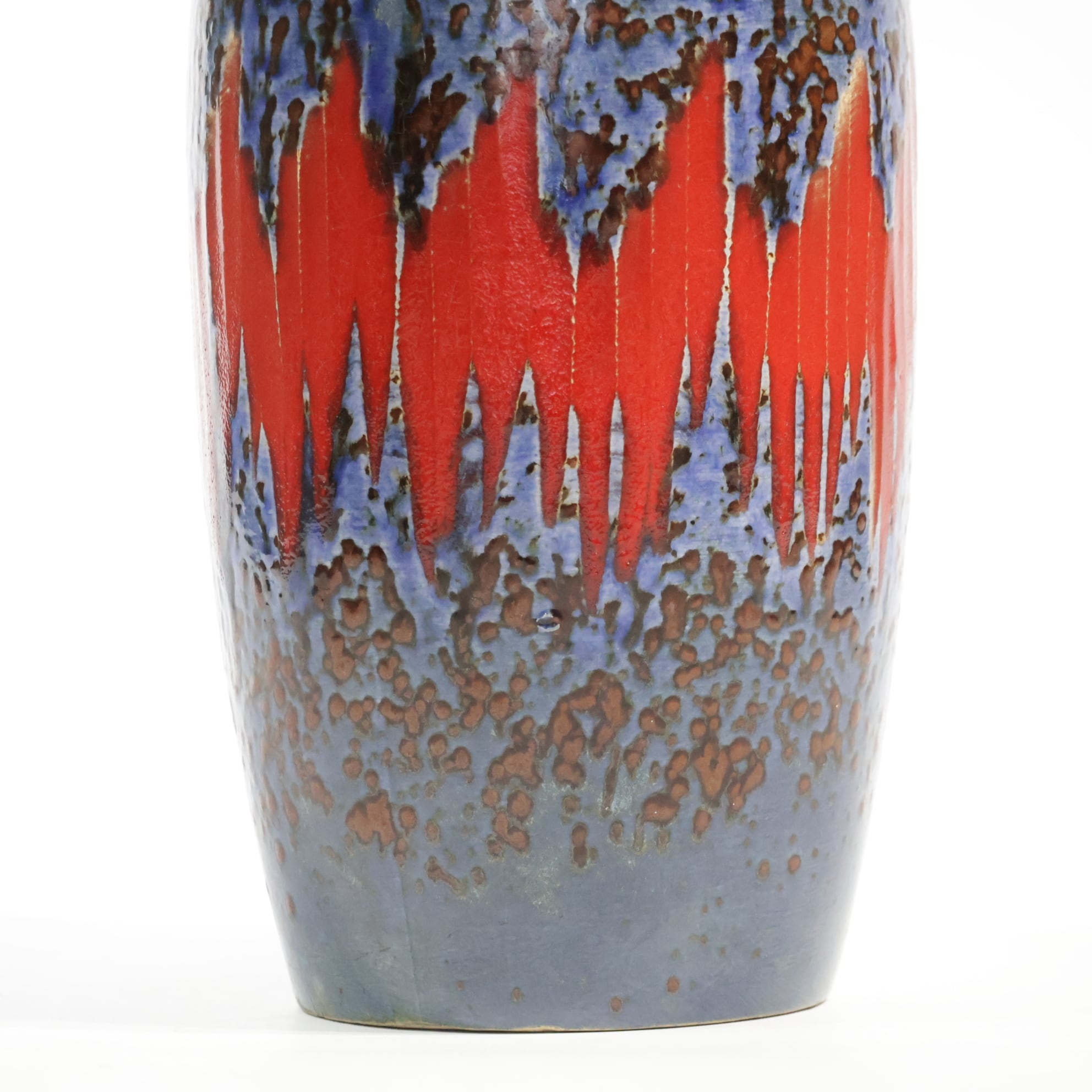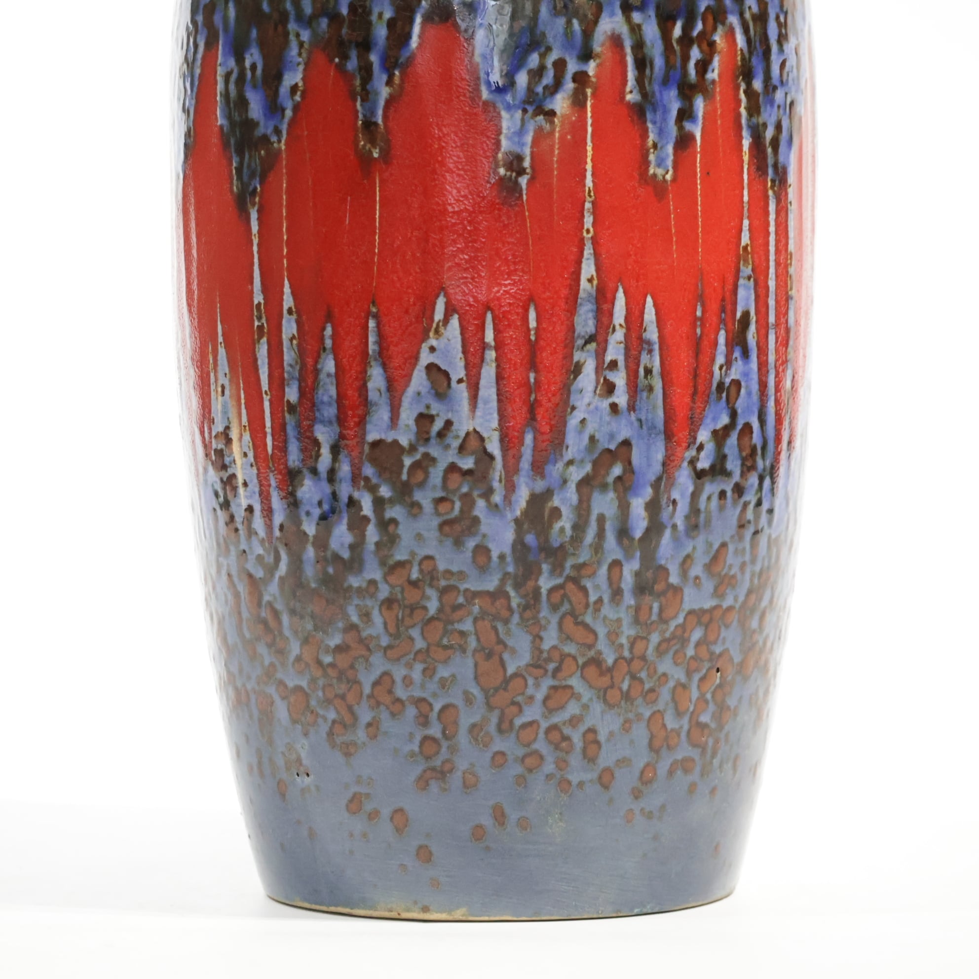 同社は急速に成長し、1950~80年代には陶 器製造の分野でドイツ最大のメーカーとなり、今日も確固たる地位を維持しています。形状に加えて釉薬でも、当時は最も幅広い品揃えを誇った他、輸出量も最大だったため、現在でも同社の製品はよく見られます。特に円筒形を基調にし たシンプルな形状で、型押し模様のある床置き 花瓶が代表的。色彩については当時主流だっ た赤やオレンジから、クリーム、ベージュ、茶色 などが多くを占めています。