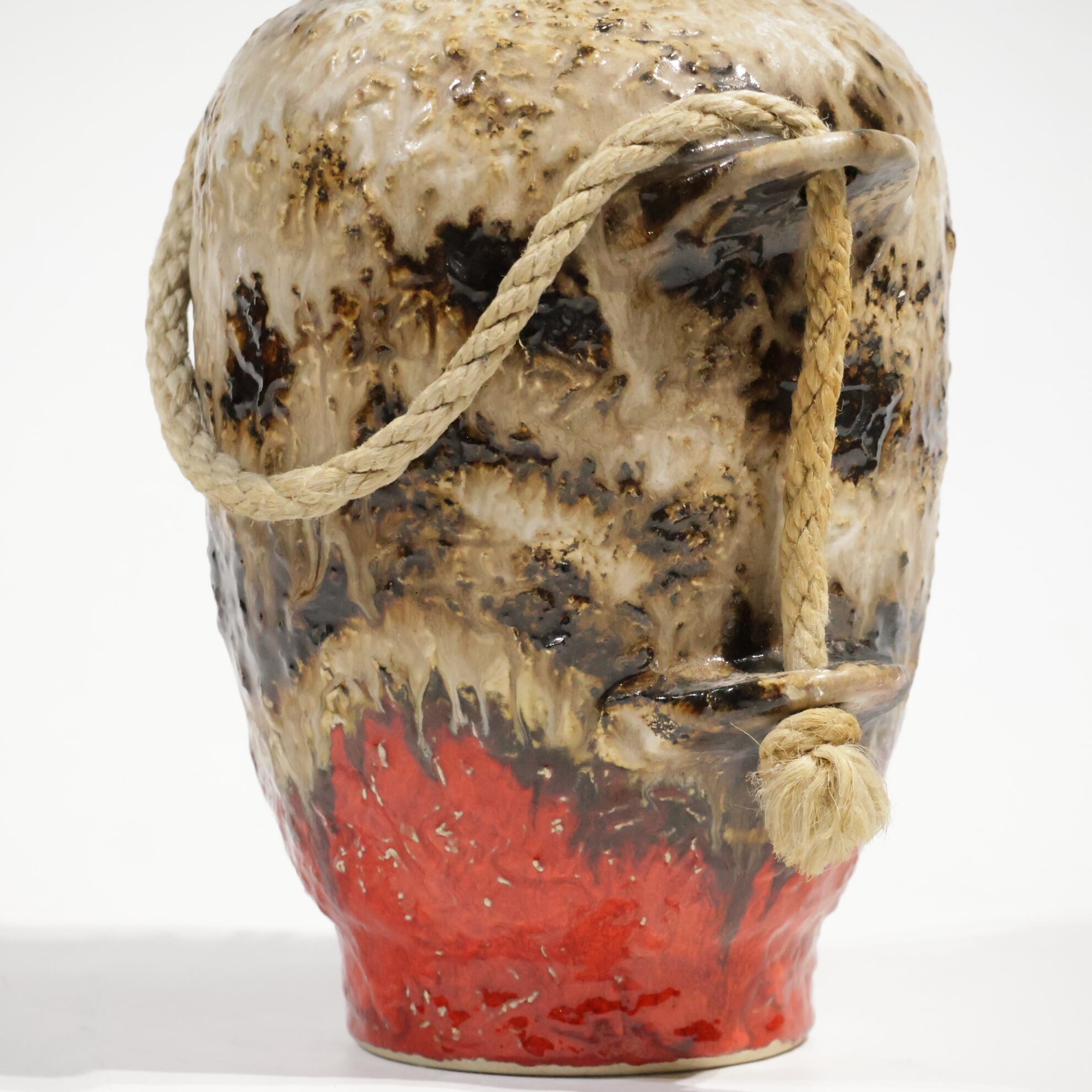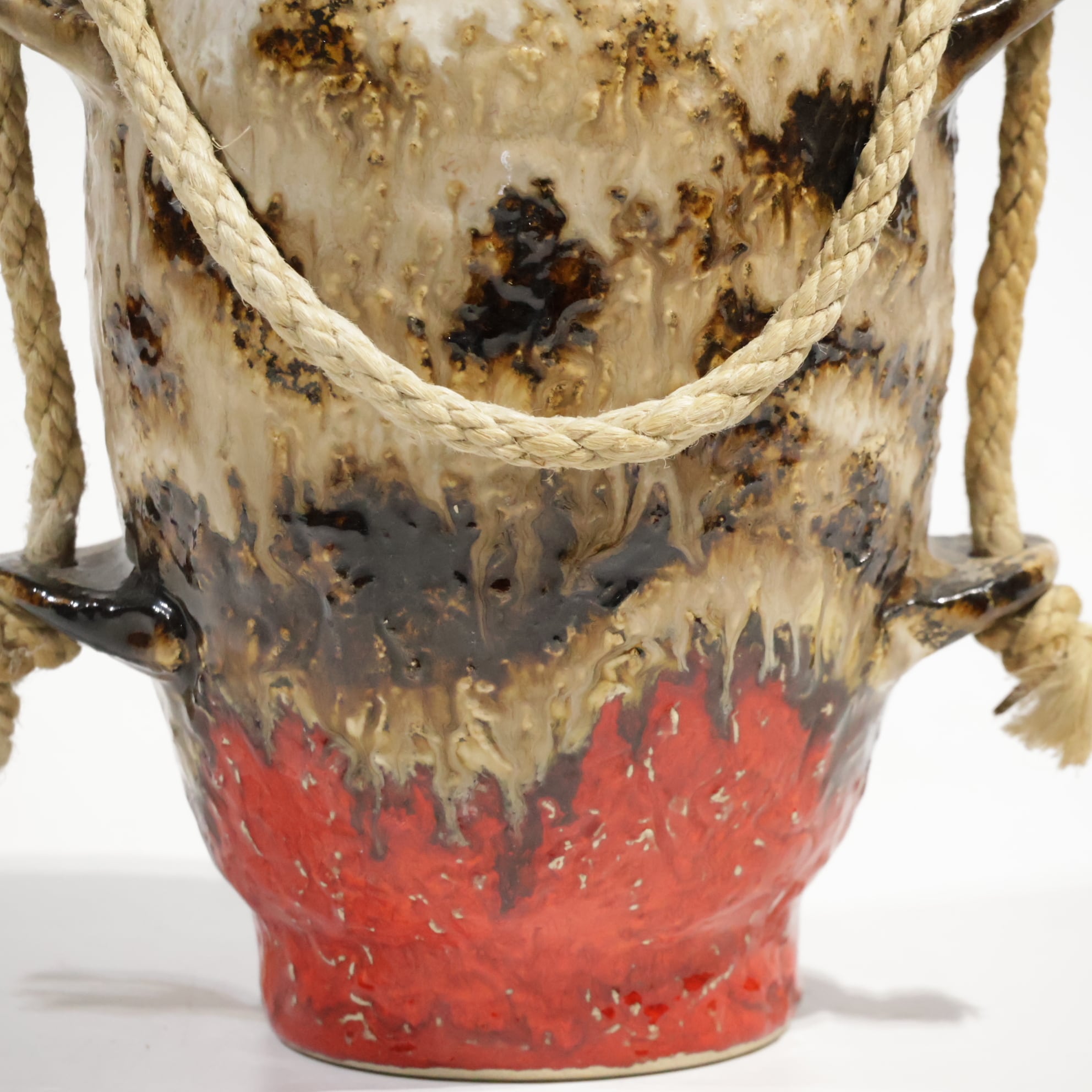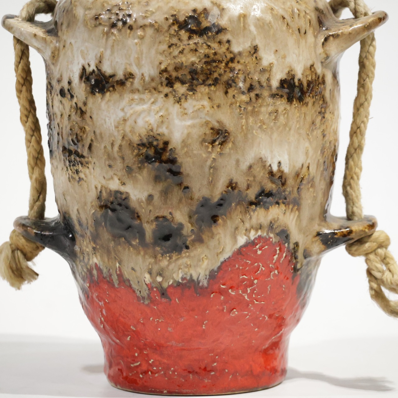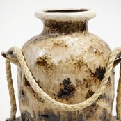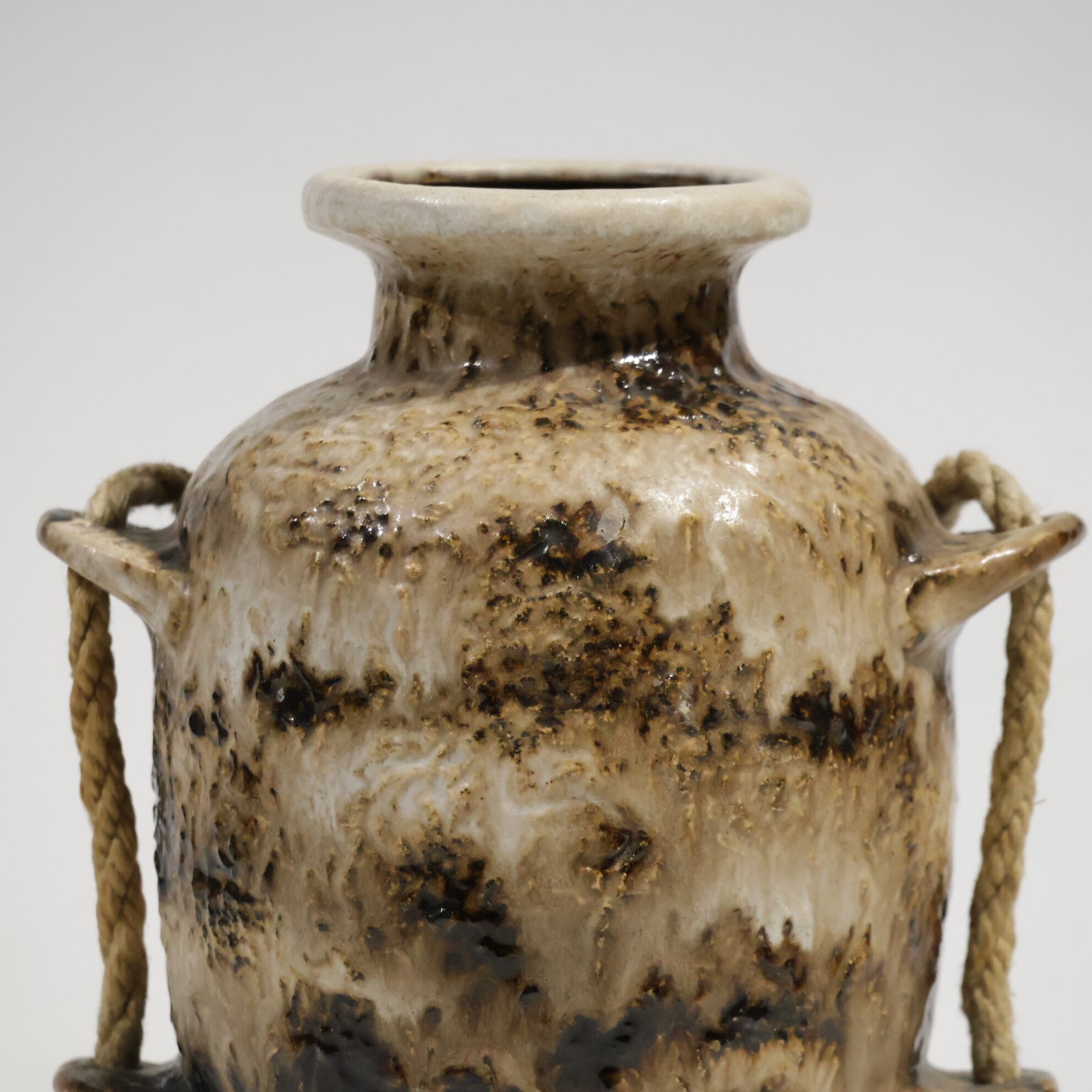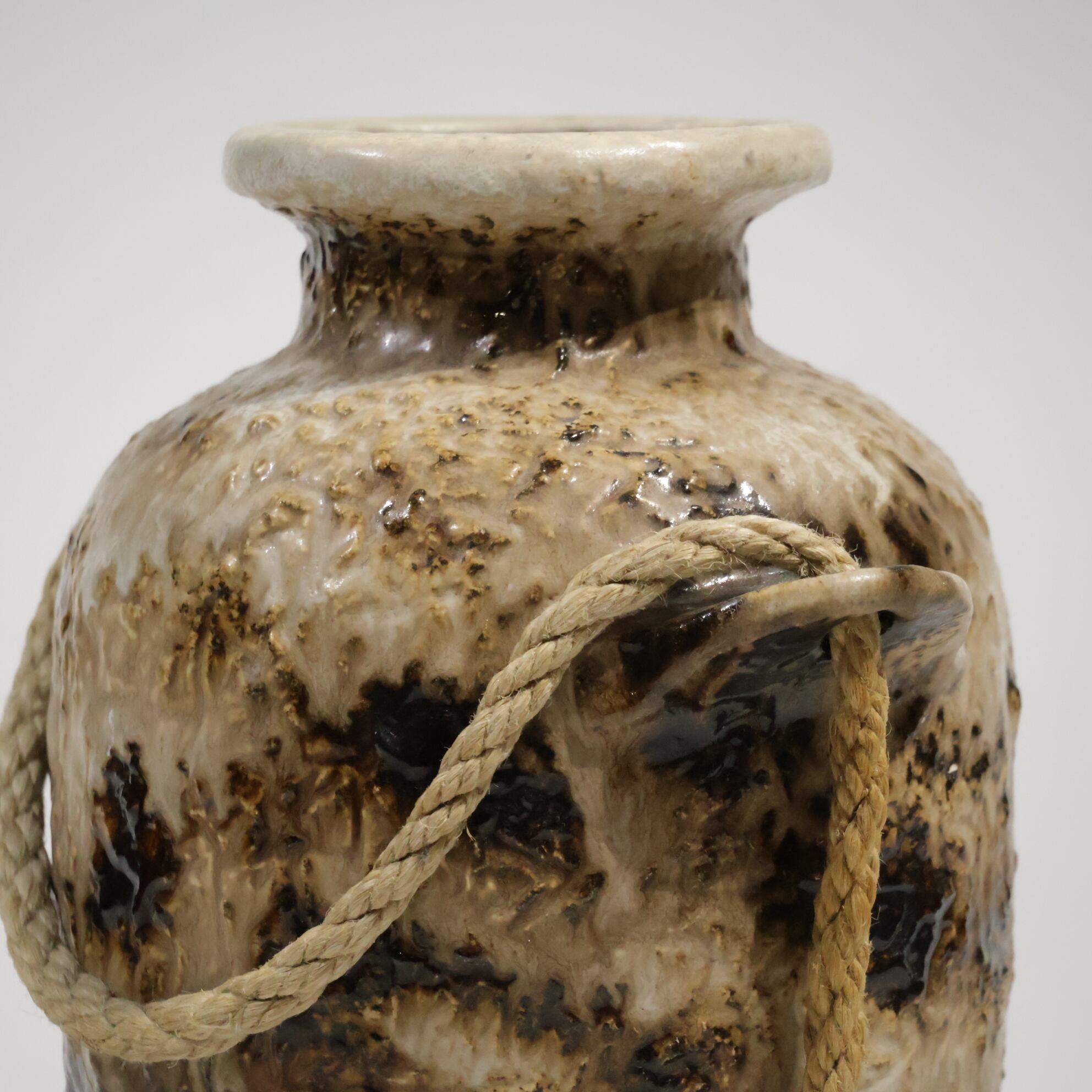 ロープは装飾的要素であり表面の粗いテクスチャと相まって、素地と釉薬のコントラストを強調しています。