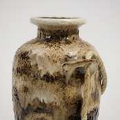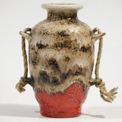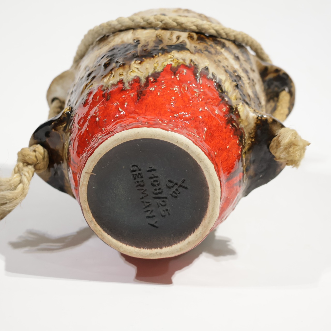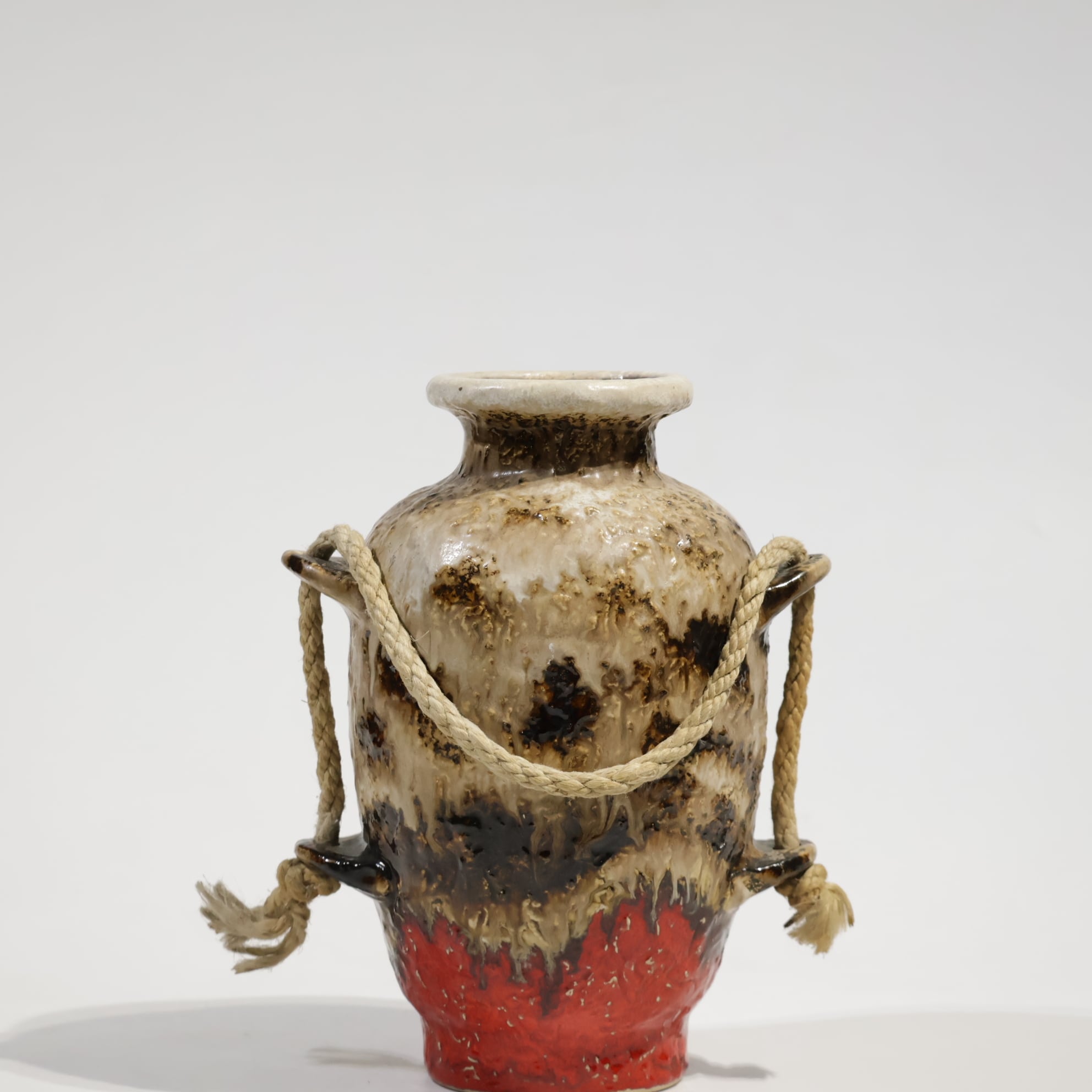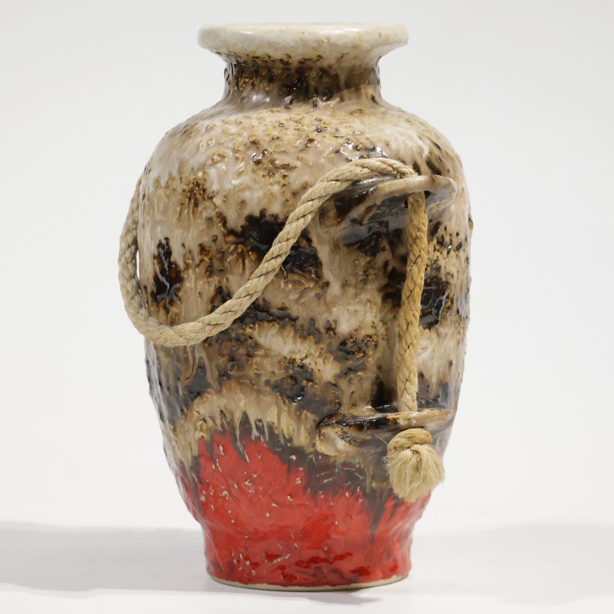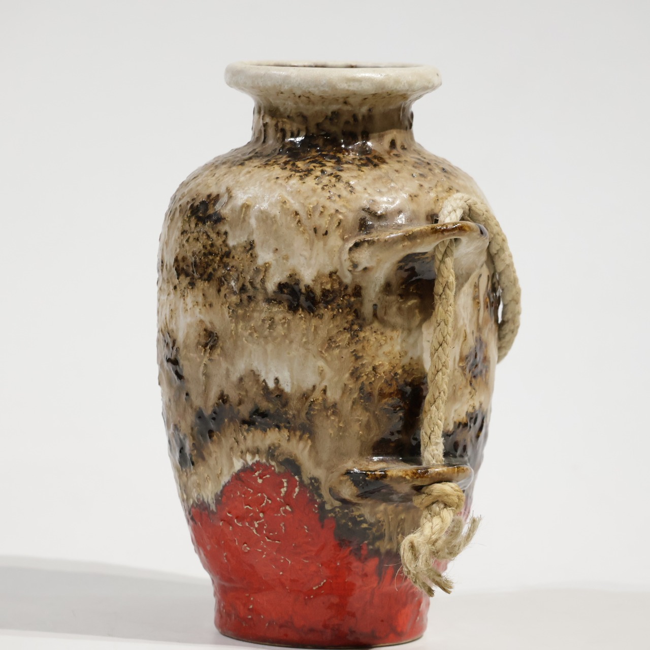 ロープは装飾的要素であり表面の粗いテクスチャと相まって、素地と釉薬のコントラストを強調しています。