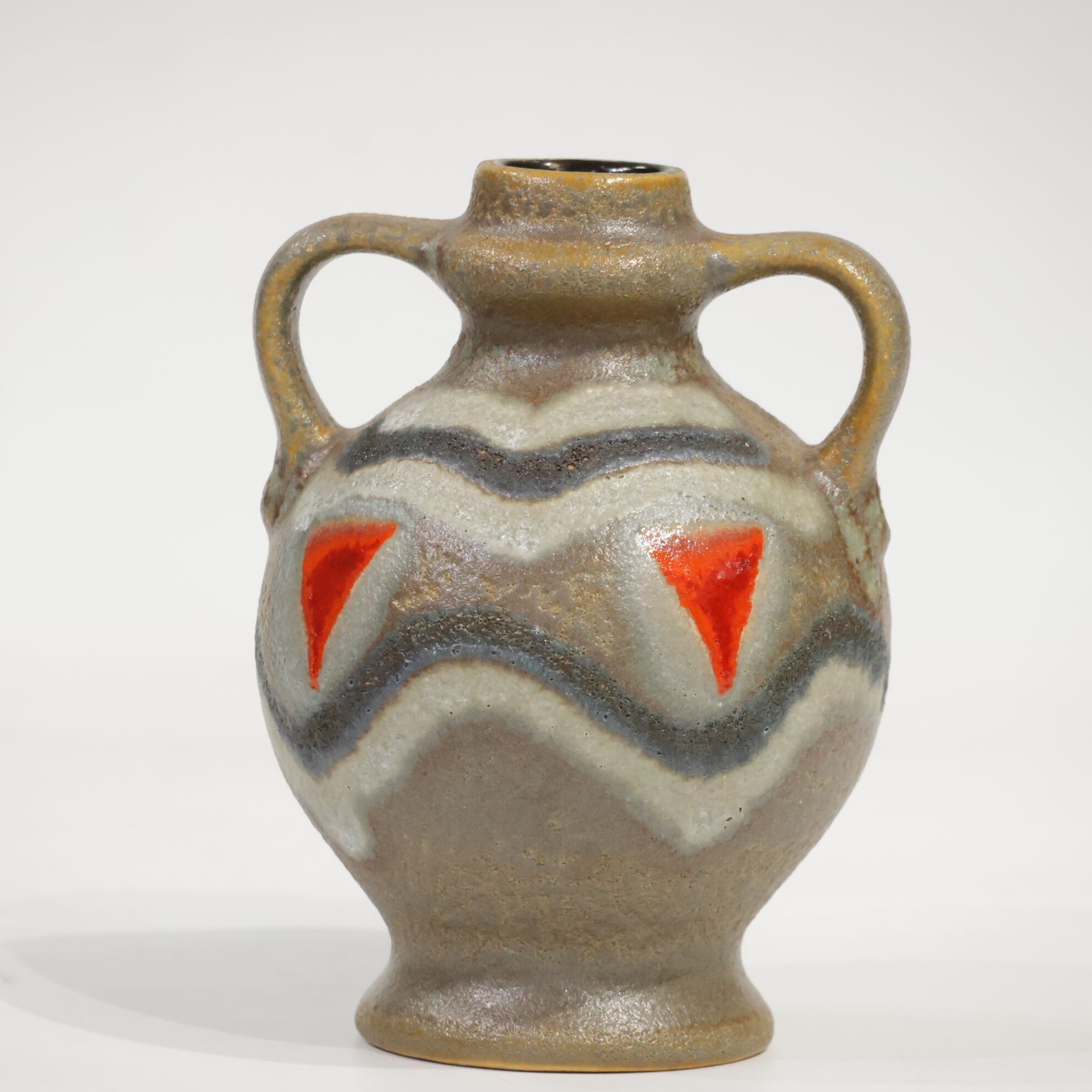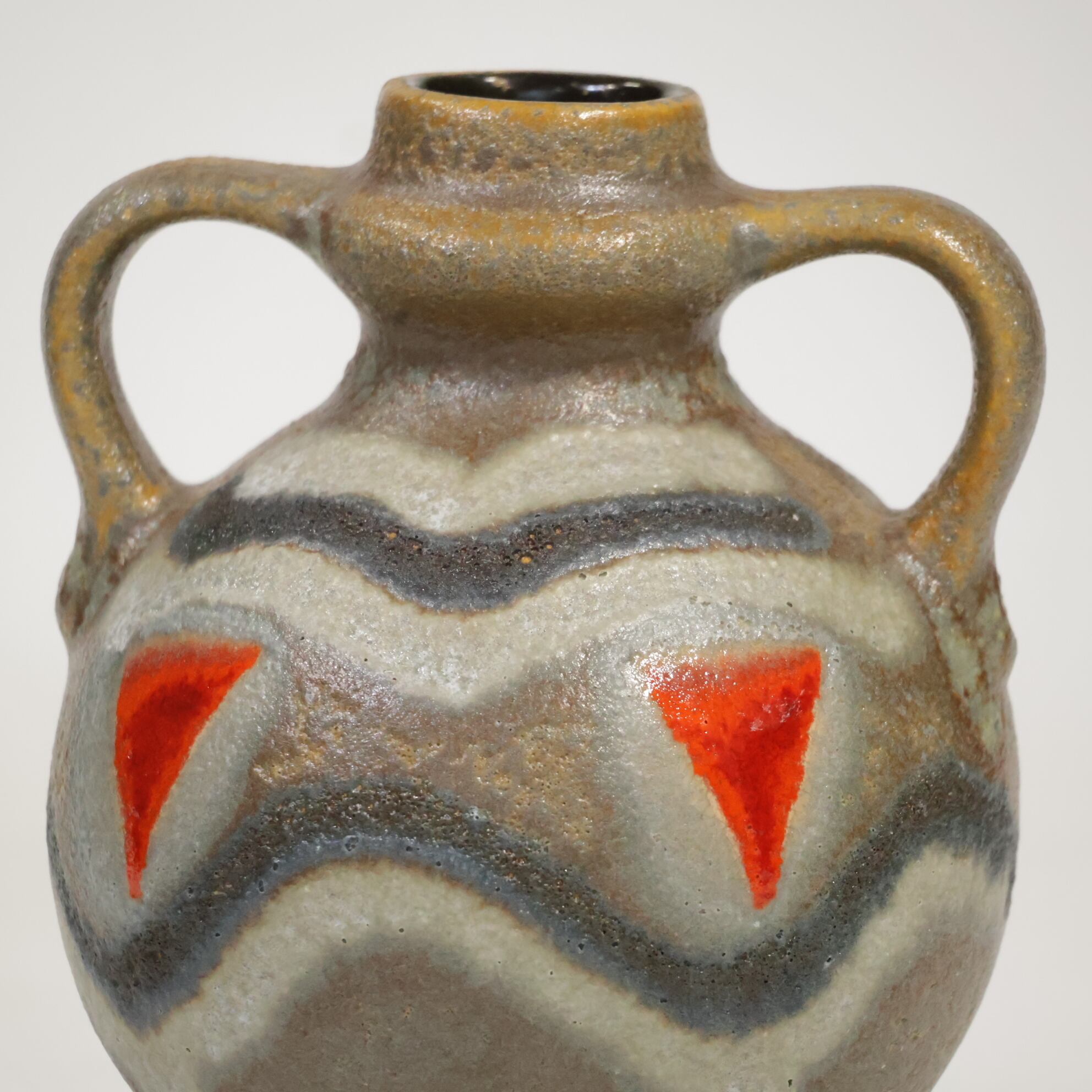 Strehlaと同様基本的なカラーは色は西ドイツの花瓶よりも落ち着いているのですが、海外向け生産のものはこのタイプのように遊び心のあるものも多いように見受けられます。