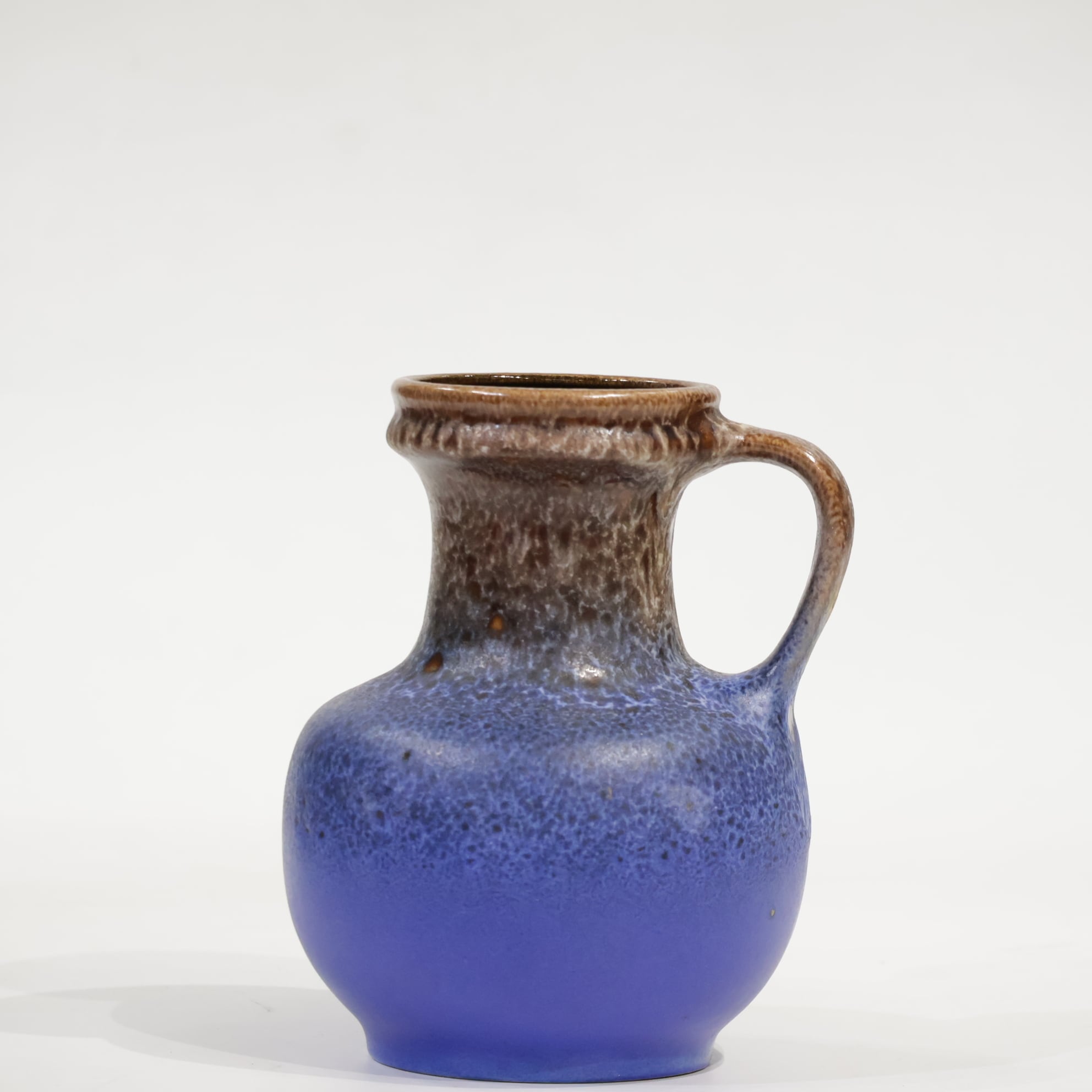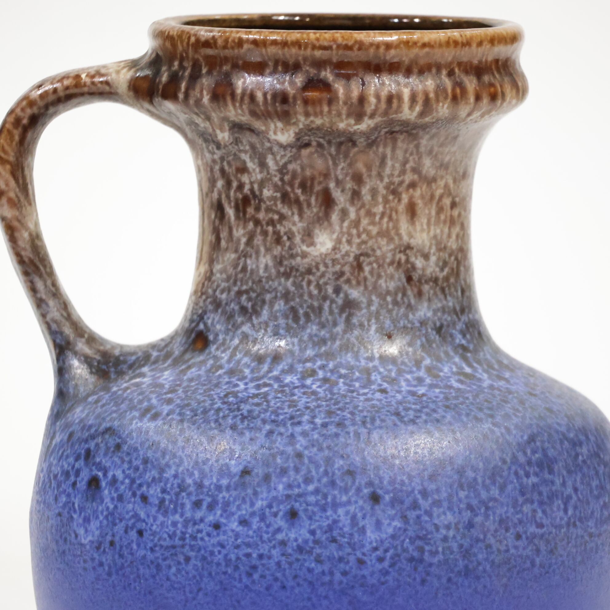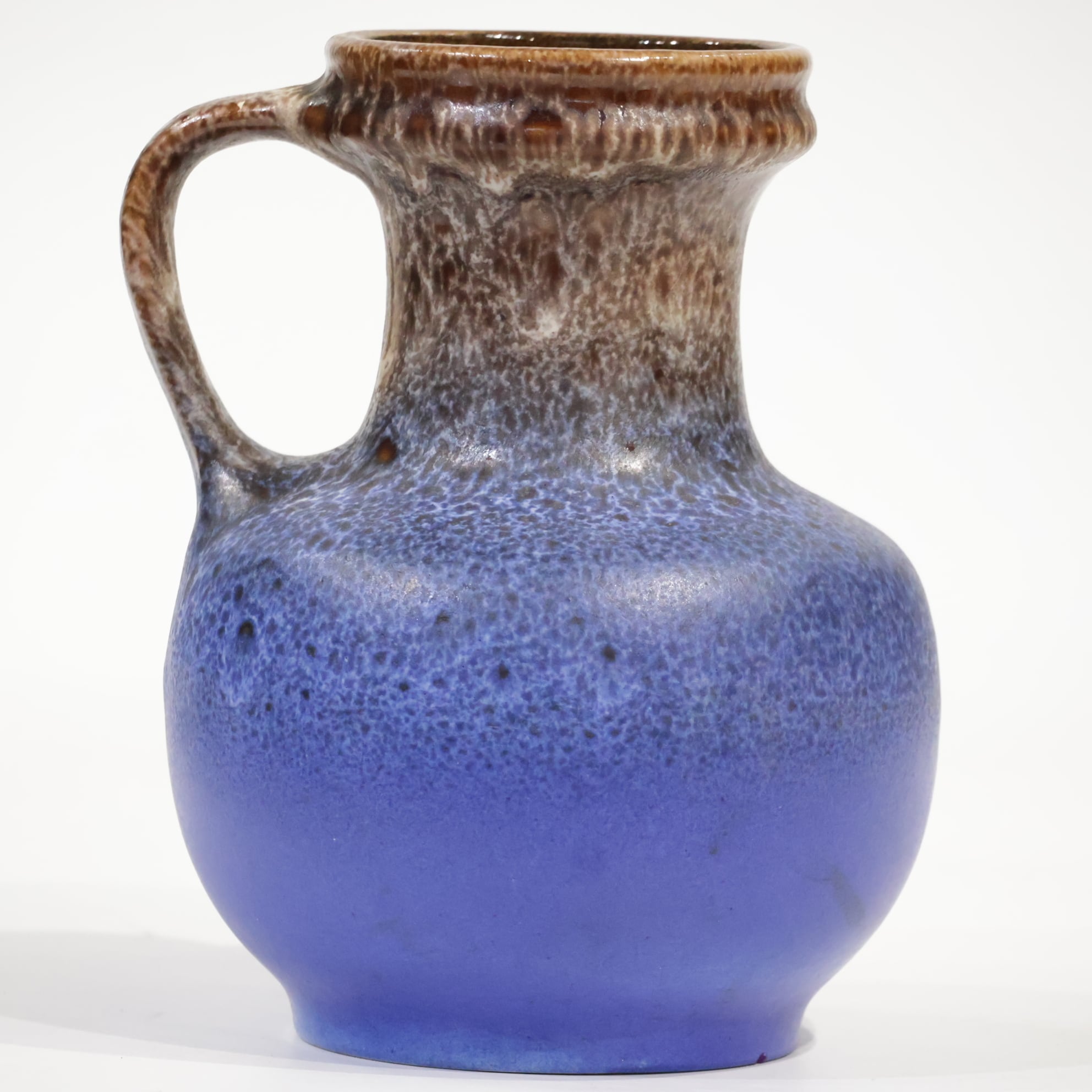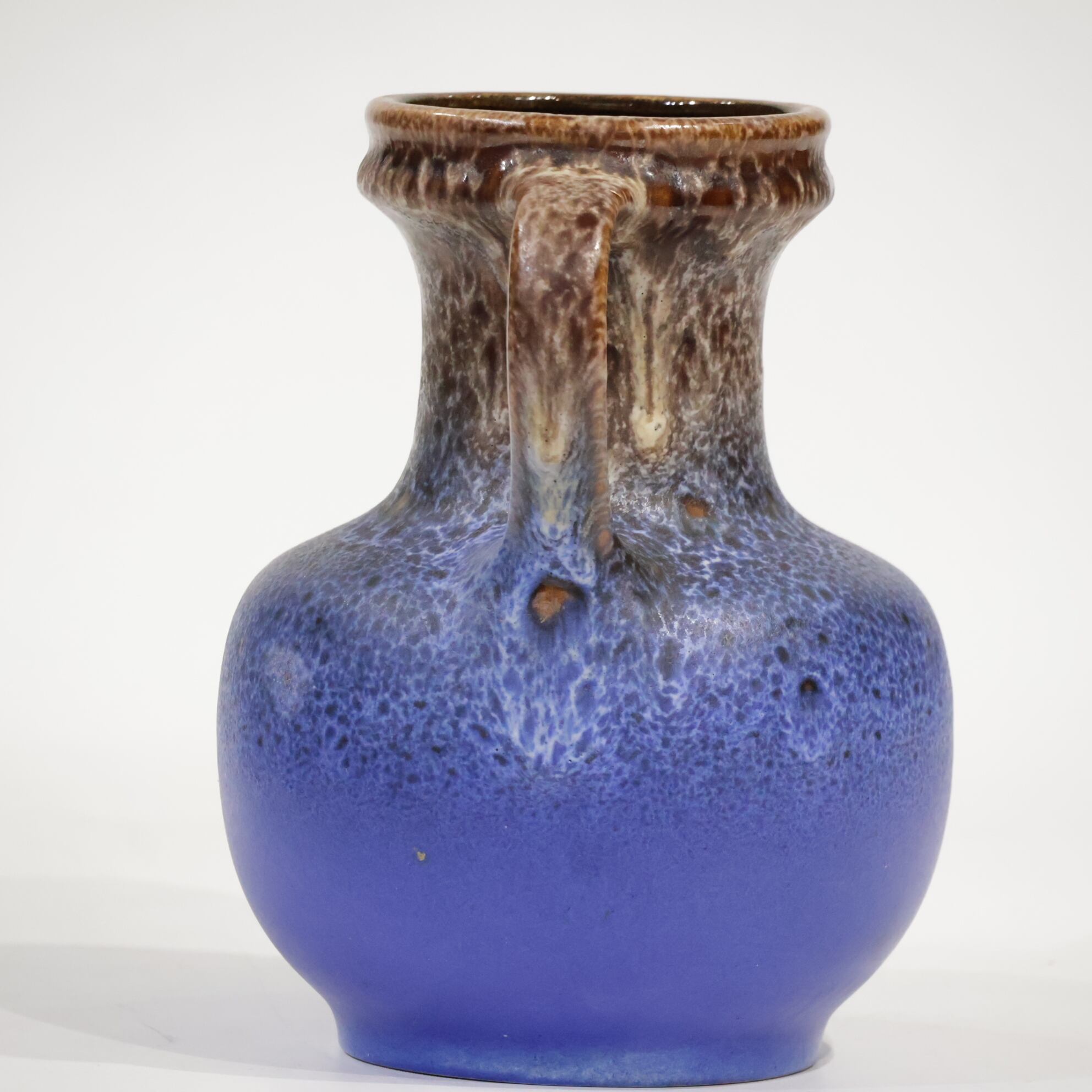 下部は均一に発色したブルーのマット寄り釉。上部に向かうにつれ、粒子状の白〜グレーが混ざり、さらに首元ではブラウンへ移行しています。境界は滲みながら連続し、焼成時の流動と分離がそのまま表面に現れています。