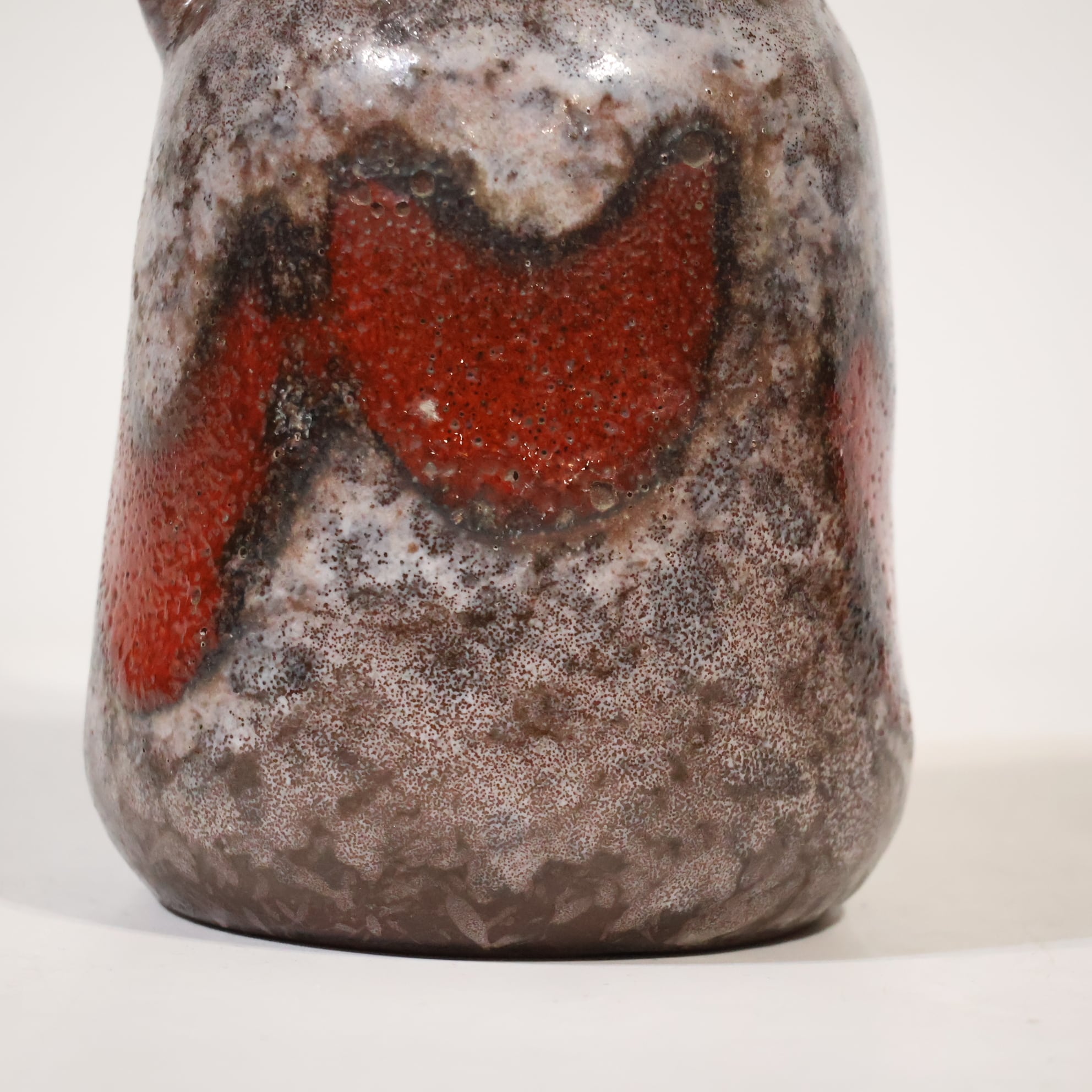 その上に、赤の釉薬が不定形に流れ込みアクセントになっています。