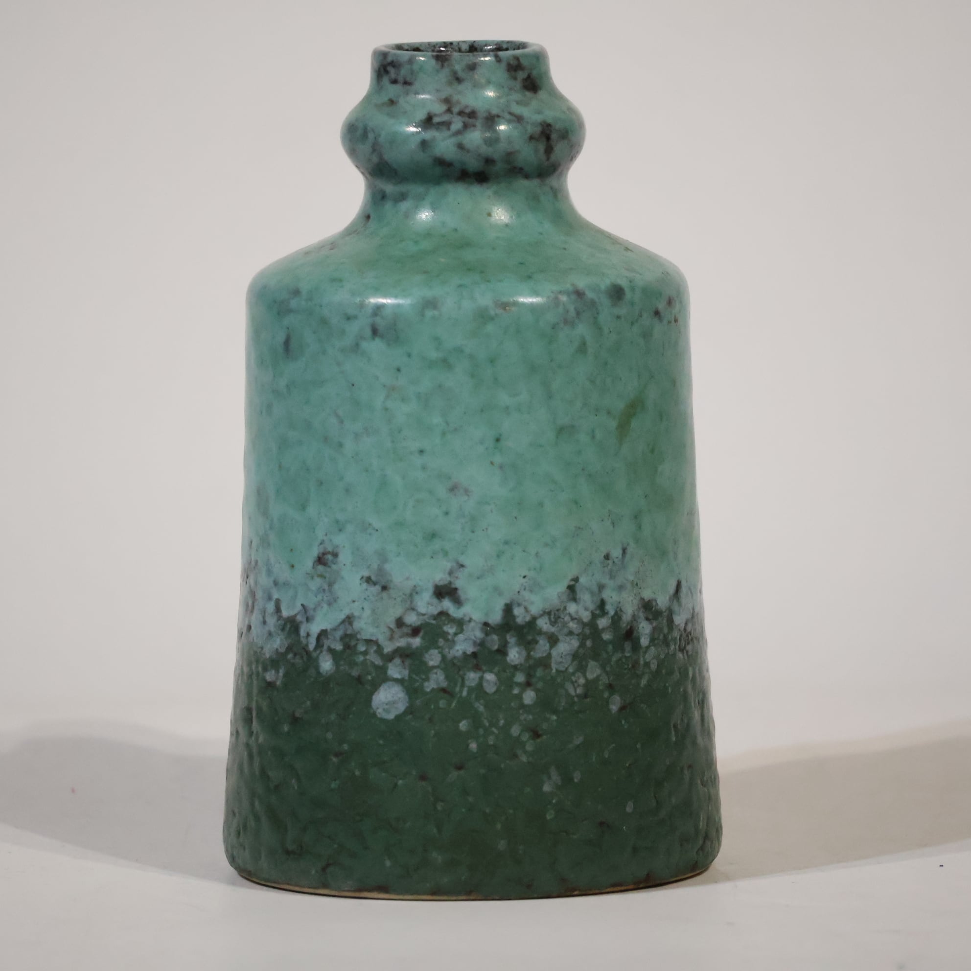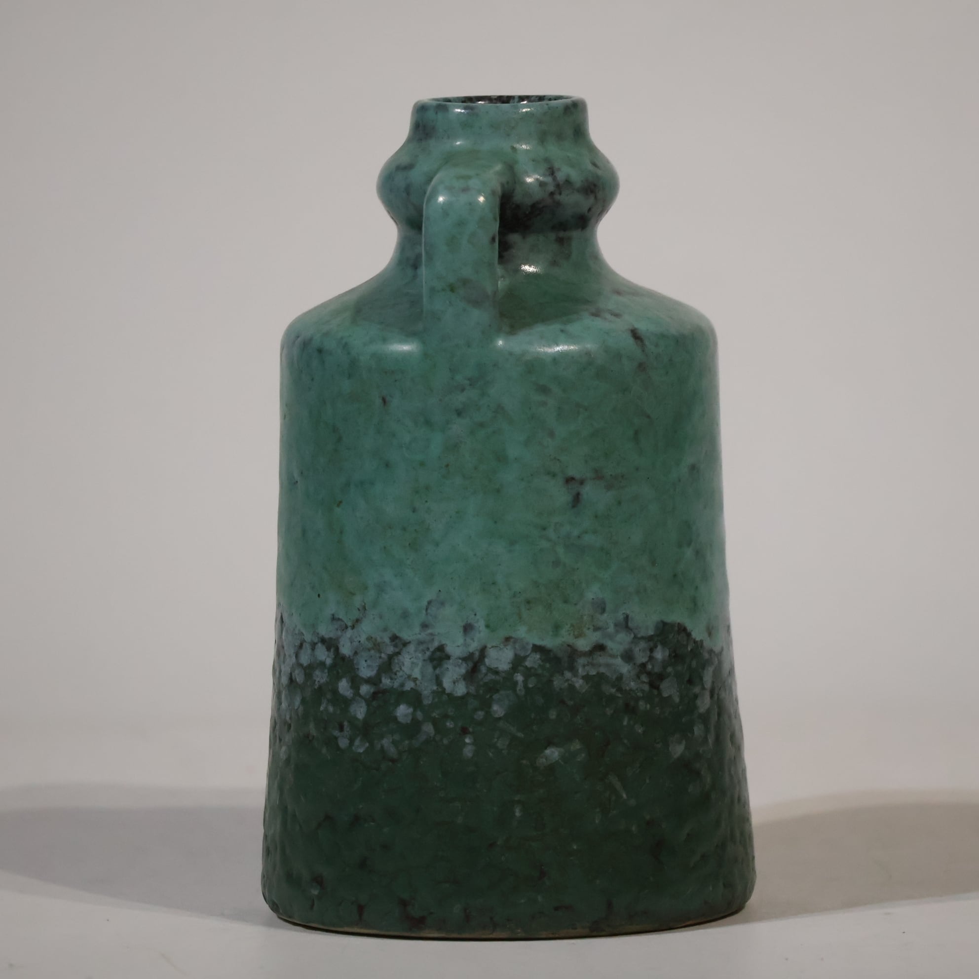 Strehlaの作品は、60年代後半から70年代にかけて、手作業で追加されたチューブで裏打ちされたFat Lava釉薬を使用した装飾によって特徴づけられました。ほとんどの作品には「Strehla」と刻印されたインクが刻印されており、ベースには型番が刻印されています。おそらく生産の多くが輸出されたので、アイテムは西ドイツの商品よりドイツで見つけるのが難しいです。