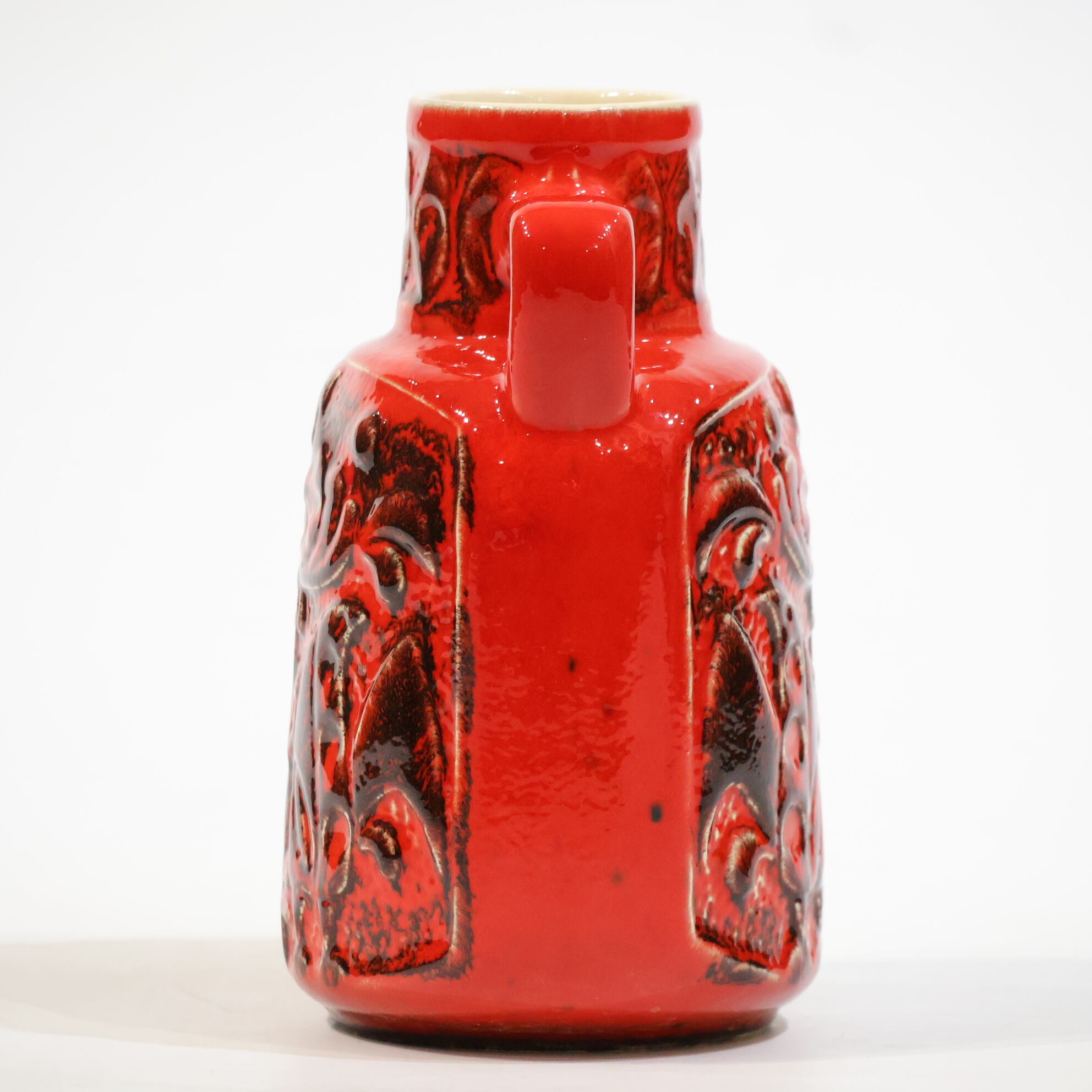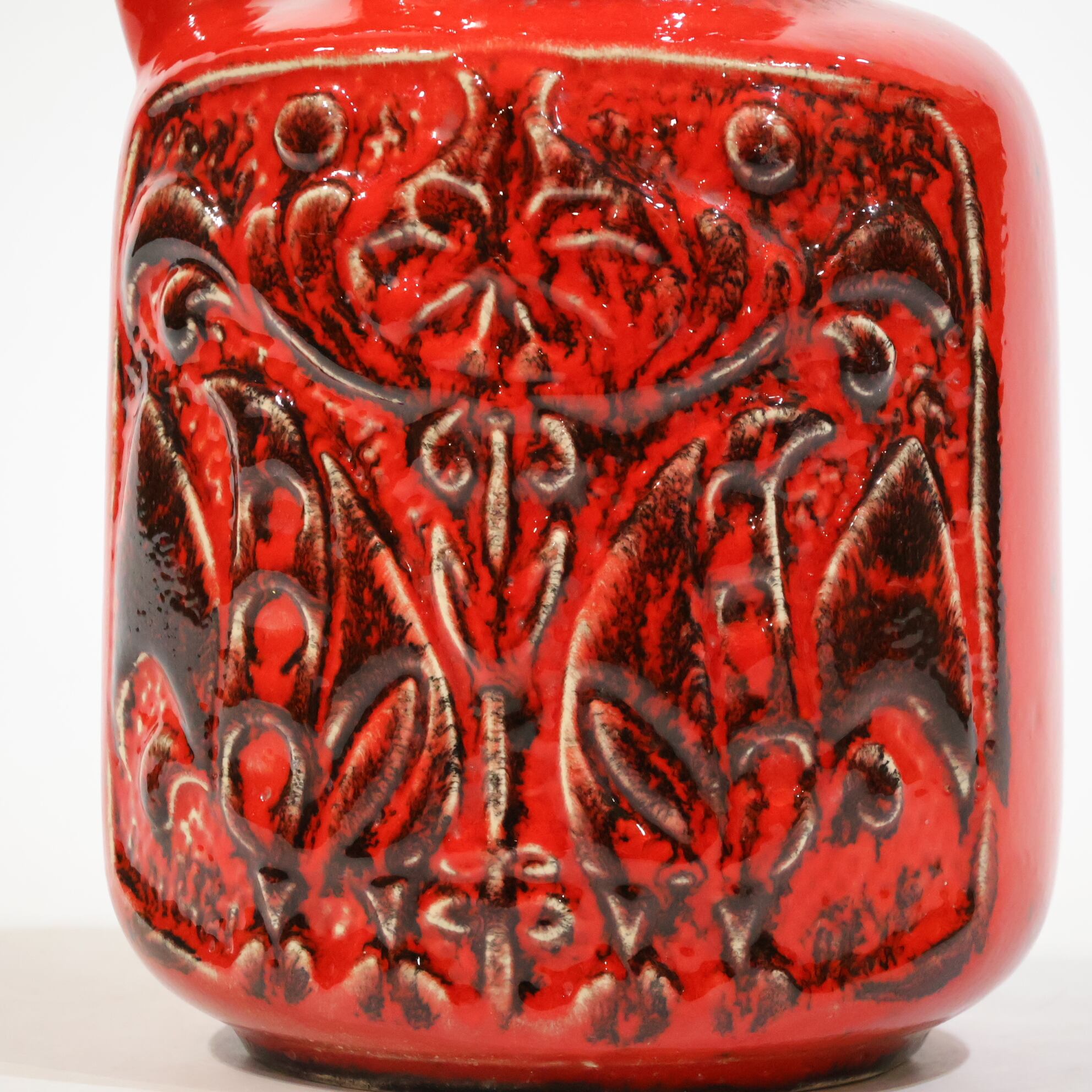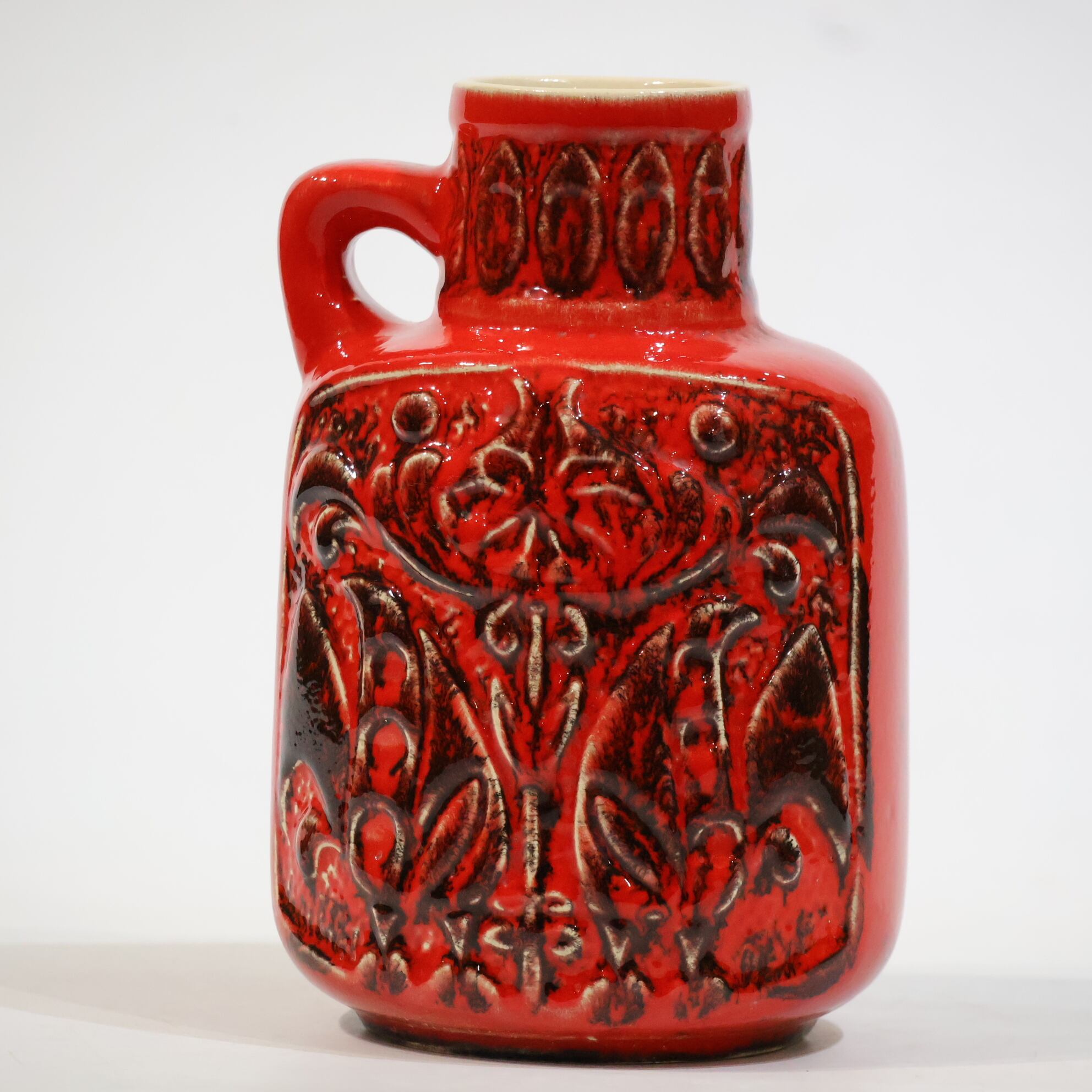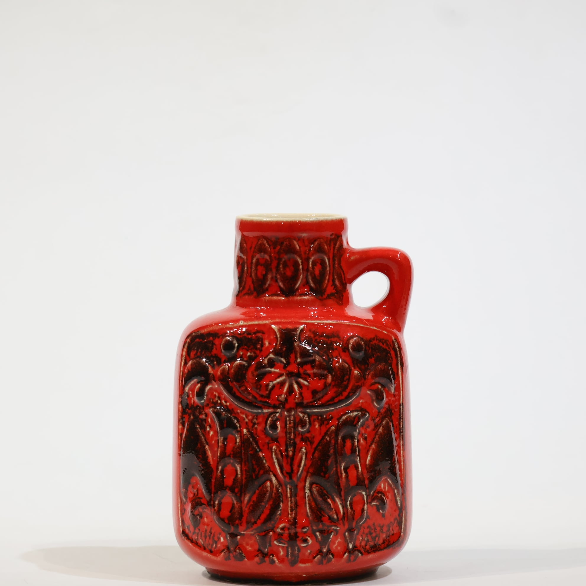 1960年代からのスタイルとしては、 当時広く流行していた色彩の釉薬(マットまたは 光沢あり)を使用し、シンプルなフォルムの上に様 式化した花の図柄の型押しや幾何学模様をあし らったものが多く、Scheurichのも のと混同されがちです。